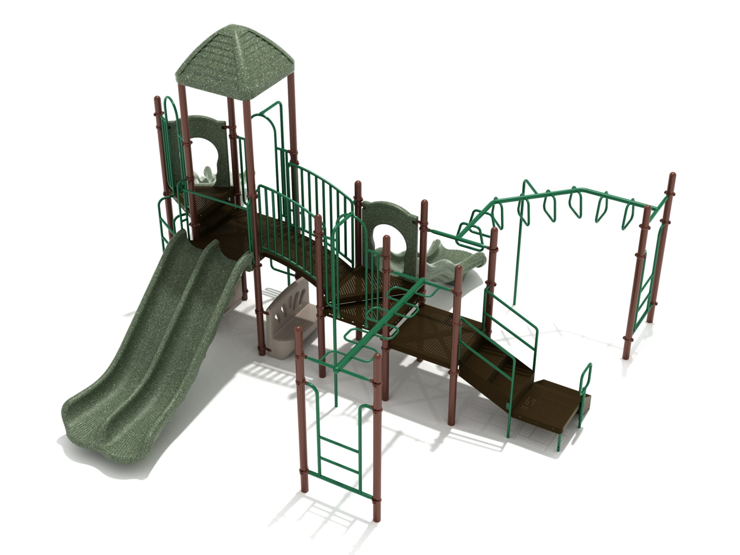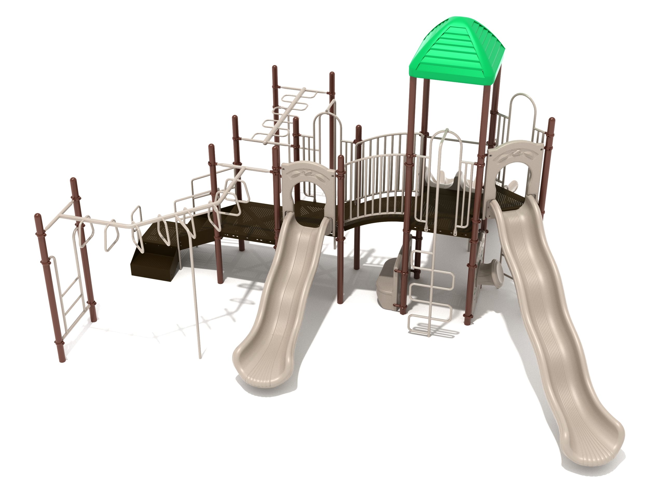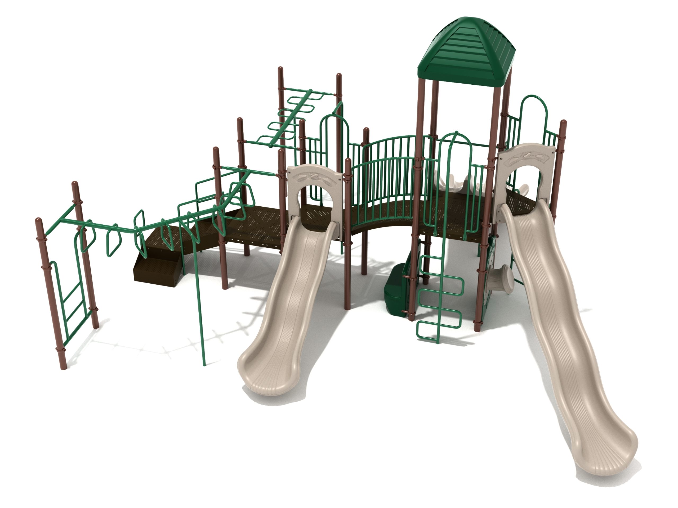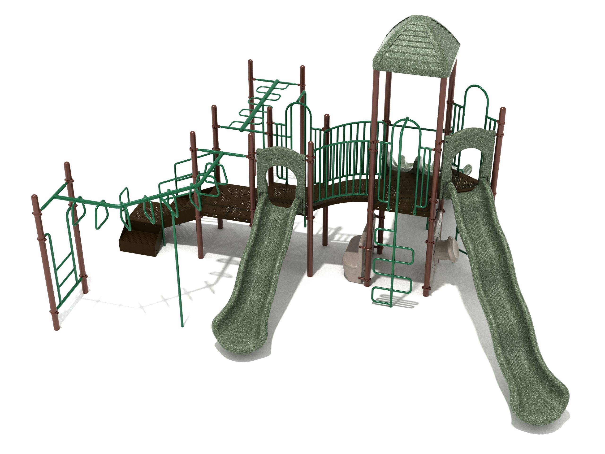 With two bumping Wave Slides and a Double Slide fit for the fastest of races to take place, the Minocqua boasts a wide variety of features guaranteed to keep kids amused for hours. There’s a Vertical Ladder to take kids straight to the high top deck or they can make use of the twisting Snake Climber that requires hand-eye coordination and a good sense of balance. By far the most popular feature of this apparatus for children to enjoy will be the two sets of overhead bars, a 90 Degree Trapezoid Loop Ladder and an Overhead Straight Snake Loop Ladder. Both of these require children to get active and challenge themselves mentally as well as their bodies. If they fail the first time they can always get back on the Vertical Ladder and try again and again to build perseverance and patience. A Fireman Pole is a nifty way to get off the structure and there’s additional features like Drum Panel and Bench Panel for children to explore.