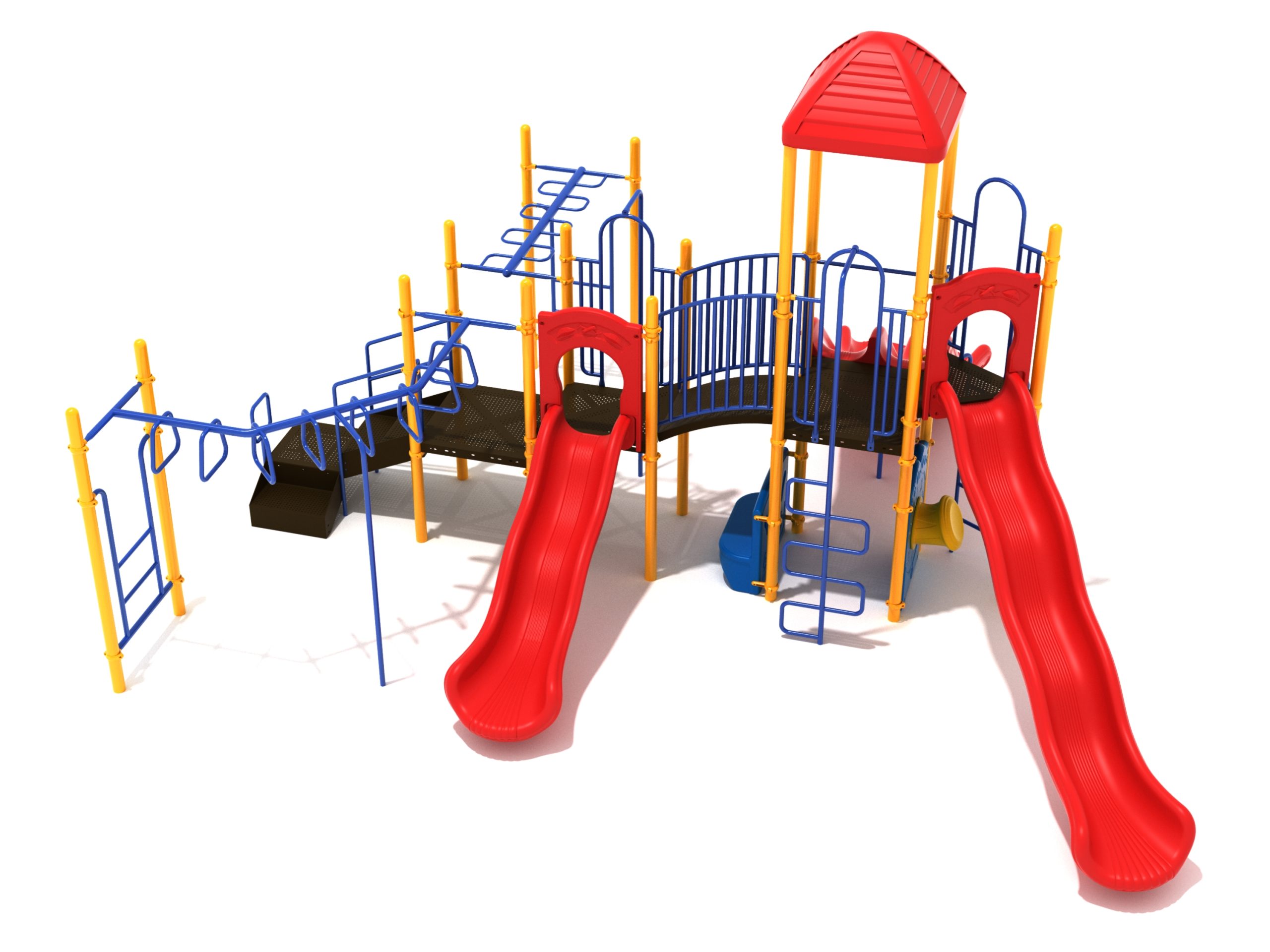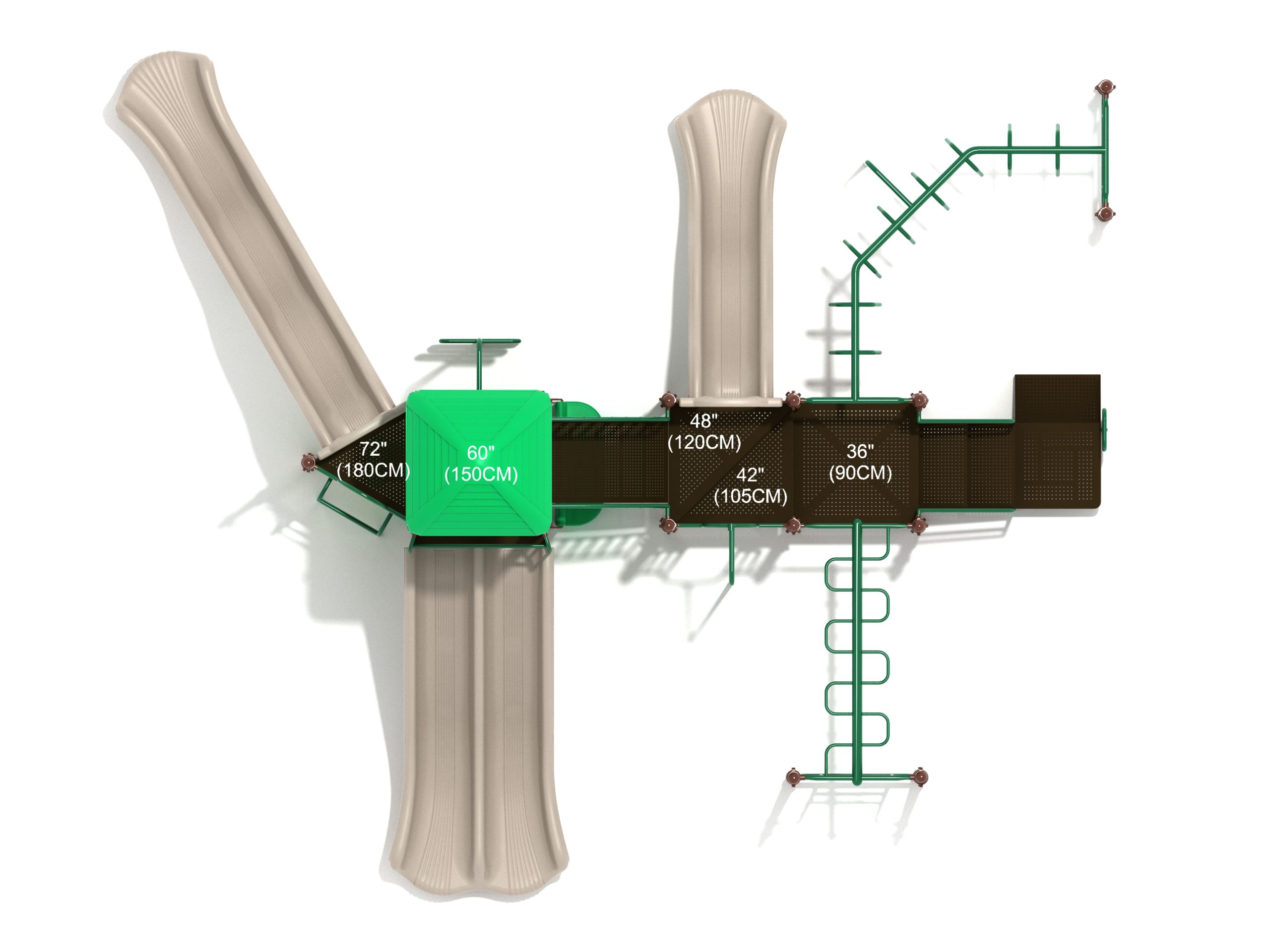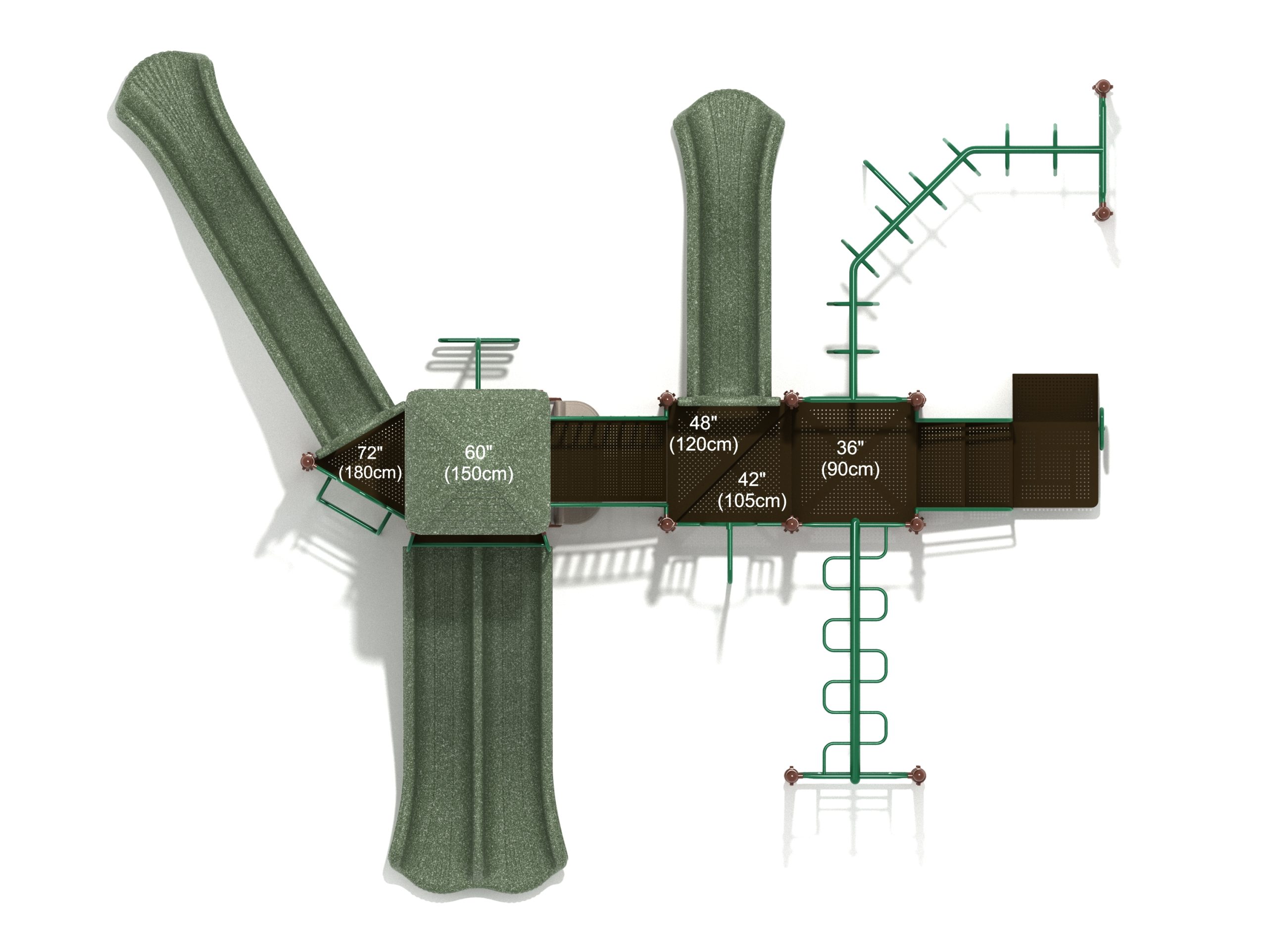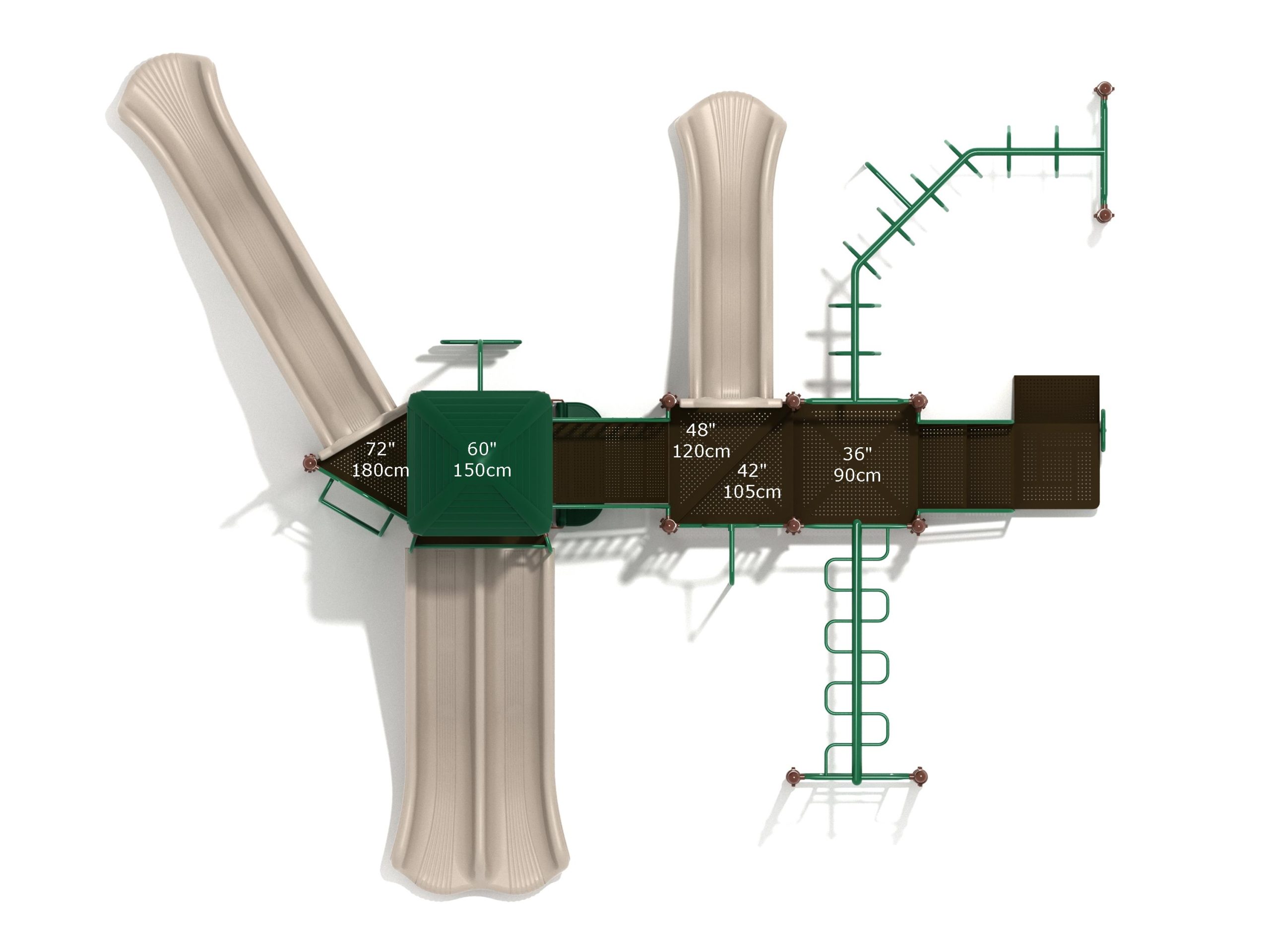 With two bumping Wave Slides and a Double Slide fit for the fastest of races to take place, the Minocqua boasts a wide variety of features guaranteed to keep kids amused for hours. There’s a Vertical Ladder to take kids straight to the high top deck or they can make use of the twisting Snake Climber that requires hand-eye coordination and a good sense of balance. By far the most popular feature of this apparatus for children to enjoy will be the two sets of overhead bars, a 90 Degree Trapezoid Loop Ladder and an Overhead Straight Snake Loop Ladder. Both of these require children to get active and challenge themselves mentally as well as their bodies. If they fail the first time they can always get back on the Vertical Ladder and try again and again to build perseverance and patience. A Fireman Pole is a nifty way to get off the structure and there’s additional features like Drum Panel and Bench Panel for children to explore.