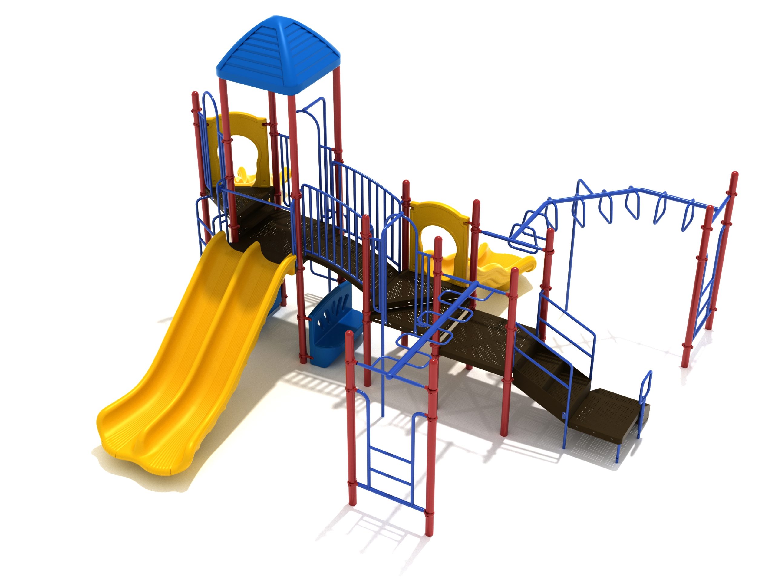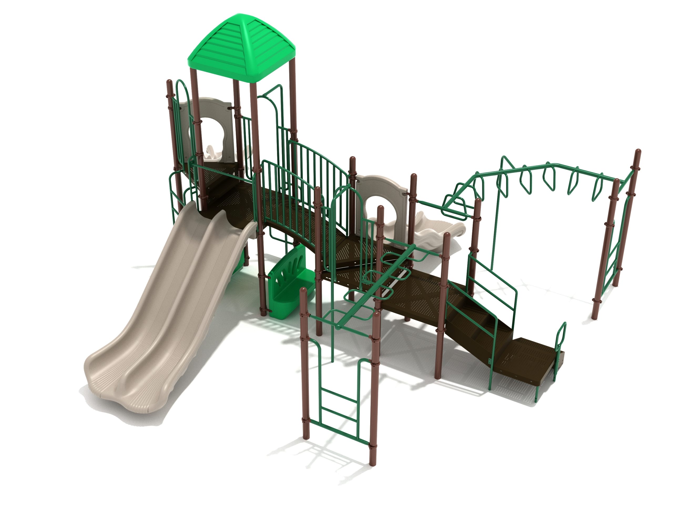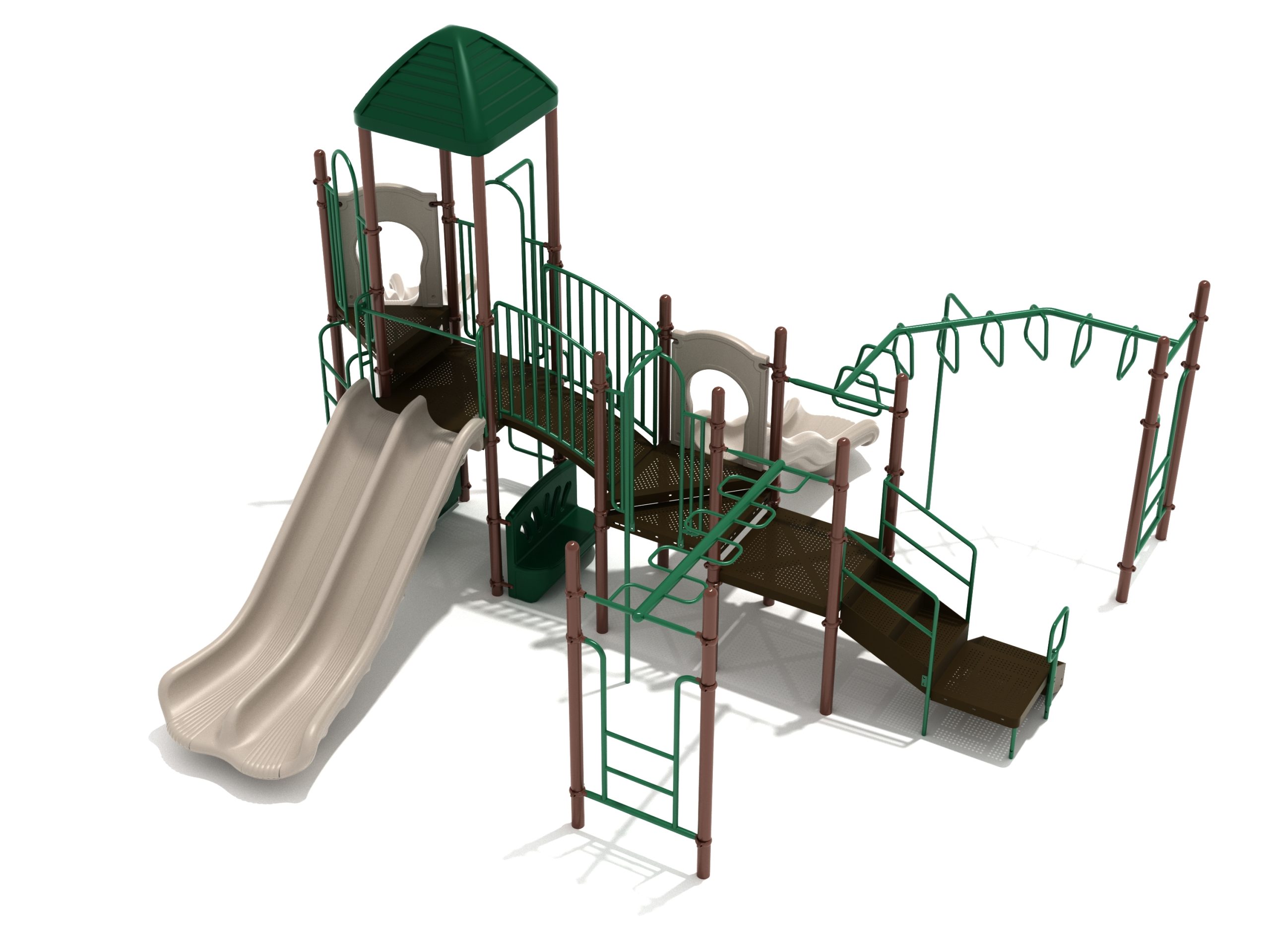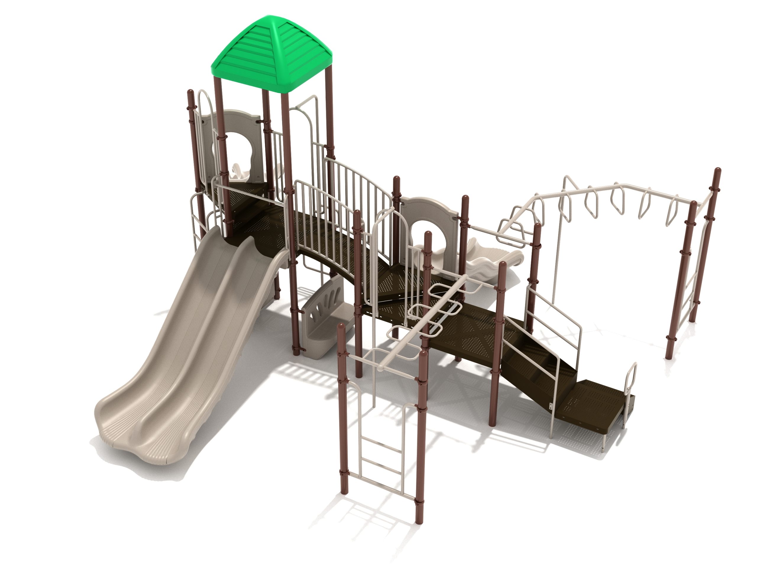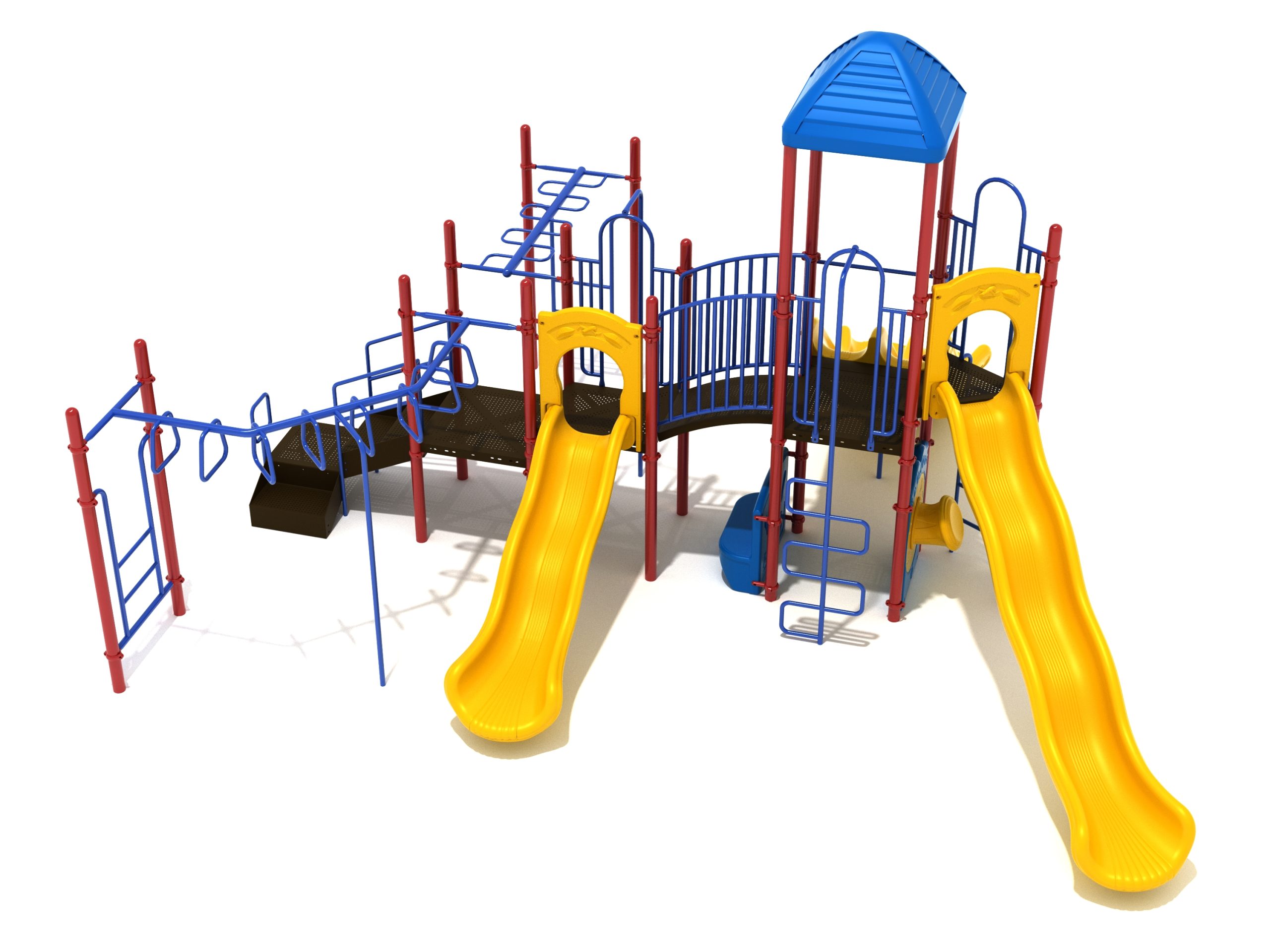 With two bumping Wave Slides and a Double Slide fit for the fastest of races to take place, the Minocqua boasts a wide variety of features guaranteed to keep kids amused for hours. There’s a Vertical Ladder to take kids straight to the high top deck or they can make use of the twisting Snake Climber that requires hand-eye coordination and a good sense of balance. By far the most popular feature of this apparatus for children to enjoy will be the two sets of overhead bars, a 90 Degree Trapezoid Loop Ladder and an Overhead Straight Snake Loop Ladder. Both of these require children to get active and challenge themselves mentally as well as their bodies. If they fail the first time they can always get back on the Vertical Ladder and try again and again to build perseverance and patience. A Fireman Pole is a nifty way to get off the structure and there’s additional features like Drum Panel and Bench Panel for children to explore.