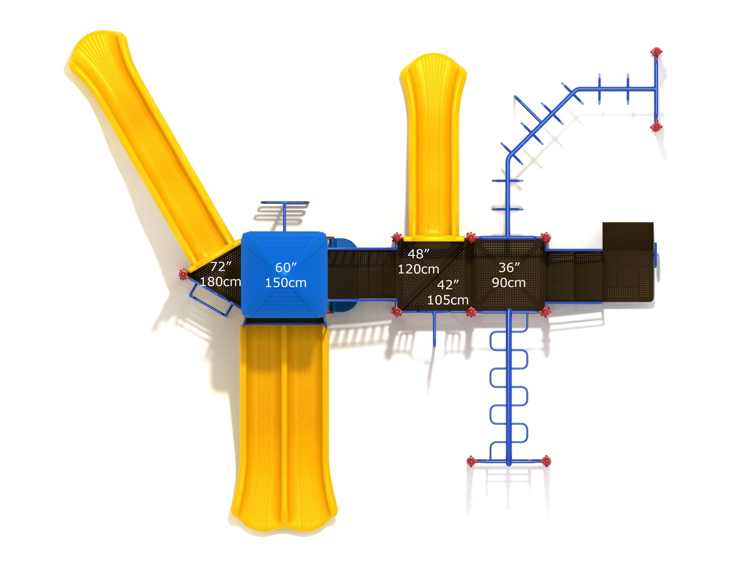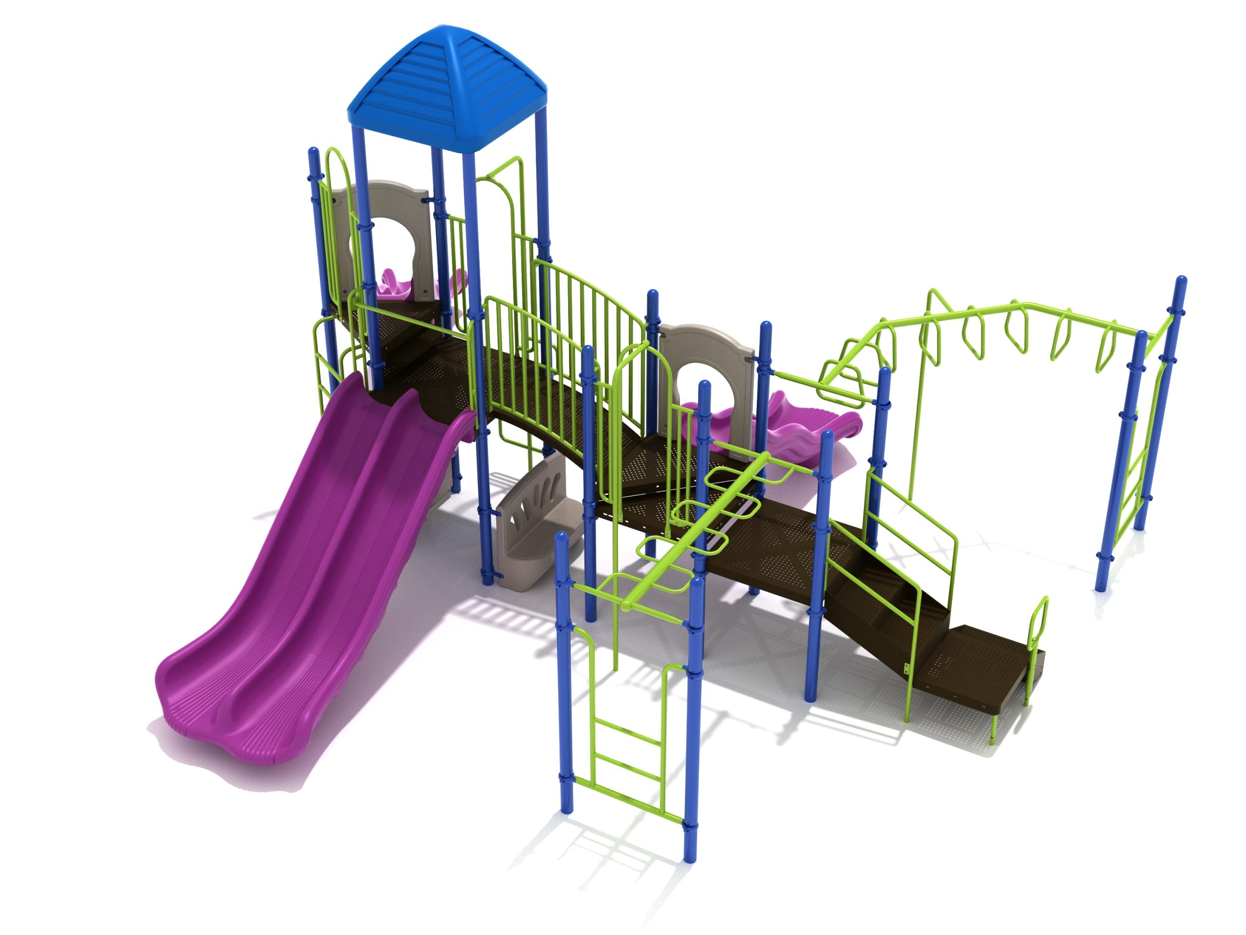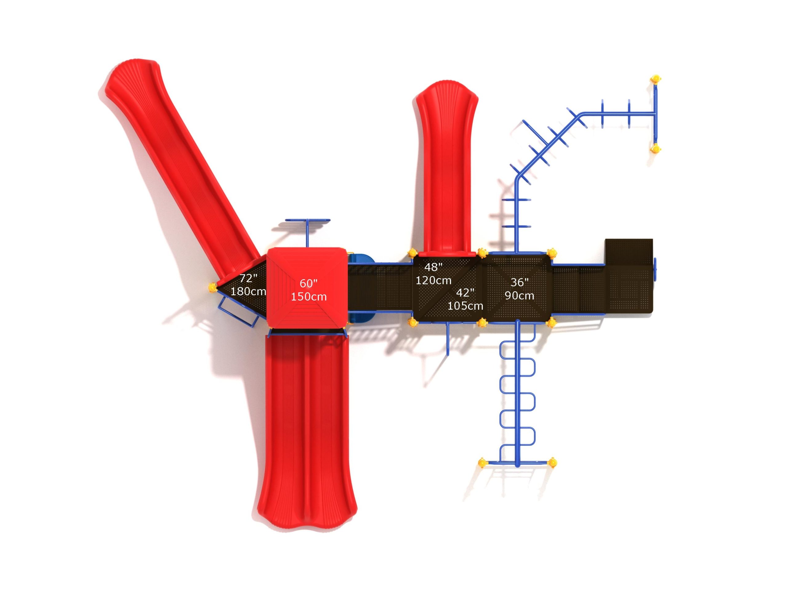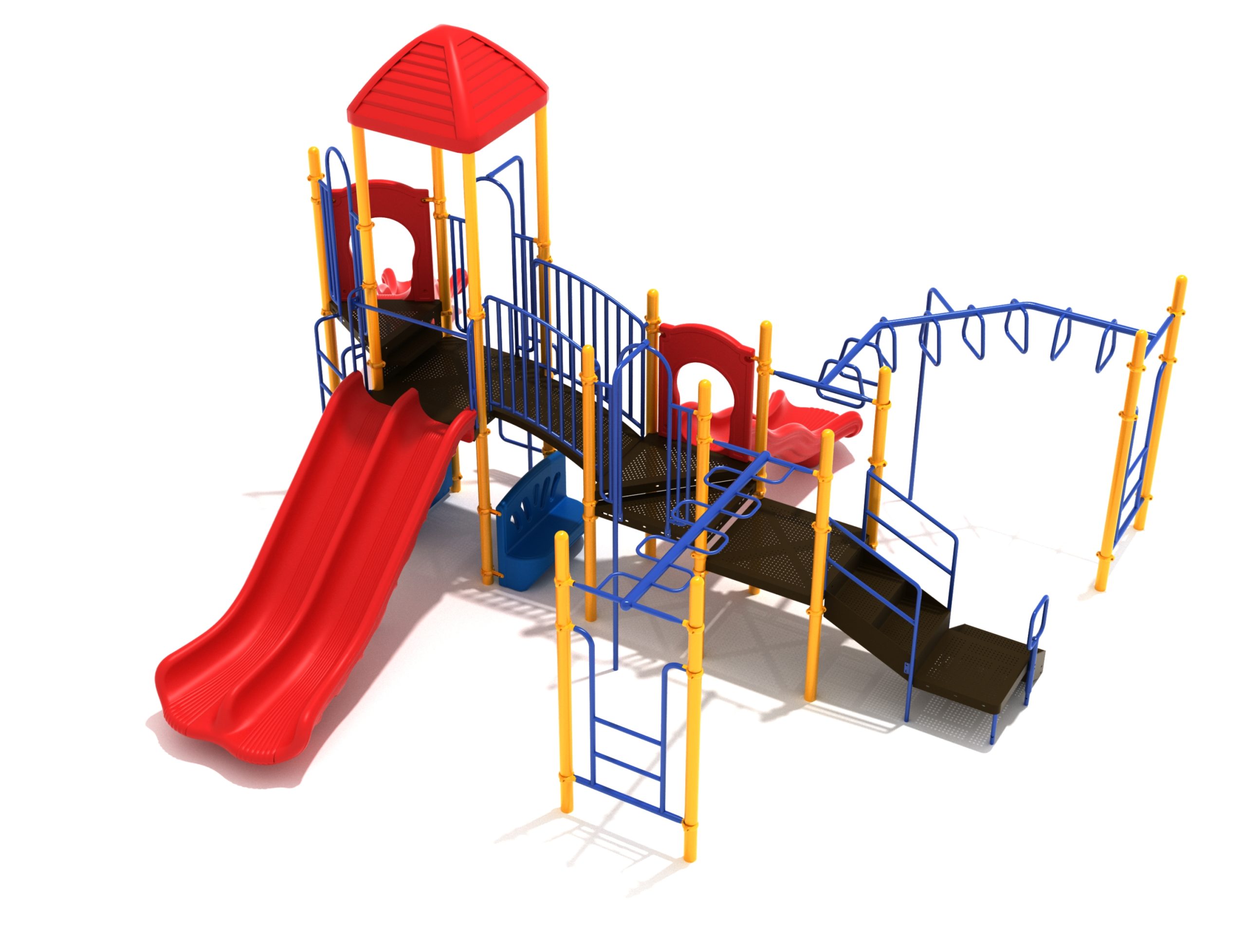 With two bumping Wave Slides and a Double Slide fit for the fastest of races to take place, the Minocqua boasts a wide variety of features guaranteed to keep kids amused for hours. There’s a Vertical Ladder to take kids straight to the high top deck or they can make use of the twisting Snake Climber that requires hand-eye coordination and a good sense of balance. By far the most popular feature of this apparatus for children to enjoy will be the two sets of overhead bars, a 90 Degree Trapezoid Loop Ladder and an Overhead Straight Snake Loop Ladder. Both of these require children to get active and challenge themselves mentally as well as their bodies. If they fail the first time they can always get back on the Vertical Ladder and try again and again to build perseverance and patience. A Fireman Pole is a nifty way to get off the structure and there’s additional features like Drum Panel and Bench Panel for children to explore.