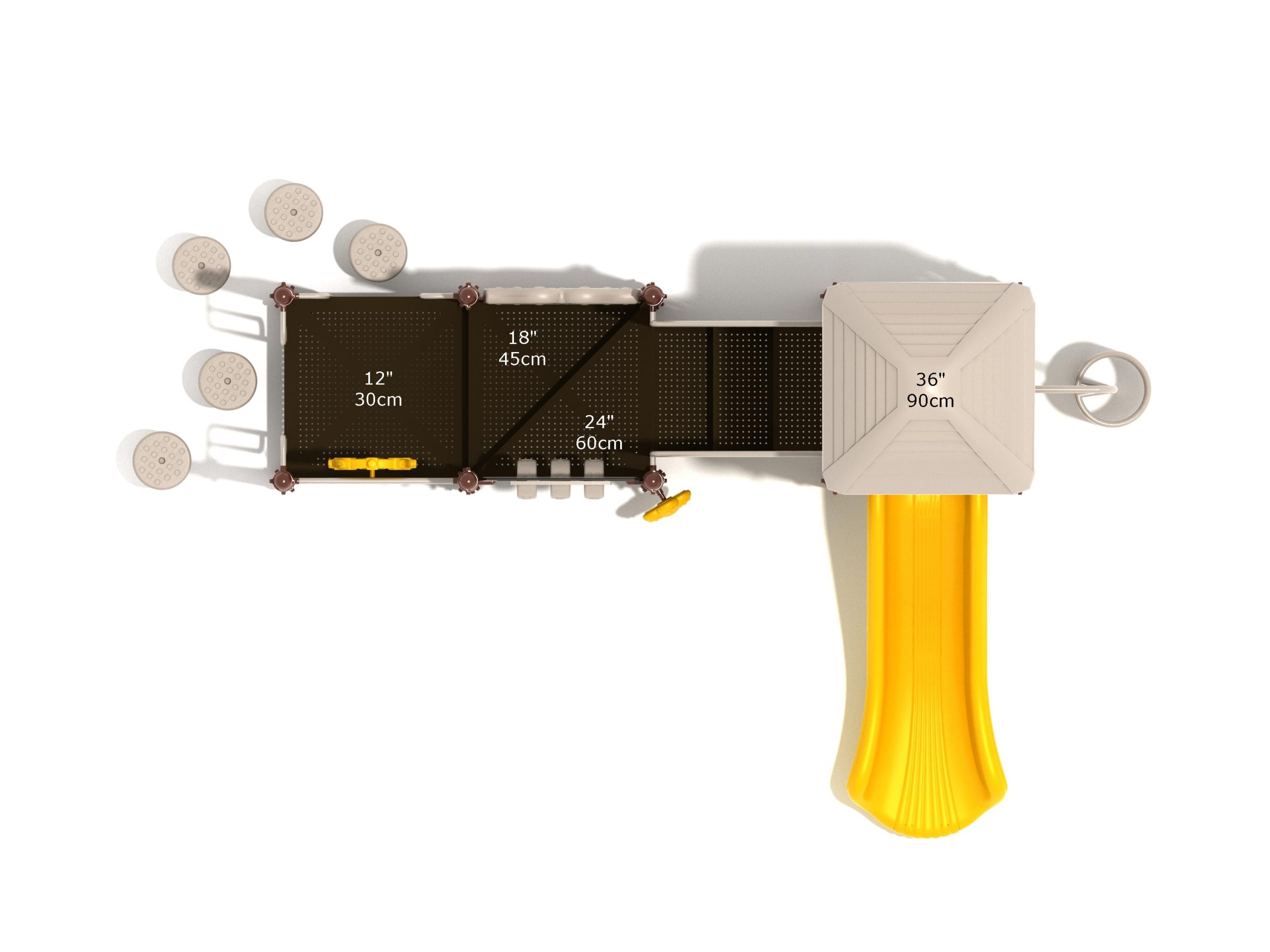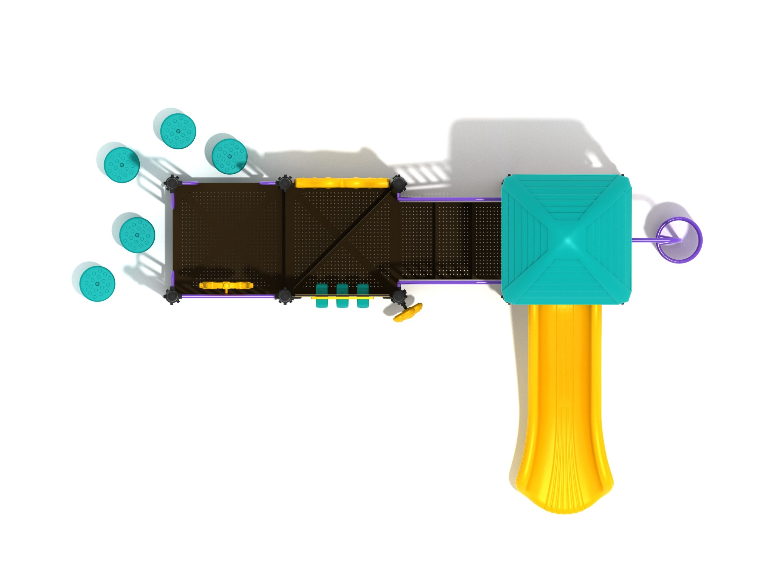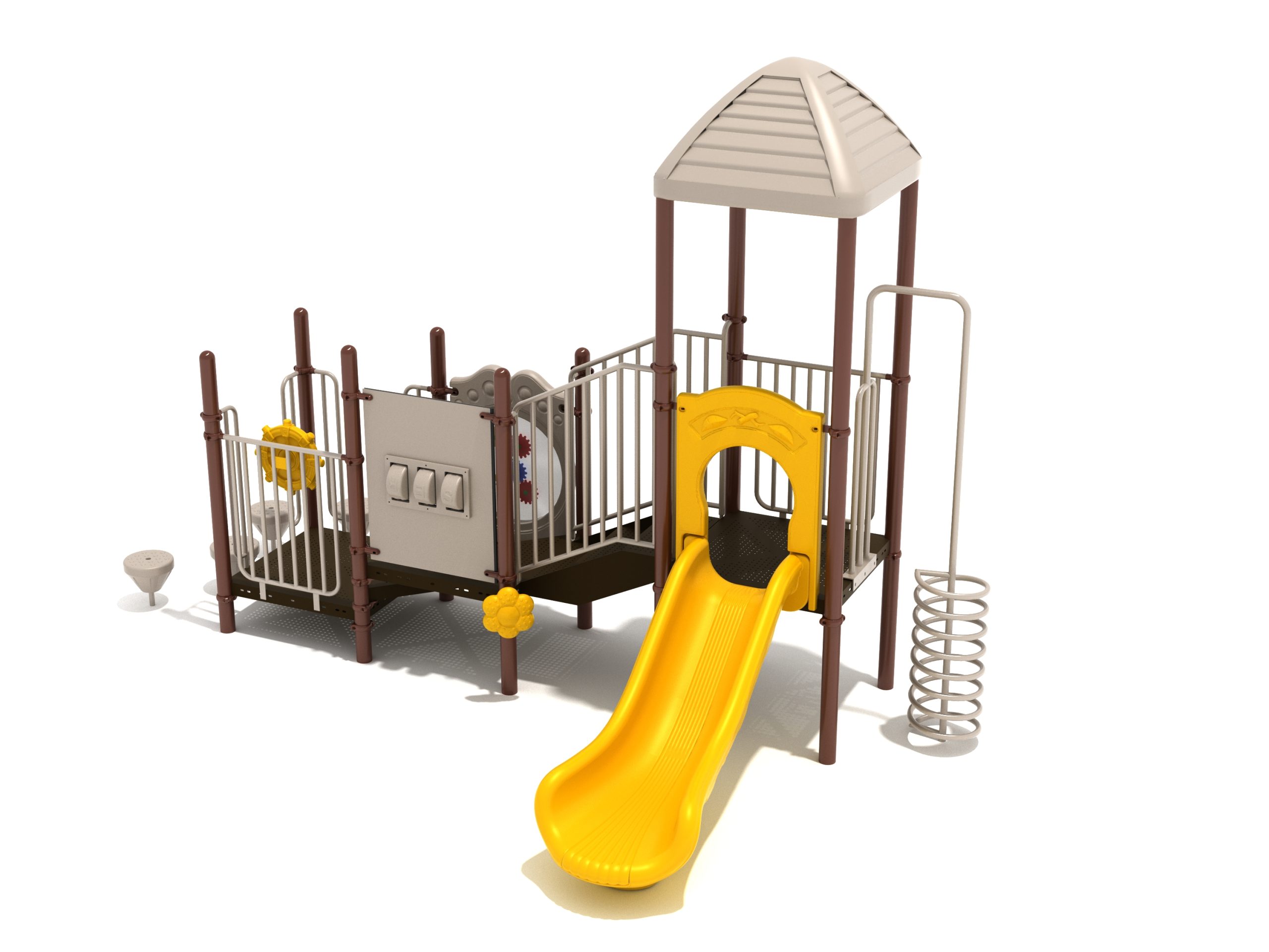 With a fall height of 36”, this stable, short, and compact structure can accommodate 26 kids. Children can start their climbing adventure safely via the 5 Pebble Climbers. Once they reach the deck, they will find a Gear Panel for hands-on interaction. Rotating these gears, kids can work on their motor skills and cognitive development. There’s also a Spelling Panel to promote learning in a playful manner and teach kids while keeping them entertained. When they walk up the deck, there’s a 3-foot Straight Slide that will slide them down and give them the bouncy effect, which will make them try it over and over. Right beside the slide, there’s a 3-foot Spiral Climber that they can use to climb down once they get bored of sliding. On the ground, the Mission Viejo also features a Rain Wheel, which is adored by preschoolers. Kids can imagine controlling a vessel and saving it from a shipwreck. Lots of fun & creative adventures are waiting for them under the Mission Viejo’s Square Roof.