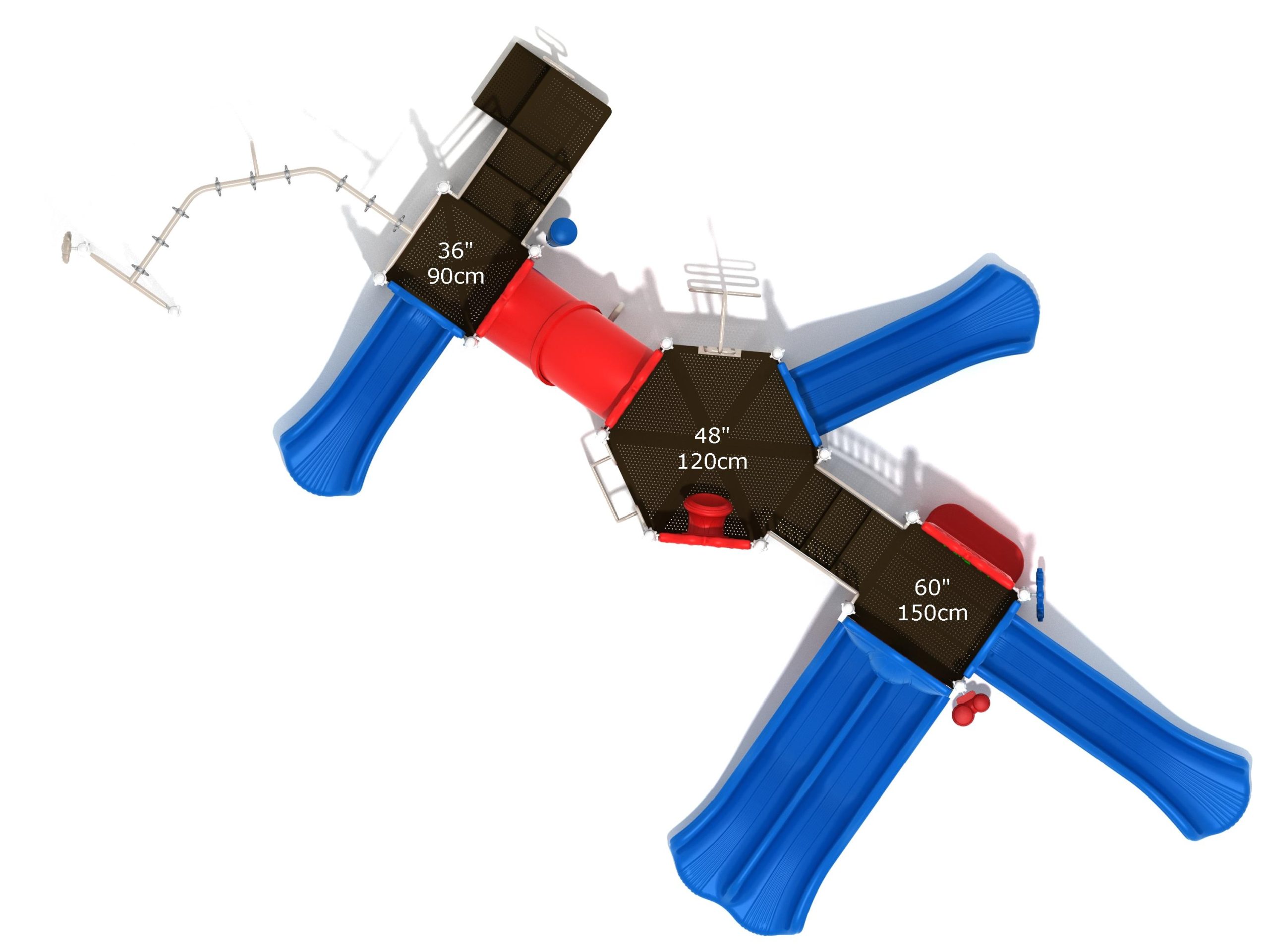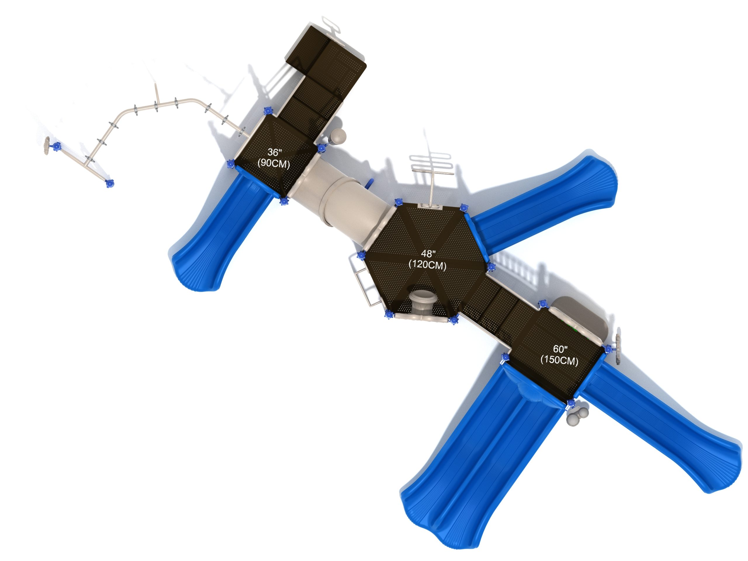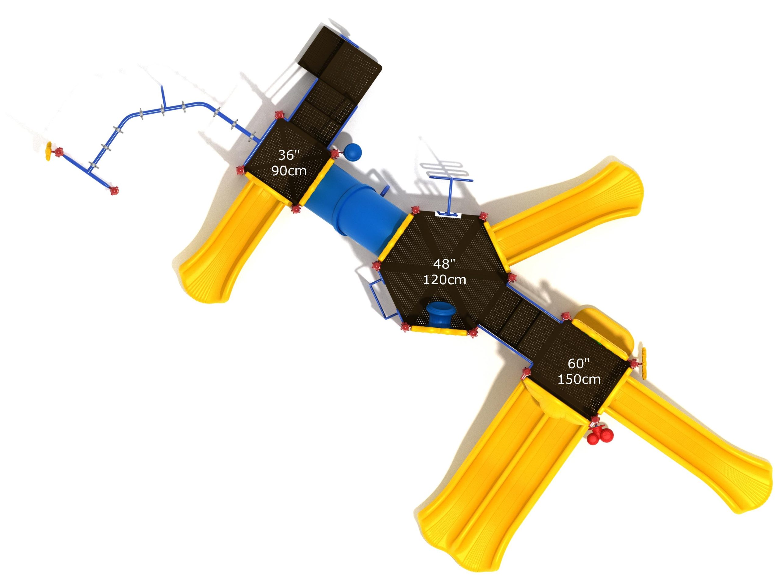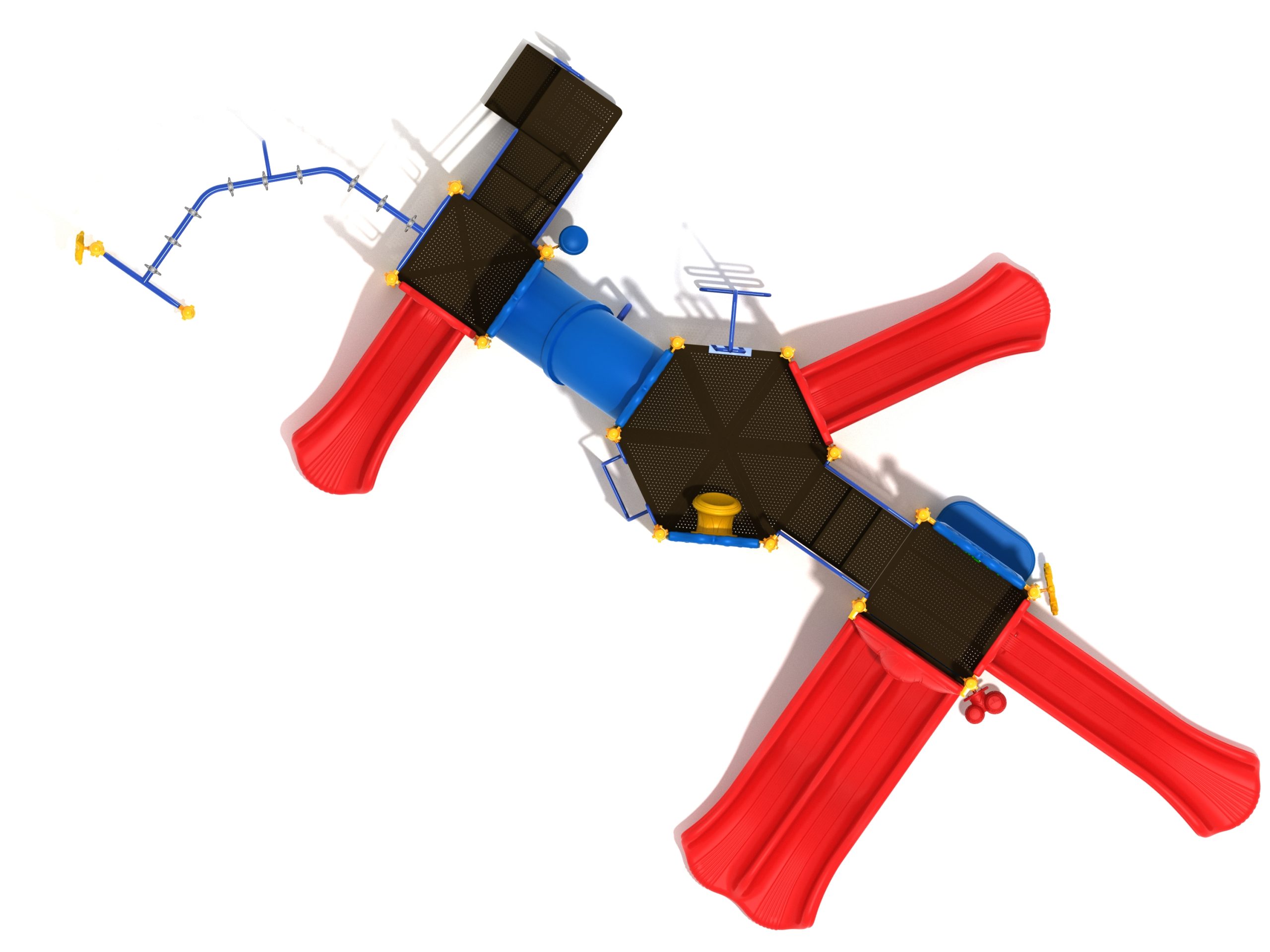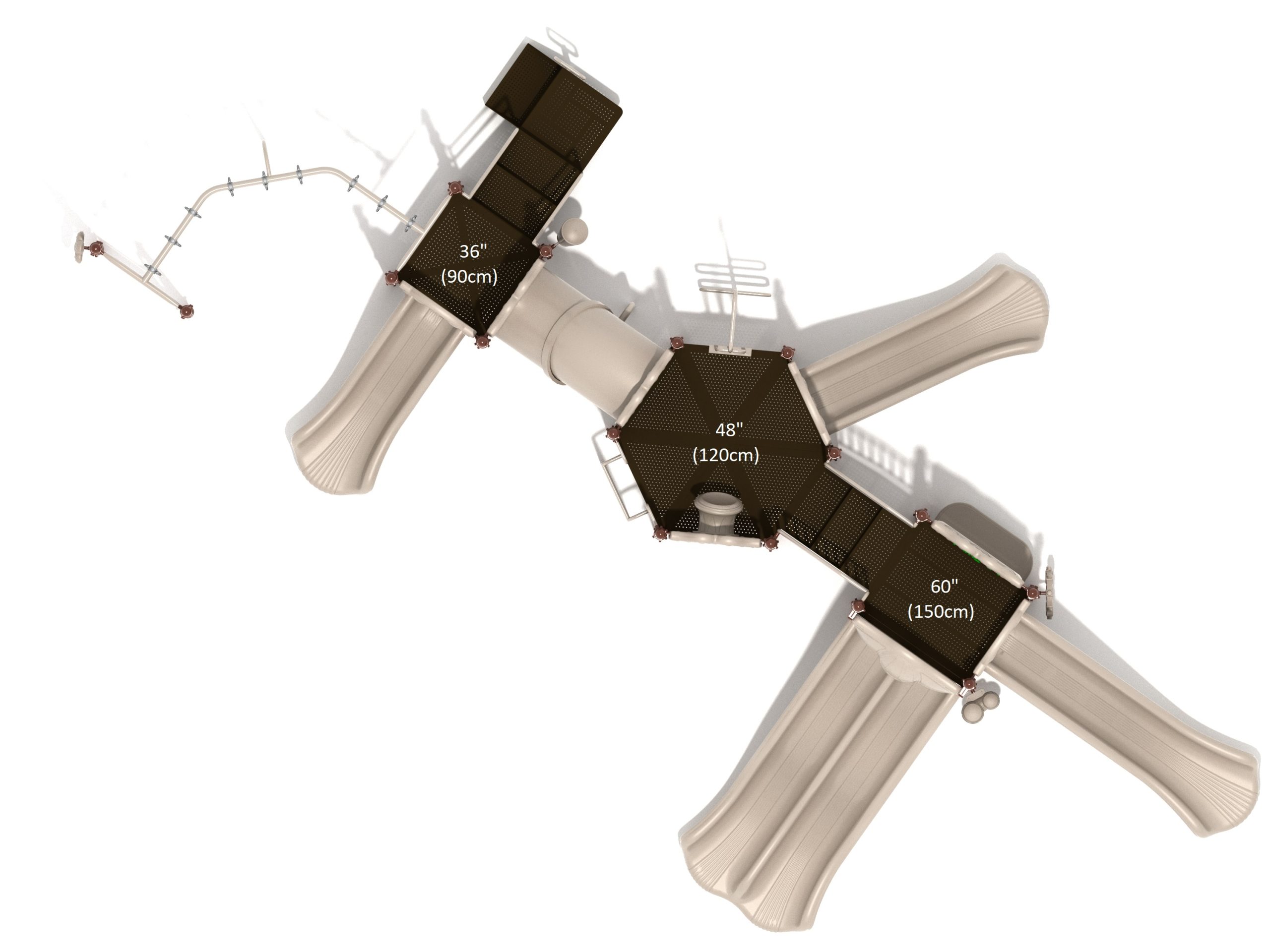 When you need to place a structure that will cater for dozens of children at the same time, the Mountain View has everything you’ll need to keep them entertained. The huge structure has three Straight Slides on multiple levels as well as a Double Wave Slide to provide the most exciting race to the bottom. On the ground level younger children not ready for climbing adventures will be able to enjoy features such as Bongos and a Single Drum for music making, a Ship’s Wheel to spin around, a Bench Panel for chatting with friends, and a Rain Wheel that makes it sound like pouring rain when spun. There’s a large Drum Panel and Gear Panel on the upper level to keep children entertained with an interactive experience. For children who love nothing more to swing, climb and hang, they’ll be pleased to see the Mountain View also has a 90 Degree Swinging Ring Ladder to monkey their way over a fast-flowing river or exotic jungle canopy onto a platform before crawling on hands and knees through the Incline Tube Bridge. A Snake Climber and Vertical Climber offer two ways to scale the structure and require agility and flexibility.