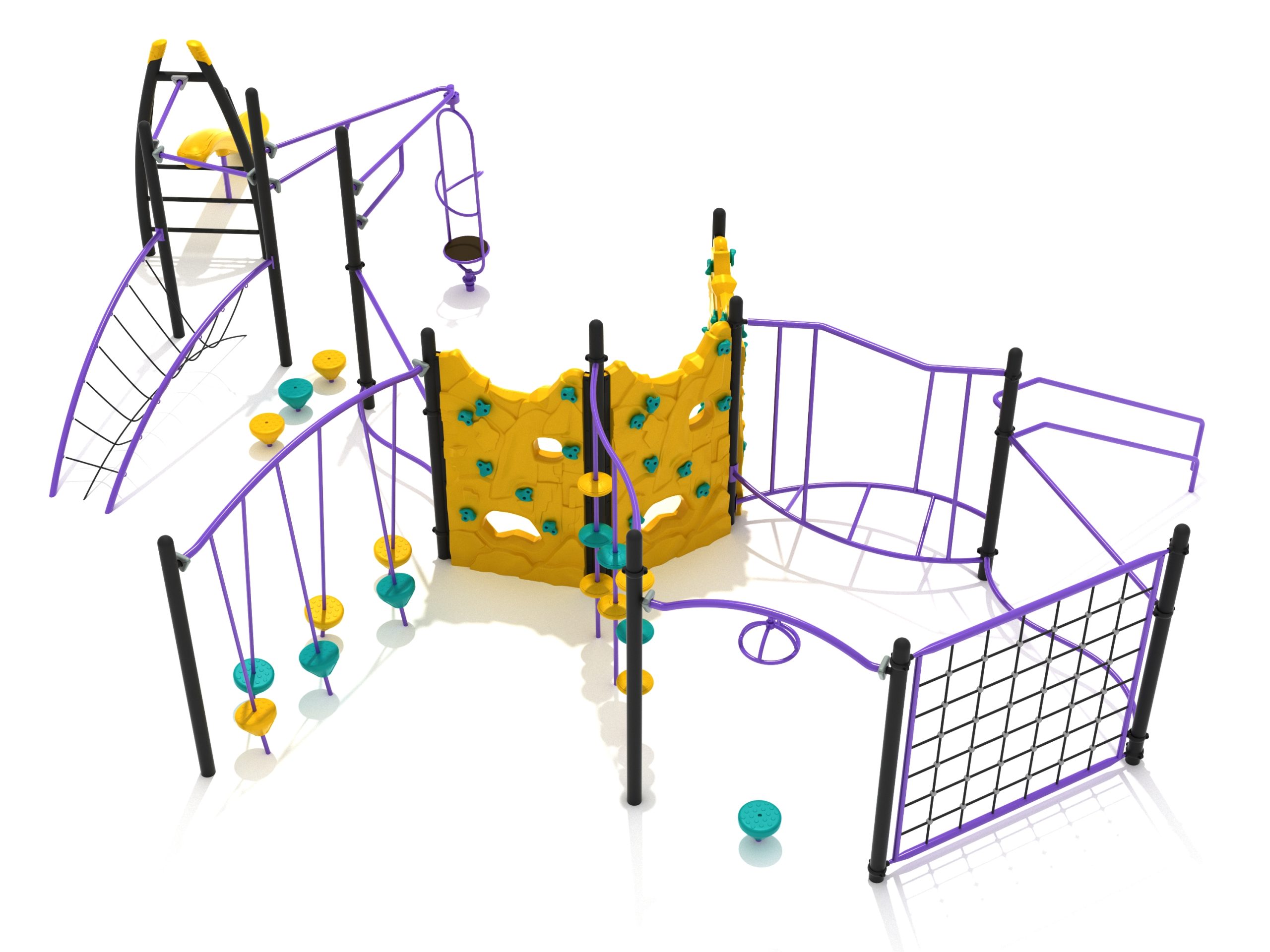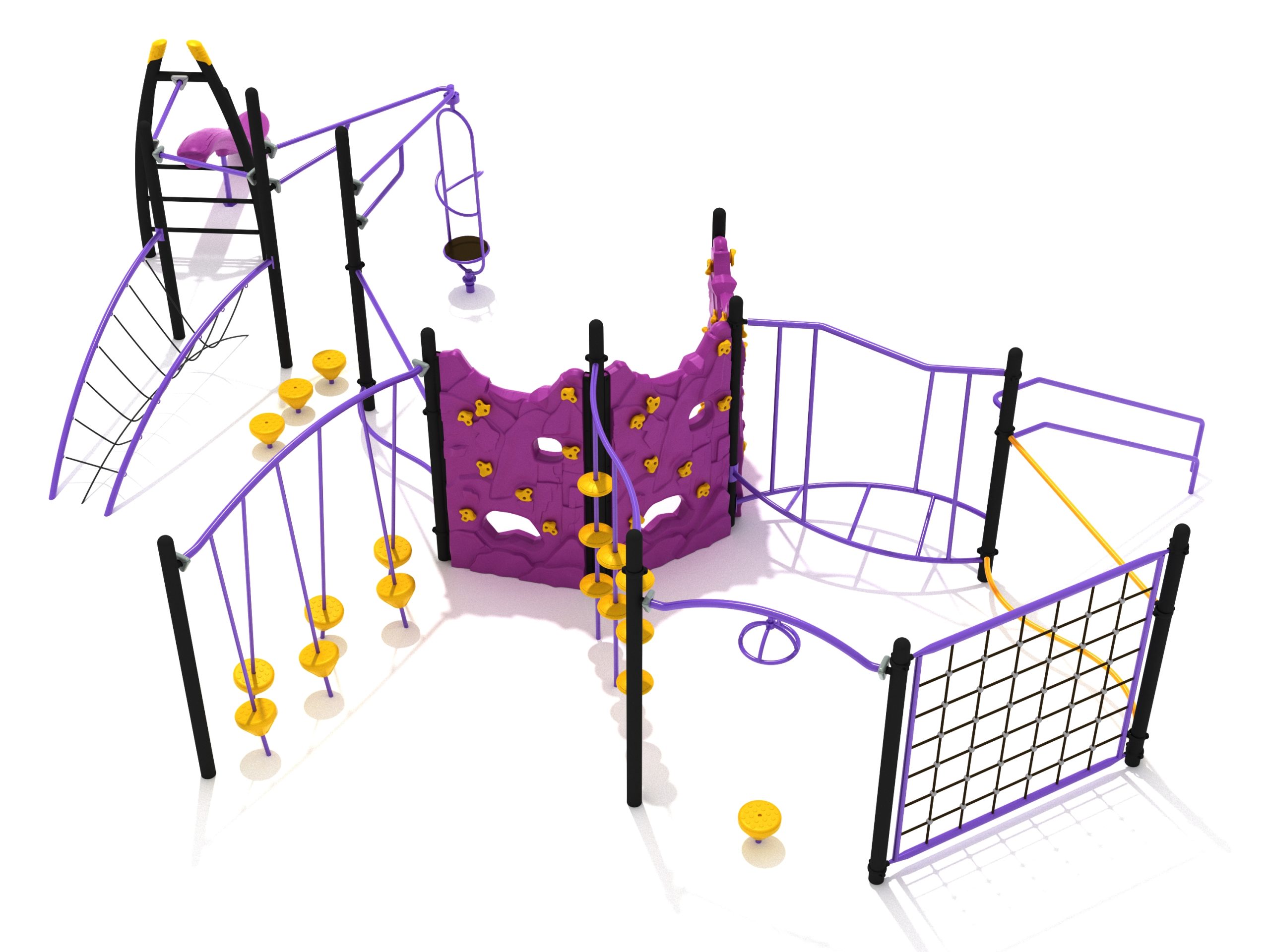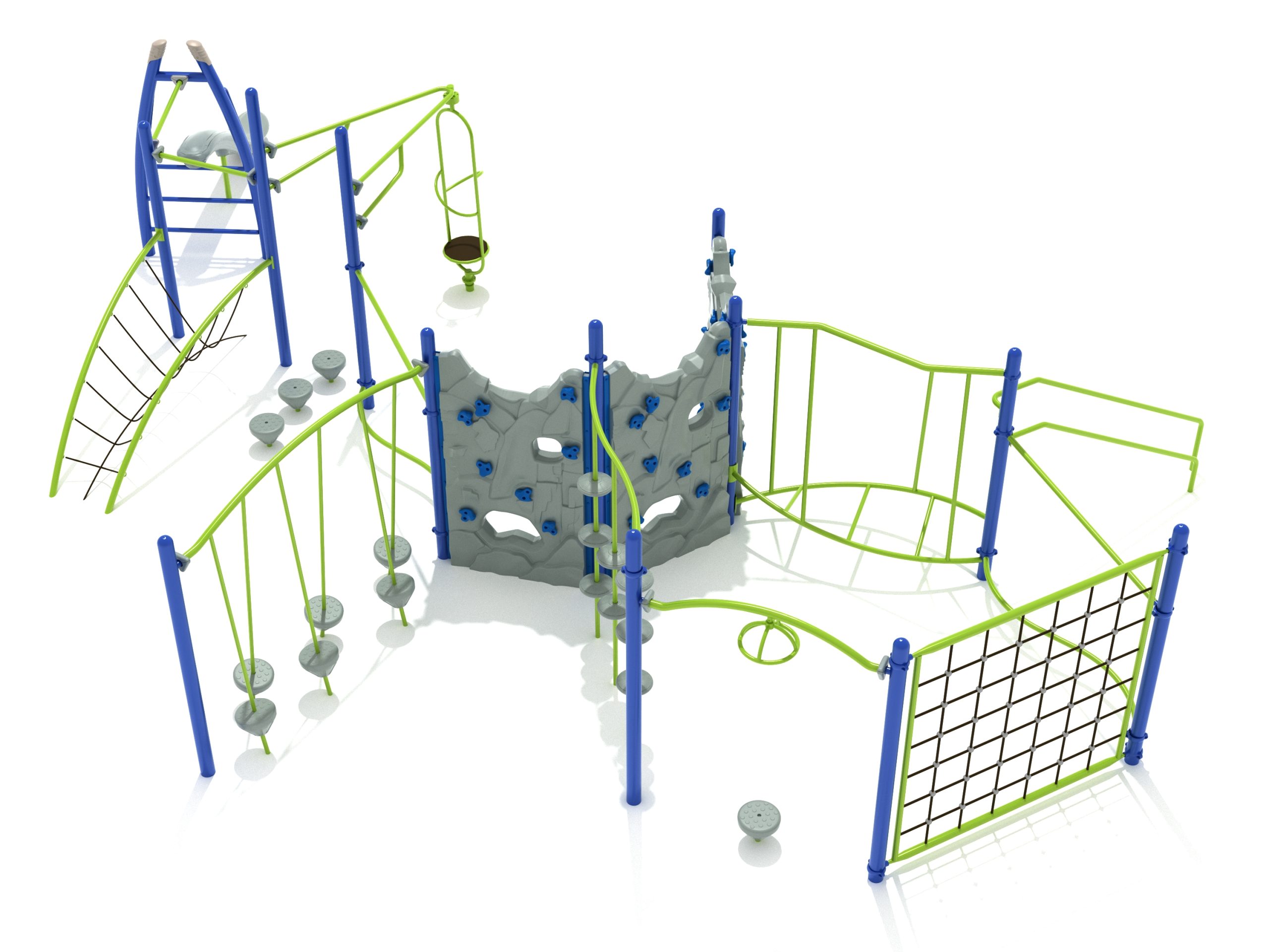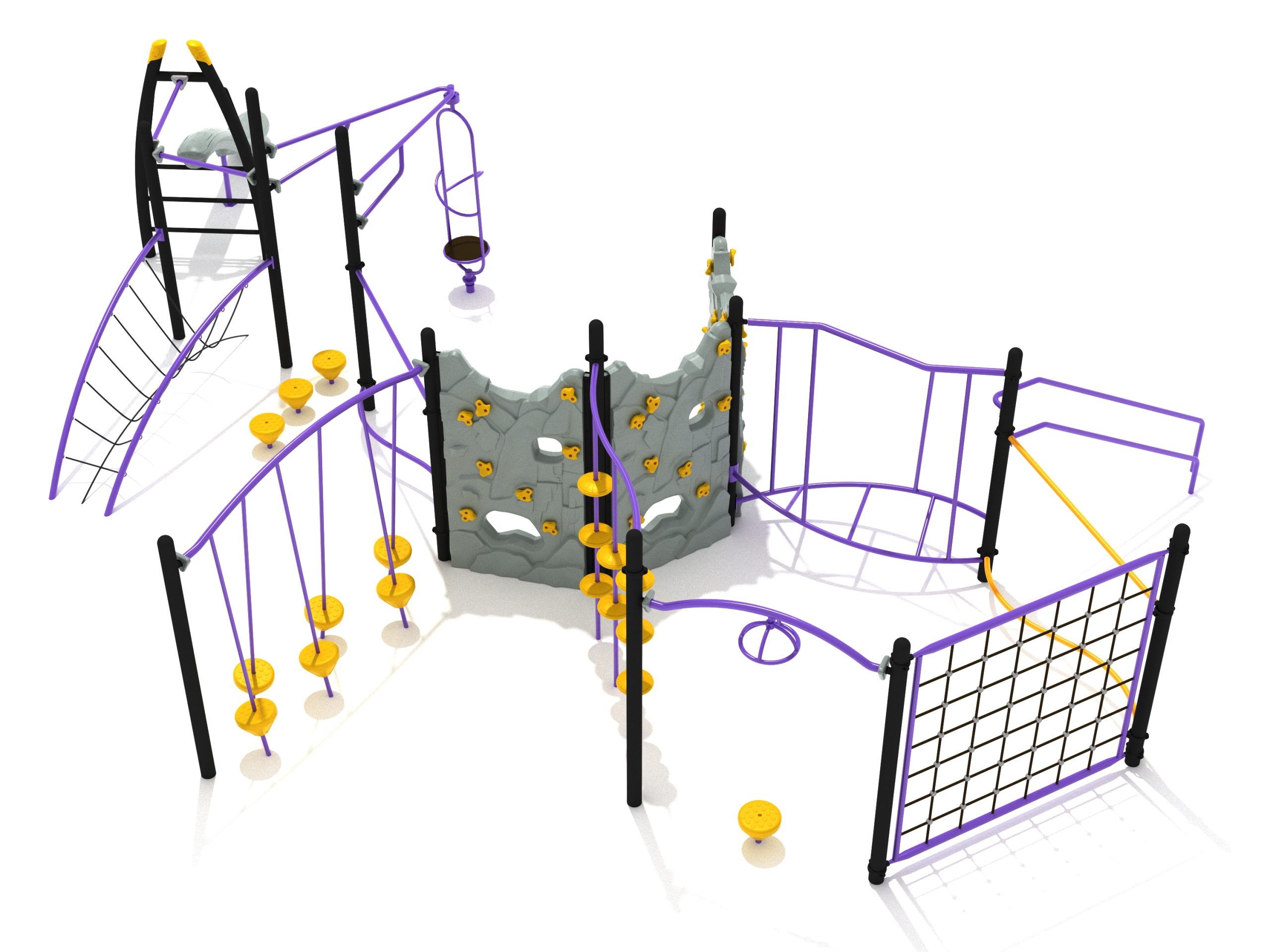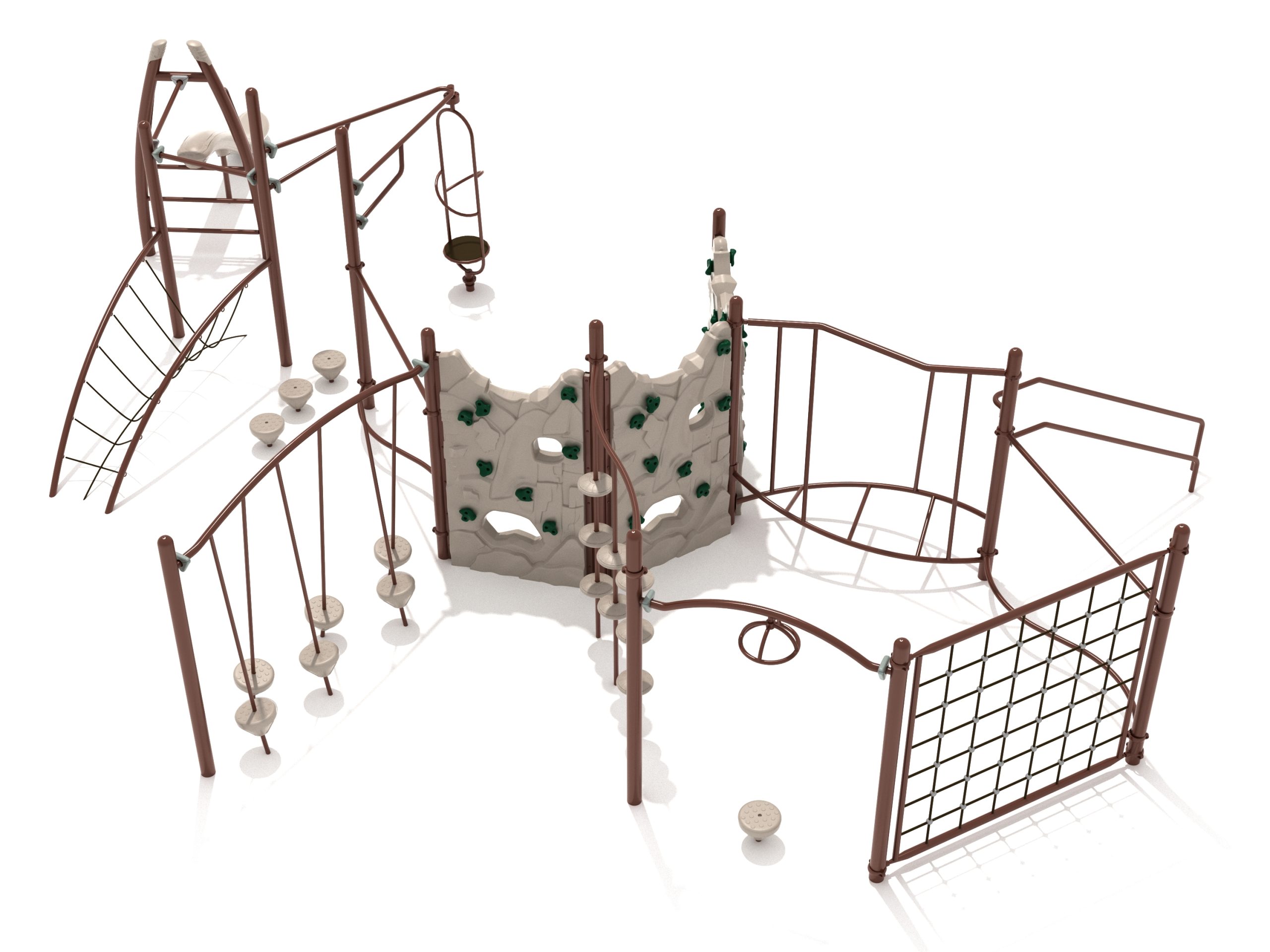 When you want kids to improve their physical fitness while having immense amounts of fun at the same time, add the Pine Valley to your playground for hours of fun. Every one of the features on the structure helps children develop their sense of balance and coordination, from the Saddle Slide alternative to a regular slide to the multiple S Balance Bridges and the Zig Zag Challenge Bridge. Children will have to learn to make their feet, hands and center of gravity work together on the huge Net Climber that spans a section as well as on the Arch Rope Bridge which only has one central rope to stand on. The play equipment comes with three Craggy Climber Straight Sections with lots of hand holds and spaces to place feet, and only the bravest children will be able to scale across all three sections without falling off. A Tilted Pebble Bridge and Inclined Uneven Bars will work different parts of the body, and kids who want to add some dizzying fun to their day can have a blast on the Overhead Spinner with Pebble or use the Standing Orbital Spinner.