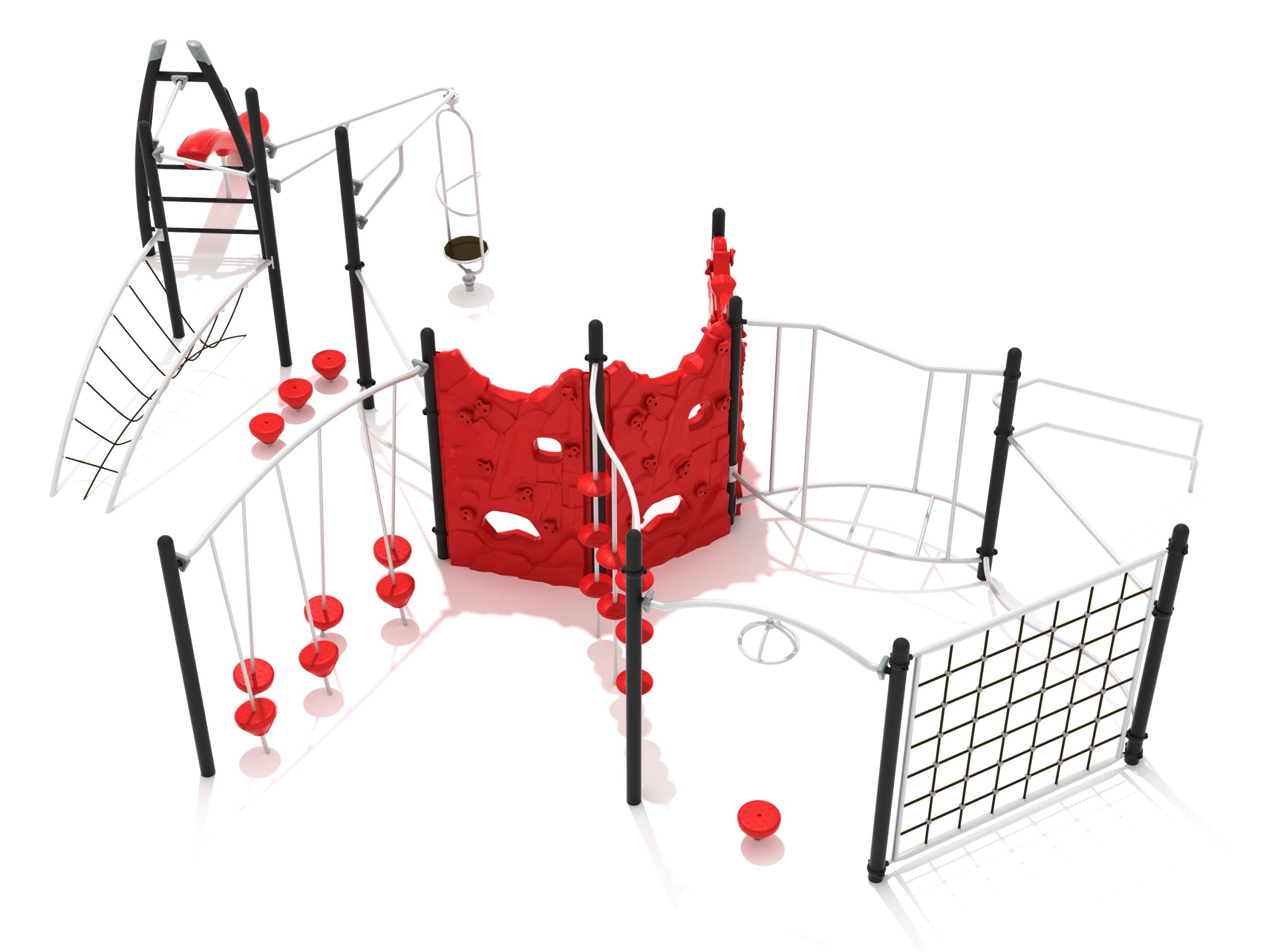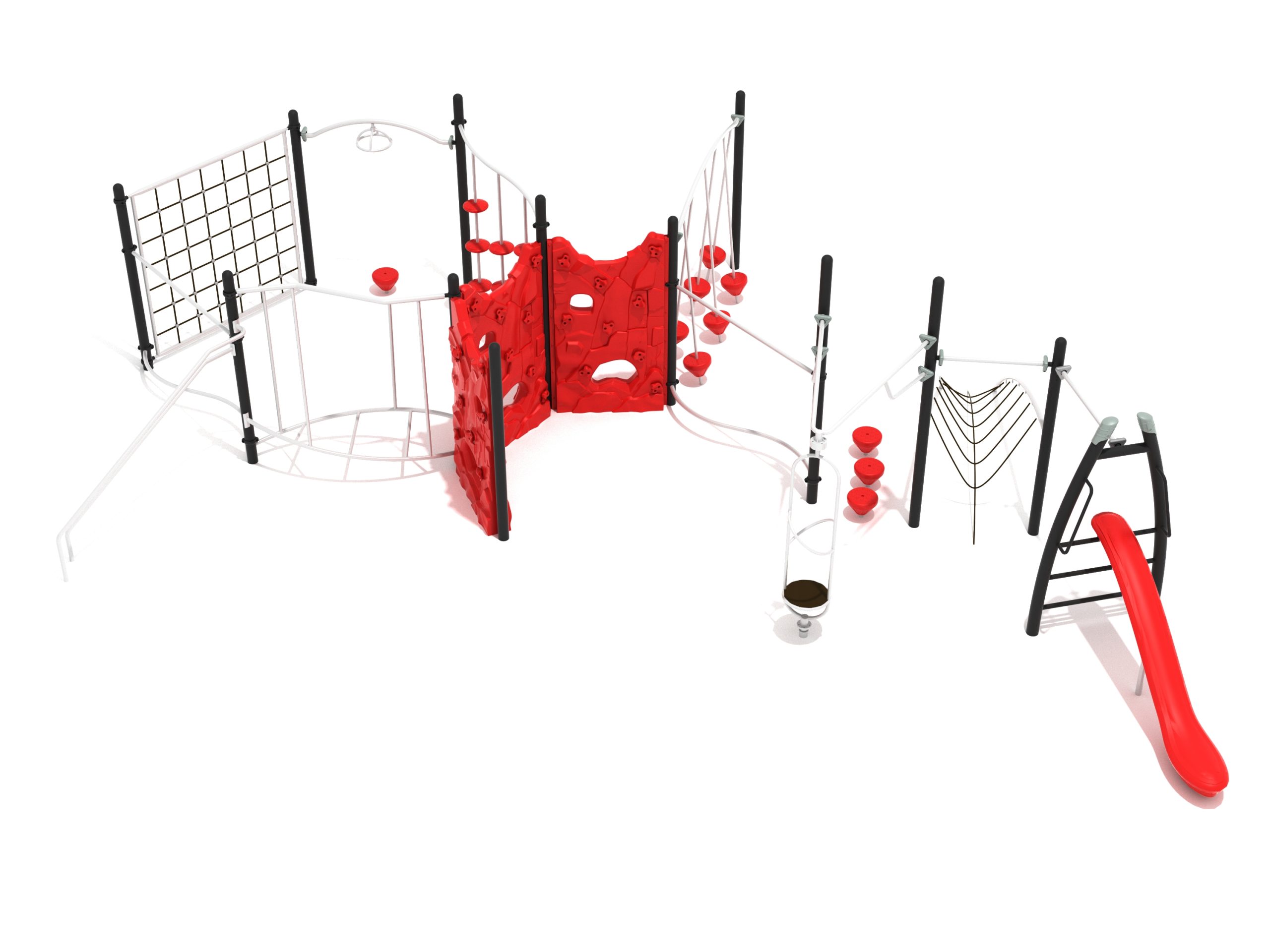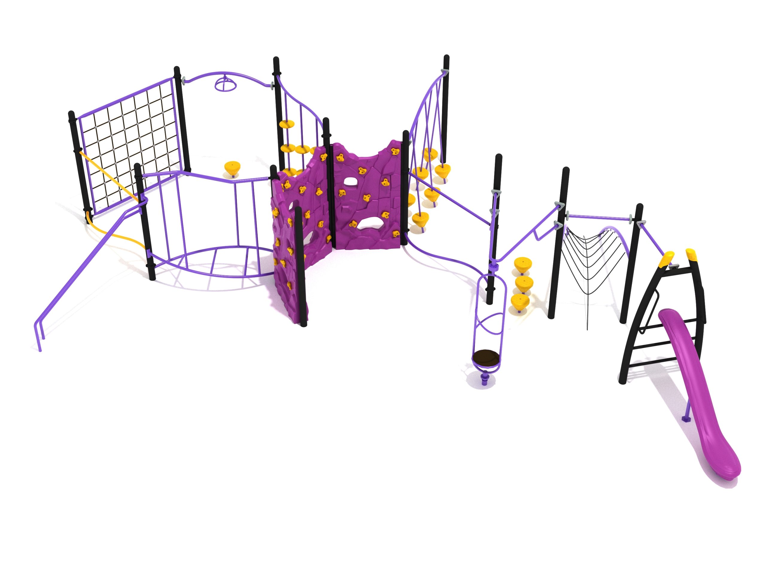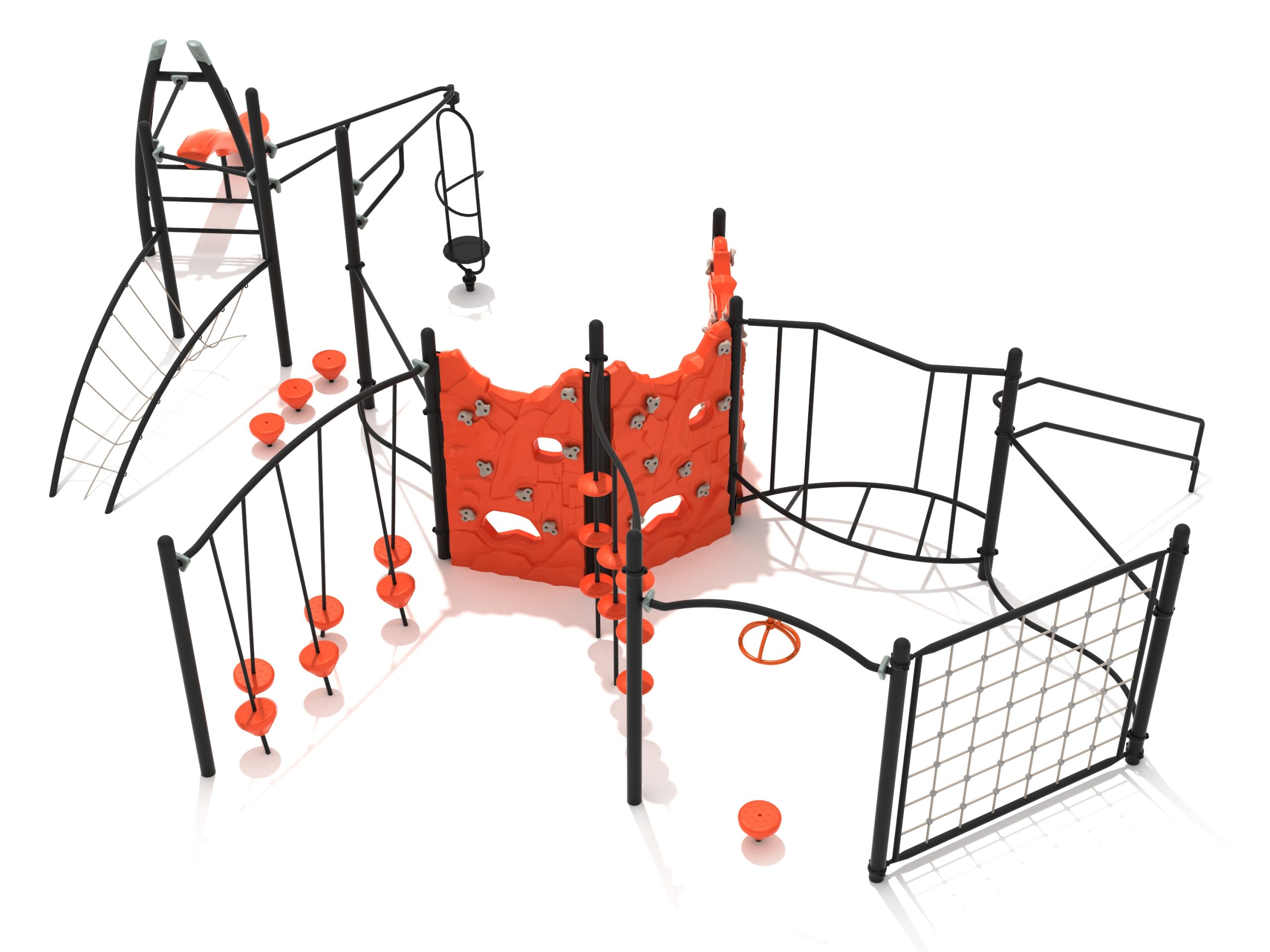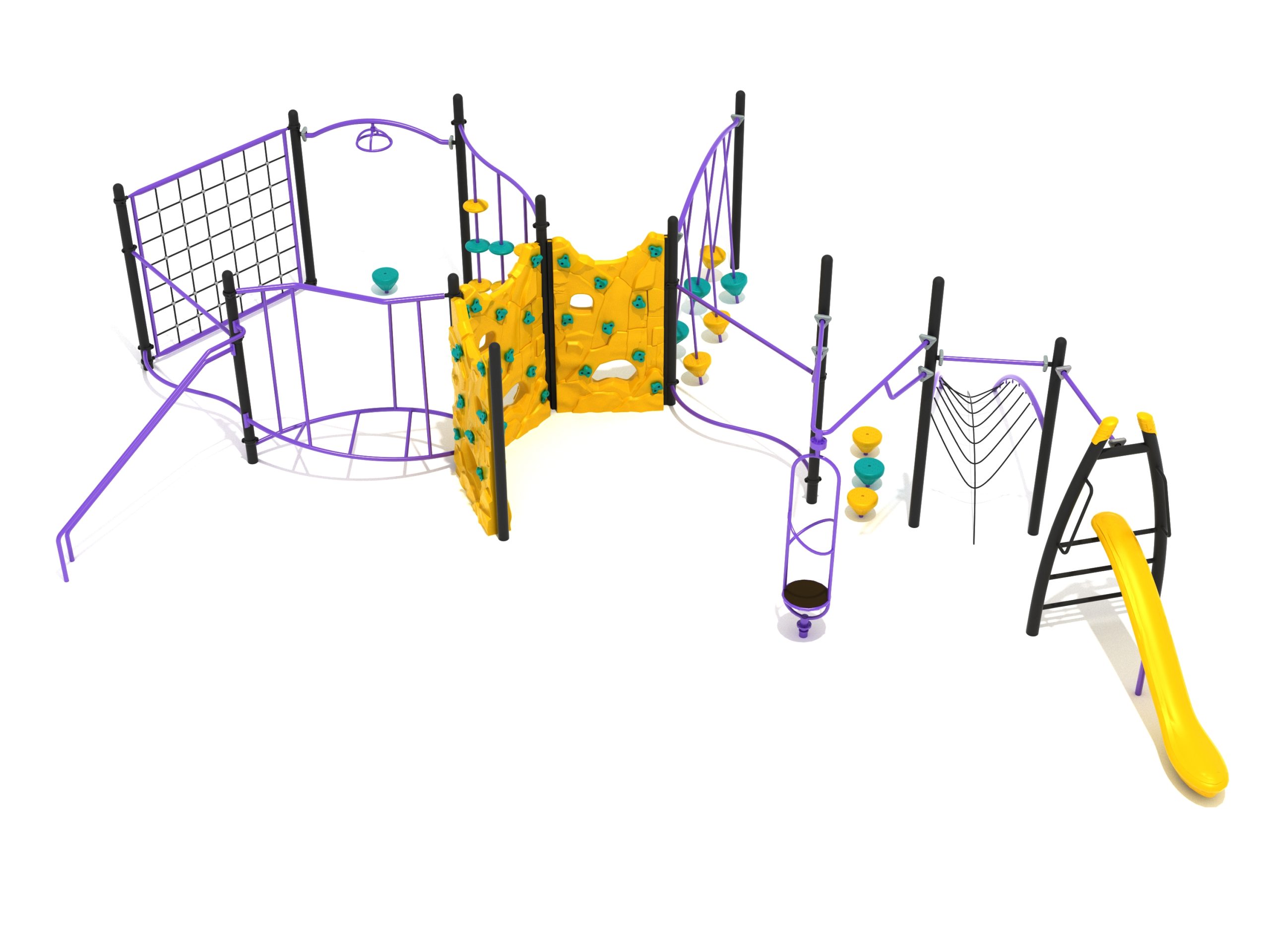 When you want kids to improve their physical fitness while having immense amounts of fun at the same time, add the Pine Valley to your playground for hours of fun. Every one of the features on the structure helps children develop their sense of balance and coordination, from the Saddle Slide alternative to a regular slide to the multiple S Balance Bridges and the Zig Zag Challenge Bridge. Children will have to learn to make their feet, hands and center of gravity work together on the huge Net Climber that spans a section as well as on the Arch Rope Bridge which only has one central rope to stand on. The play equipment comes with three Craggy Climber Straight Sections with lots of hand holds and spaces to place feet, and only the bravest children will be able to scale across all three sections without falling off. A Tilted Pebble Bridge and Inclined Uneven Bars will work different parts of the body, and kids who want to add some dizzying fun to their day can have a blast on the Overhead Spinner with Pebble or use the Standing Orbital Spinner.