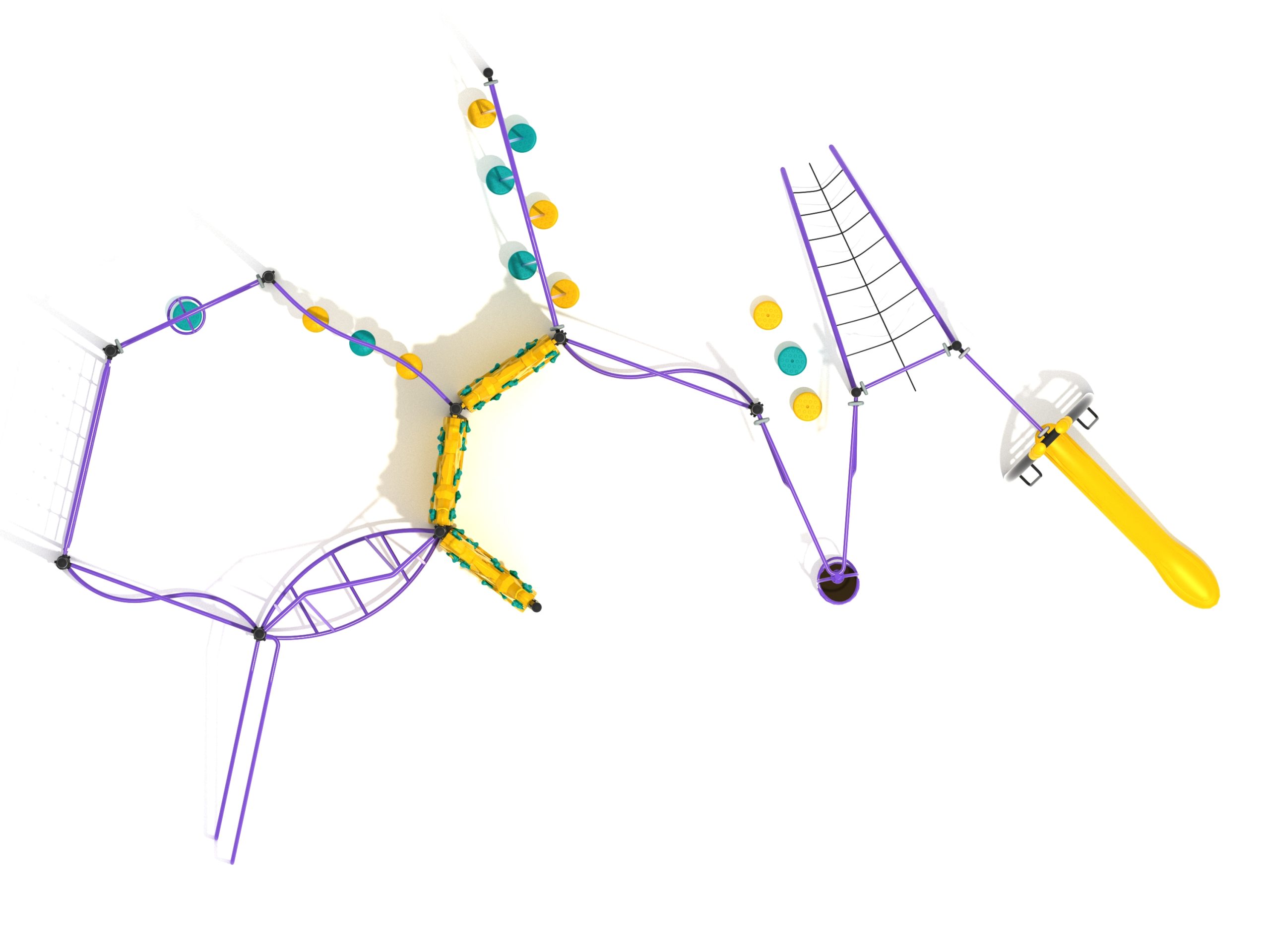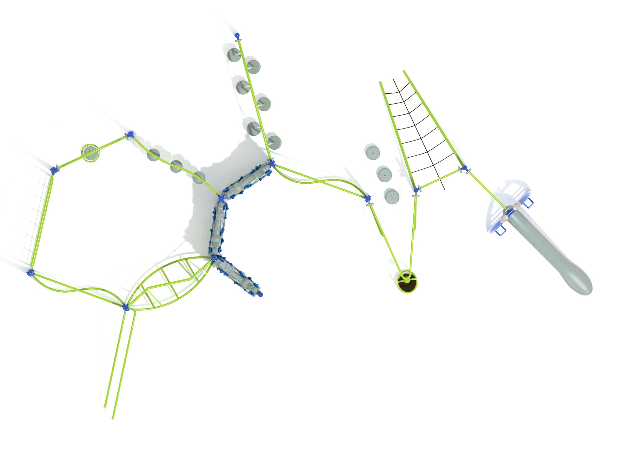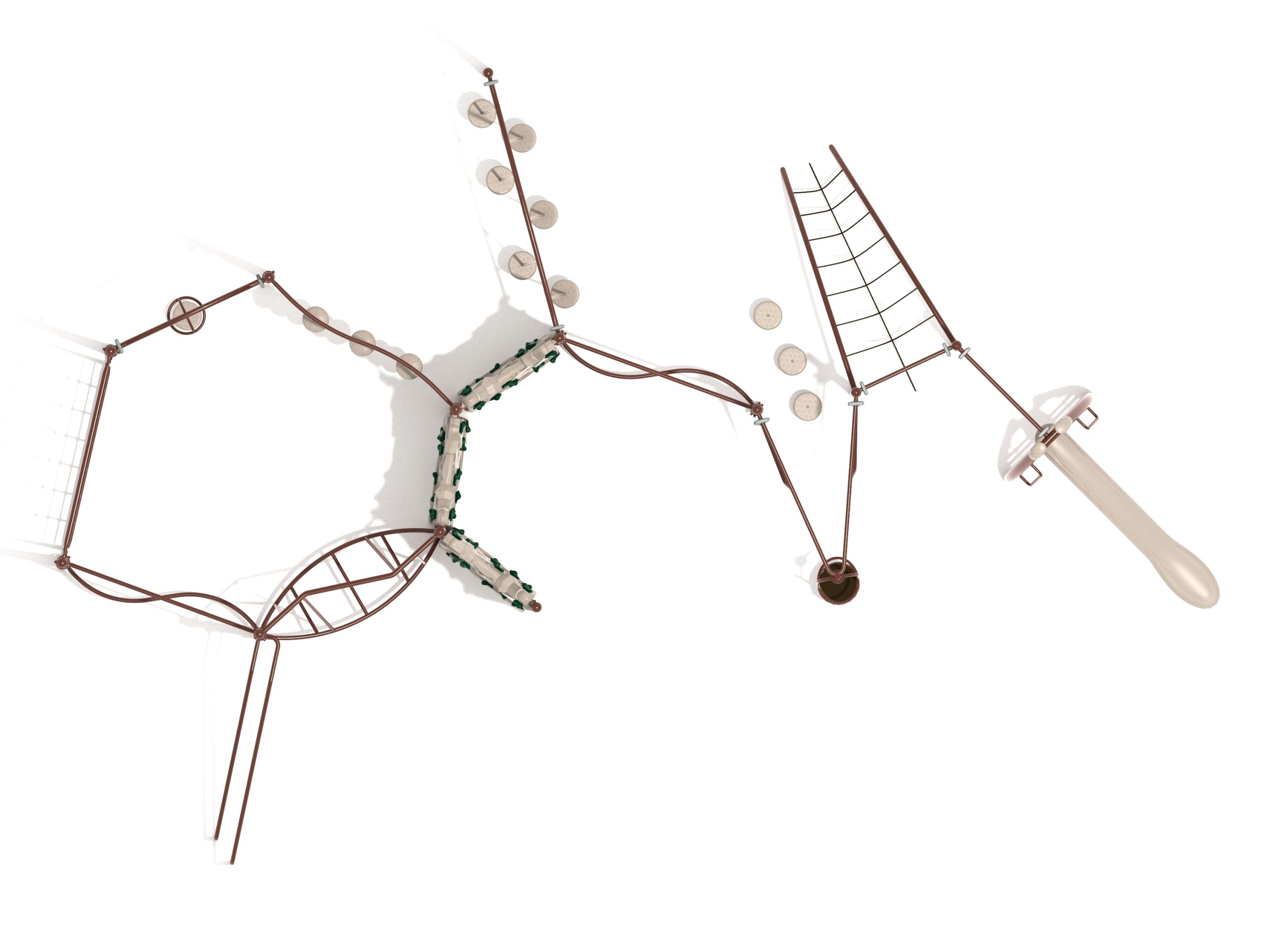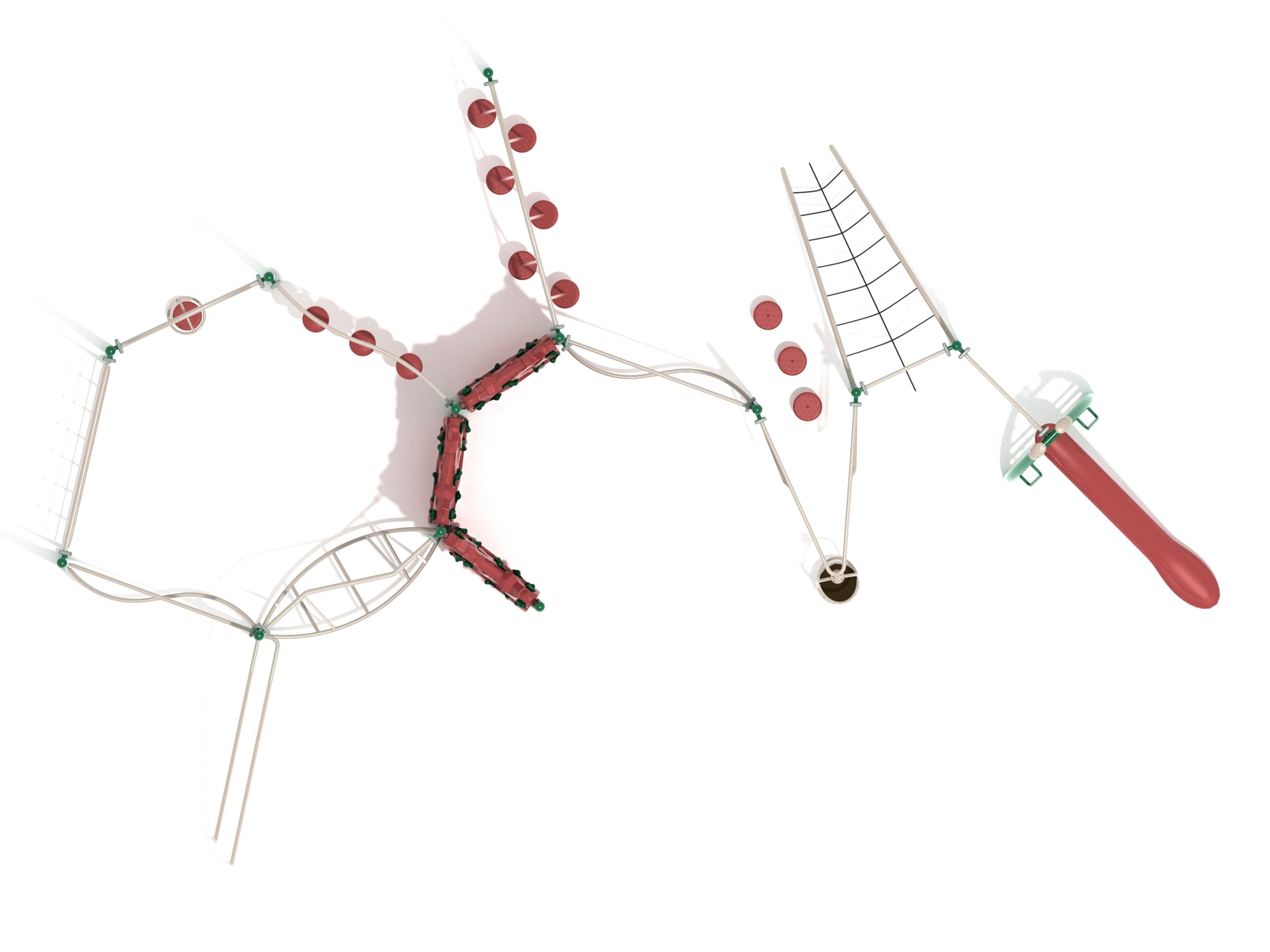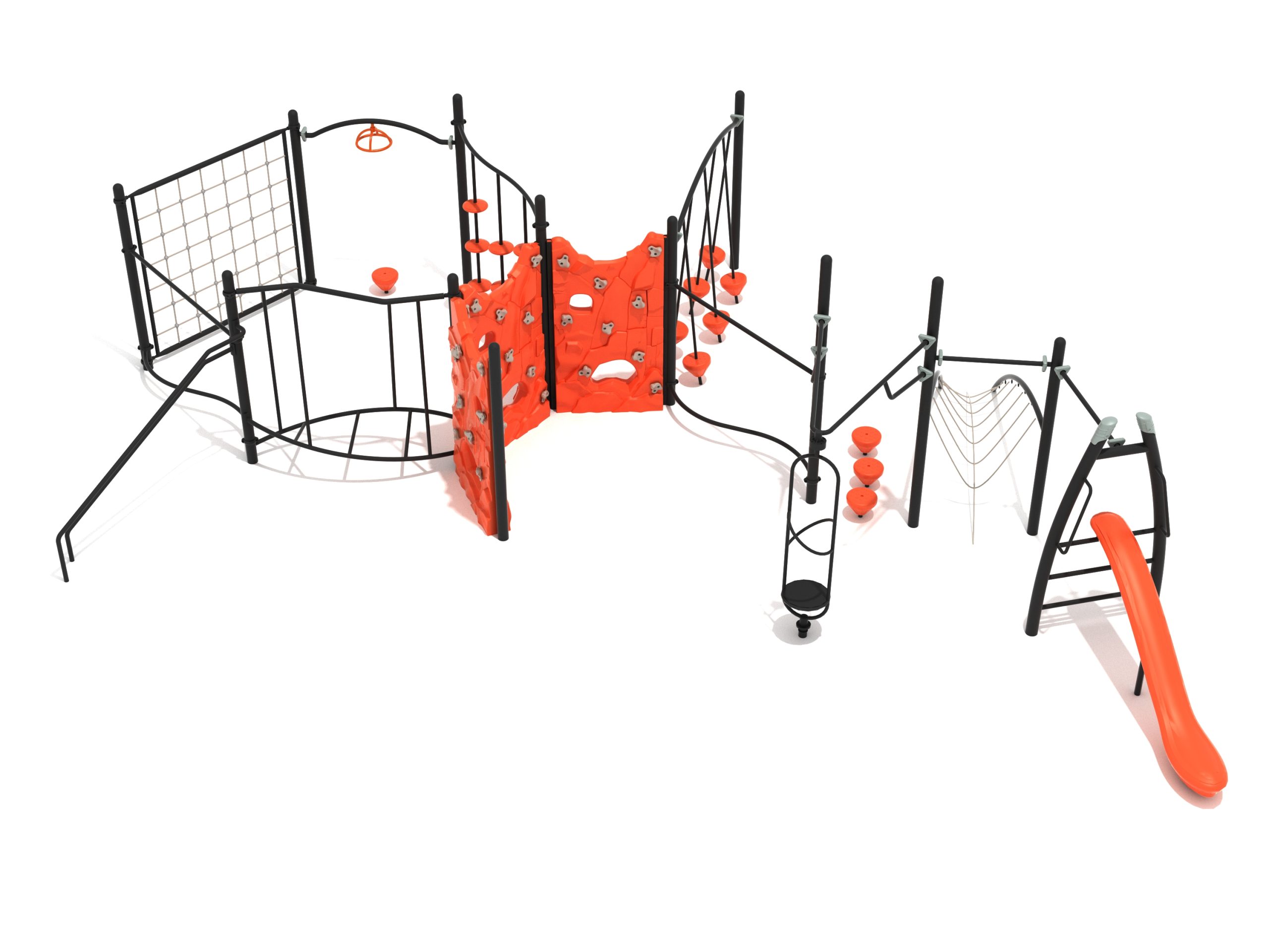 When you want kids to improve their physical fitness while having immense amounts of fun at the same time, add the Pine Valley to your playground for hours of fun. Every one of the features on the structure helps children develop their sense of balance and coordination, from the Saddle Slide alternative to a regular slide to the multiple S Balance Bridges and the Zig Zag Challenge Bridge. Children will have to learn to make their feet, hands and center of gravity work together on the huge Net Climber that spans a section as well as on the Arch Rope Bridge which only has one central rope to stand on. The play equipment comes with three Craggy Climber Straight Sections with lots of hand holds and spaces to place feet, and only the bravest children will be able to scale across all three sections without falling off. A Tilted Pebble Bridge and Inclined Uneven Bars will work different parts of the body, and kids who want to add some dizzying fun to their day can have a blast on the Overhead Spinner with Pebble or use the Standing Orbital Spinner.