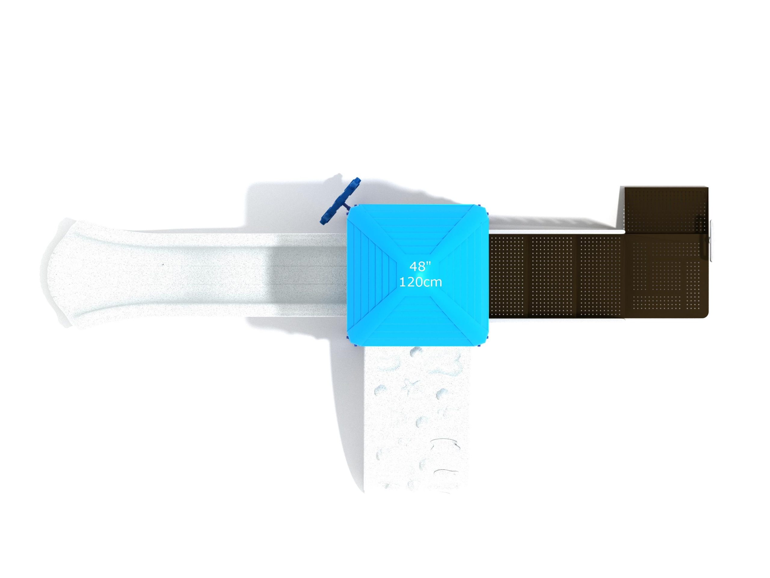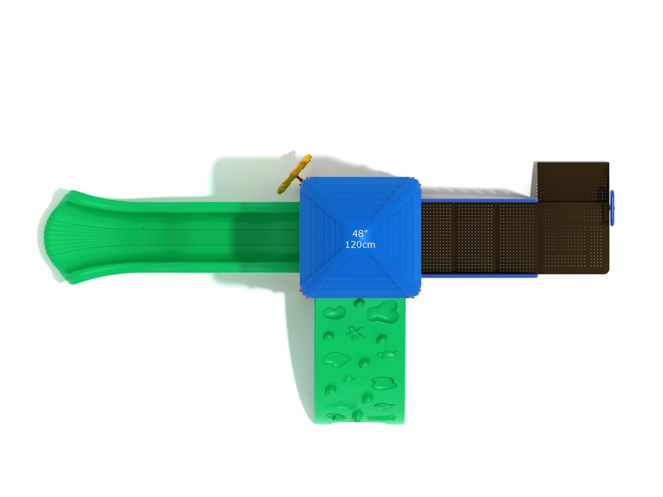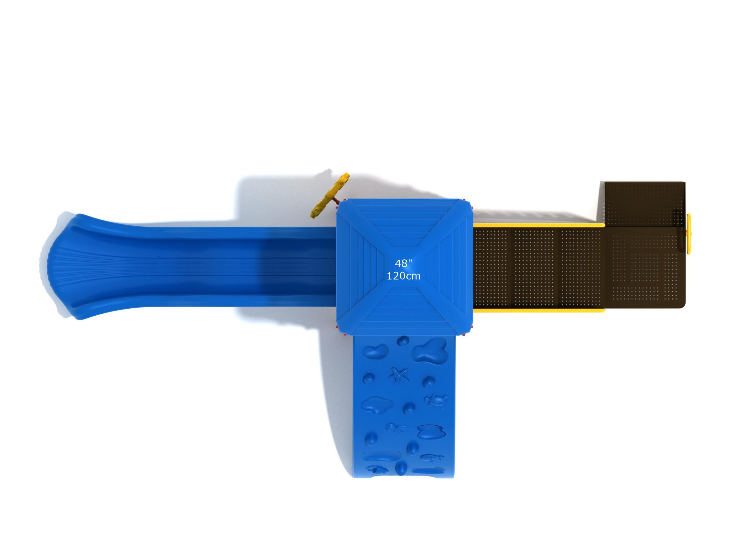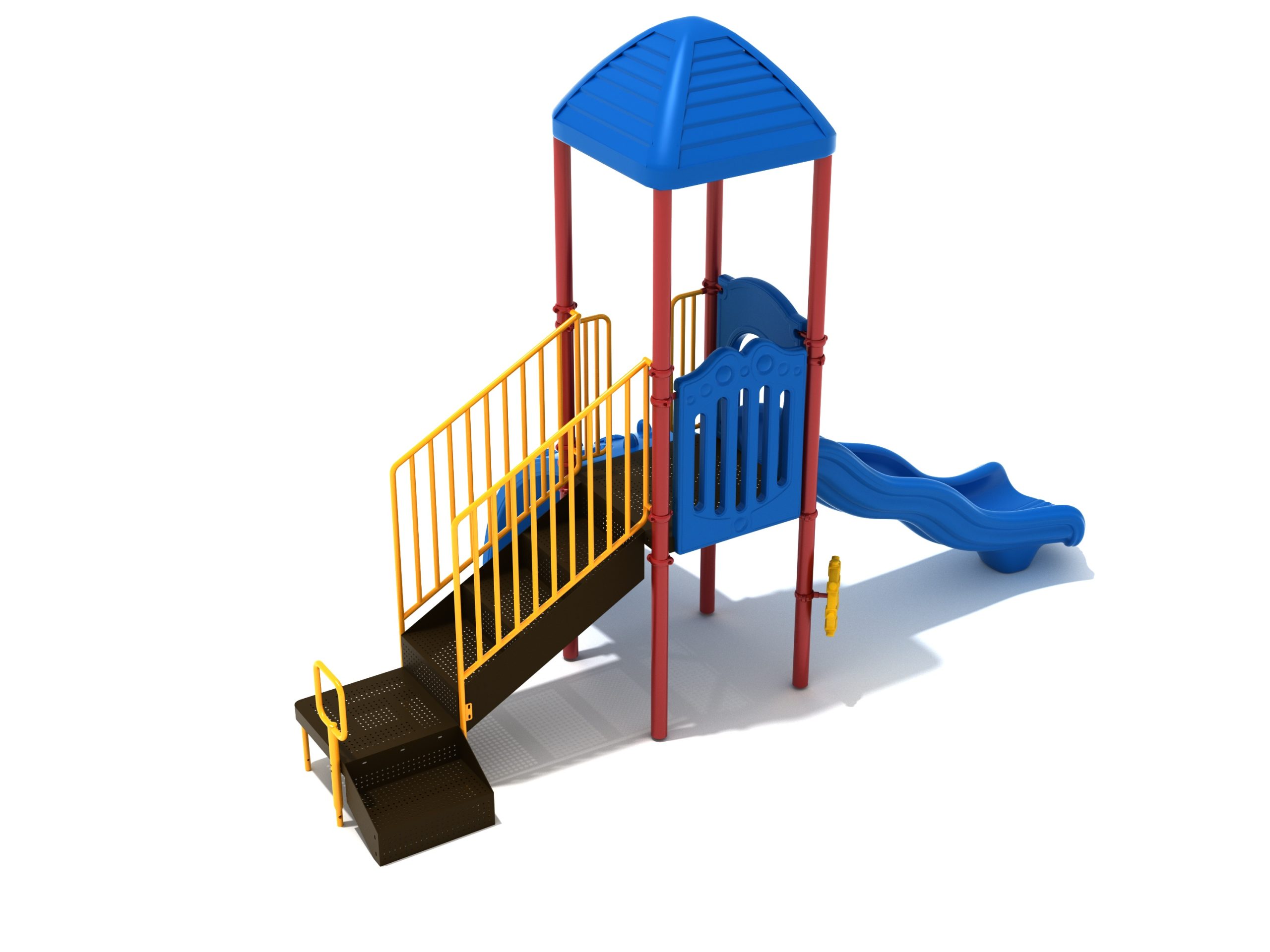 Plymouth is a simple play structure equipped with all of the basic features that kids love. Its most exciting component is the four foot wave slide which comes down from its highest deck. This slide has a wavy shape that makes it particularly exciting every tie the child uses it. To reach the slide, children can scale the Sea Creature Climber. This exciting and decorative climbing piece is molded with three dimensional crabs, starfish, and other ocean animals, which kids can use as hand grips as they make their way up. There is also a set of transfer station stairs which is easily accessible, even to children with physical disabilities. There is even a Ship’s Wheel at the base of the structure which kids can use to fuel imaginary adventures at sea. The whole structure is capped off with a square roof piece.