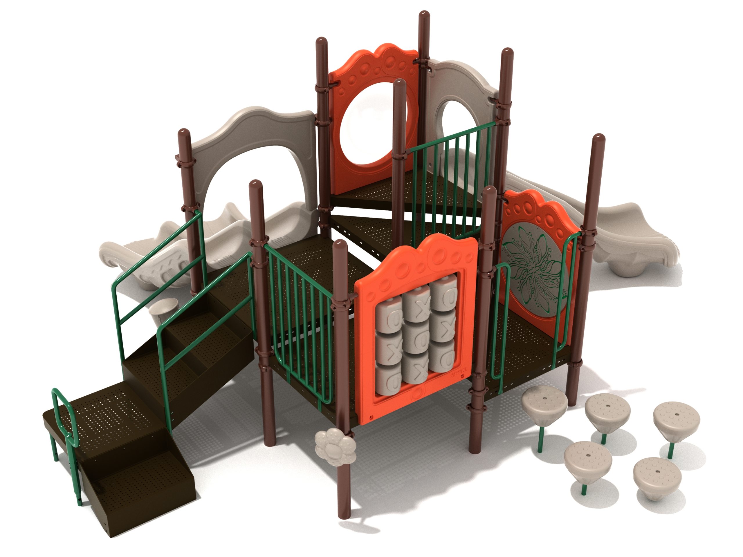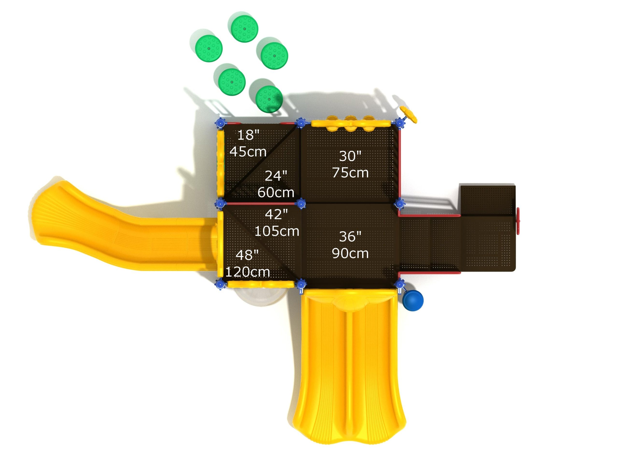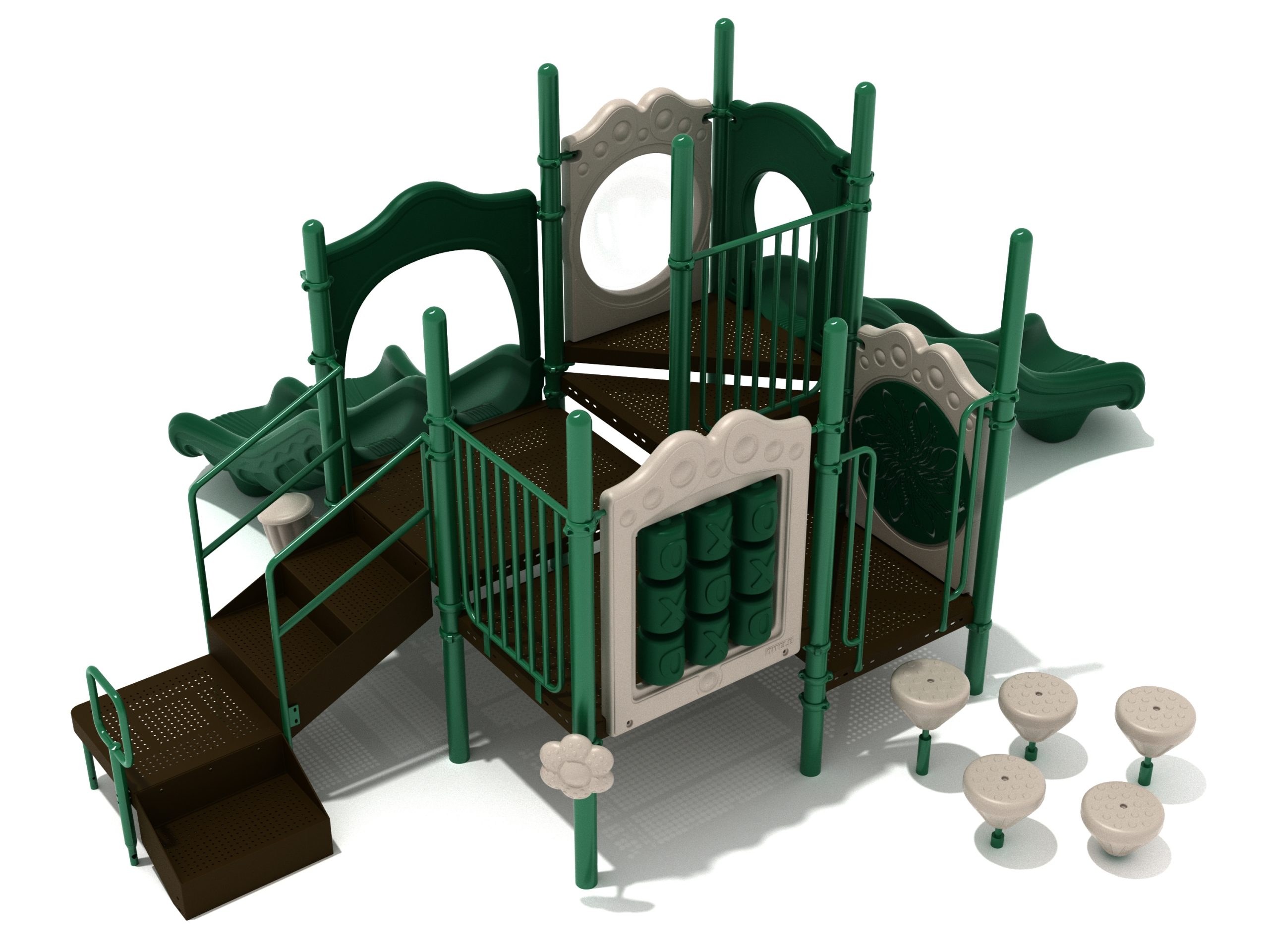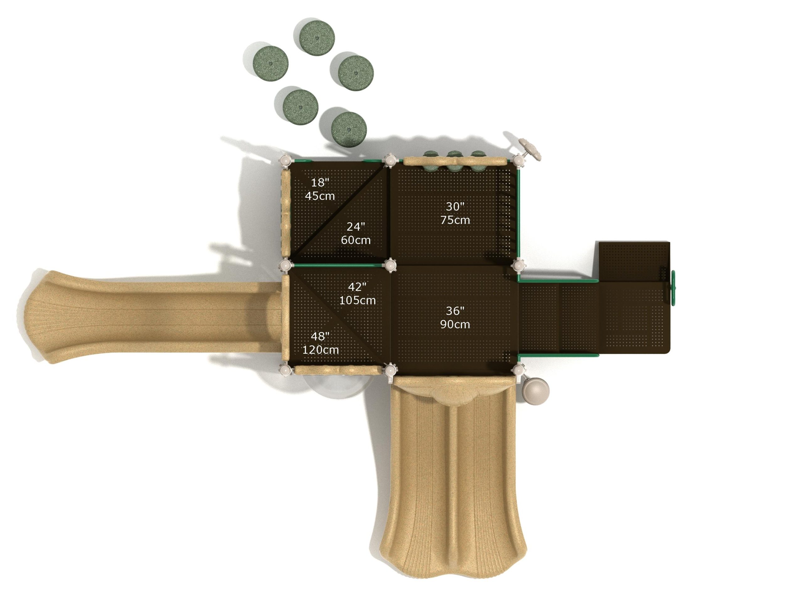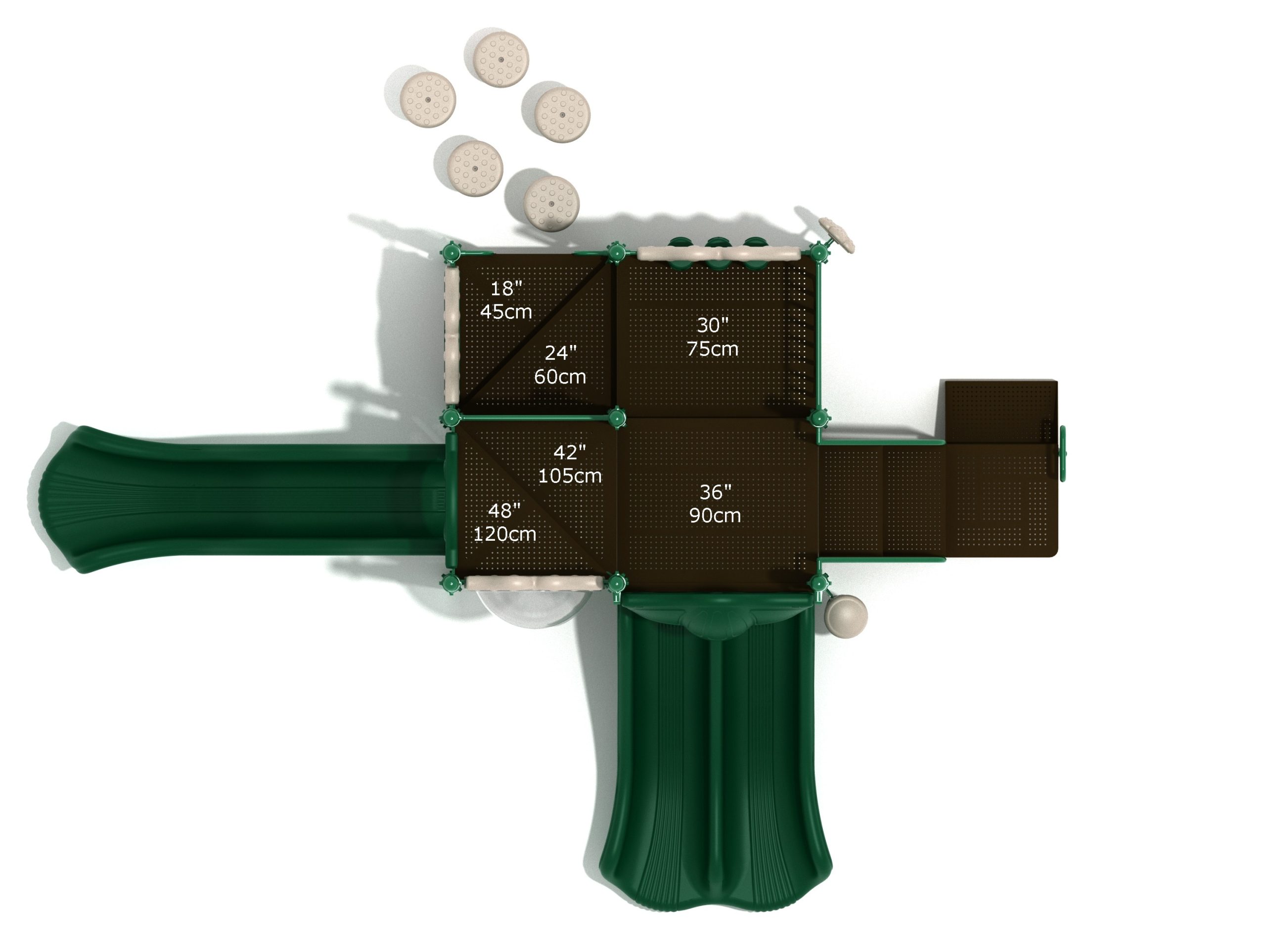 With 3 sides and 4 decks of varying heights, Red Bud is a must-have in every playground. It gives kids a winding & interesting navigating experience that hones their physical skills. They start their adventure via the Maze Panel for solitary game time. Or, they may choose the Tic Tac Toe Panel for cooperative play with friends, socializing, and making friends. The Pebble Climber comes next. It lets kids develop strength and coordination. There’s a large square deck area that keeps their baby steps moving without colliding with each other. Then comes the Bubble Panel, where kids can get a view of your playground. While on the upper 48’’ deck, they can imagine themselves as hikers reaching the summit of a tall hill. All in all, Red Bud allows for safe and exciting play for kids under the age of 5.