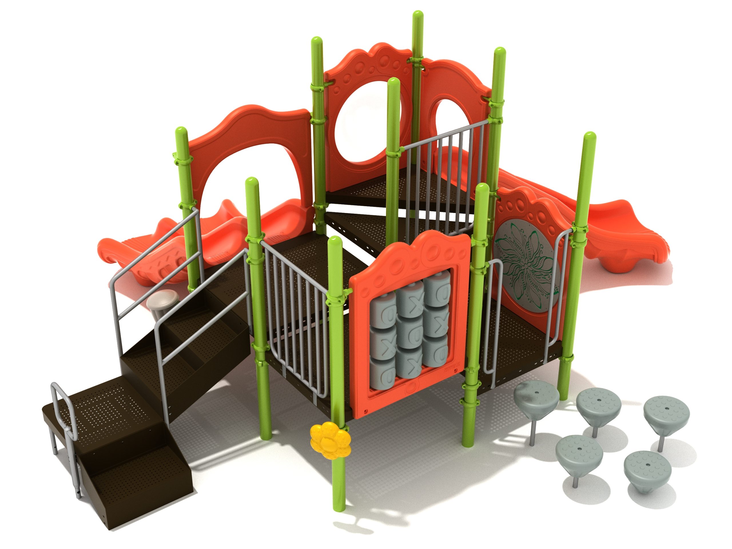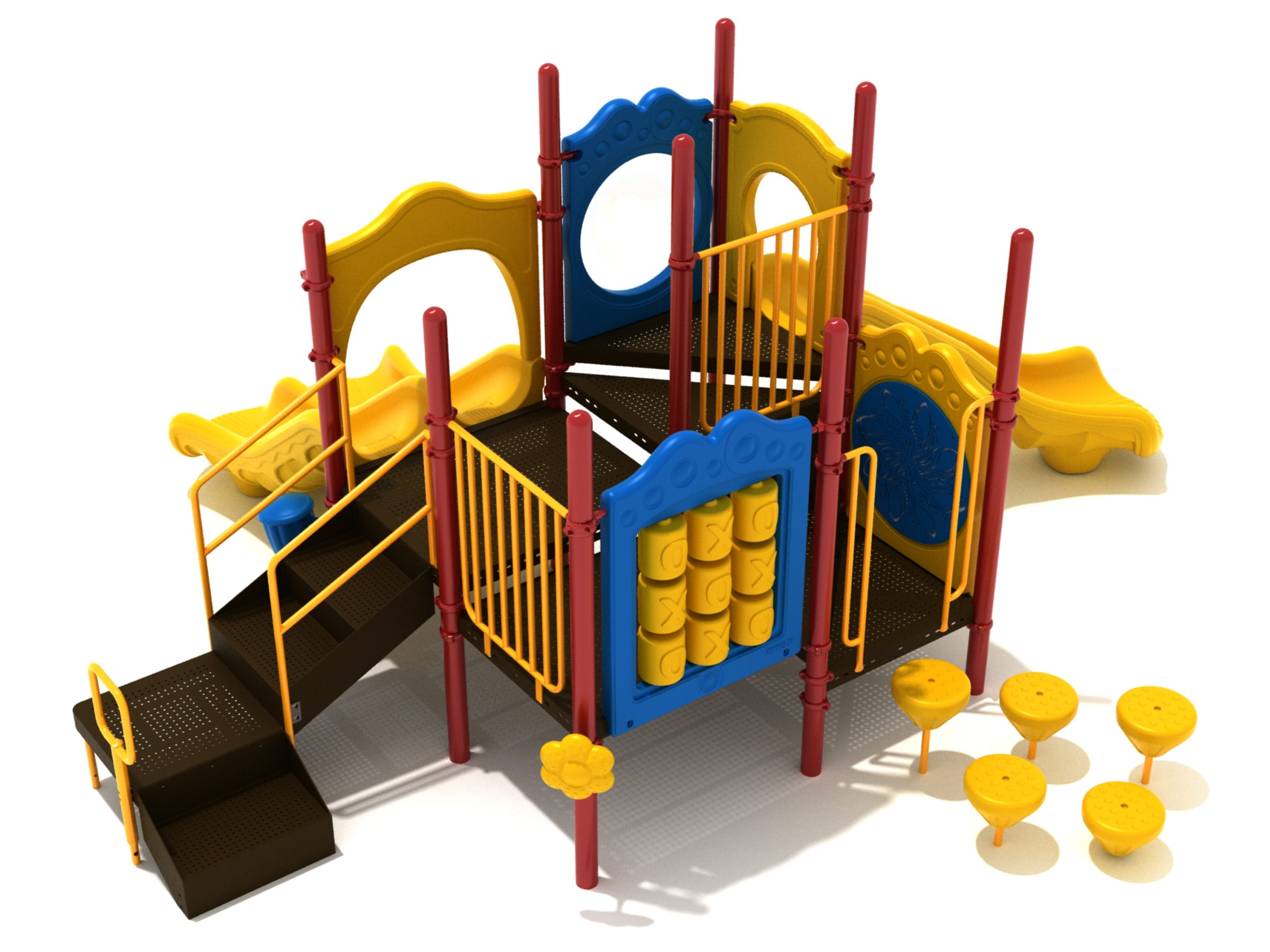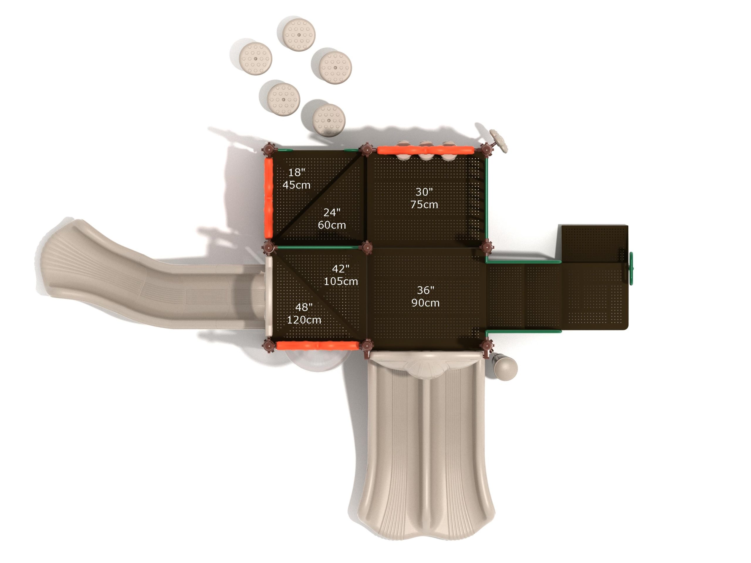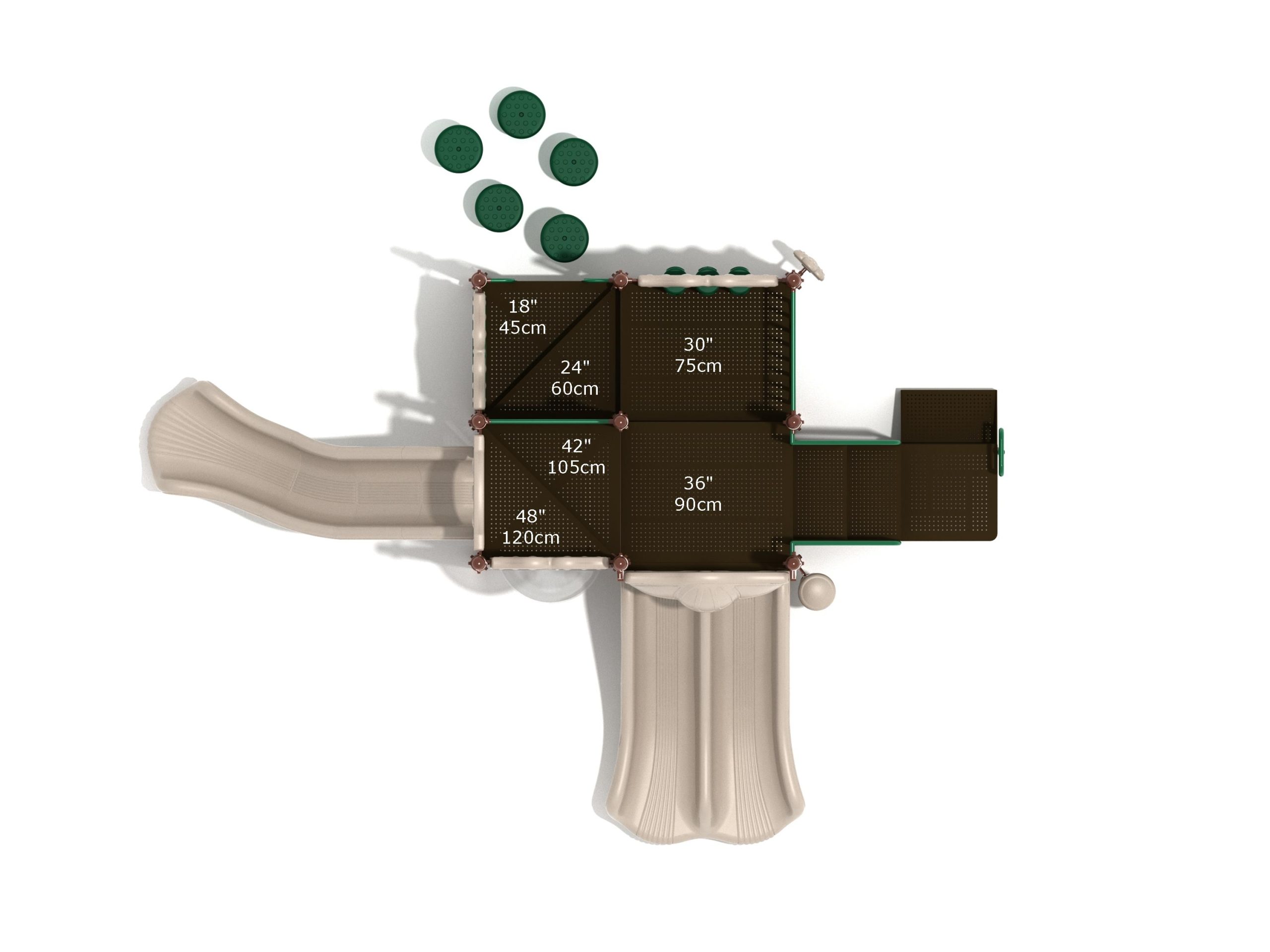 With 3 sides and 4 decks of varying heights, Red Bud is a must-have in every playground. It gives kids a winding & interesting navigating experience that hones their physical skills. They start their adventure via the Maze Panel for solitary game time. Or, they may choose the Tic Tac Toe Panel for cooperative play with friends, socializing, and making friends. The Pebble Climber comes next. It lets kids develop strength and coordination. There’s a large square deck area that keeps their baby steps moving without colliding with each other. Then comes the Bubble Panel, where kids can get a view of your playground. While on the upper 48’’ deck, they can imagine themselves as hikers reaching the summit of a tall hill. All in all, Red Bud allows for safe and exciting play for kids under the age of 5.