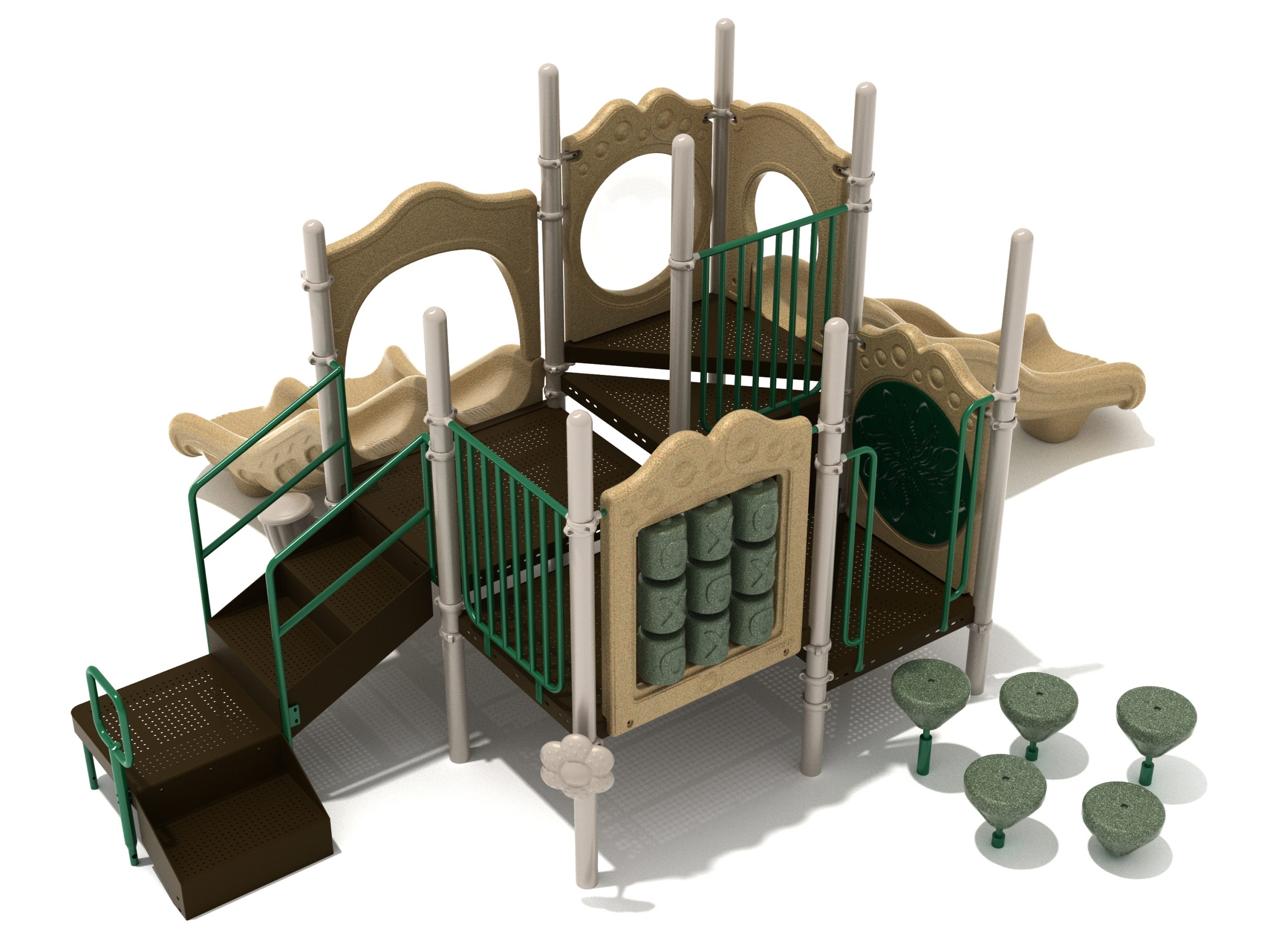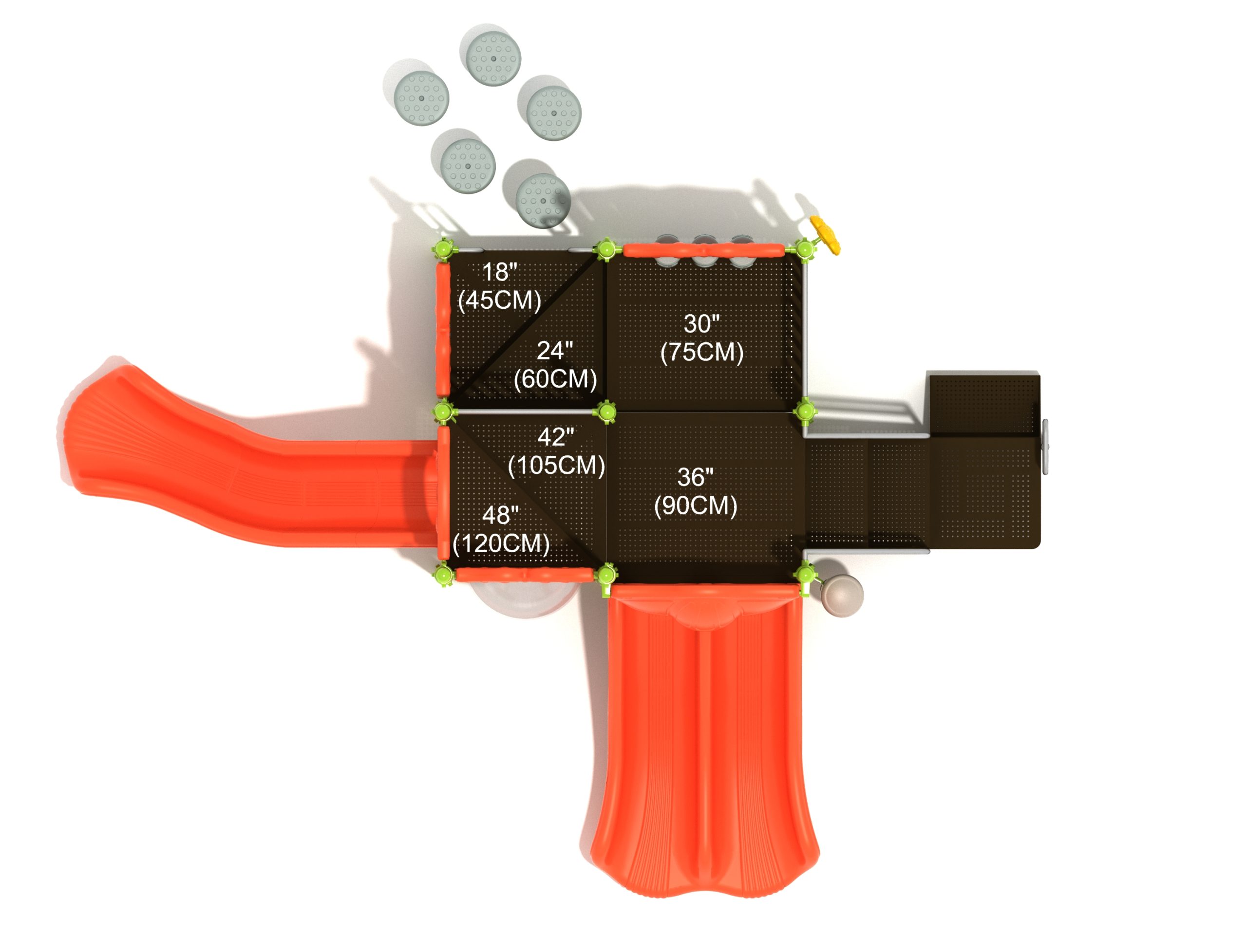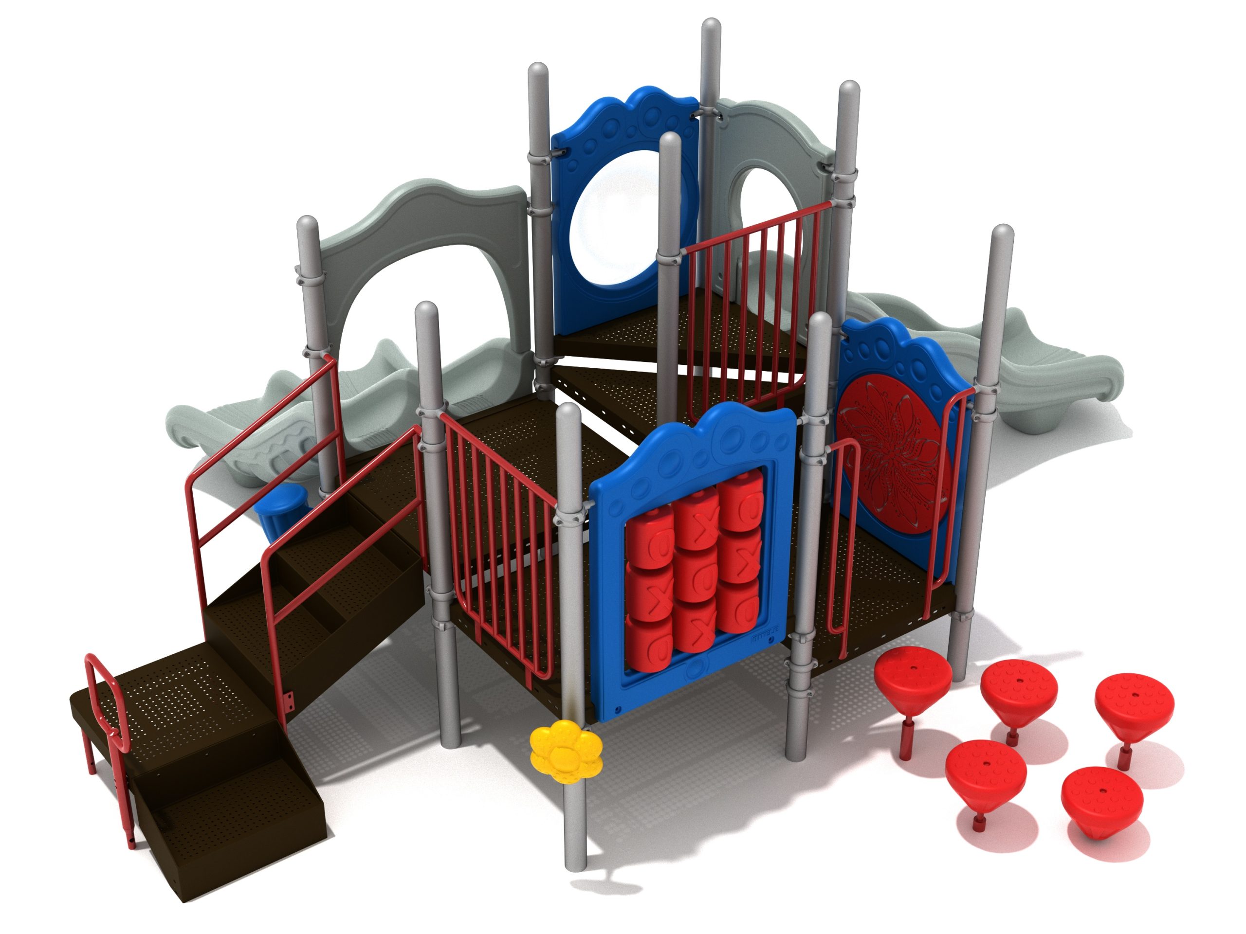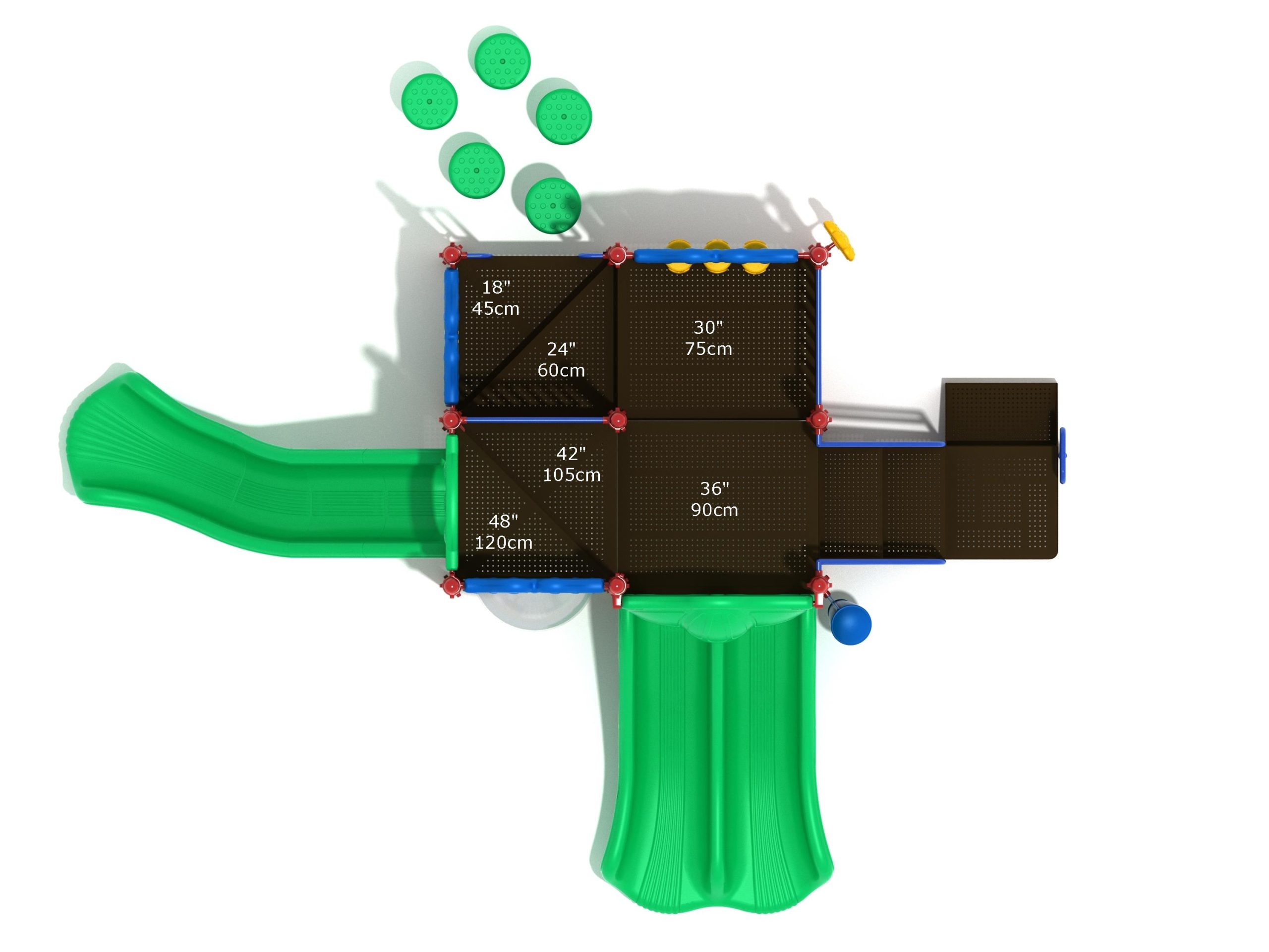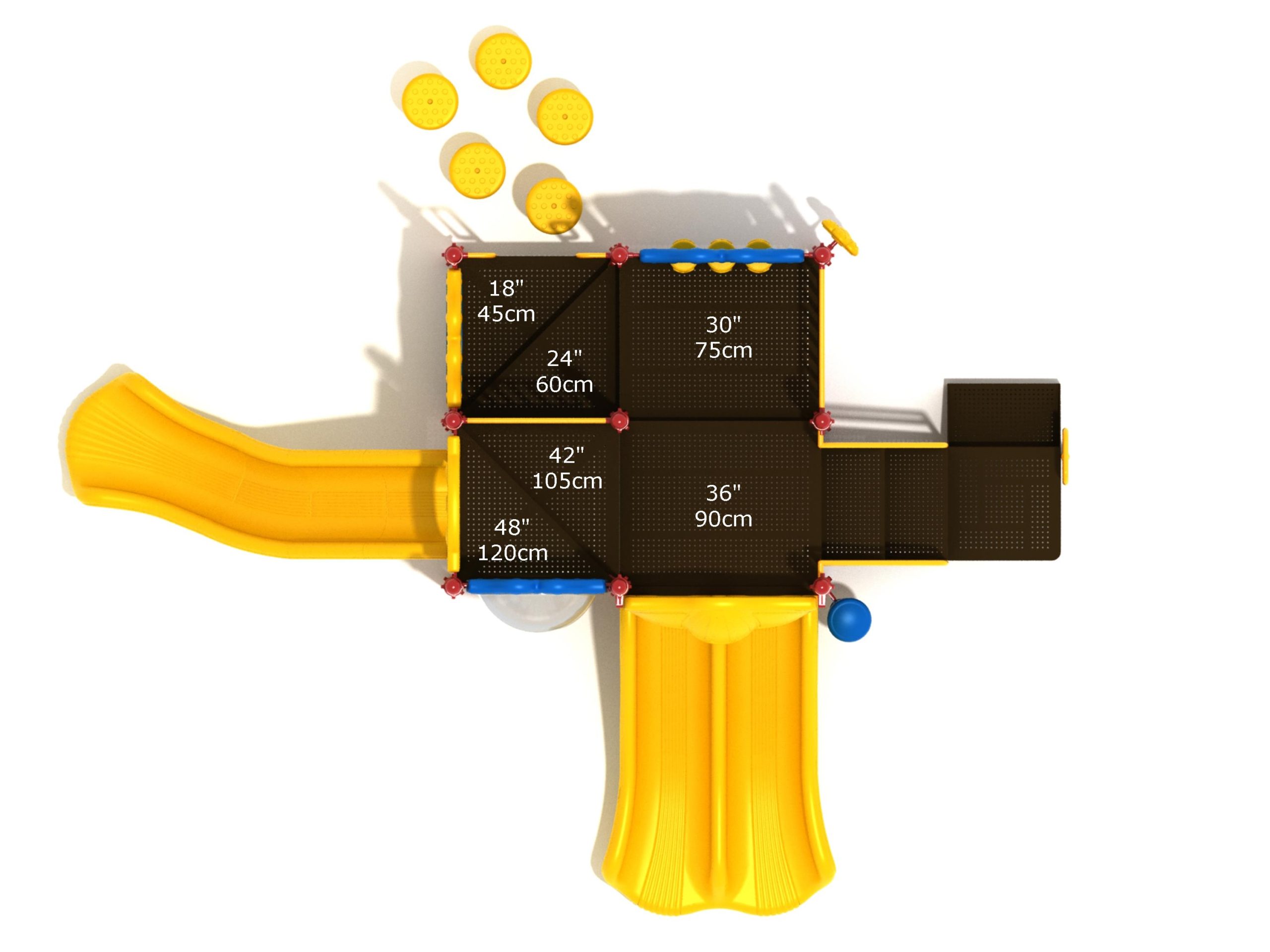 With 3 sides and 4 decks of varying heights, Red Bud is a must-have in every playground. It gives kids a winding & interesting navigating experience that hones their physical skills. They start their adventure via the Maze Panel for solitary game time. Or, they may choose the Tic Tac Toe Panel for cooperative play with friends, socializing, and making friends. The Pebble Climber comes next. It lets kids develop strength and coordination. There’s a large square deck area that keeps their baby steps moving without colliding with each other. Then comes the Bubble Panel, where kids can get a view of your playground. While on the upper 48’’ deck, they can imagine themselves as hikers reaching the summit of a tall hill. All in all, Red Bud allows for safe and exciting play for kids under the age of 5.