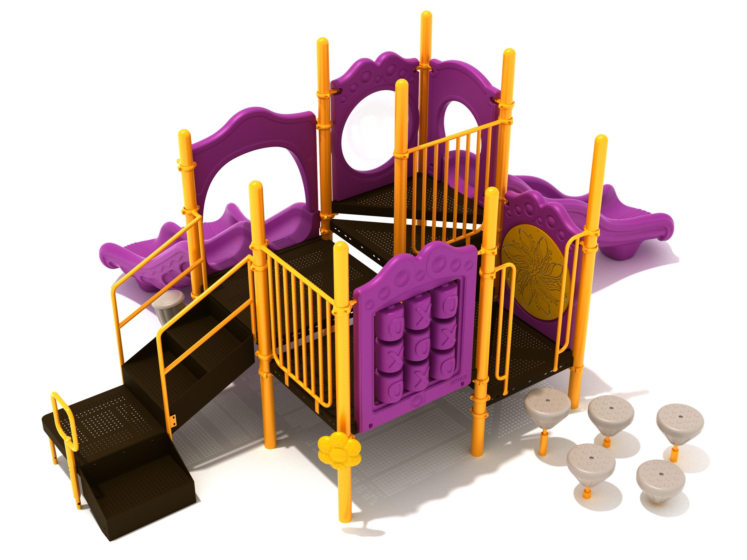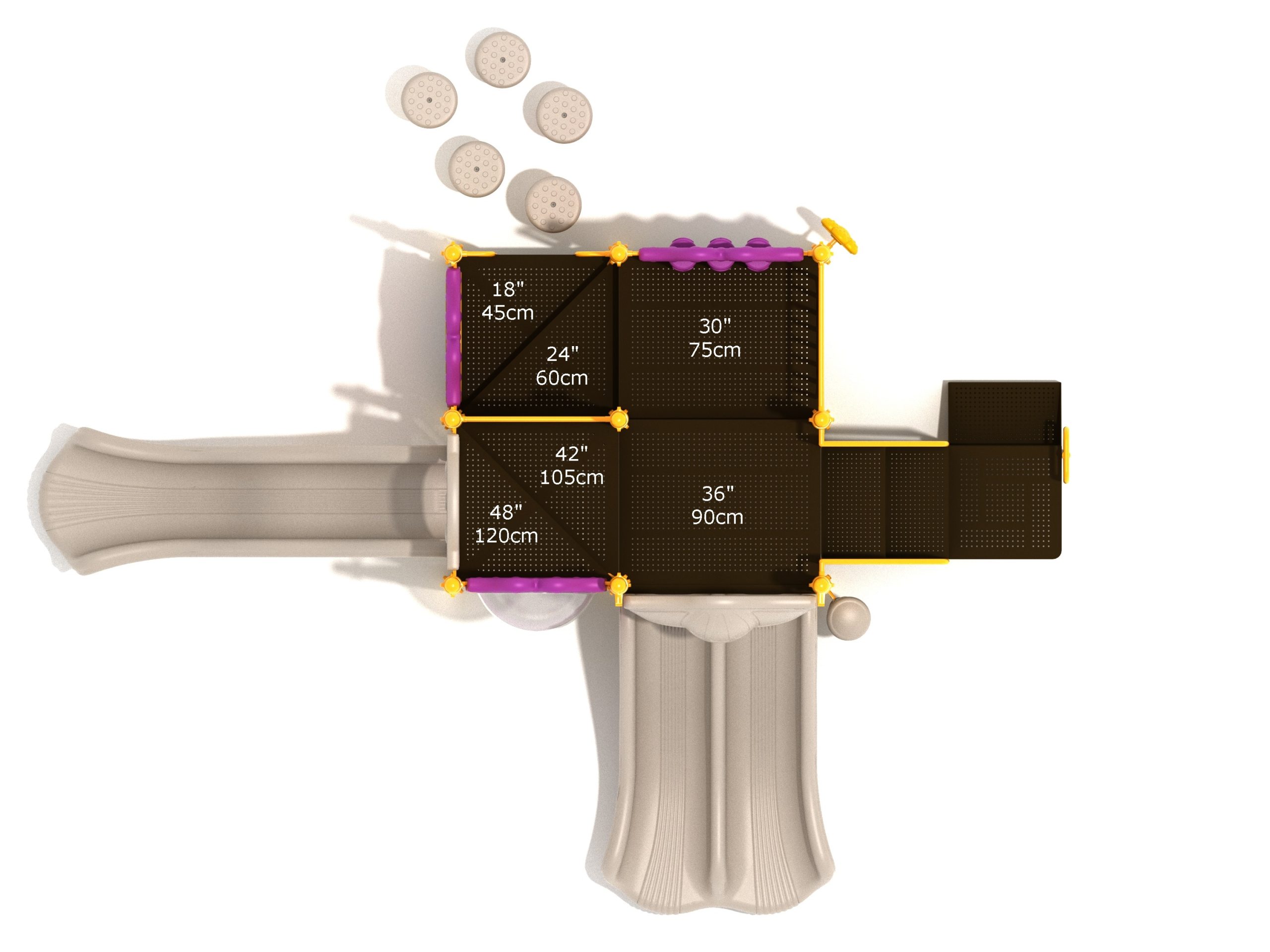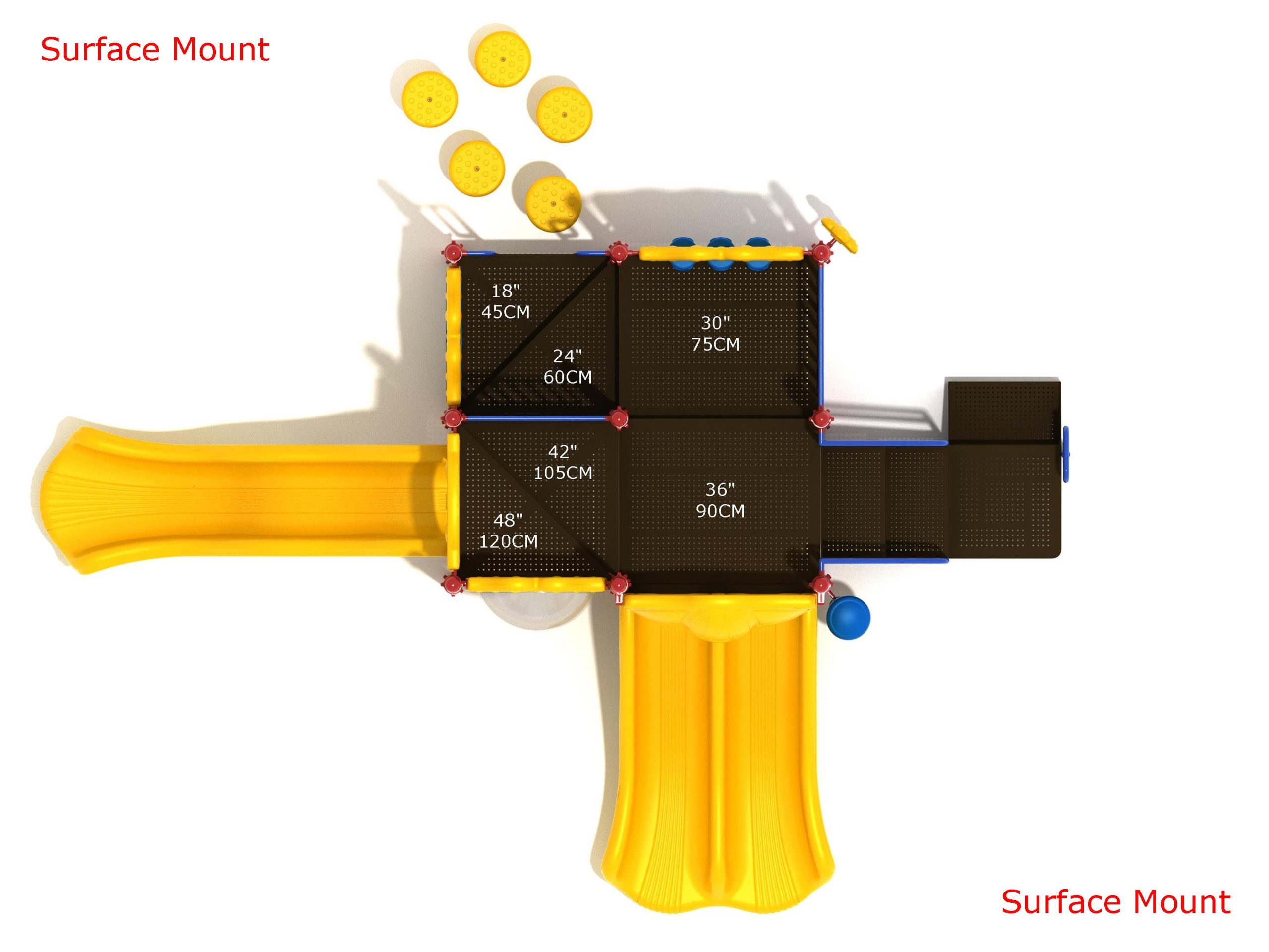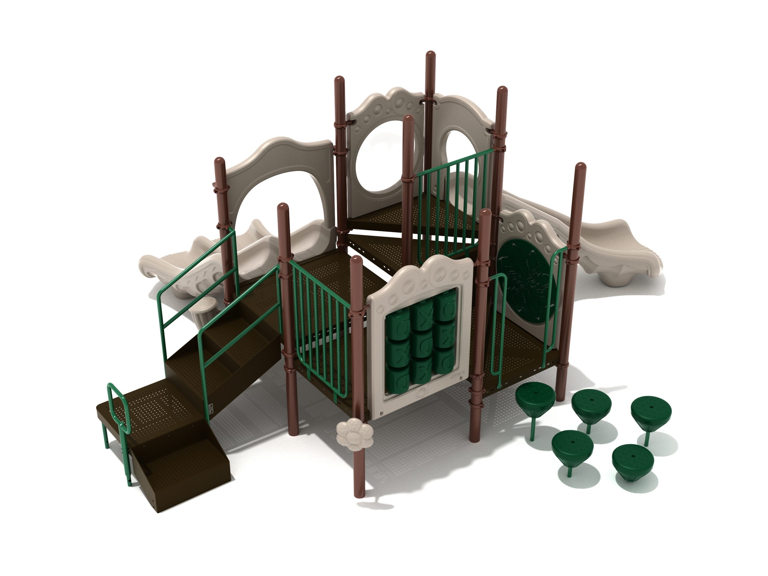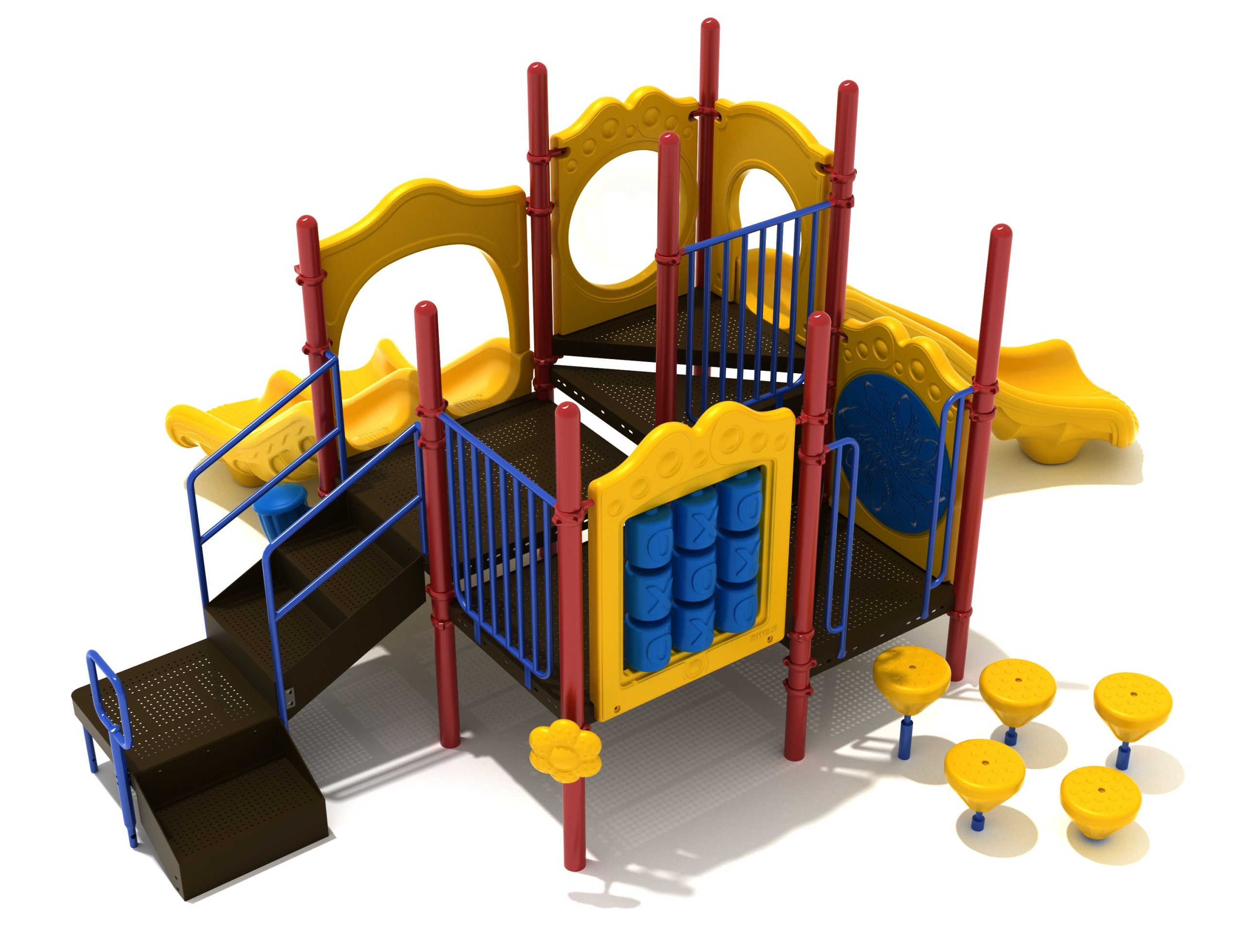 With 3 sides and 4 decks of varying heights, Red Bud is a must-have in every playground. It gives kids a winding & interesting navigating experience that hones their physical skills. They start their adventure via the Maze Panel for solitary game time. Or, they may choose the Tic Tac Toe Panel for cooperative play with friends, socializing, and making friends. The Pebble Climber comes next. It lets kids develop strength and coordination. There’s a large square deck area that keeps their baby steps moving without colliding with each other. Then comes the Bubble Panel, where kids can get a view of your playground. While on the upper 48’’ deck, they can imagine themselves as hikers reaching the summit of a tall hill. All in all, Red Bud allows for safe and exciting play for kids under the age of 5.