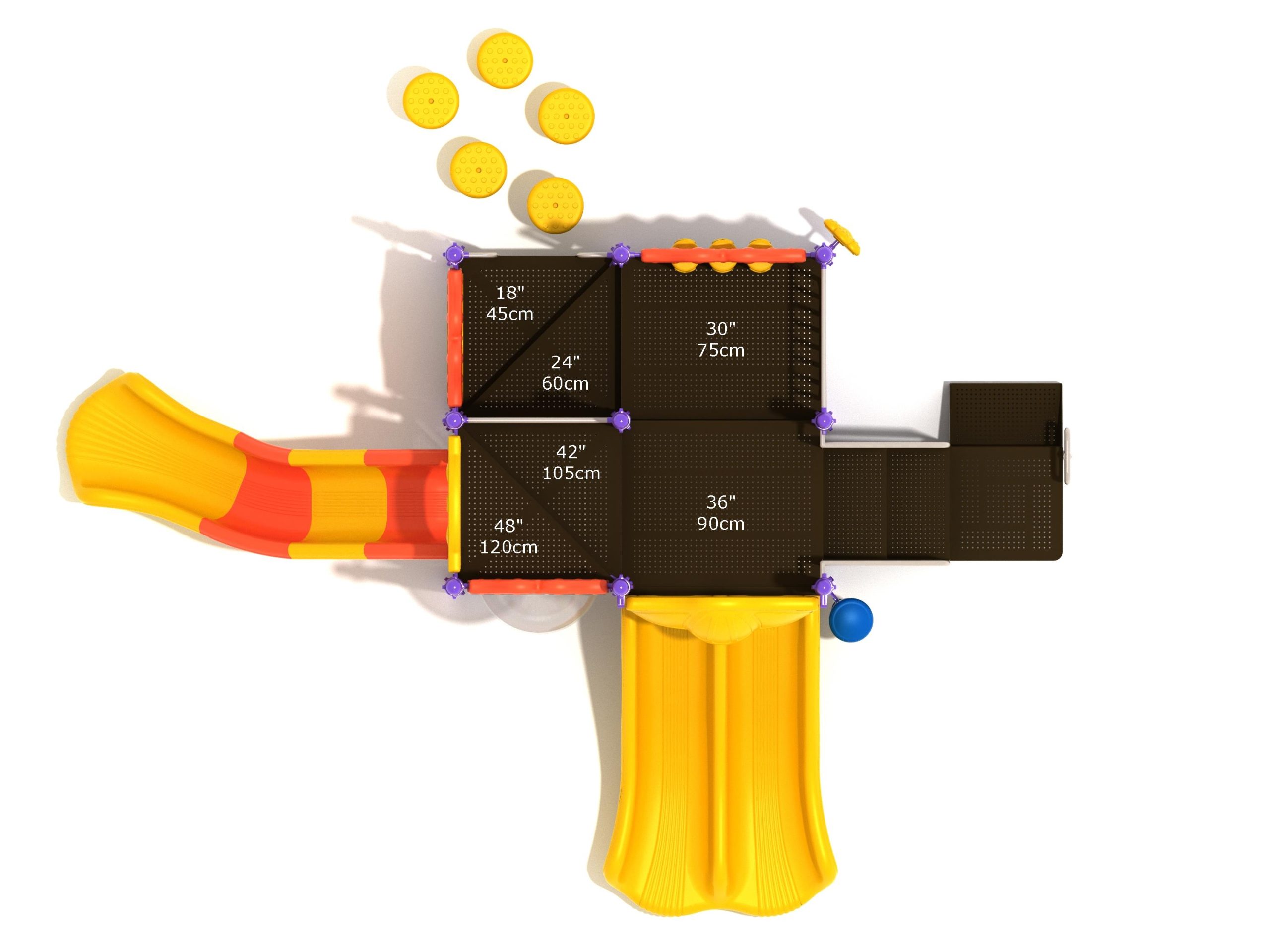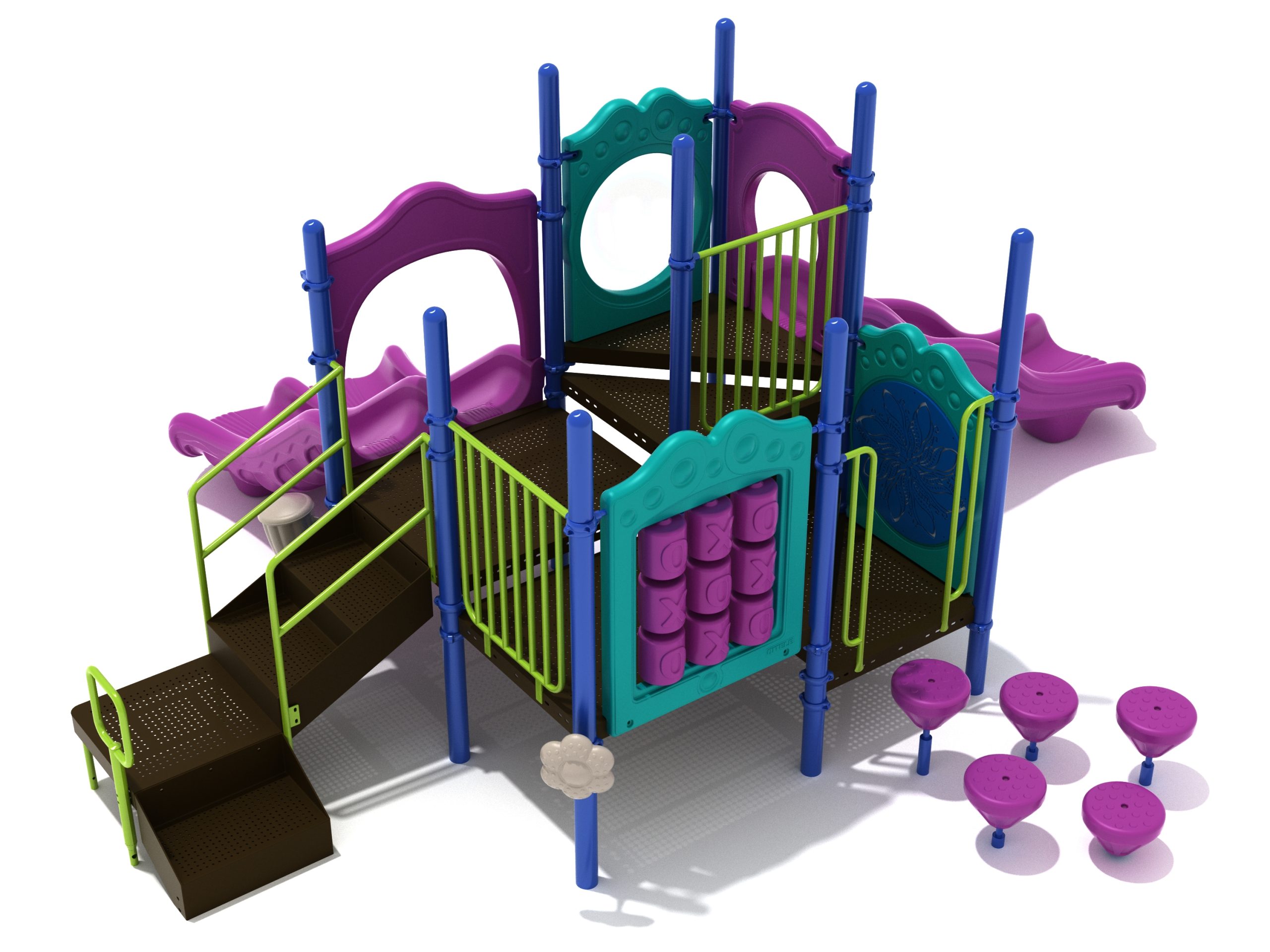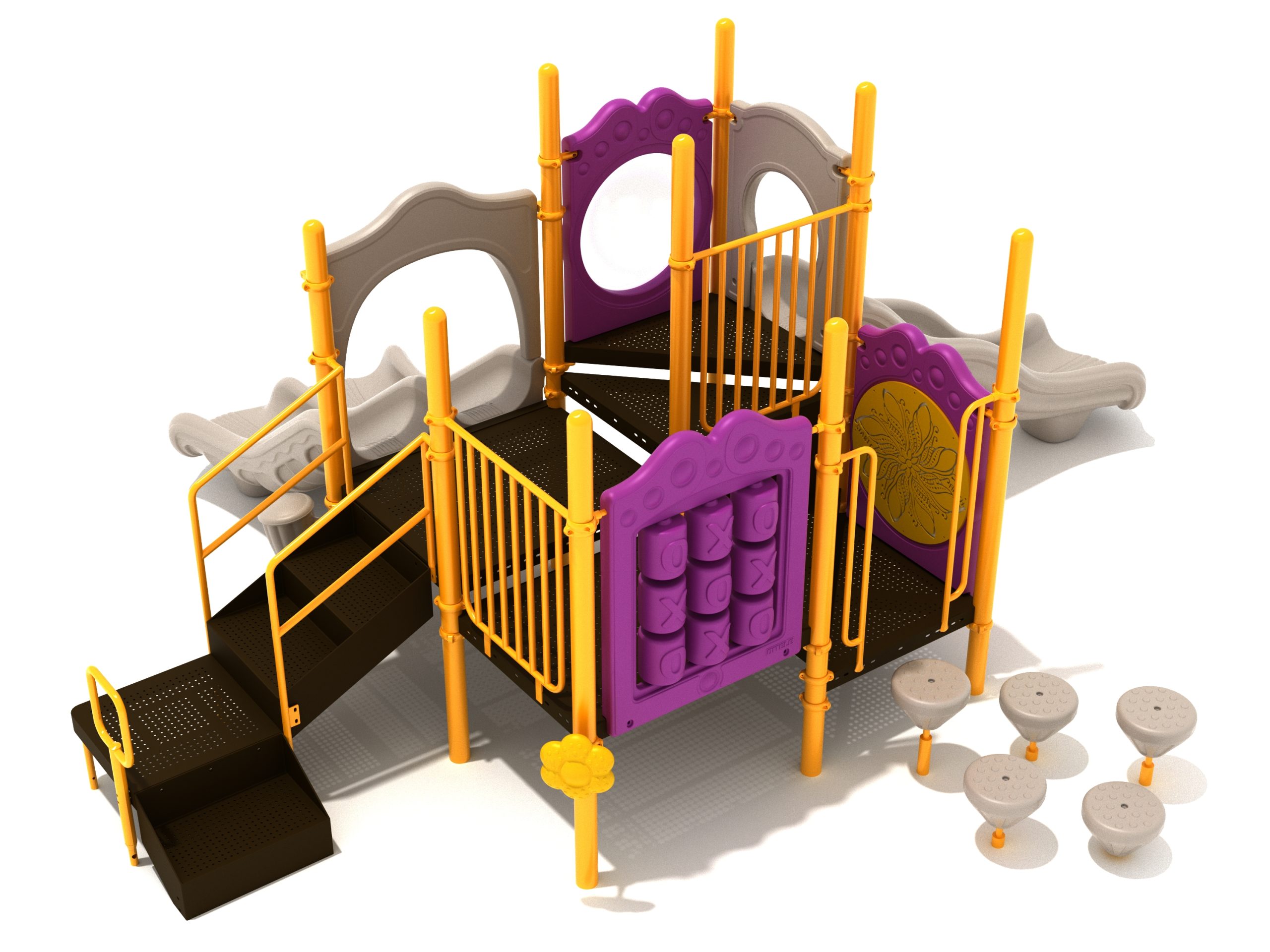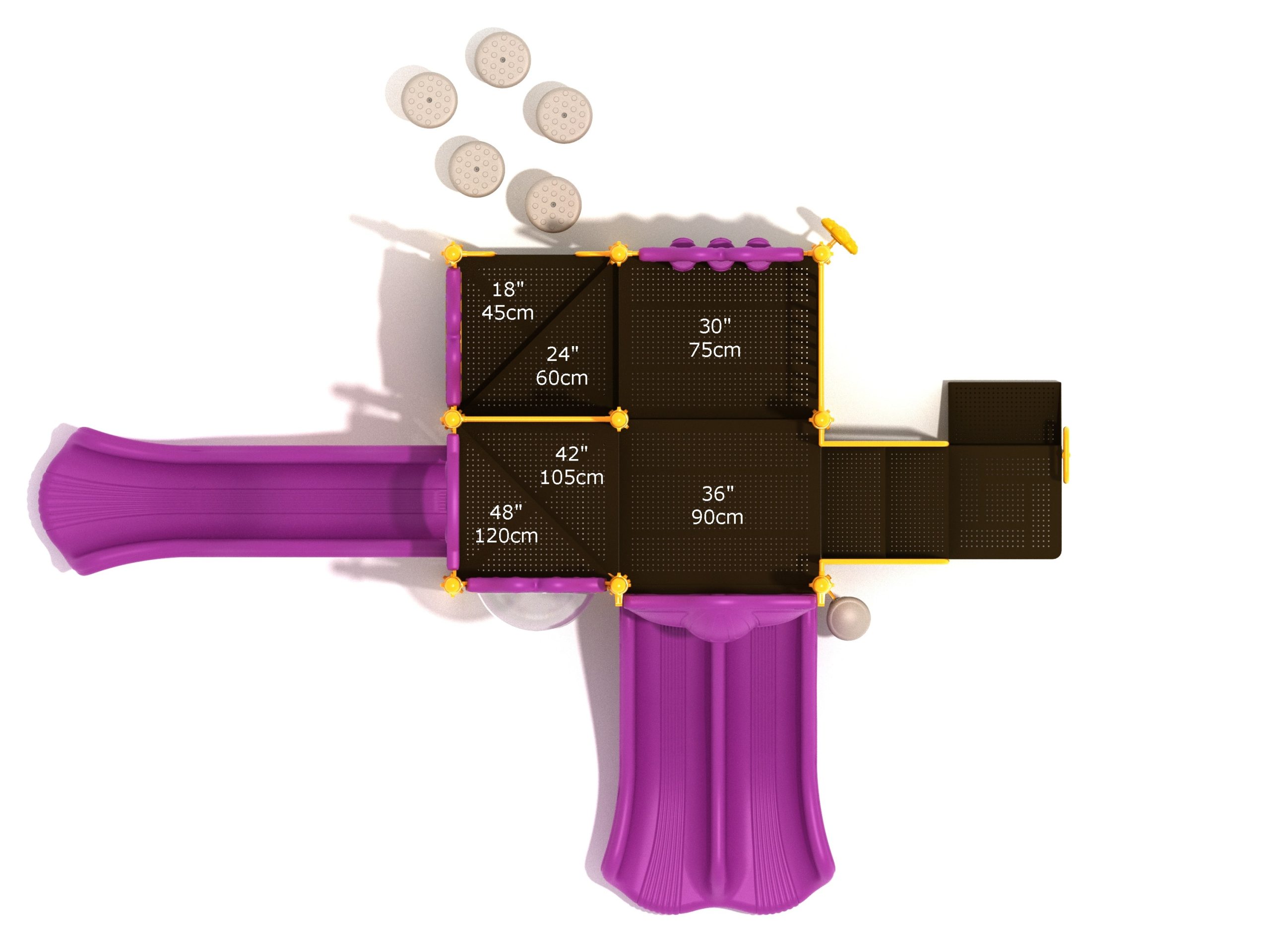 With 3 sides and 4 decks of varying heights, Red Bud is a must-have in every playground. It gives kids a winding & interesting navigating experience that hones their physical skills. They start their adventure via the Maze Panel for solitary game time. Or, they may choose the Tic Tac Toe Panel for cooperative play with friends, socializing, and making friends. The Pebble Climber comes next. It lets kids develop strength and coordination. There’s a large square deck area that keeps their baby steps moving without colliding with each other. Then comes the Bubble Panel, where kids can get a view of your playground. While on the upper 48’’ deck, they can imagine themselves as hikers reaching the summit of a tall hill. All in all, Red Bud allows for safe and exciting play for kids under the age of 5.