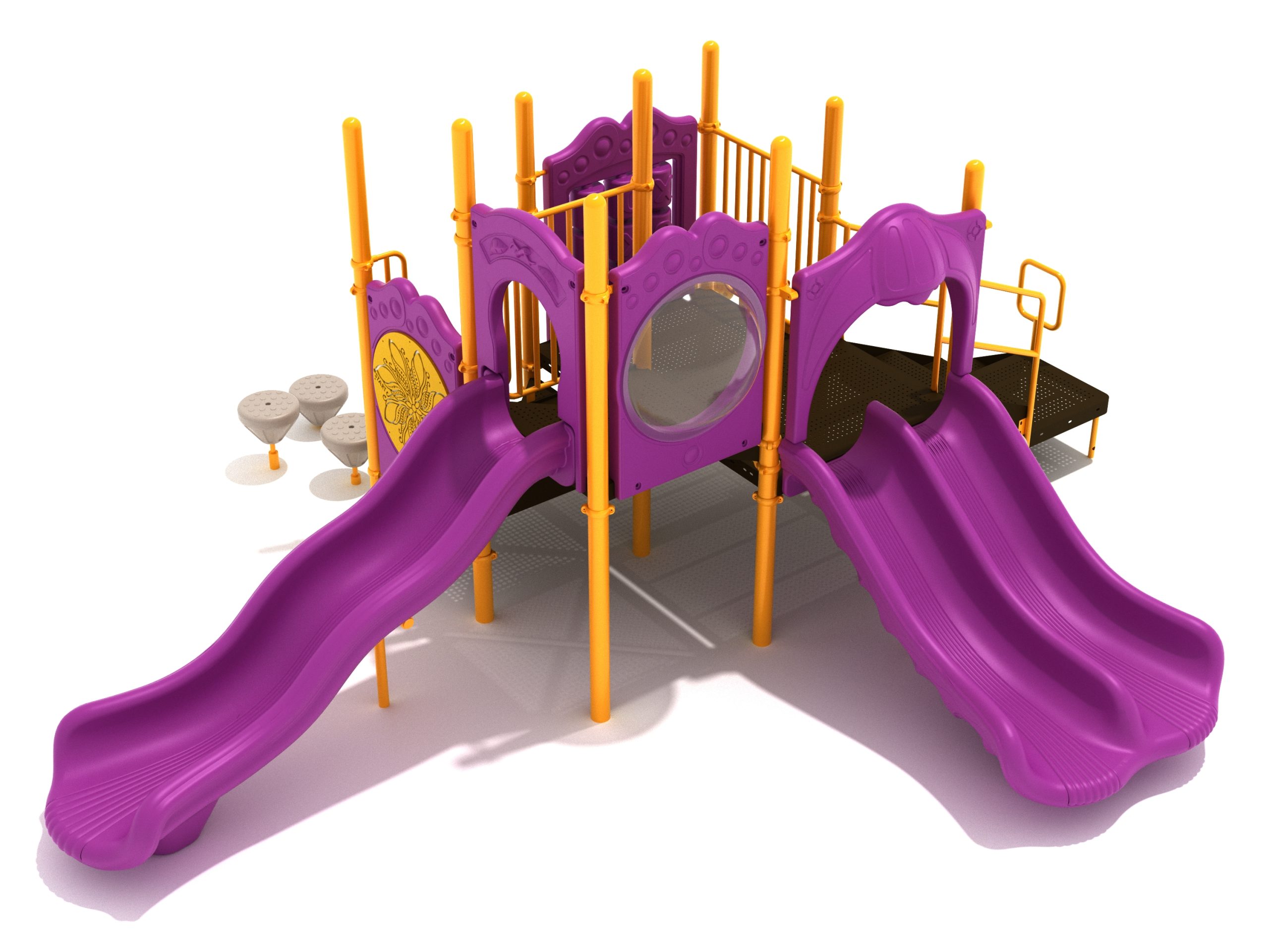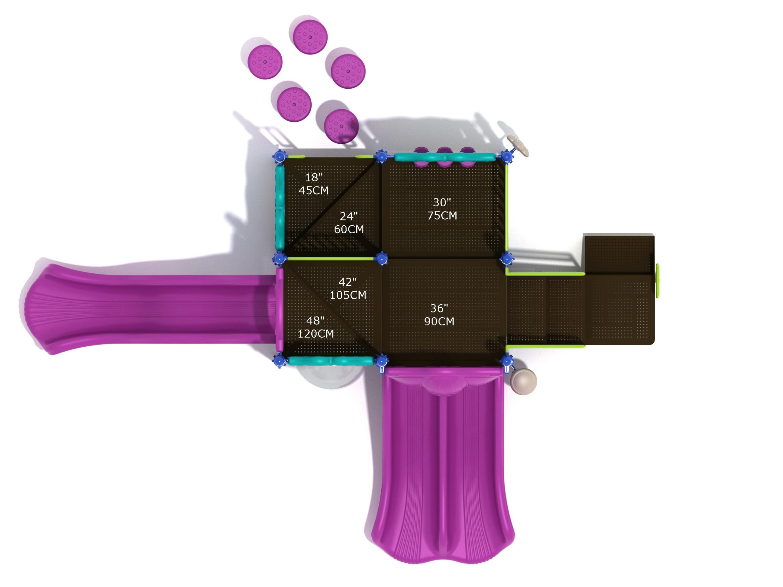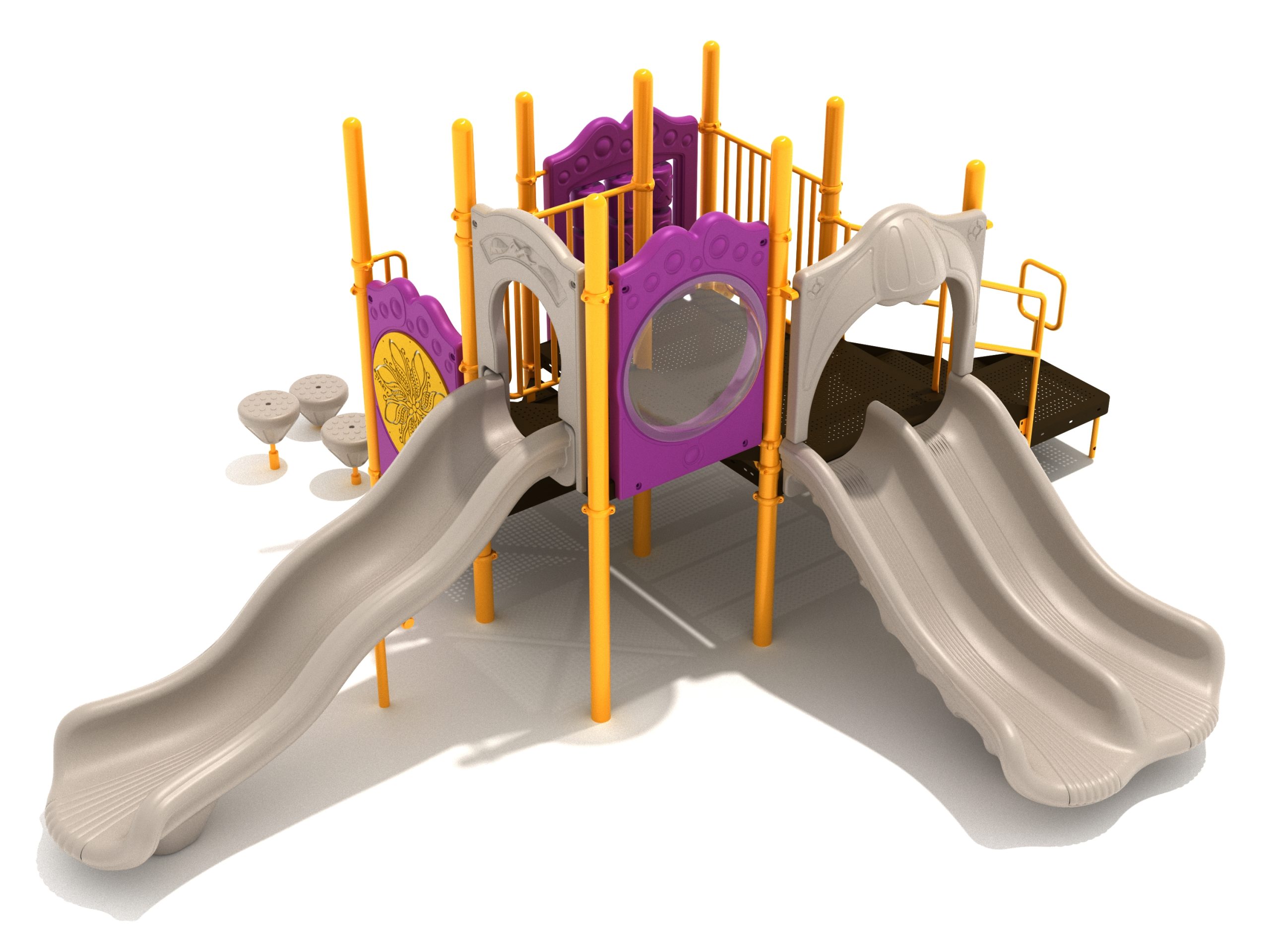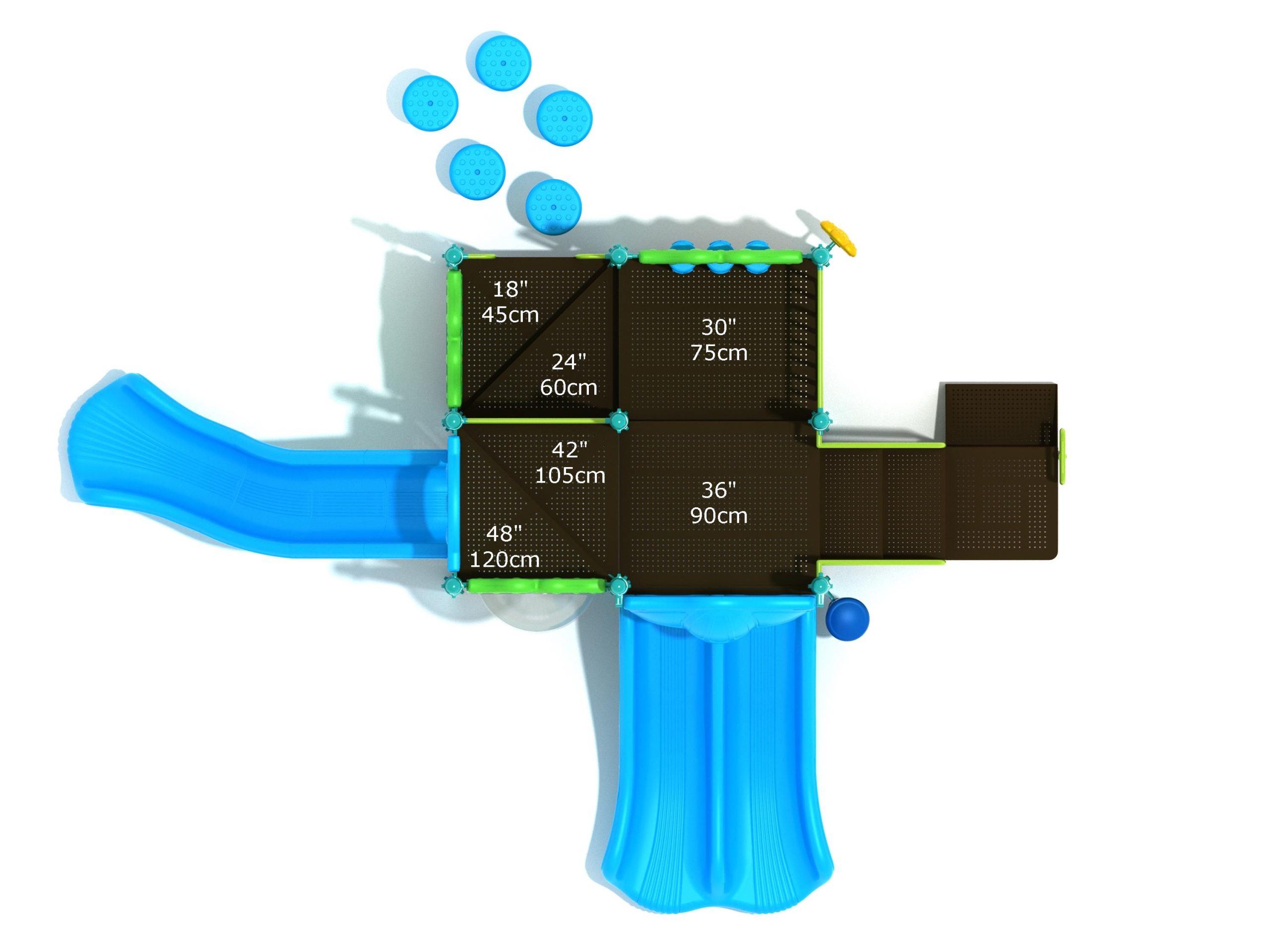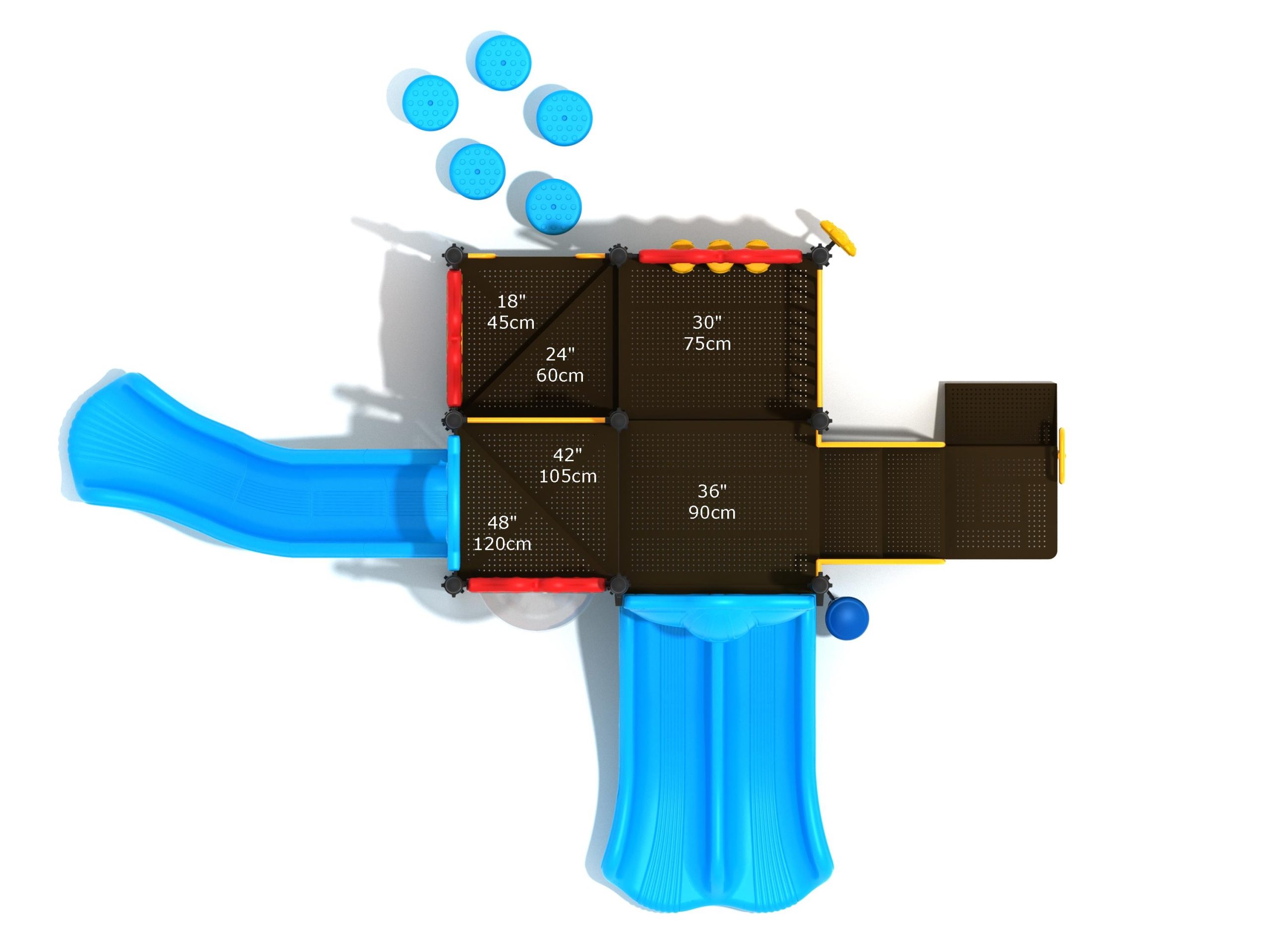 With 3 sides and 4 decks of varying heights, Red Bud is a must-have in every playground. It gives kids a winding & interesting navigating experience that hones their physical skills. They start their adventure via the Maze Panel for solitary game time. Or, they may choose the Tic Tac Toe Panel for cooperative play with friends, socializing, and making friends. The Pebble Climber comes next. It lets kids develop strength and coordination. There’s a large square deck area that keeps their baby steps moving without colliding with each other. Then comes the Bubble Panel, where kids can get a view of your playground. While on the upper 48’’ deck, they can imagine themselves as hikers reaching the summit of a tall hill. All in all, Red Bud allows for safe and exciting play for kids under the age of 5.