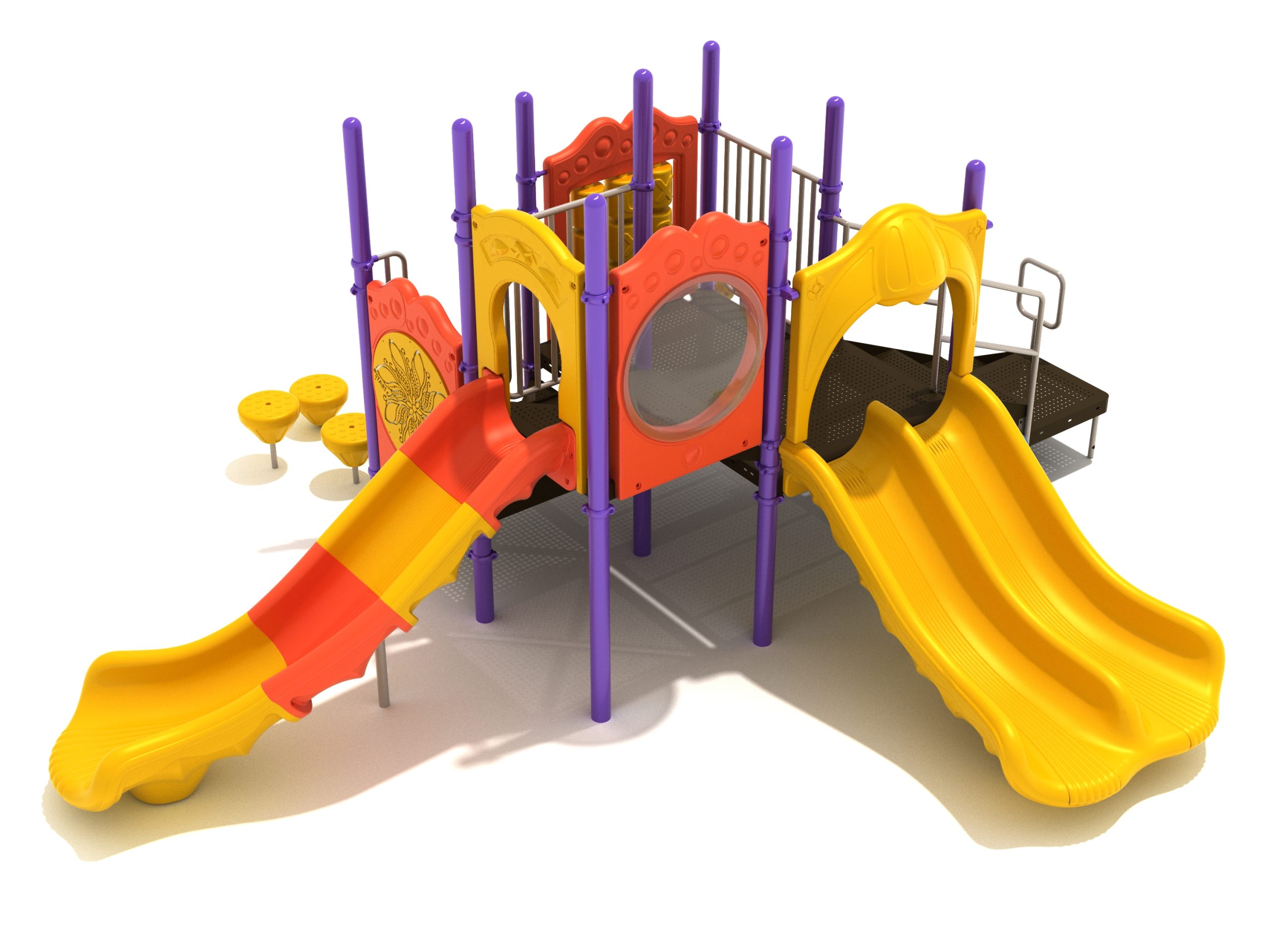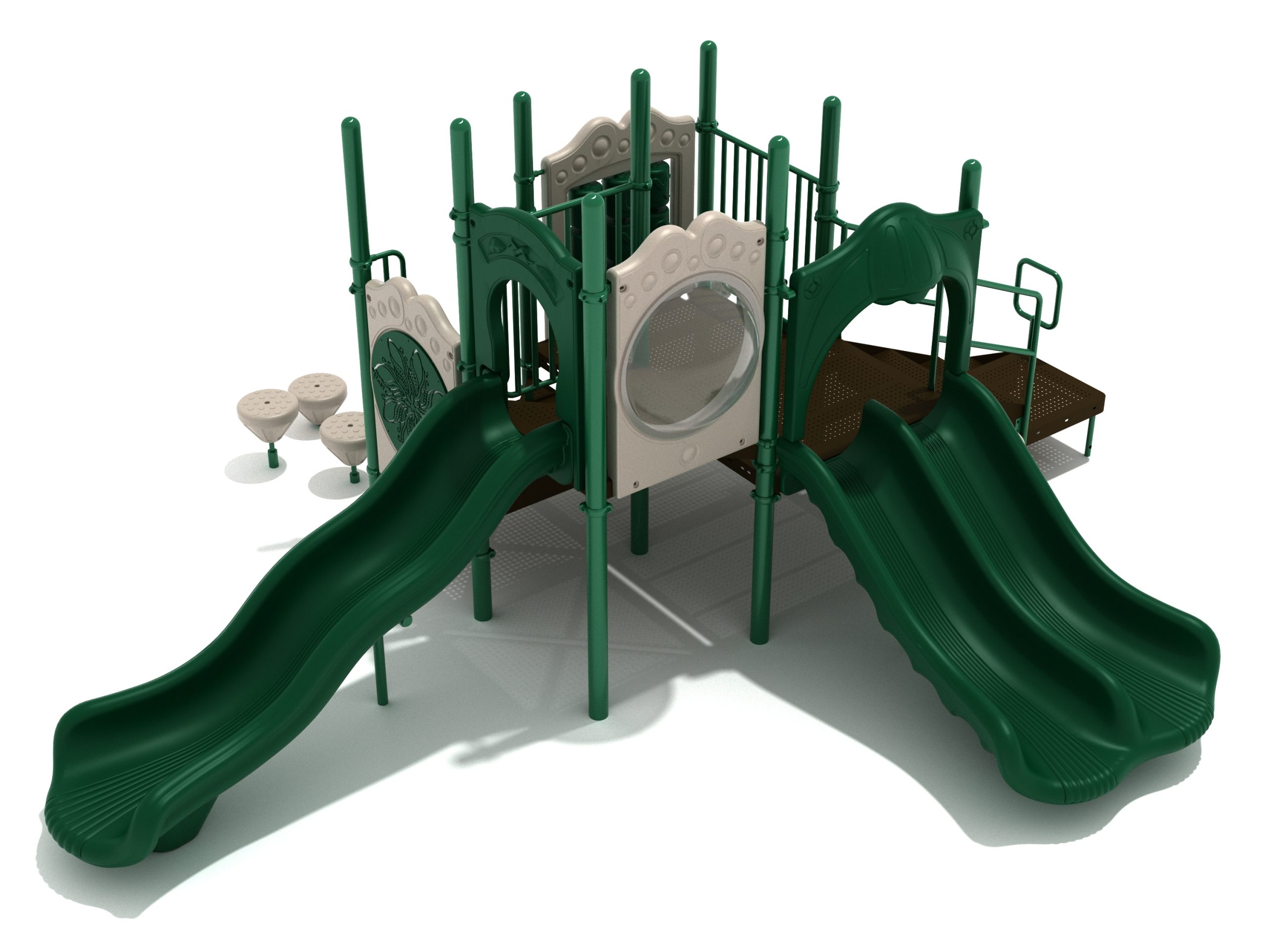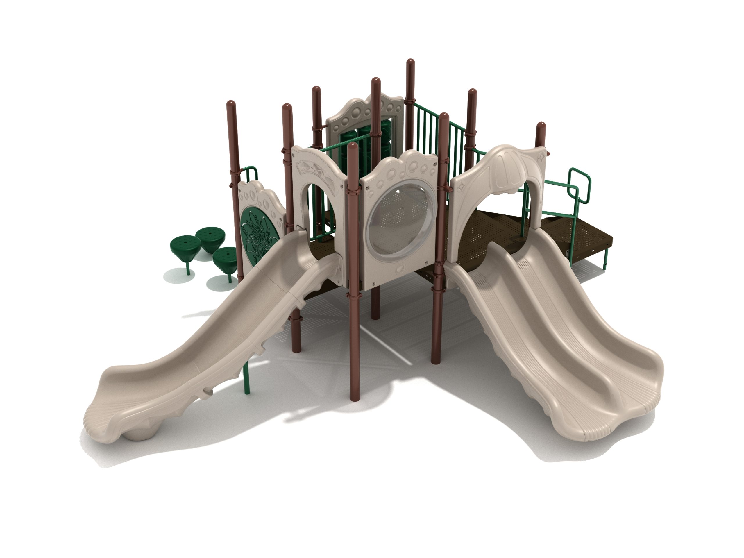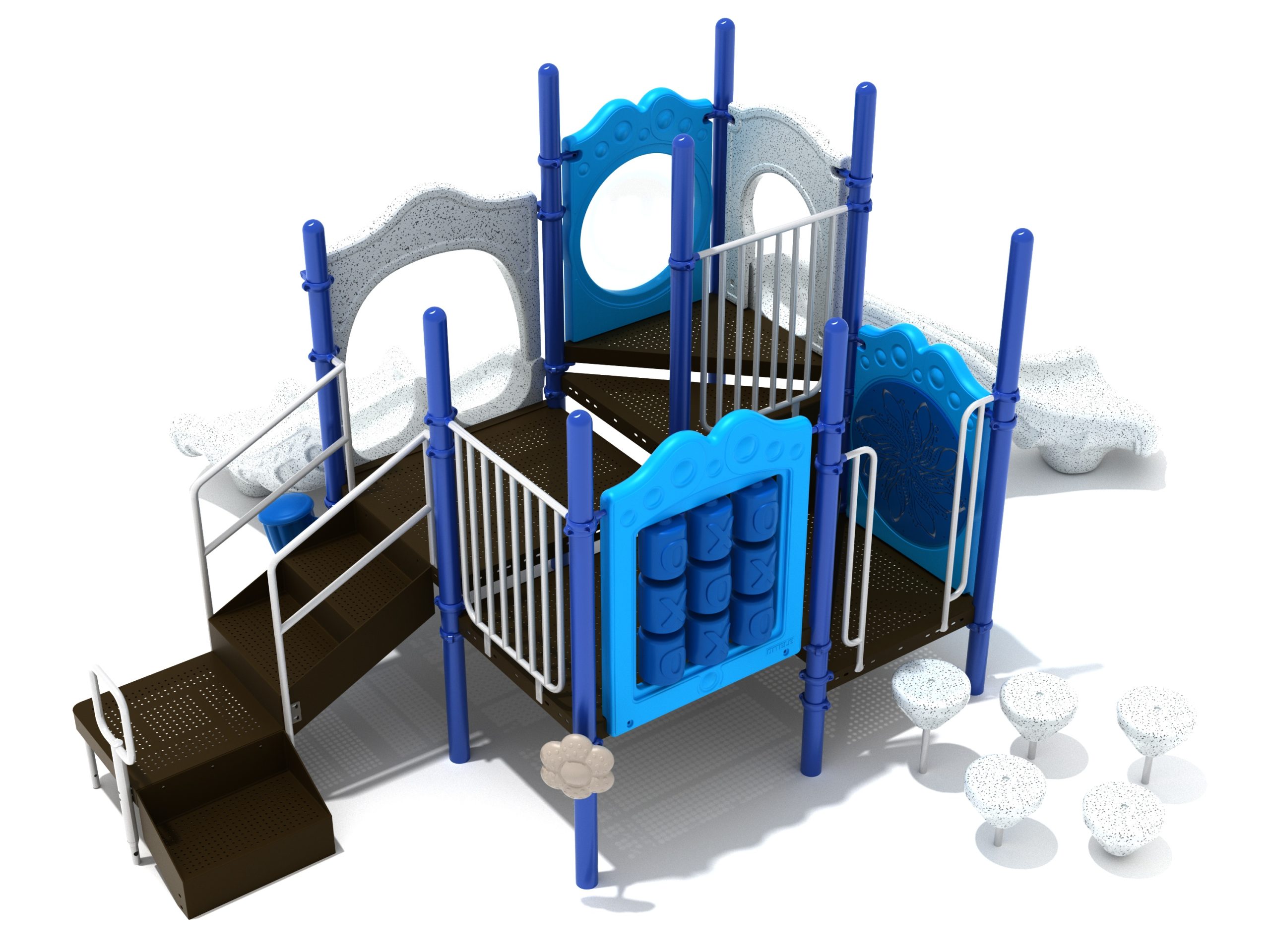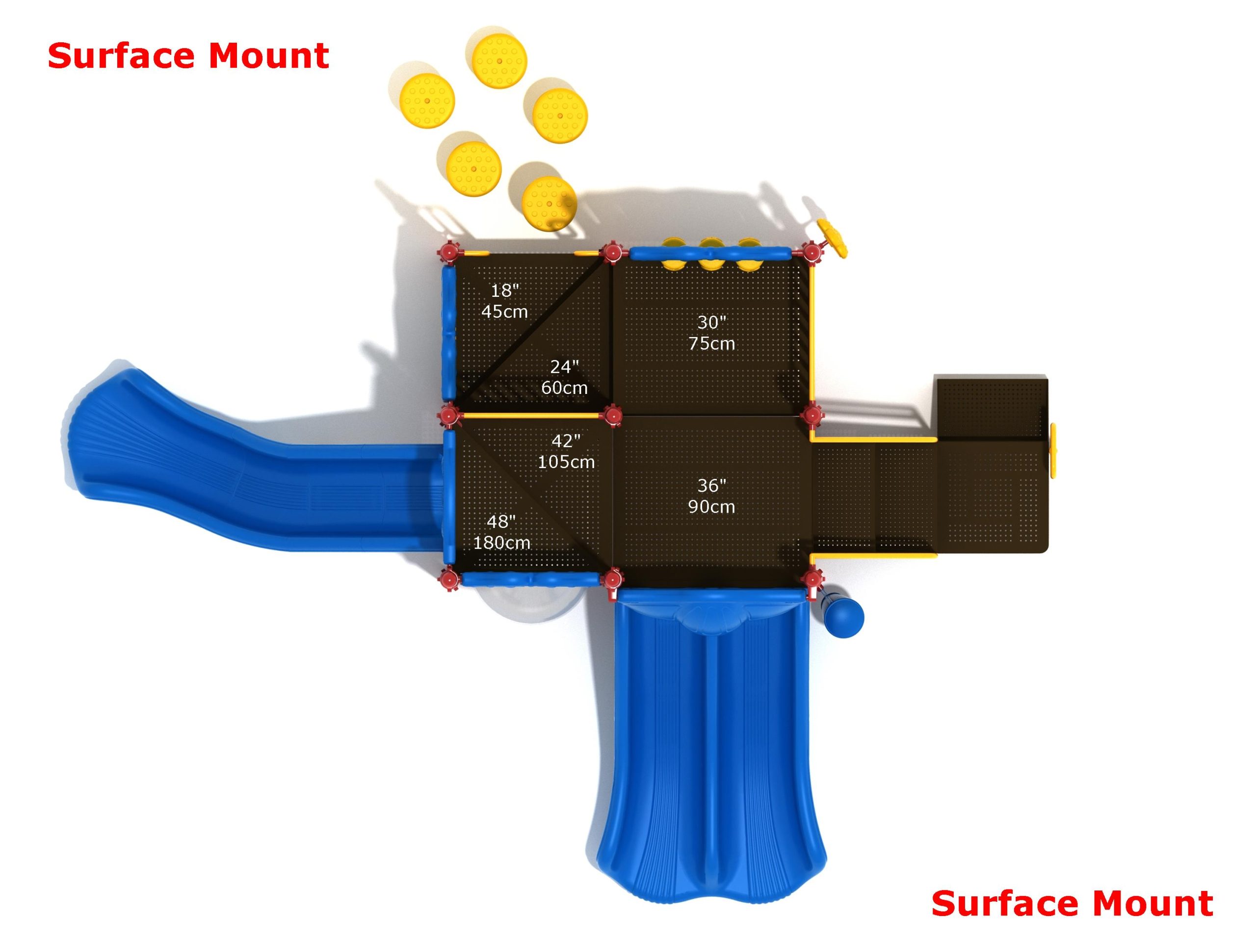 With 3 sides and 4 decks of varying heights, Red Bud is a must-have in every playground. It gives kids a winding & interesting navigating experience that hones their physical skills. They start their adventure via the Maze Panel for solitary game time. Or, they may choose the Tic Tac Toe Panel for cooperative play with friends, socializing, and making friends. The Pebble Climber comes next. It lets kids develop strength and coordination. There’s a large square deck area that keeps their baby steps moving without colliding with each other. Then comes the Bubble Panel, where kids can get a view of your playground. While on the upper 48’’ deck, they can imagine themselves as hikers reaching the summit of a tall hill. All in all, Red Bud allows for safe and exciting play for kids under the age of 5.
