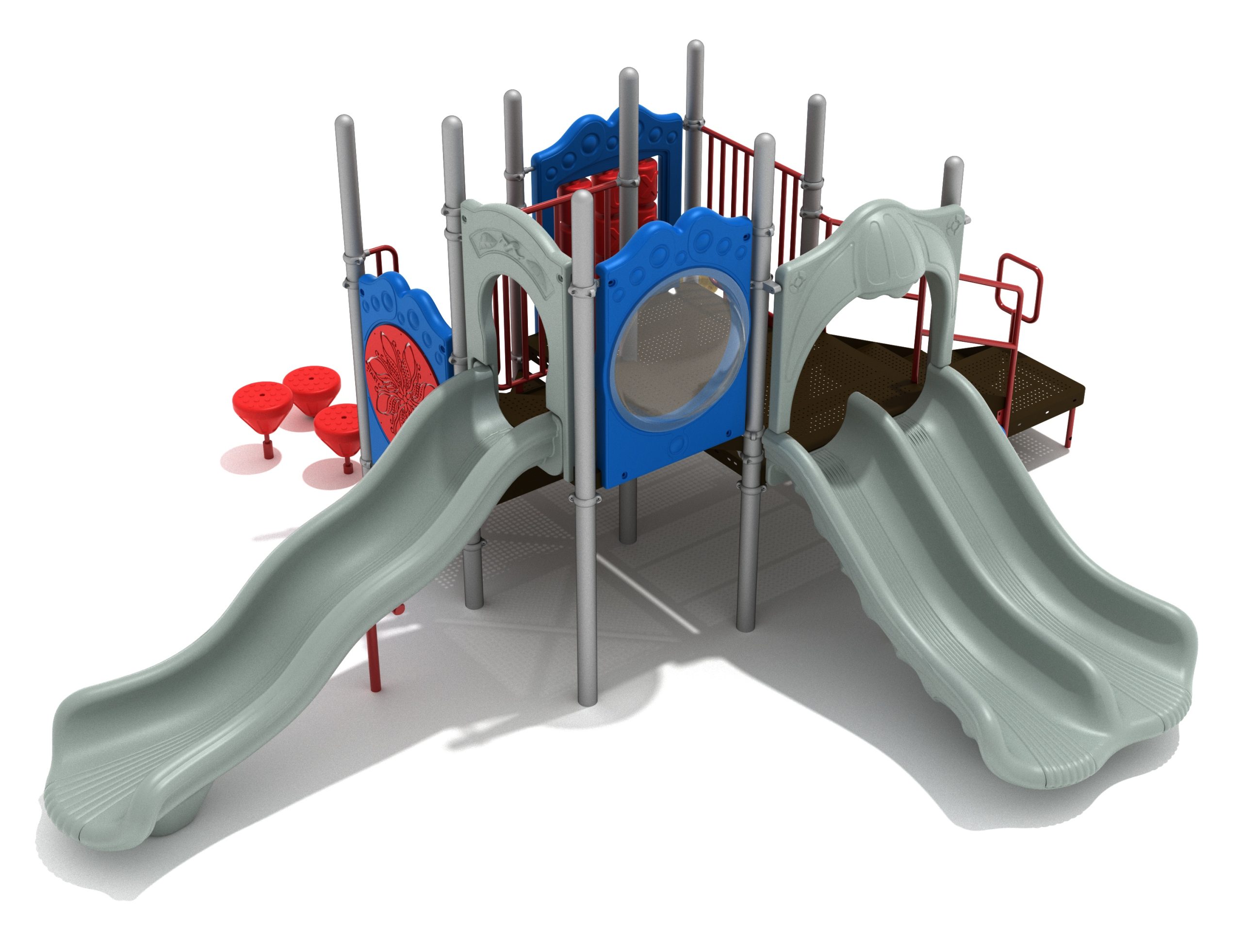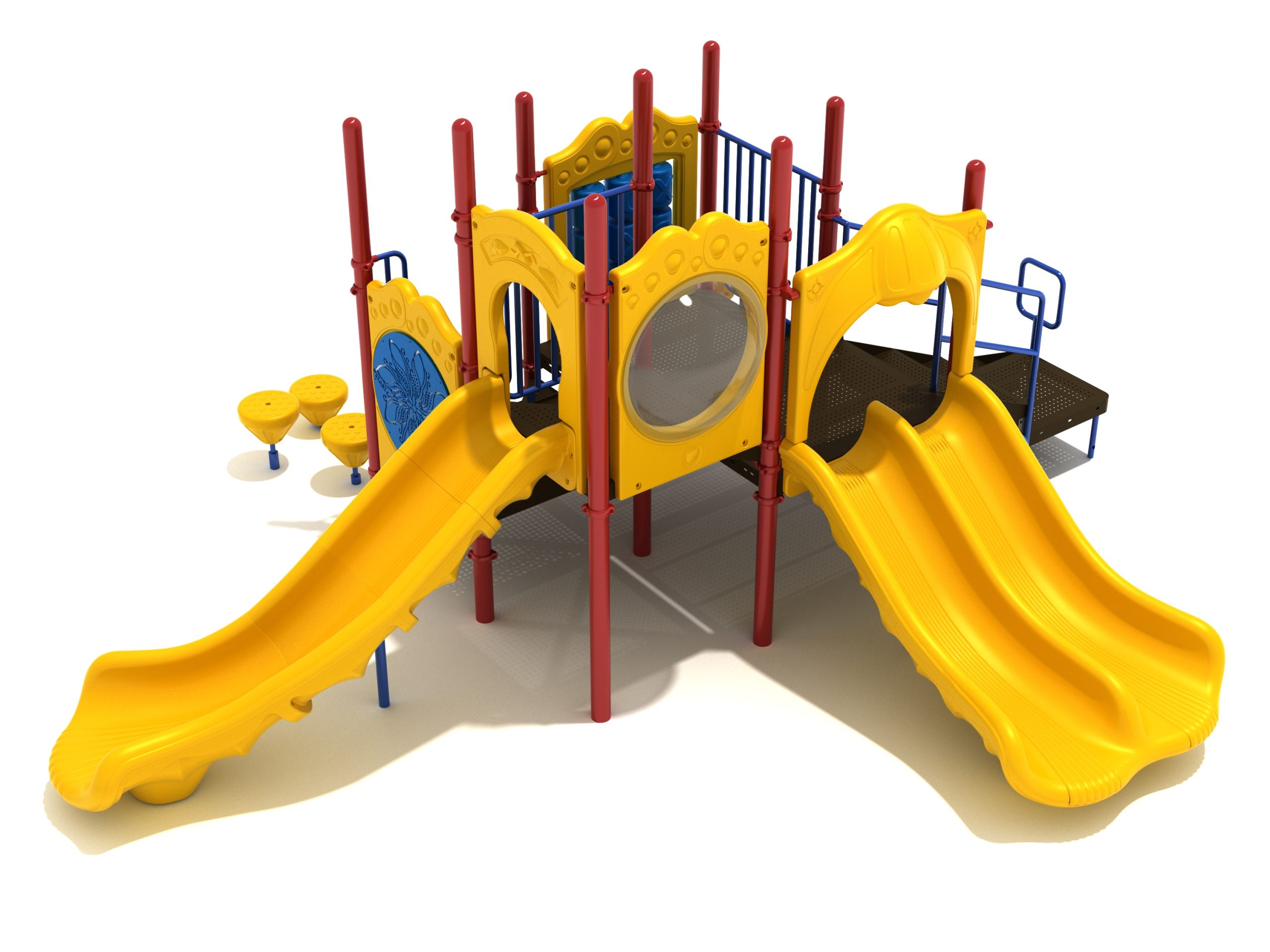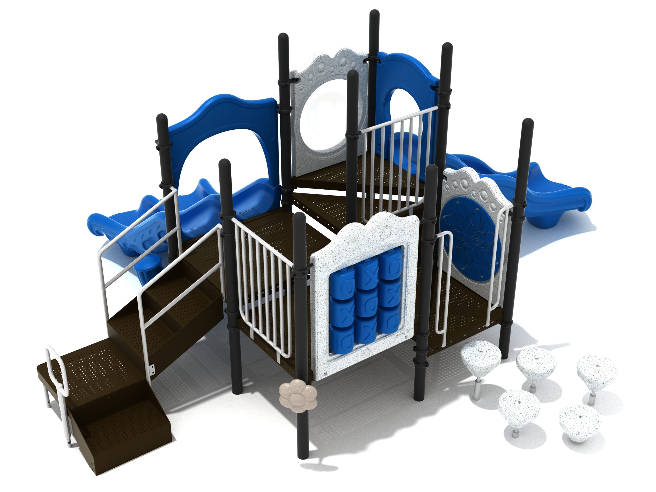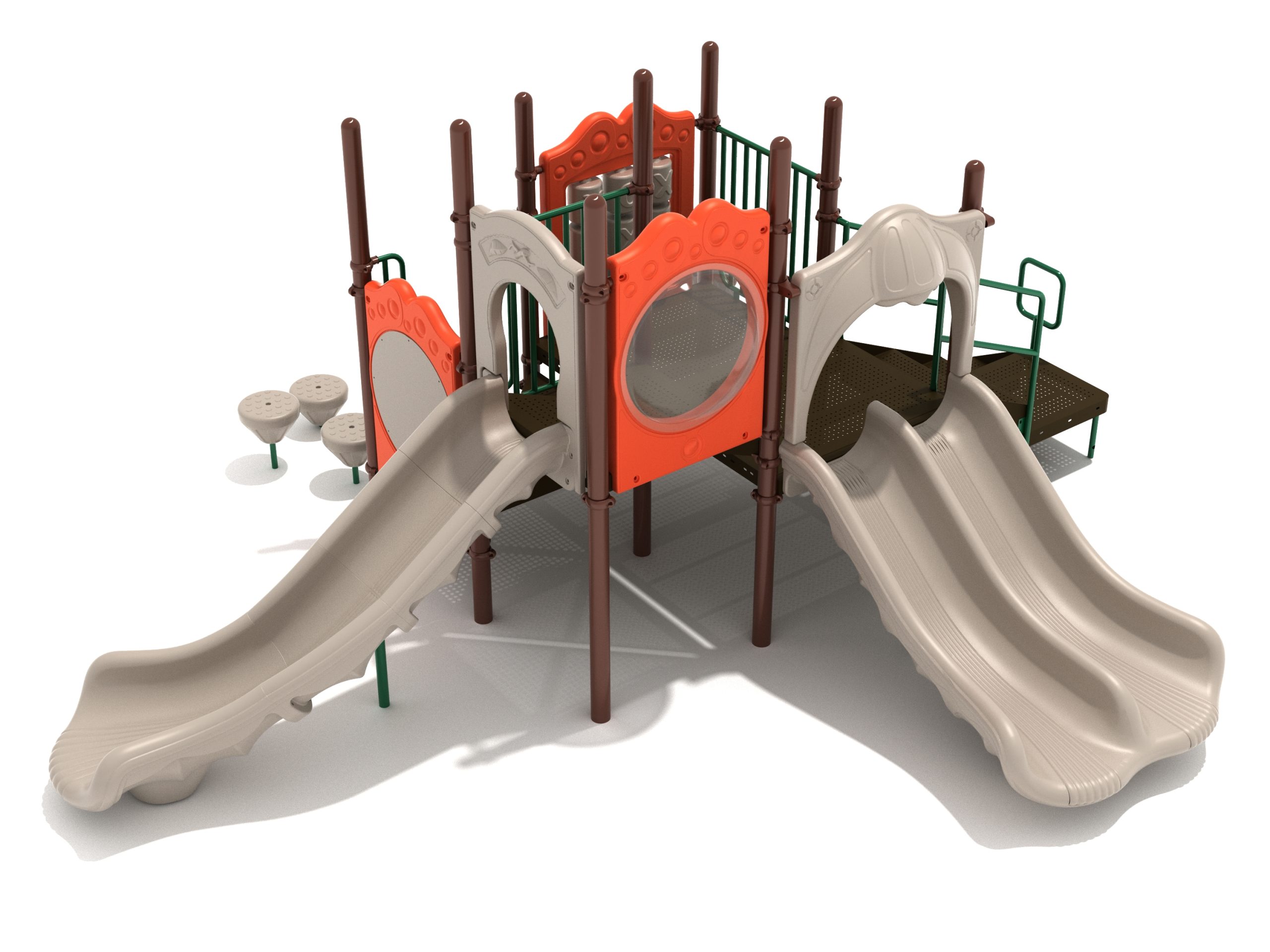With 3 sides and 4 decks of varying heights, Red Bud is a must-have in every playground. It gives kids a winding & interesting navigating experience that hones their physical skills. They start their adventure via the Maze Panel for solitary game time. Or, they may choose the Tic Tac Toe Panel for cooperative play with friends, socializing, and making friends. The Pebble Climber comes next. It lets kids develop strength and coordination. There’s a large square deck area that keeps their baby steps moving without colliding with each other. Then comes the Bubble Panel, where kids can get a view of your playground. While on the upper 48’’ deck, they can imagine themselves as hikers reaching the summit of a tall hill. All in all, Red Bud allows for safe and exciting play for kids under the age of 5.