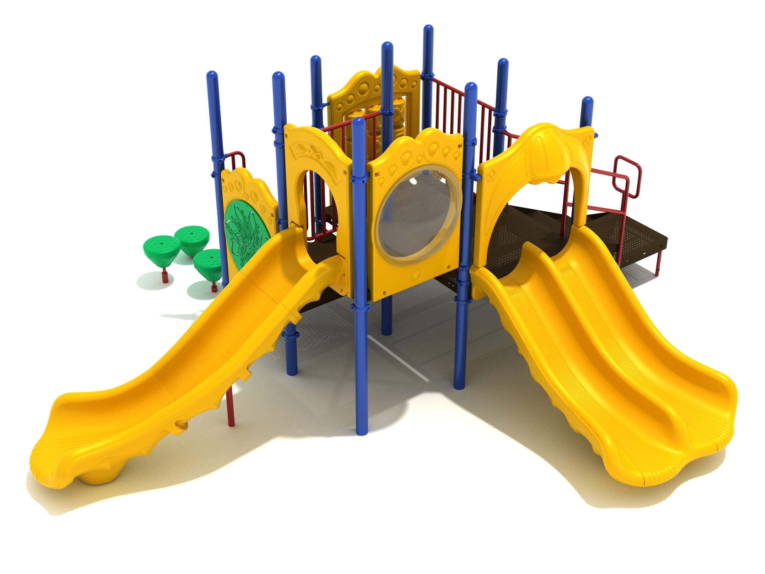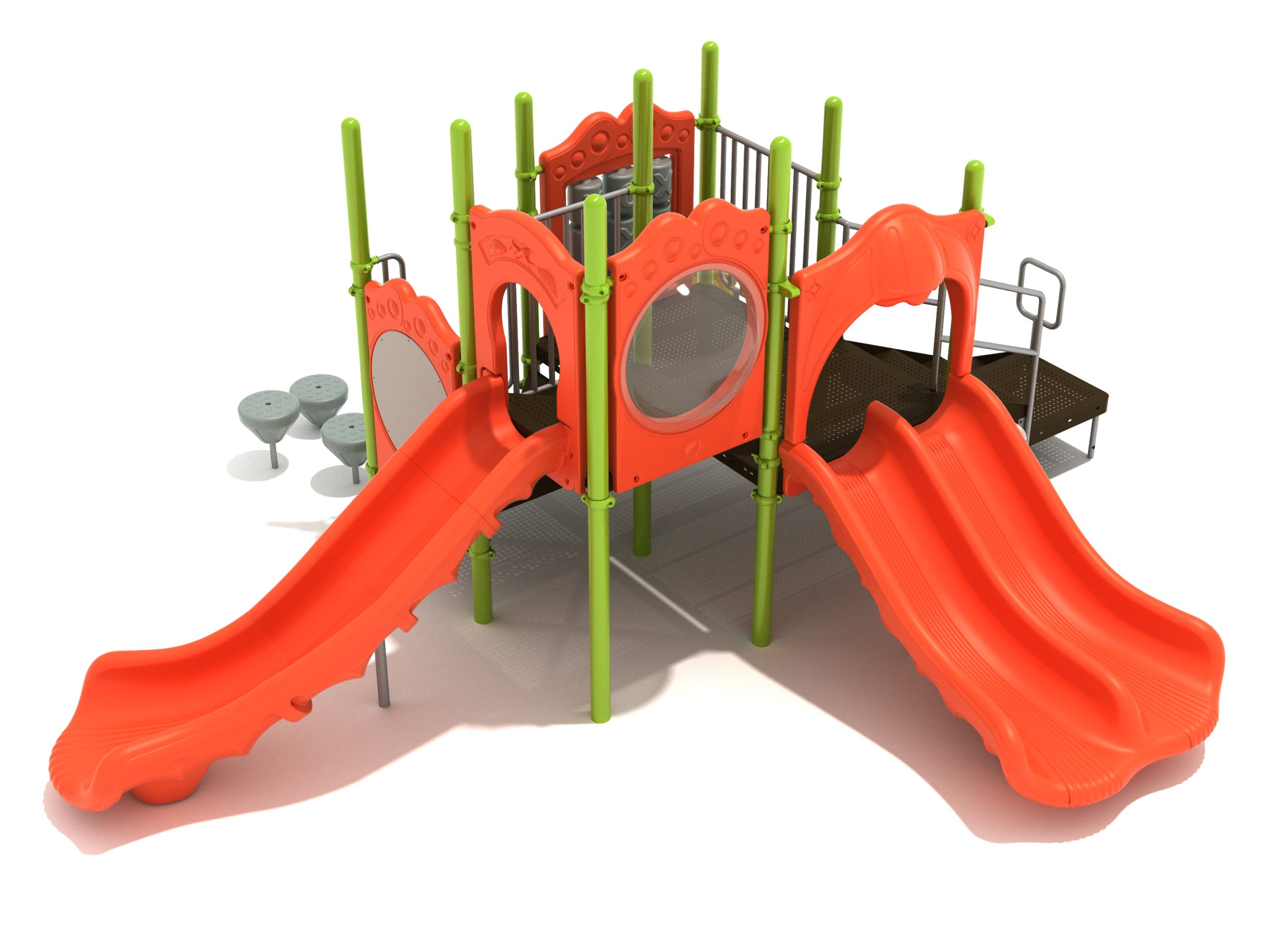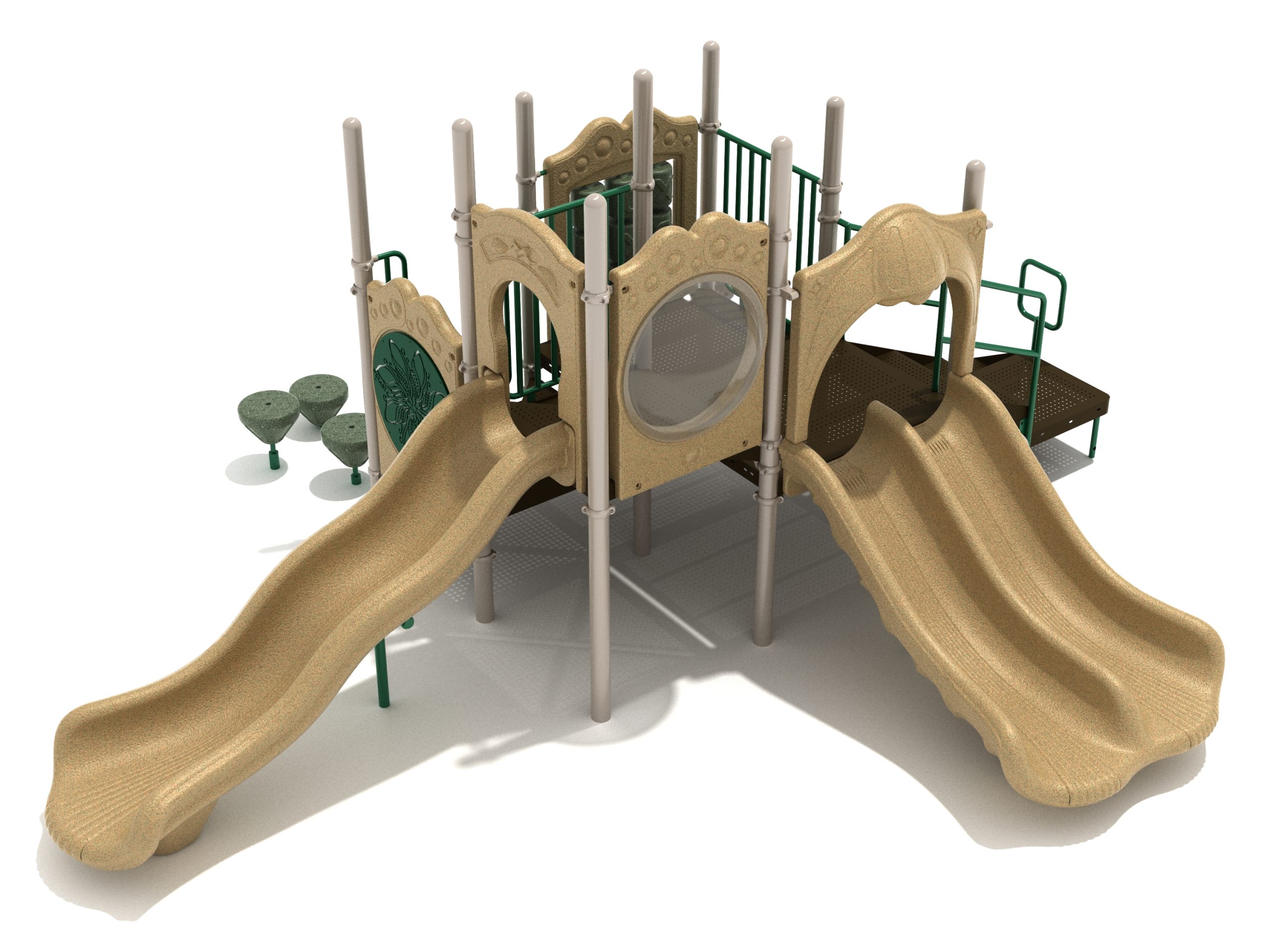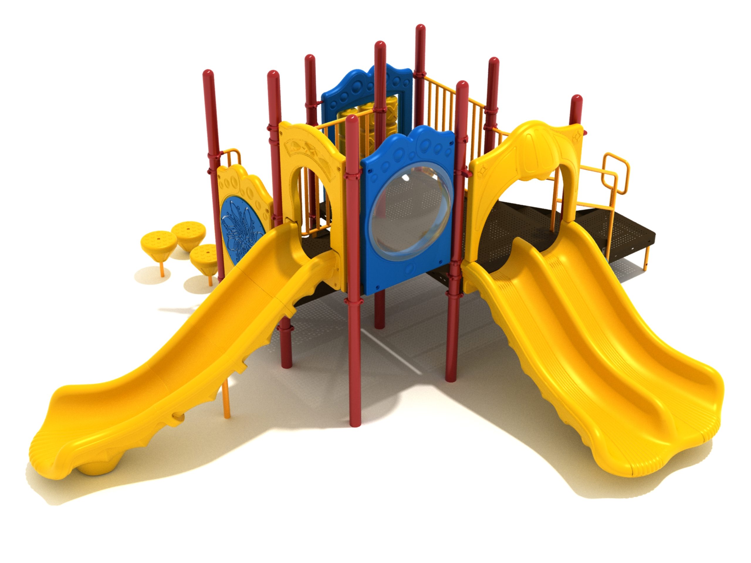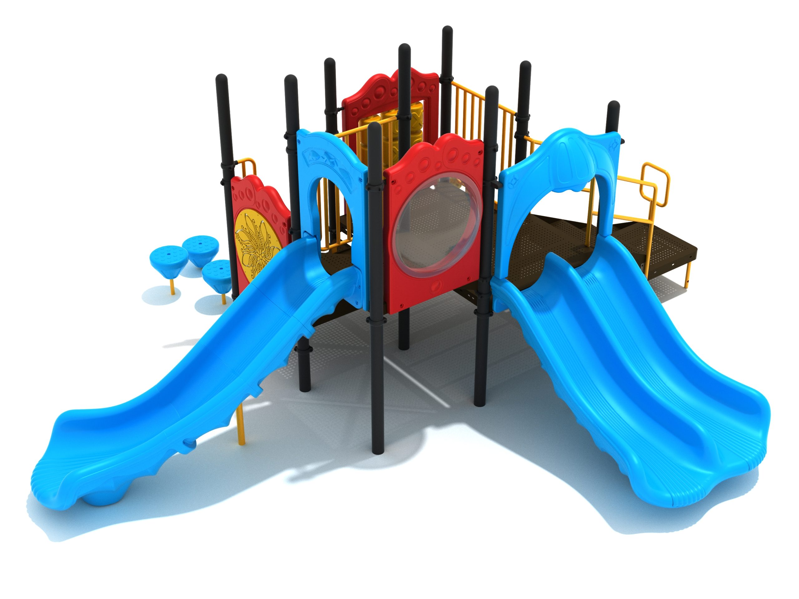 With 3 sides and 4 decks of varying heights, Red Bud is a must-have in every playground. It gives kids a winding & interesting navigating experience that hones their physical skills. They start their adventure via the Maze Panel for solitary game time. Or, they may choose the Tic Tac Toe Panel for cooperative play with friends, socializing, and making friends. The Pebble Climber comes next. It lets kids develop strength and coordination. There’s a large square deck area that keeps their baby steps moving without colliding with each other. Then comes the Bubble Panel, where kids can get a view of your playground. While on the upper 48’’ deck, they can imagine themselves as hikers reaching the summit of a tall hill. All in all, Red Bud allows for safe and exciting play for kids under the age of 5.