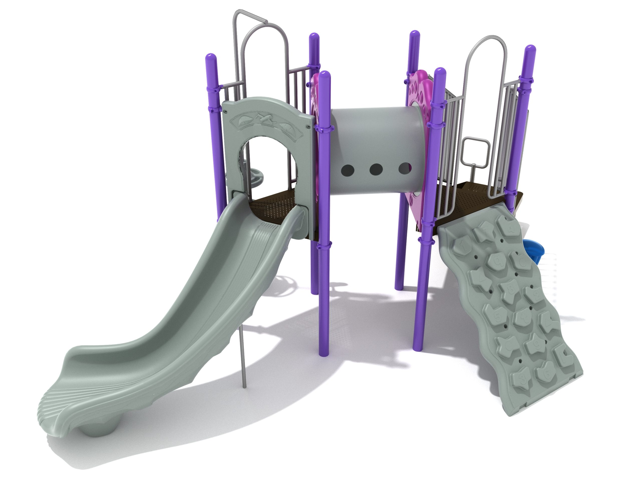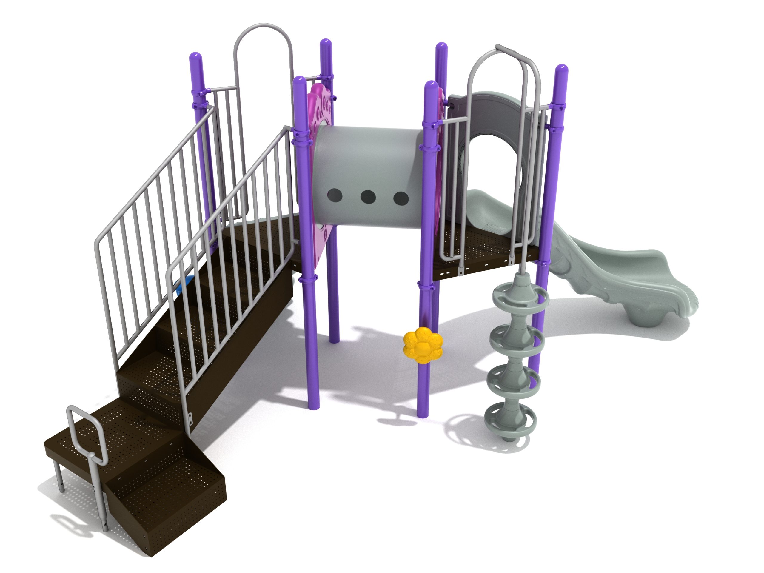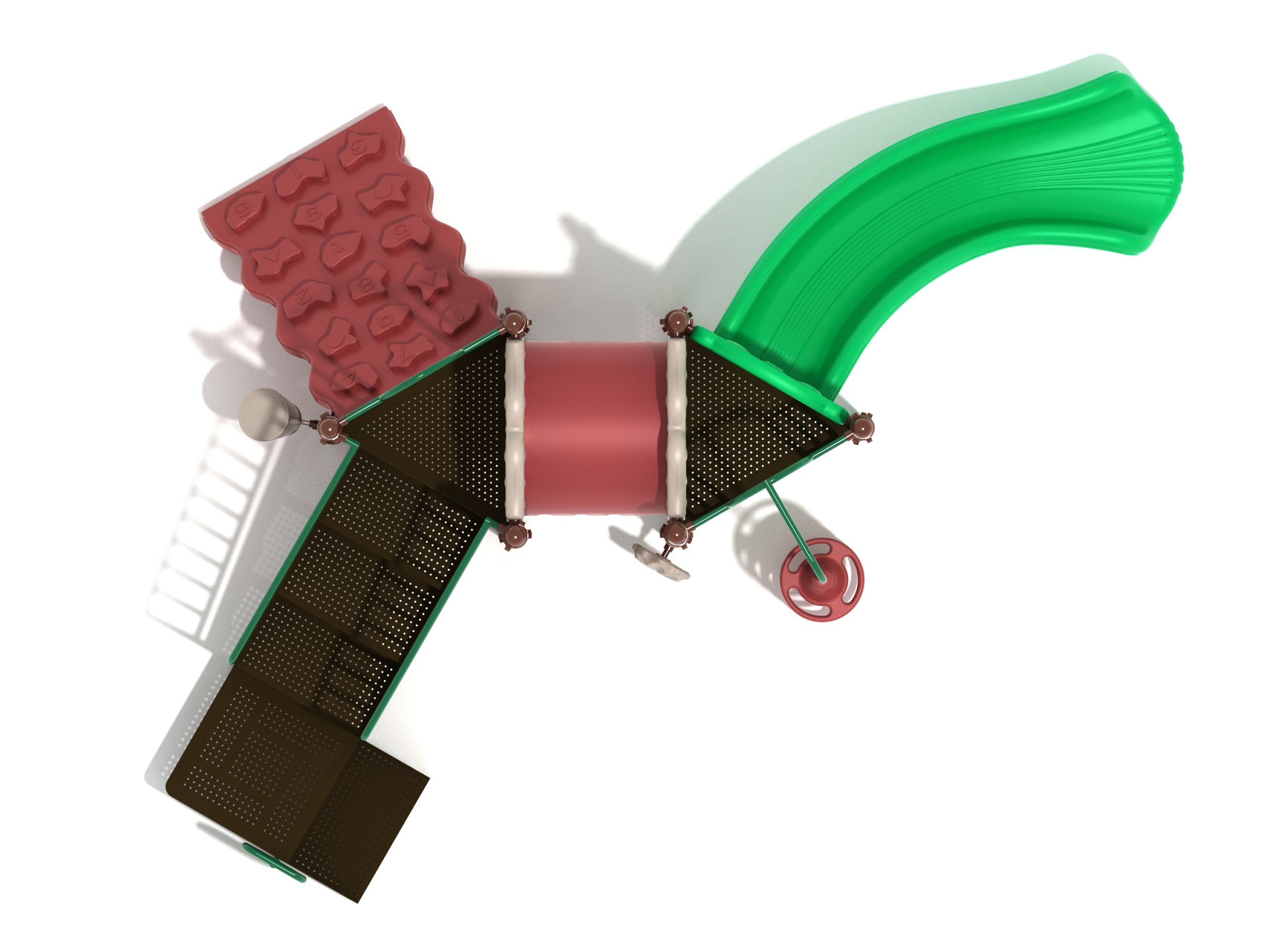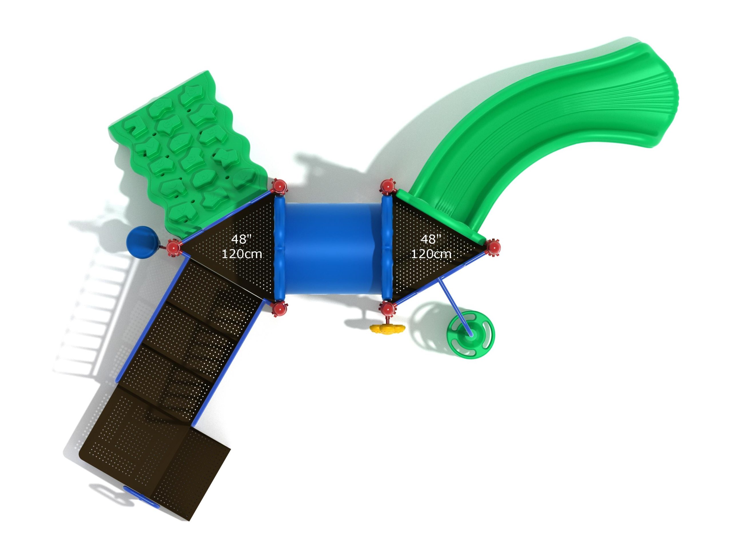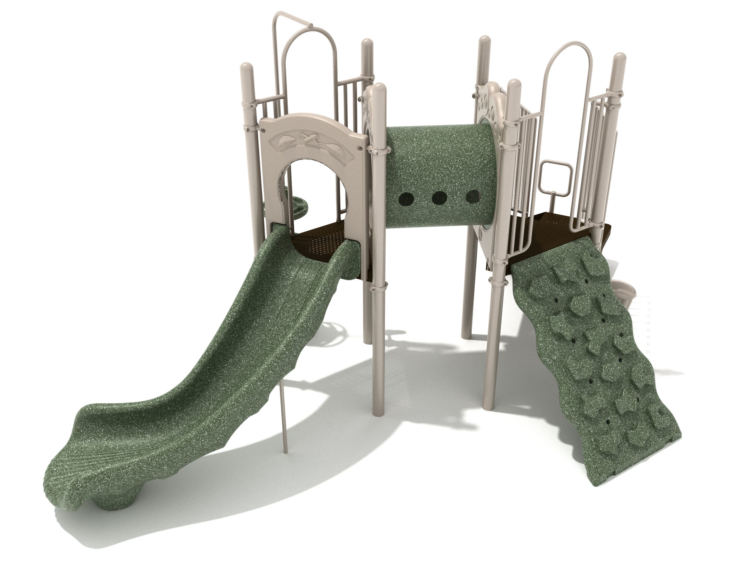 The Redmond play structure is will the hub of excitement on the playground that children will love to gather at. Made up of two triangular 48” elevated platforms that are connected by a tube bridge, this play structure is accessible by a number climber, a pod climber, or by stairs. Children can take a right turn slide that attaches itself to one of the triangular elevated platforms off of the play structure. A rain wheel and a single drum found on the ground level provide opportunities for on-ground play and also make the Redmond play structure ADA compliant. This play structure is sure to be one of the most popular places on the playground, and children will love to gather around it as well as play on it. It is a great deal. This play structure is designed for children who are between the ages of 2 and 12 years old.