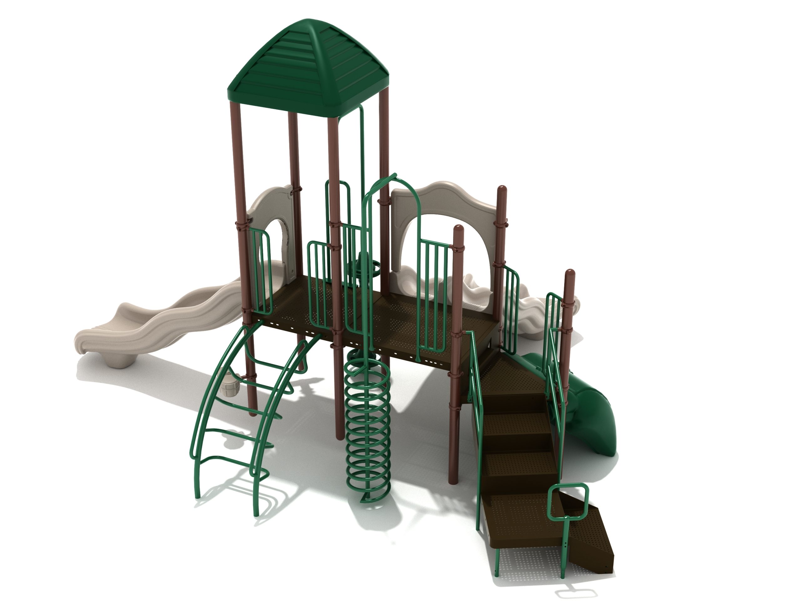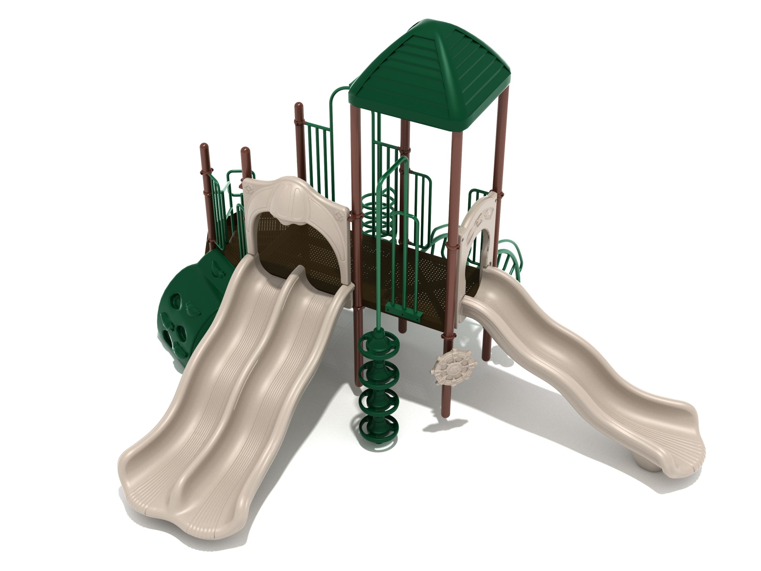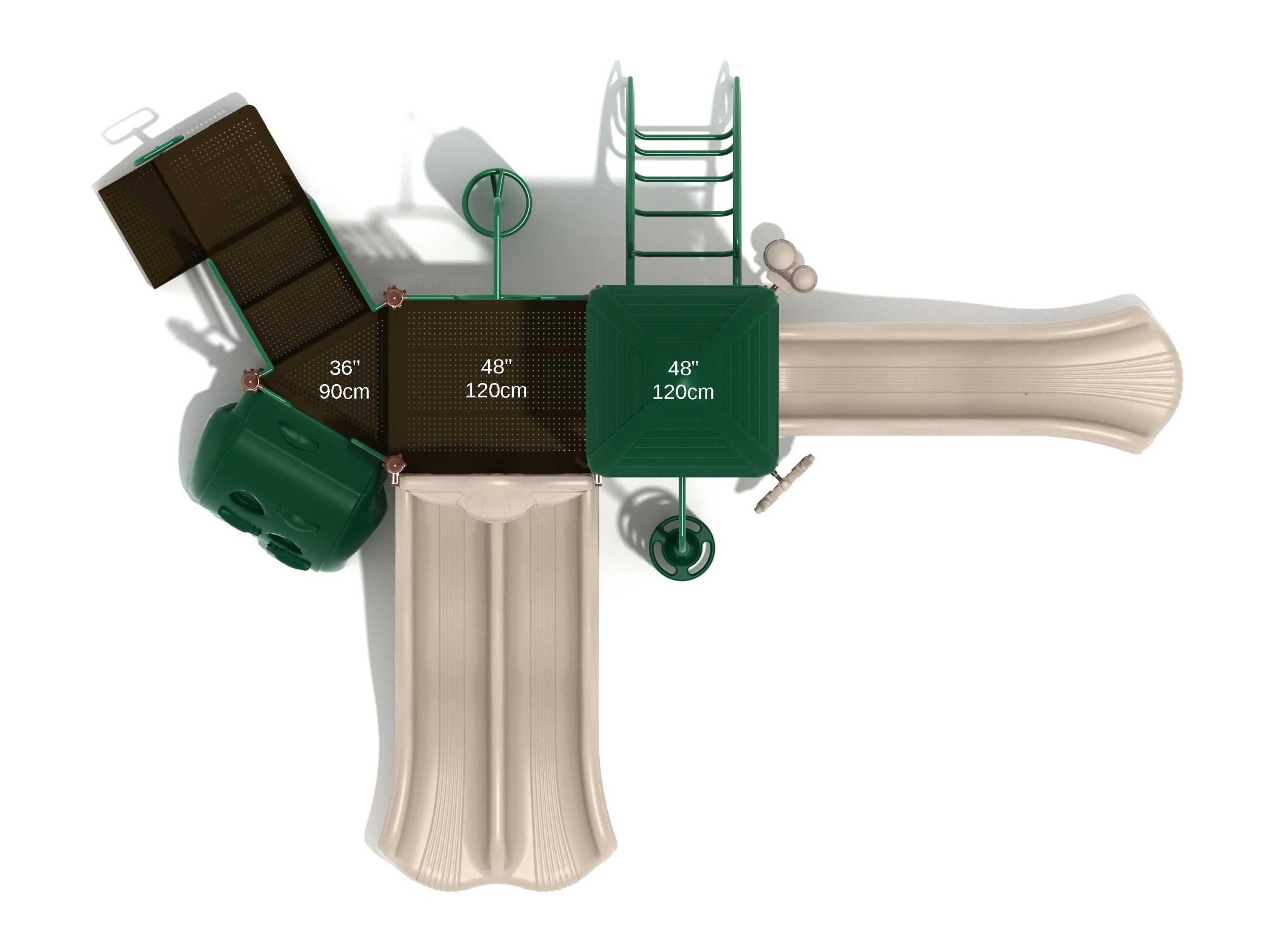 It’s important for children to experience as much play as possible as that’s where a lot of learning and personality building takes place, so the Renton has a range of features to support this development from a young age. There’s Bongos to be bashed for musical fun and a spinning Ship’s Wheel to bring pirate adventures to life. Young muscles are developed alongside important hand-eye coordination and motor skills thanks to the multiple ways to climb the structure. They can choose from a Carrot Climber featuring 3D holds molded in carrot shapes, a Pod Climber ideal for little hands and feet to navigate, a Spiral Climber to challenge the mind, and an Inverted Arch Ladder that adds an element of balance to the climb. Children can choose to take the bumpy Wave Slide down to the ground or grab a friend and see who can whoosh down the Double Slide quicker. The structure is made from weather-proof material for fun any season of the year.