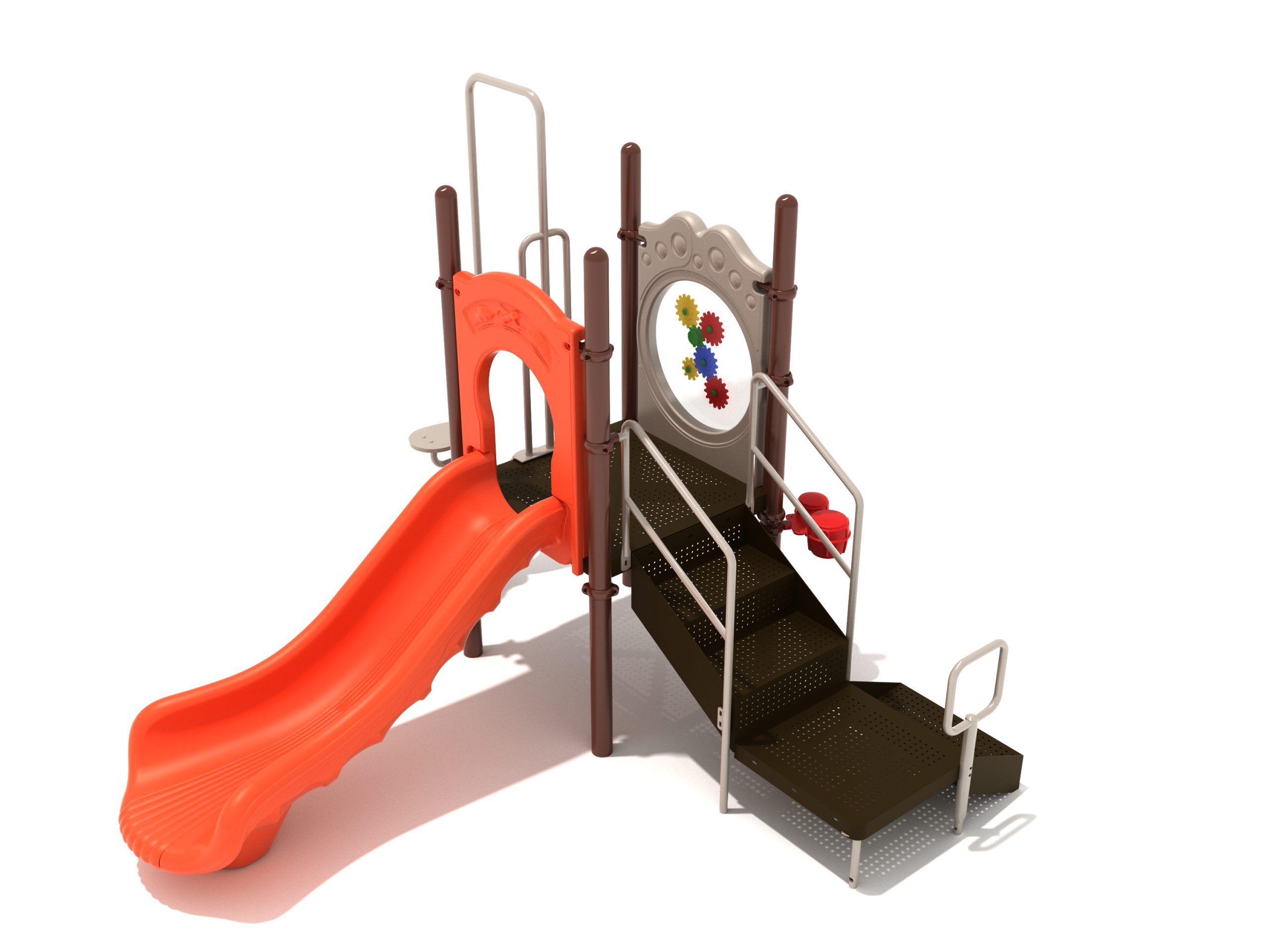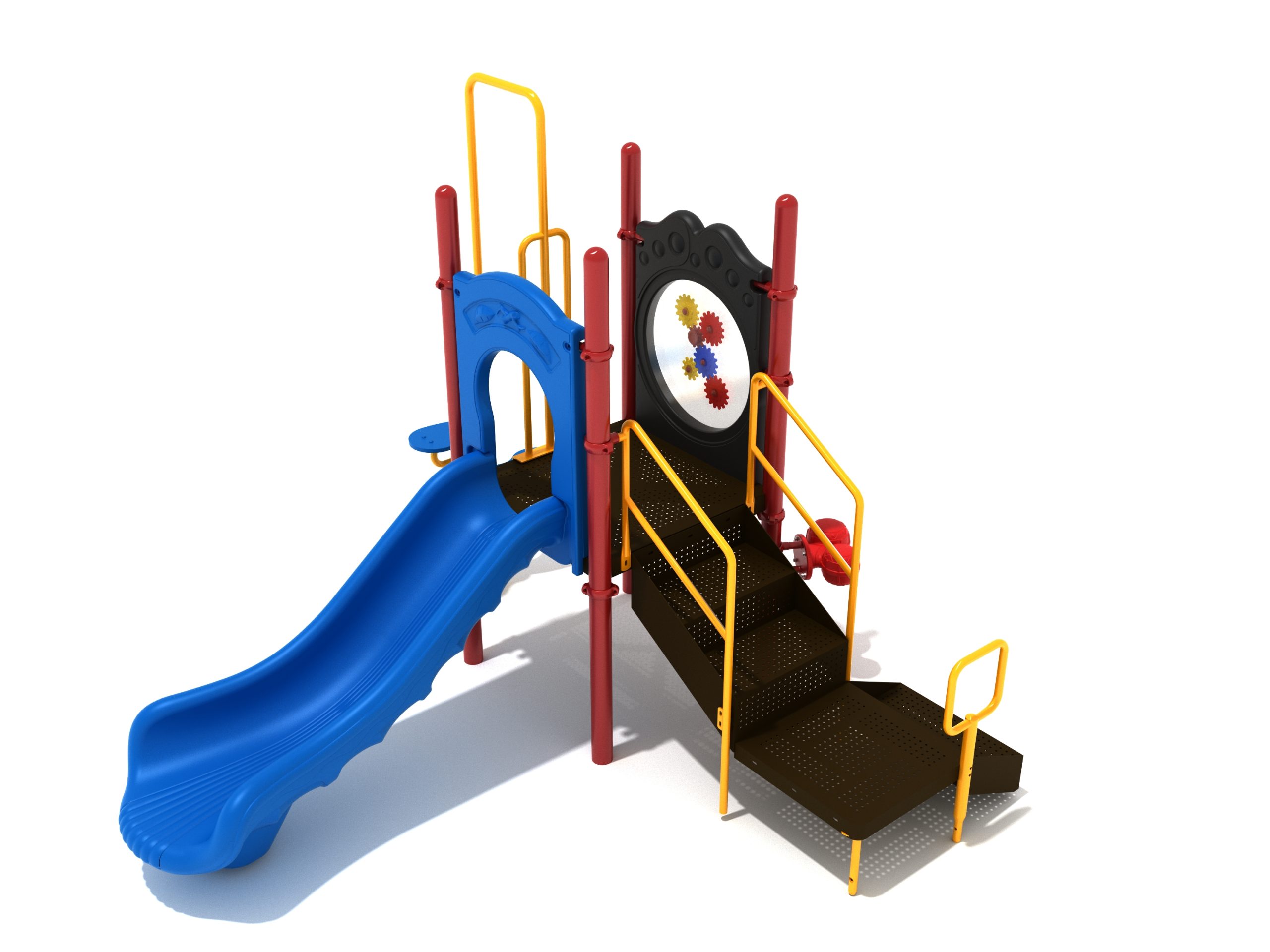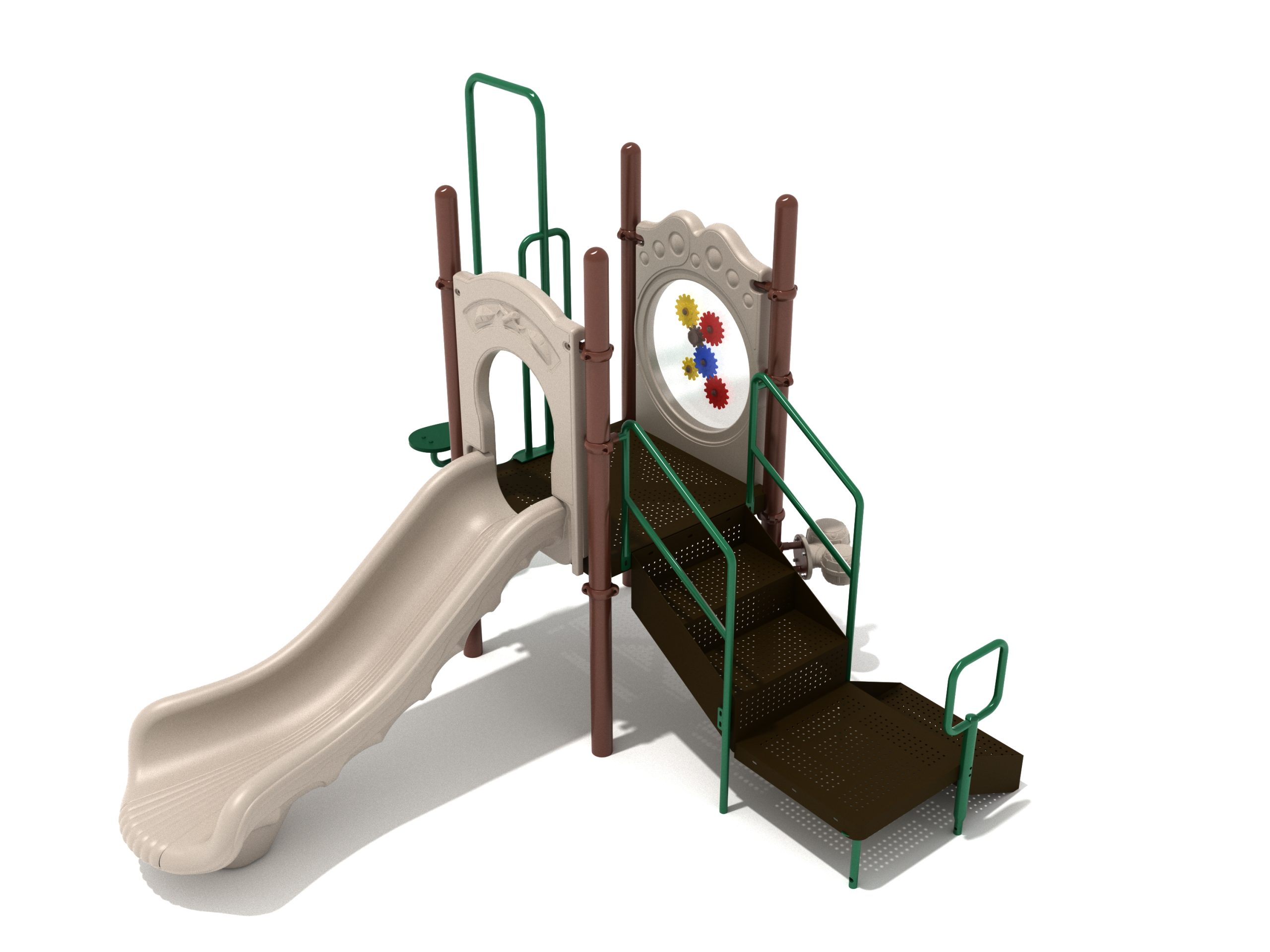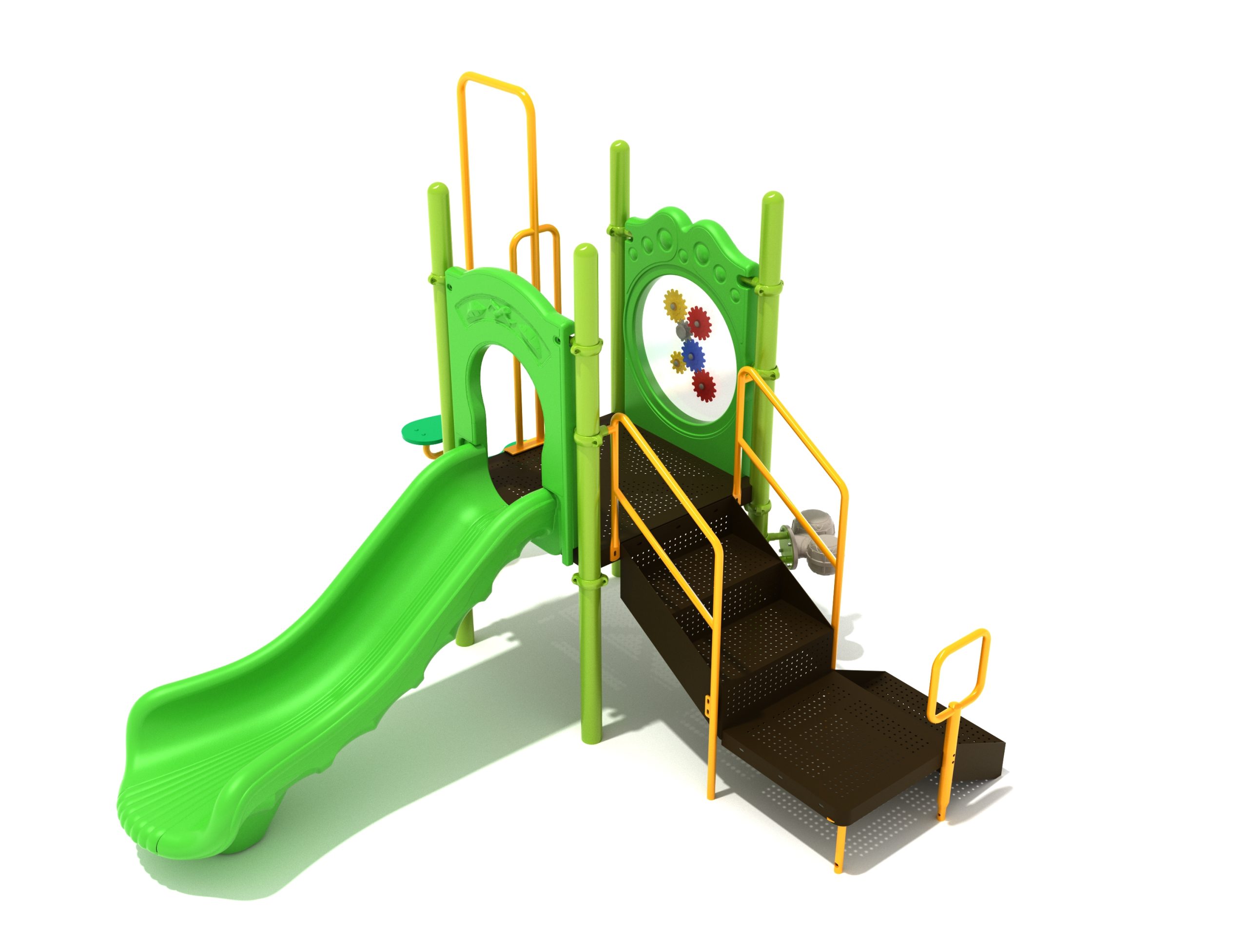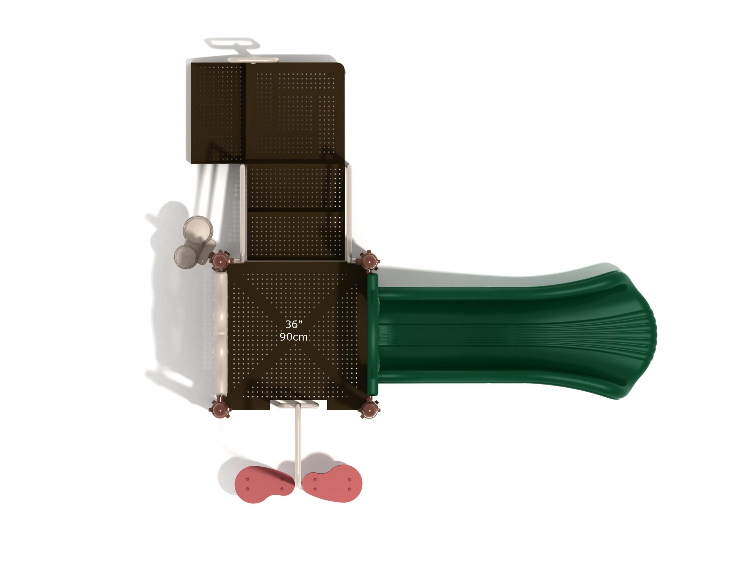 Younger children will love the Rochester play center as it combines all of the fun things kids enjoy including climbing, sliding and making music. The Pea Pod Climber provides a challenge for small bodies as they have to navigate their way up onto the structure using alternating foot platforms. This kind of maneuvering assists with coordination skills as well as balance and grip. When they reach the top they can be rewarded with a colorful and interactive Gear Panel that can be twisted with a central knob to show them how multiple cogs can work together. Kids can also make use of the Straight Slide on the Rochester which delivers them quickly to the ground level where they can play on the Bongos and learn about rhythm and beats. It’s important that children’s imaginations are stimulated from an early age and it’s easy to pretend the structure is a mountain to climb or a spaceship ready to take off.