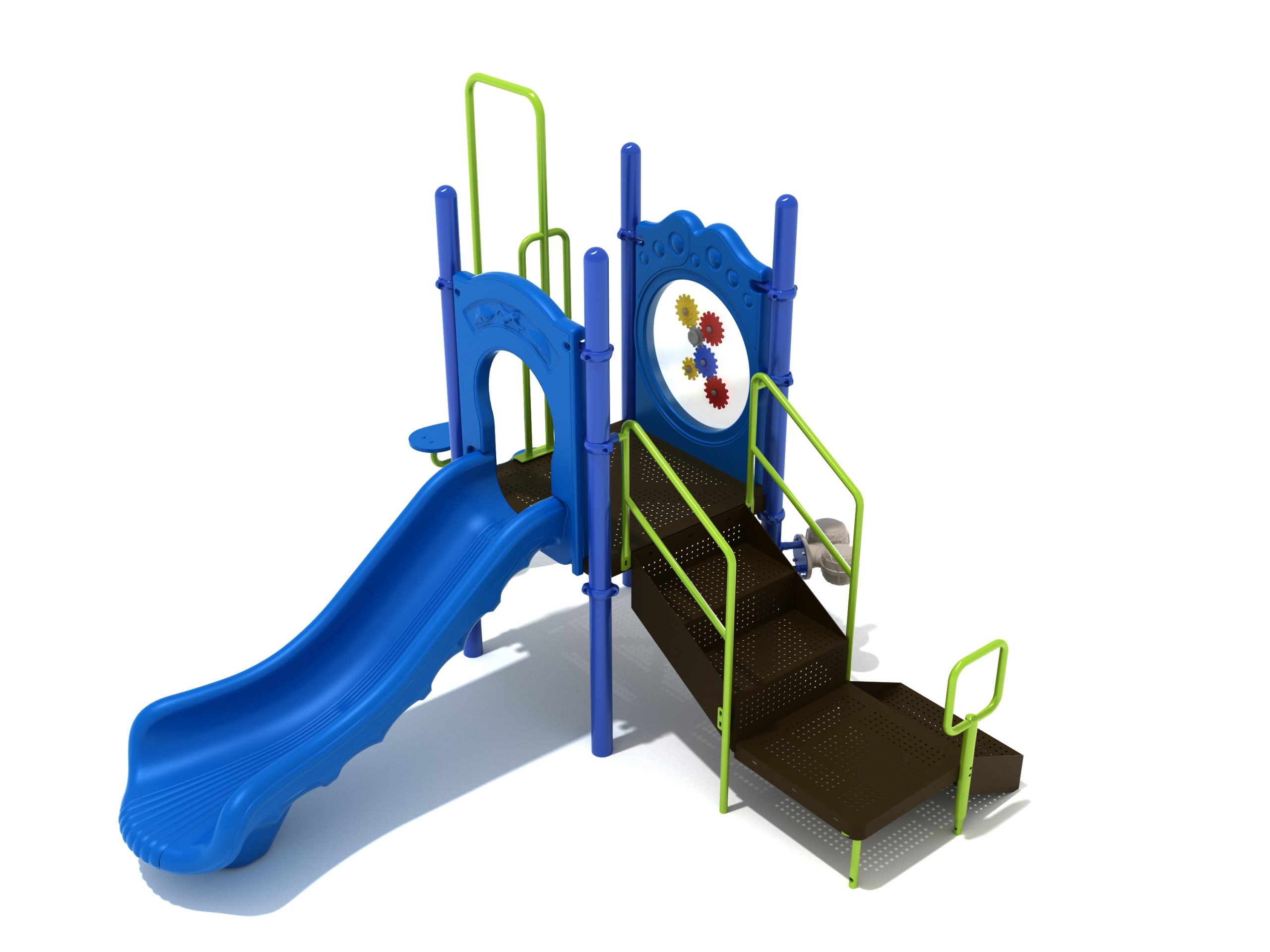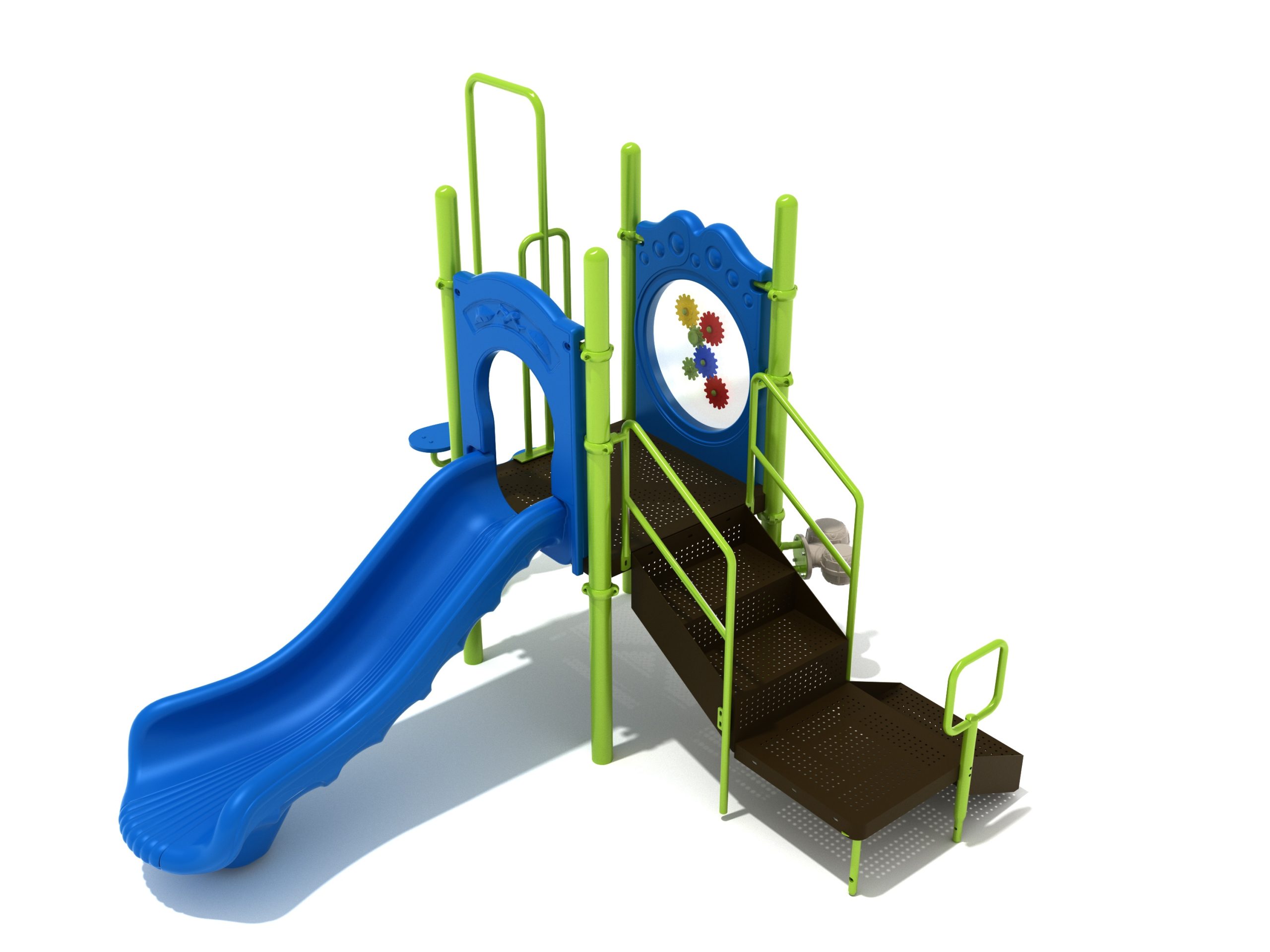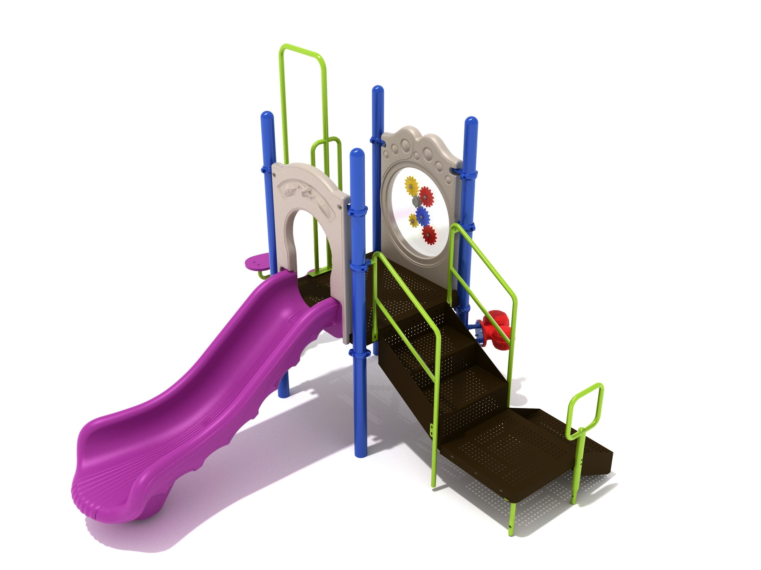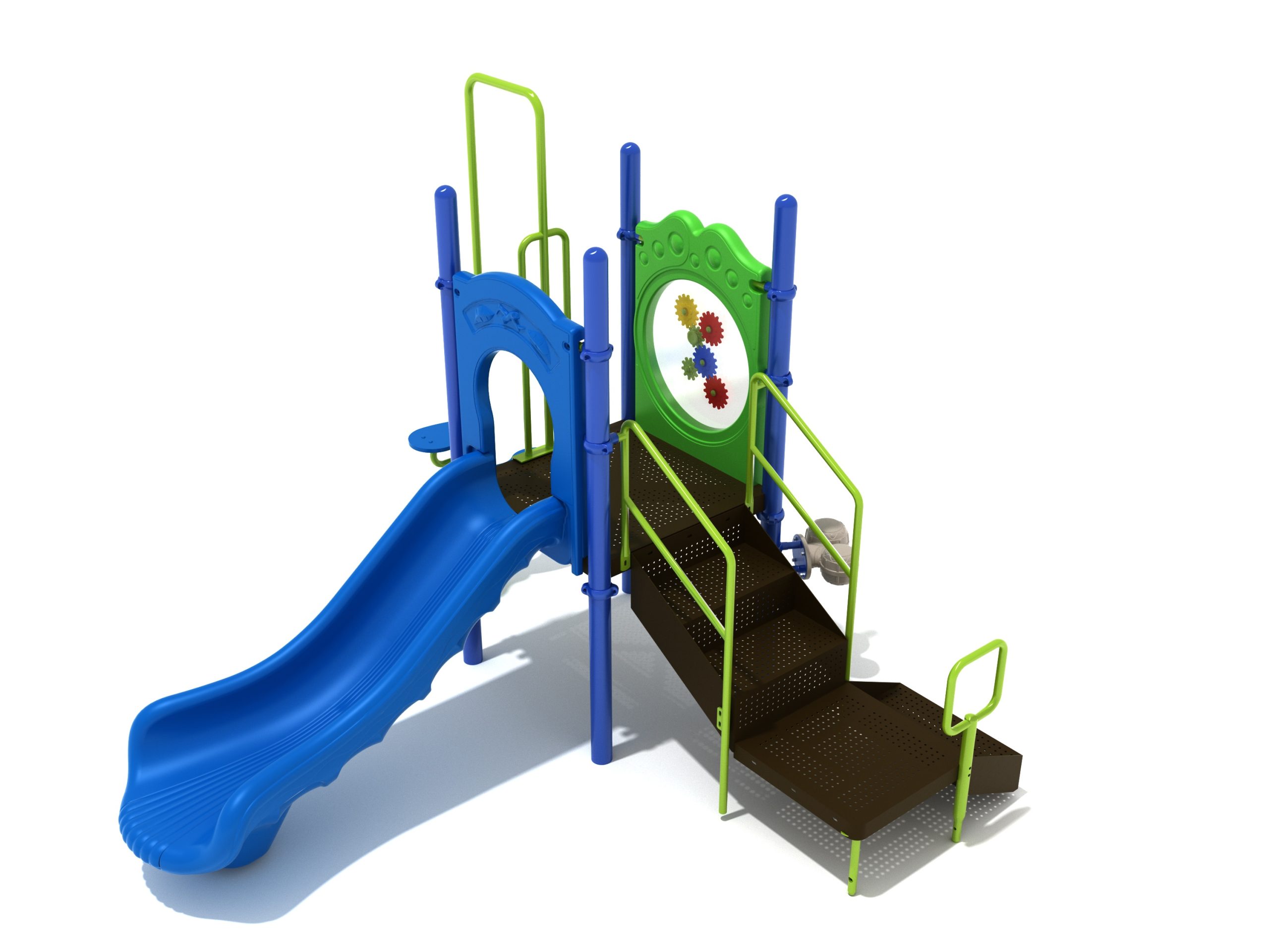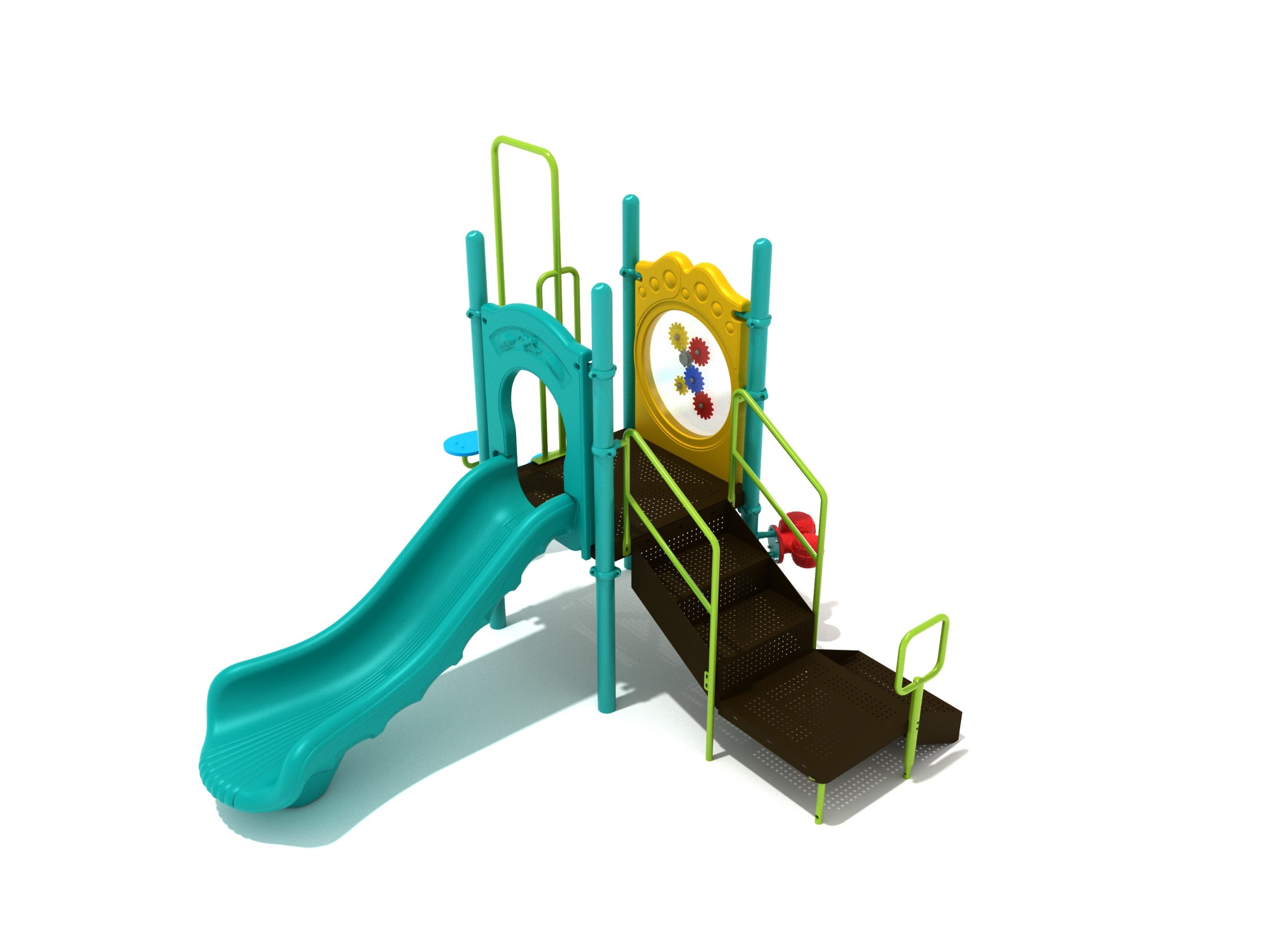 Younger children will love the Rochester play center as it combines all of the fun things kids enjoy including climbing, sliding and making music. The Pea Pod Climber provides a challenge for small bodies as they have to navigate their way up onto the structure using alternating foot platforms. This kind of maneuvering assists with coordination skills as well as balance and grip. When they reach the top they can be rewarded with a colorful and interactive Gear Panel that can be twisted with a central knob to show them how multiple cogs can work together. Kids can also make use of the Straight Slide on the Rochester which delivers them quickly to the ground level where they can play on the Bongos and learn about rhythm and beats. It’s important that children’s imaginations are stimulated from an early age and it’s easy to pretend the structure is a mountain to climb or a spaceship ready to take off.