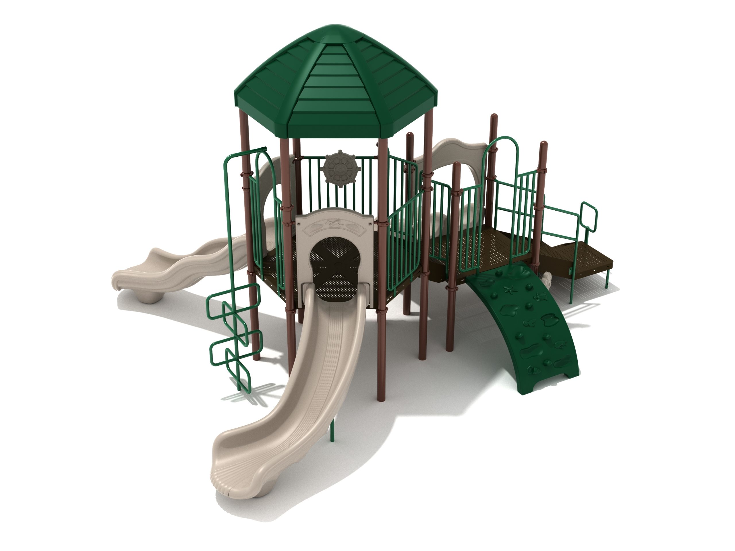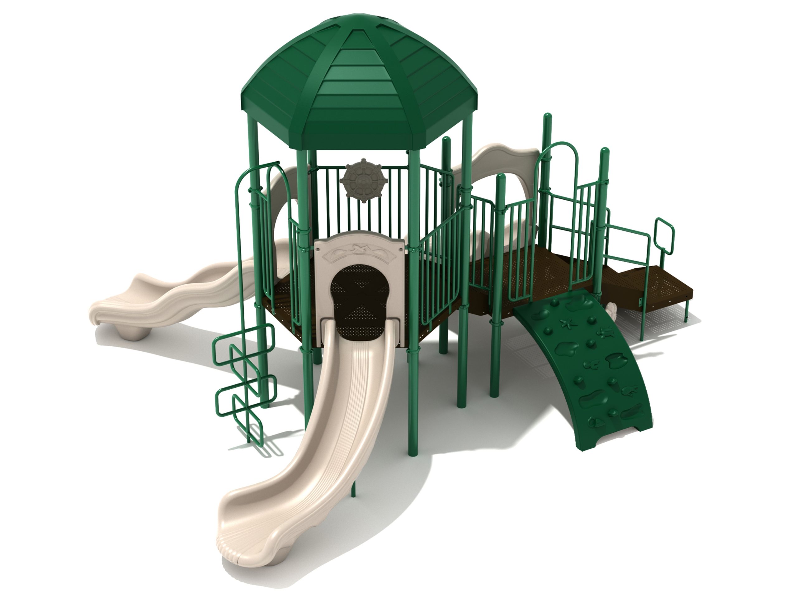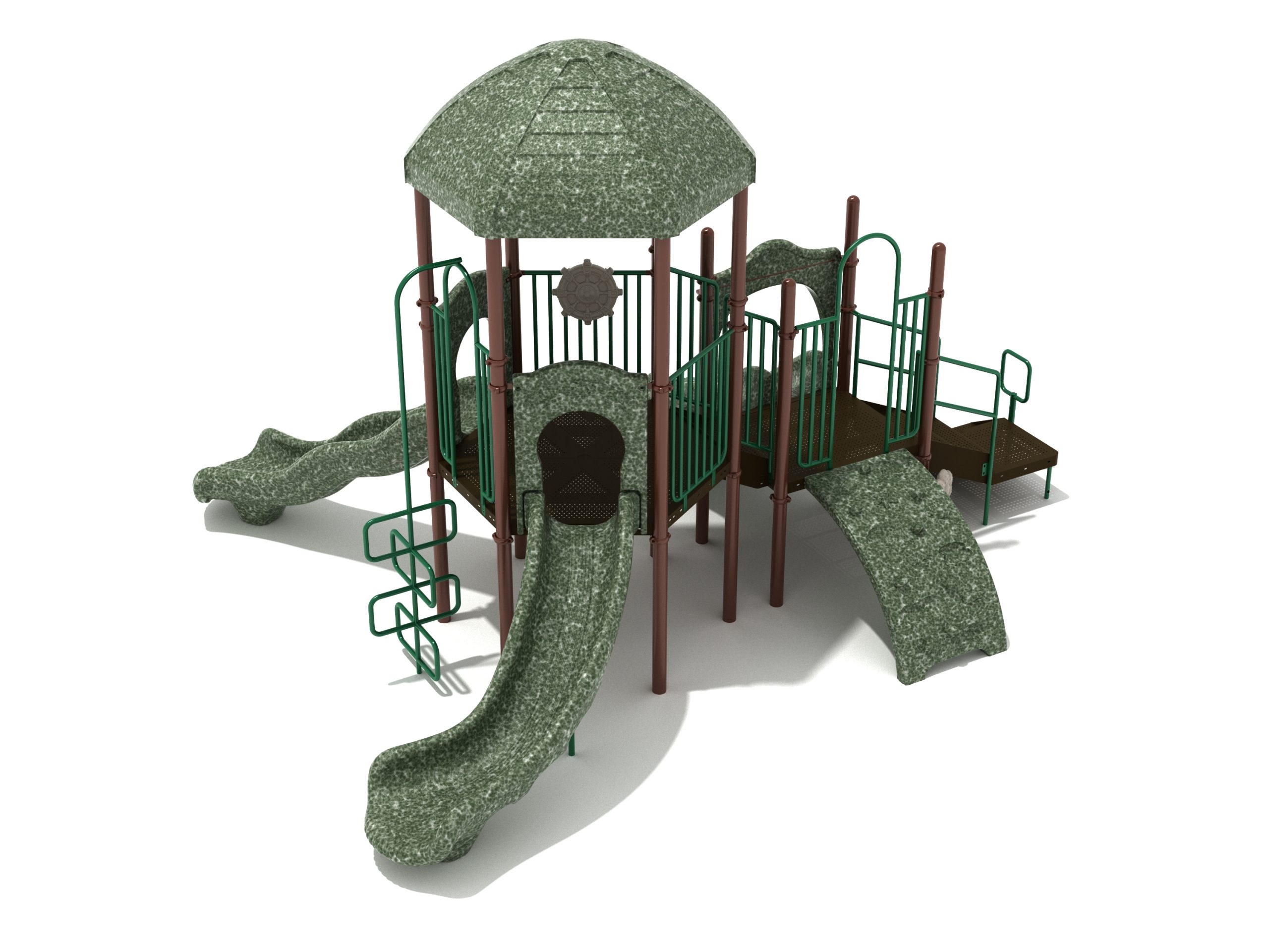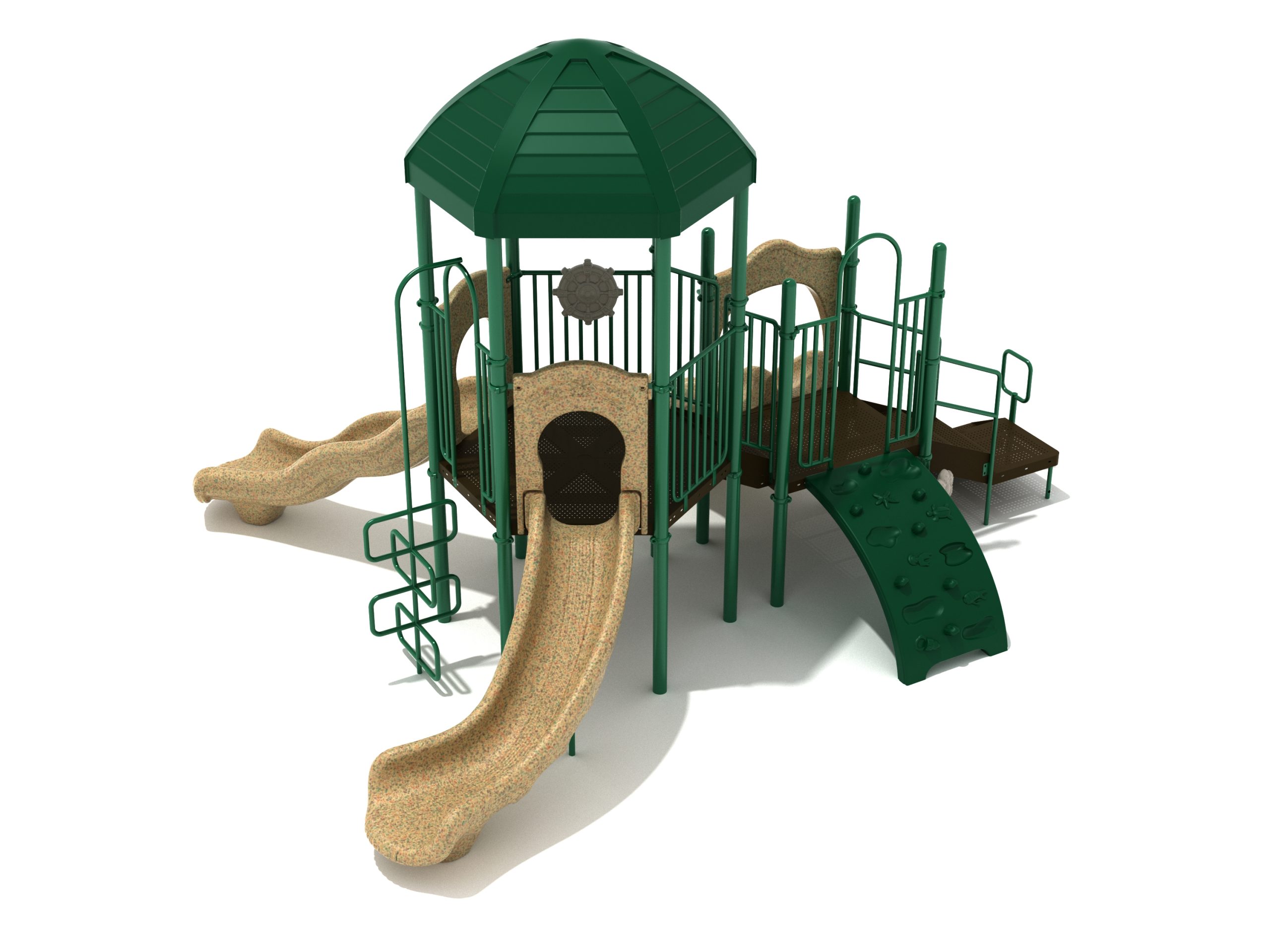 Rockford has a hut-like structure and provides loads of fun to the young troublemakers. It has three very easy entry points: the Transfer Station, the Ribbon Climber, and the Sea Creature Climber. Kids who are younger and haven’t learned to climb can use the Transfer Station to get up the deck, while mature kids can challenge themselves a little with the Ribbon or Sea Creature Climber. Up on the deck, they will find a Bubble Panel, which they can use to take a little peek at the outside and wave to their guardians or parents. There’s also a Ship’s Wheel attached to one of the rails that can be used to play ship-related pretend games. There’s also a roof covering the highest deck, which is especially helpful during summer. After playing on the deck, kids can slide their way down through one of the 3 slides and enjoy the bumps along the way.
