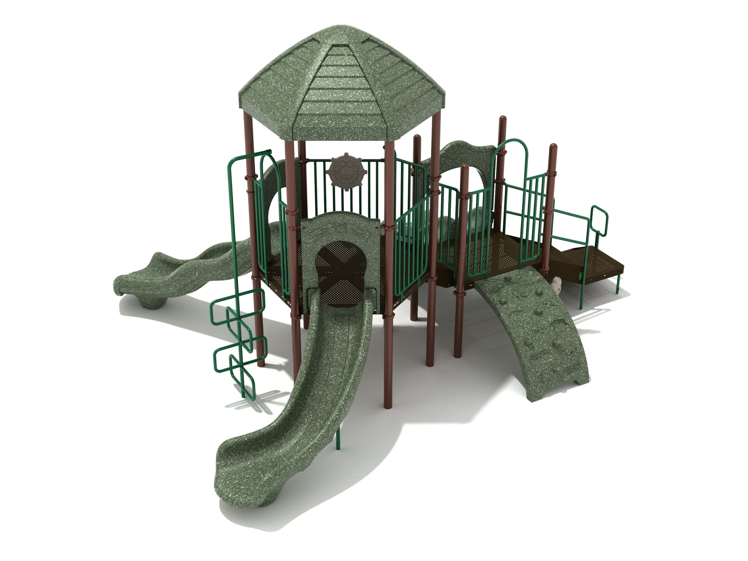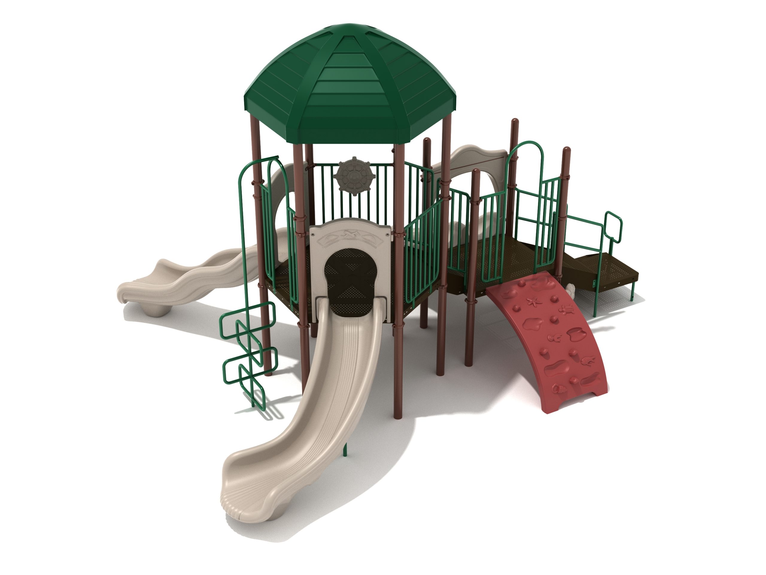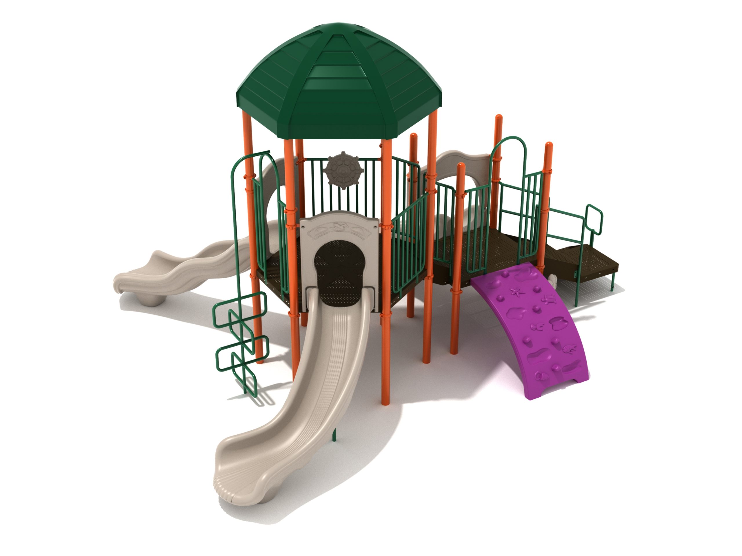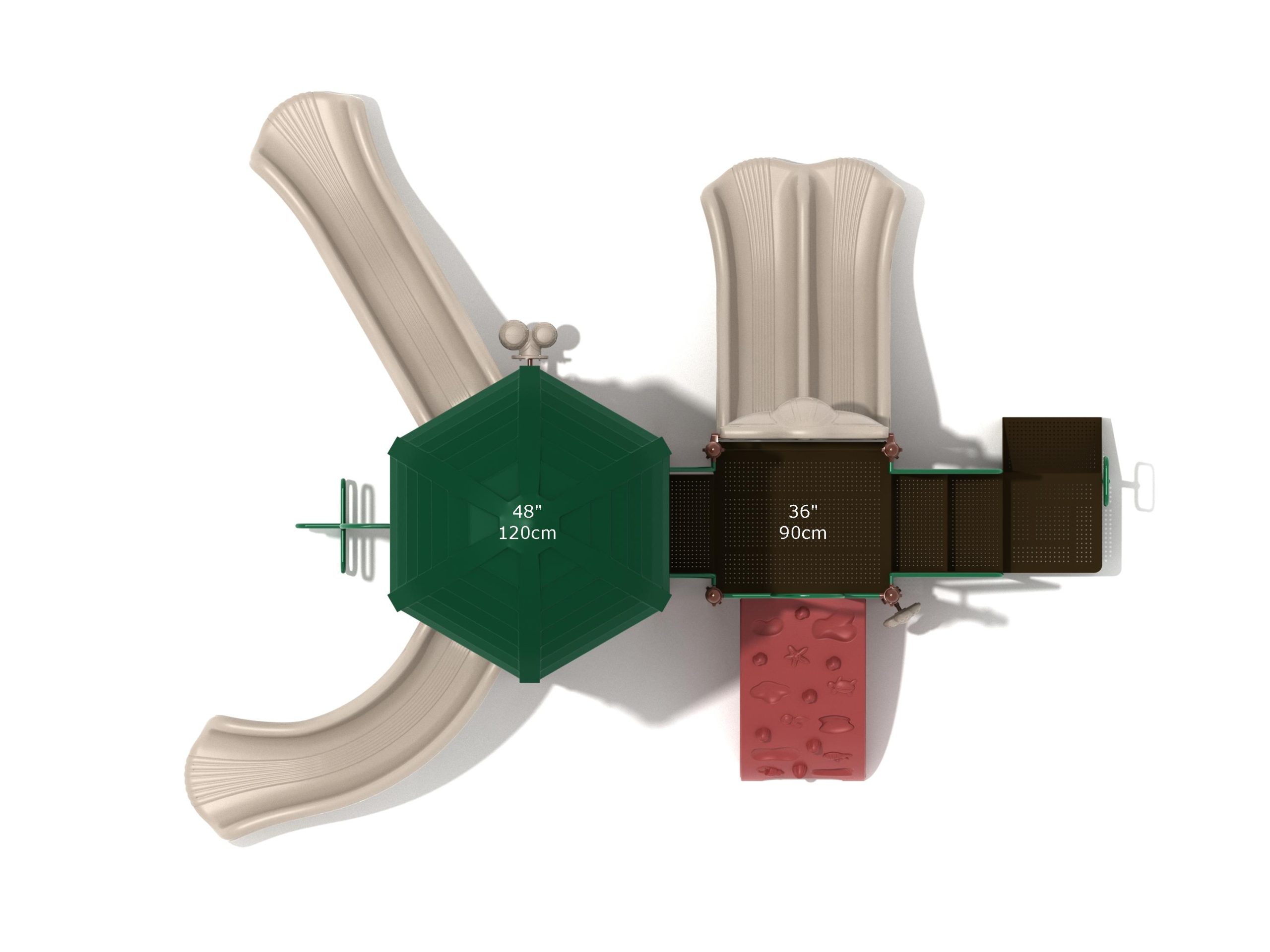 Rockford has a hut-like structure and provides loads of fun to the young troublemakers. It has three very easy entry points: the Transfer Station, the Ribbon Climber, and the Sea Creature Climber. Kids who are younger and haven’t learned to climb can use the Transfer Station to get up the deck, while mature kids can challenge themselves a little with the Ribbon or Sea Creature Climber. Up on the deck, they will find a Bubble Panel, which they can use to take a little peek at the outside and wave to their guardians or parents. There’s also a Ship’s Wheel attached to one of the rails that can be used to play ship-related pretend games. There’s also a roof covering the highest deck, which is especially helpful during summer. After playing on the deck, kids can slide their way down through one of the 3 slides and enjoy the bumps along the way.