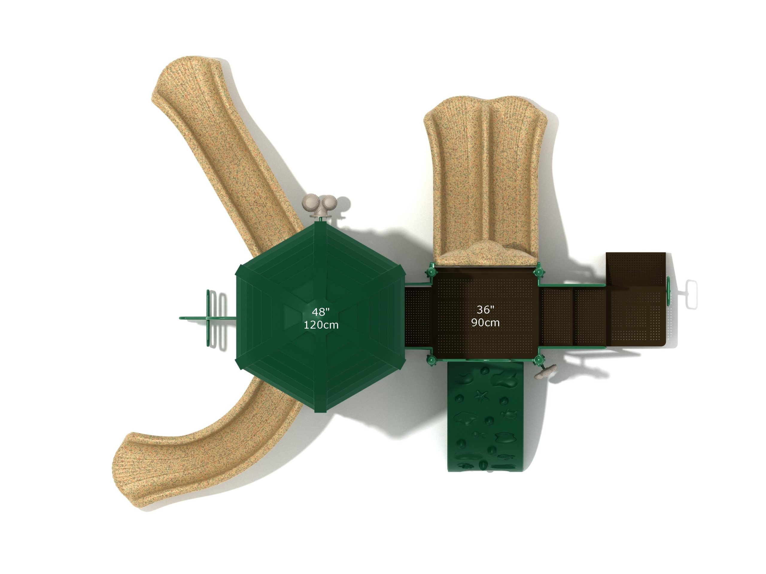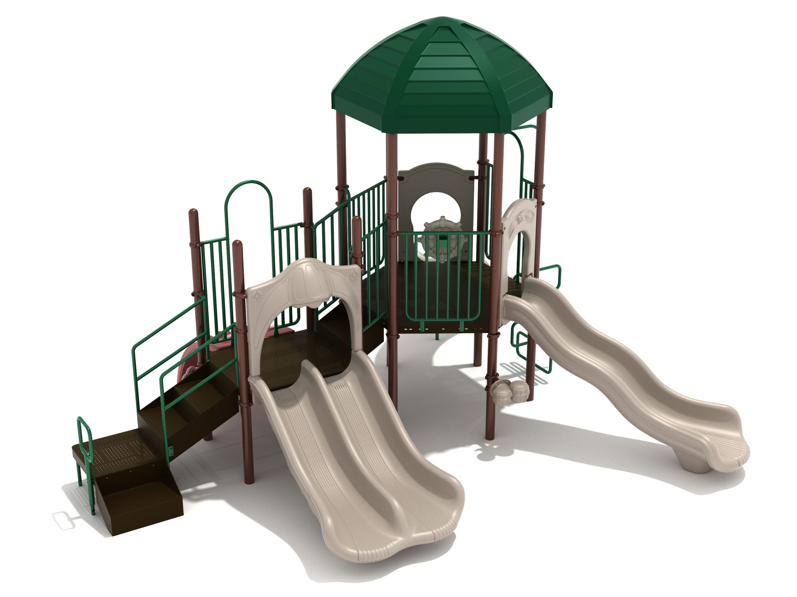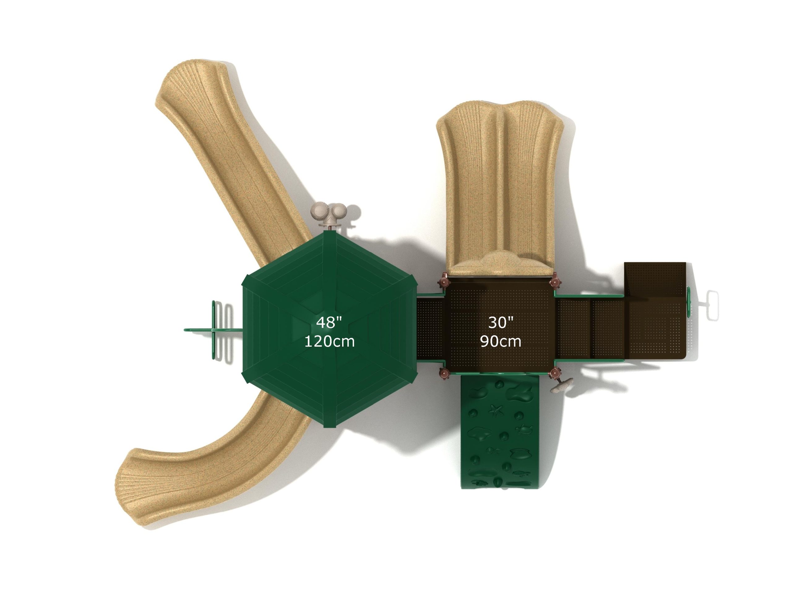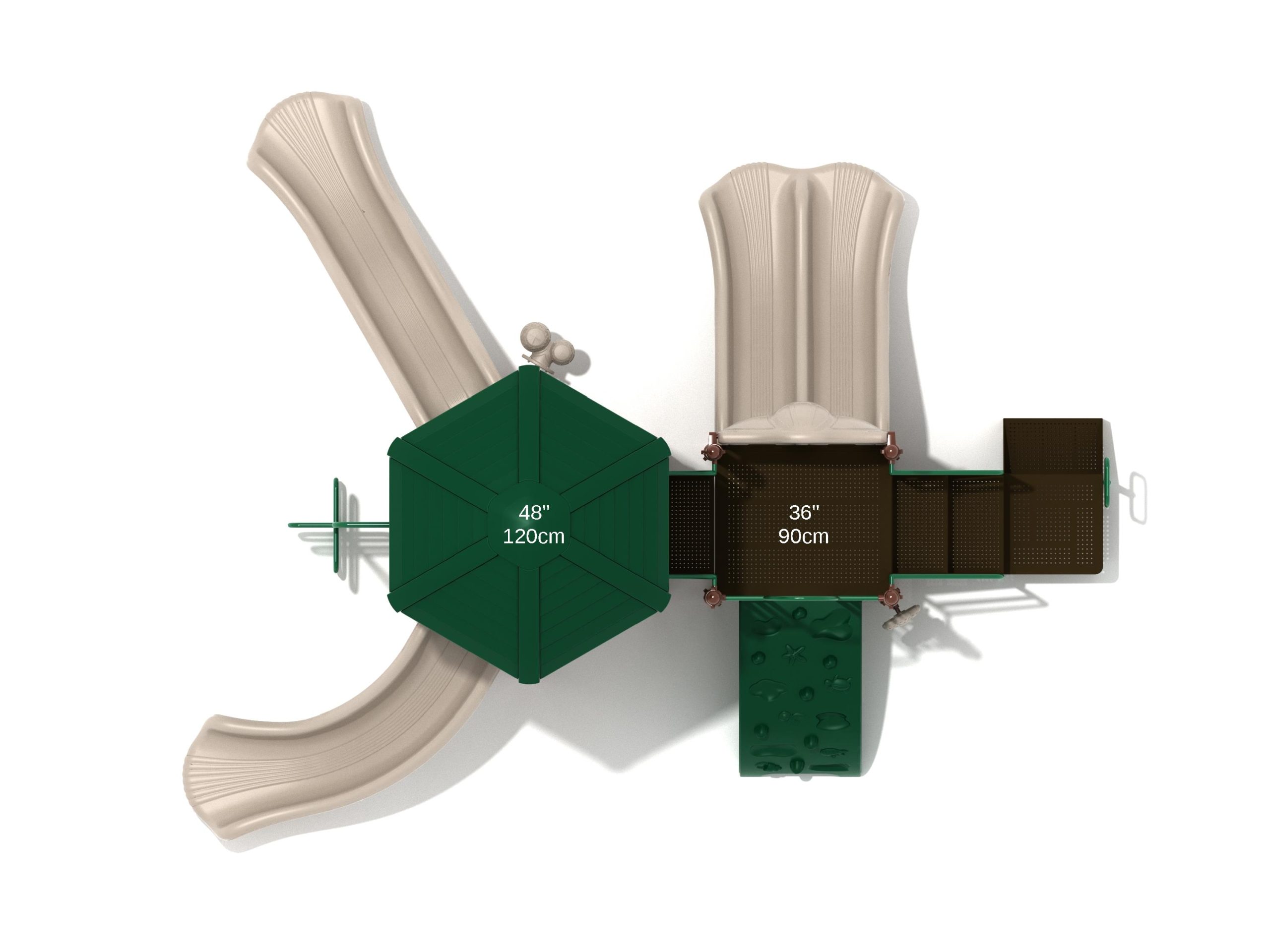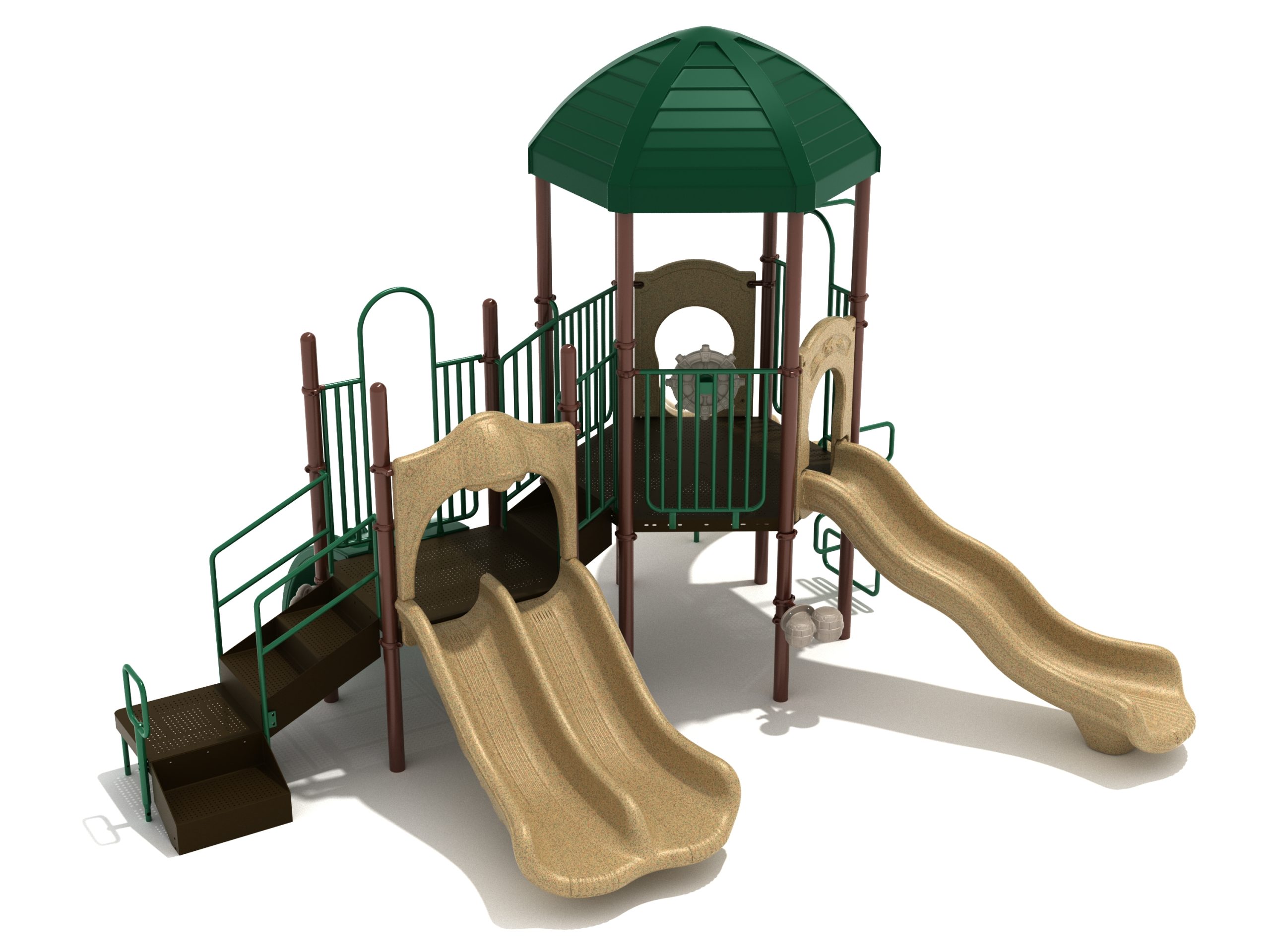 Rockford has a hut-like structure and provides loads of fun to the young troublemakers. It has three very easy entry points: the Transfer Station, the Ribbon Climber, and the Sea Creature Climber. Kids who are younger and haven’t learned to climb can use the Transfer Station to get up the deck, while mature kids can challenge themselves a little with the Ribbon or Sea Creature Climber. Up on the deck, they will find a Bubble Panel, which they can use to take a little peek at the outside and wave to their guardians or parents. There’s also a Ship’s Wheel attached to one of the rails that can be used to play ship-related pretend games. There’s also a roof covering the highest deck, which is especially helpful during summer. After playing on the deck, kids can slide their way down through one of the 3 slides and enjoy the bumps along the way.