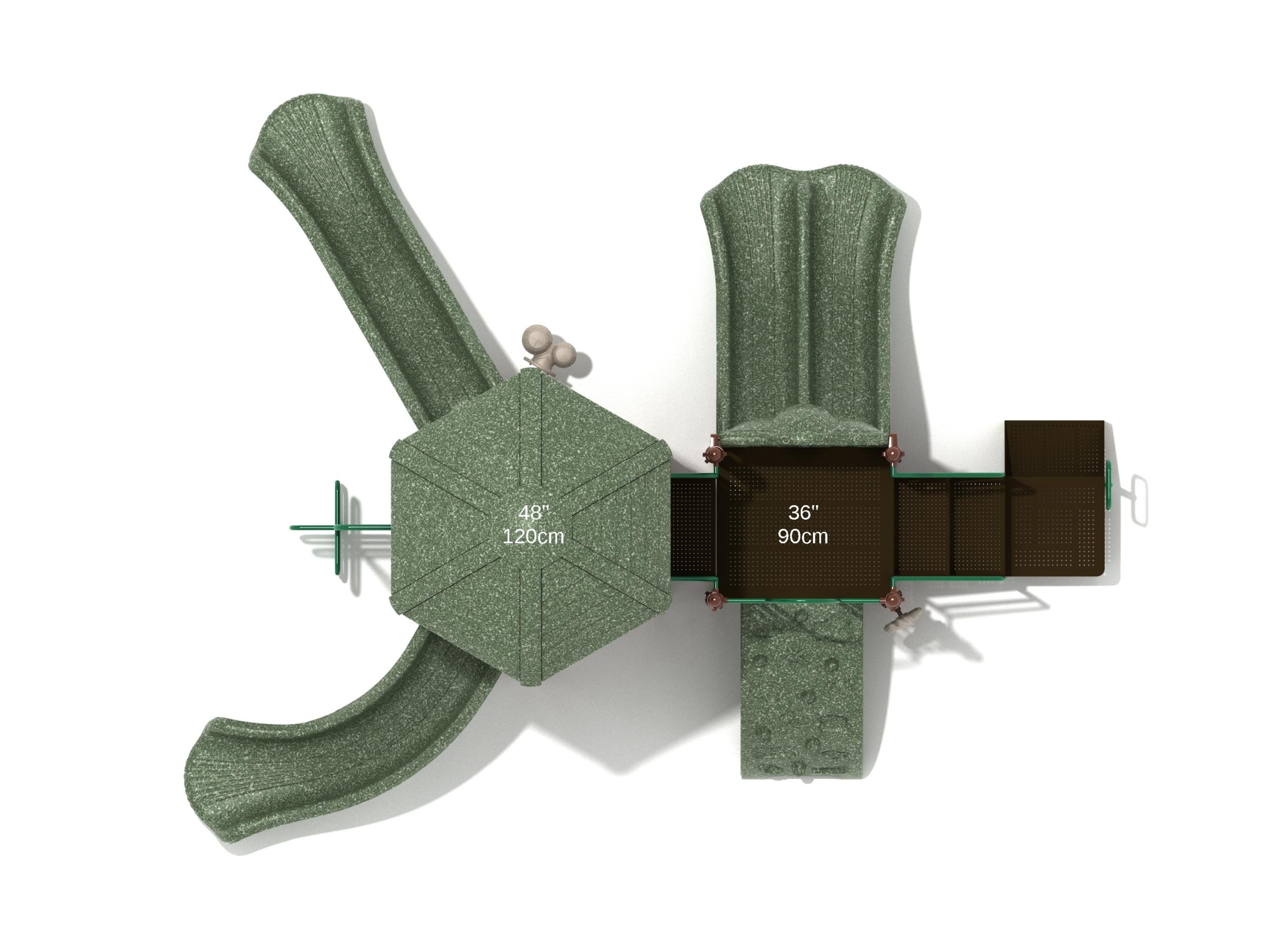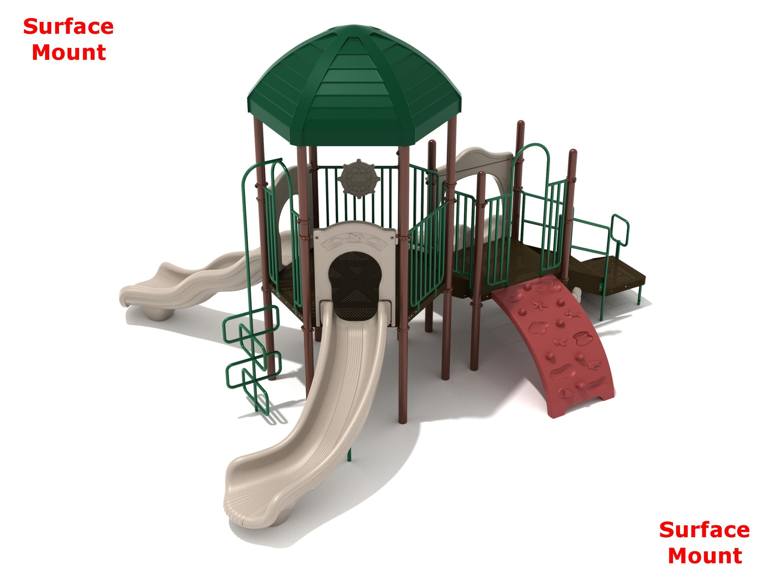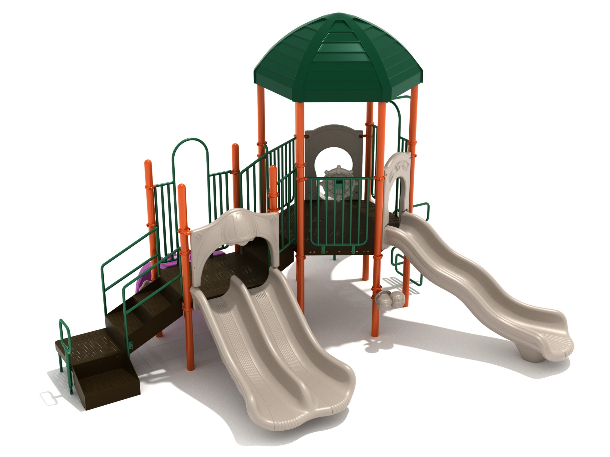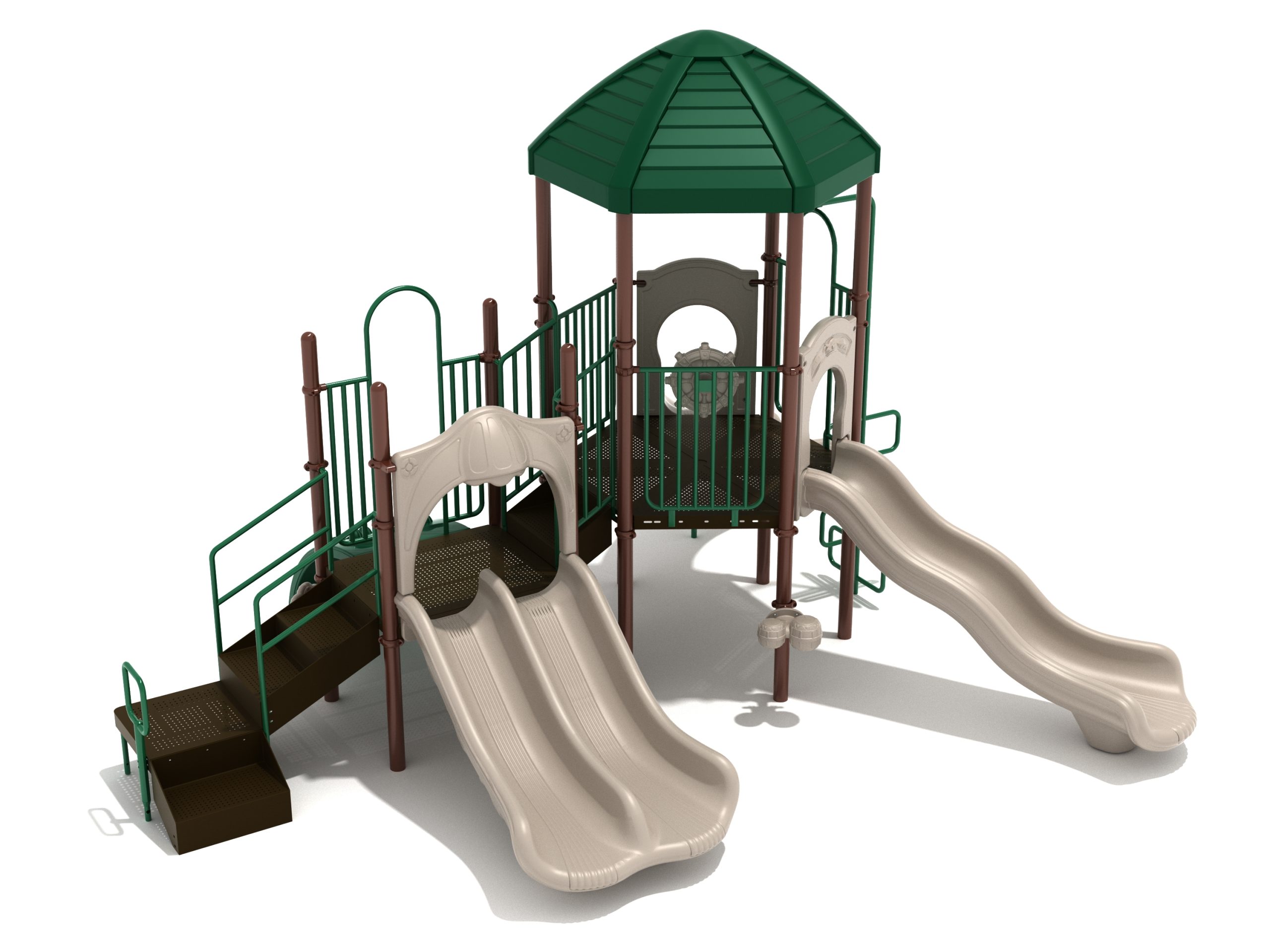 Rockford has a hut-like structure and provides loads of fun to the young troublemakers. It has three very easy entry points: the Transfer Station, the Ribbon Climber, and the Sea Creature Climber. Kids who are younger and haven’t learned to climb can use the Transfer Station to get up the deck, while mature kids can challenge themselves a little with the Ribbon or Sea Creature Climber. Up on the deck, they will find a Bubble Panel, which they can use to take a little peek at the outside and wave to their guardians or parents. There’s also a Ship’s Wheel attached to one of the rails that can be used to play ship-related pretend games. There’s also a roof covering the highest deck, which is especially helpful during summer. After playing on the deck, kids can slide their way down through one of the 3 slides and enjoy the bumps along the way.