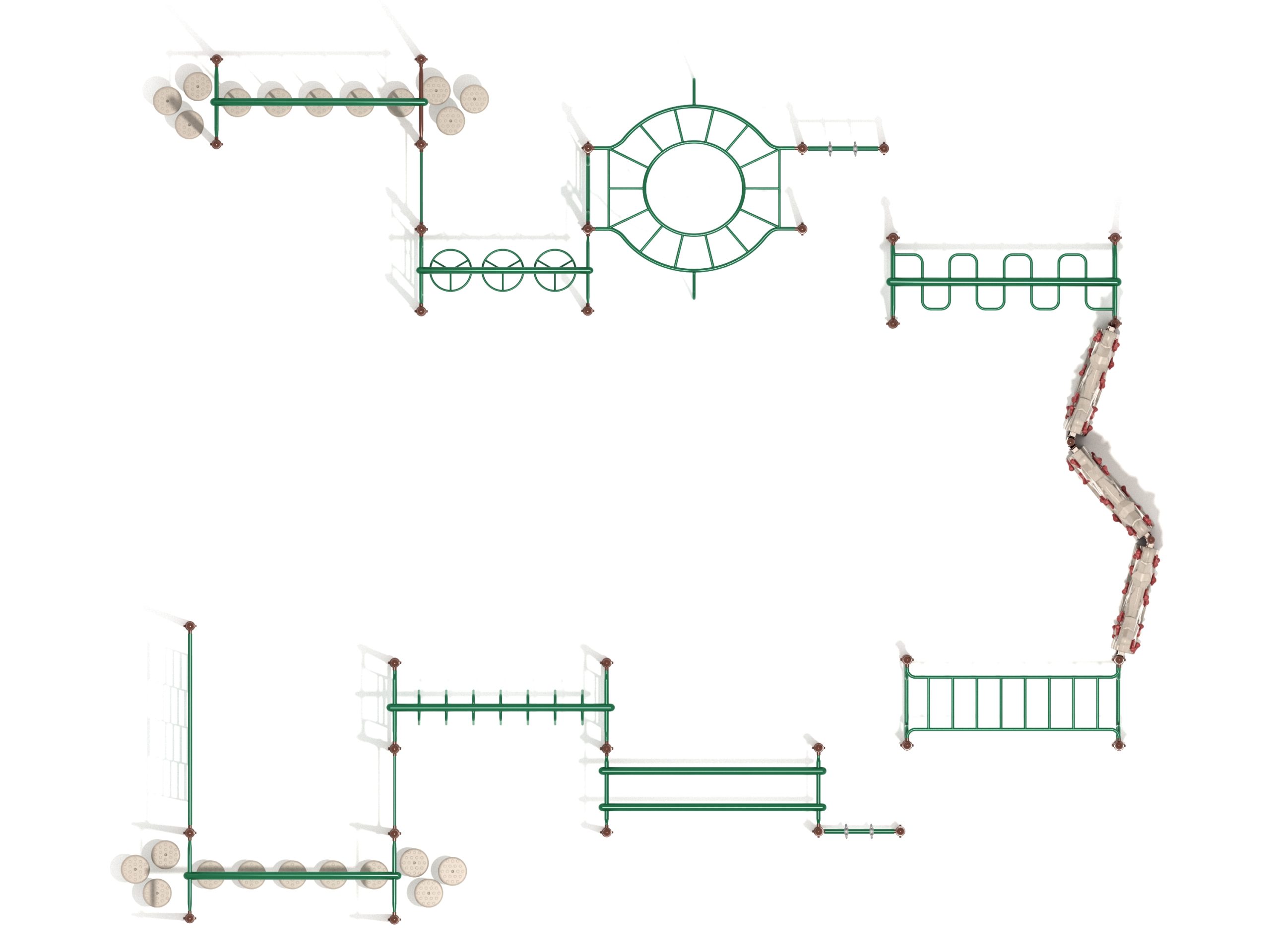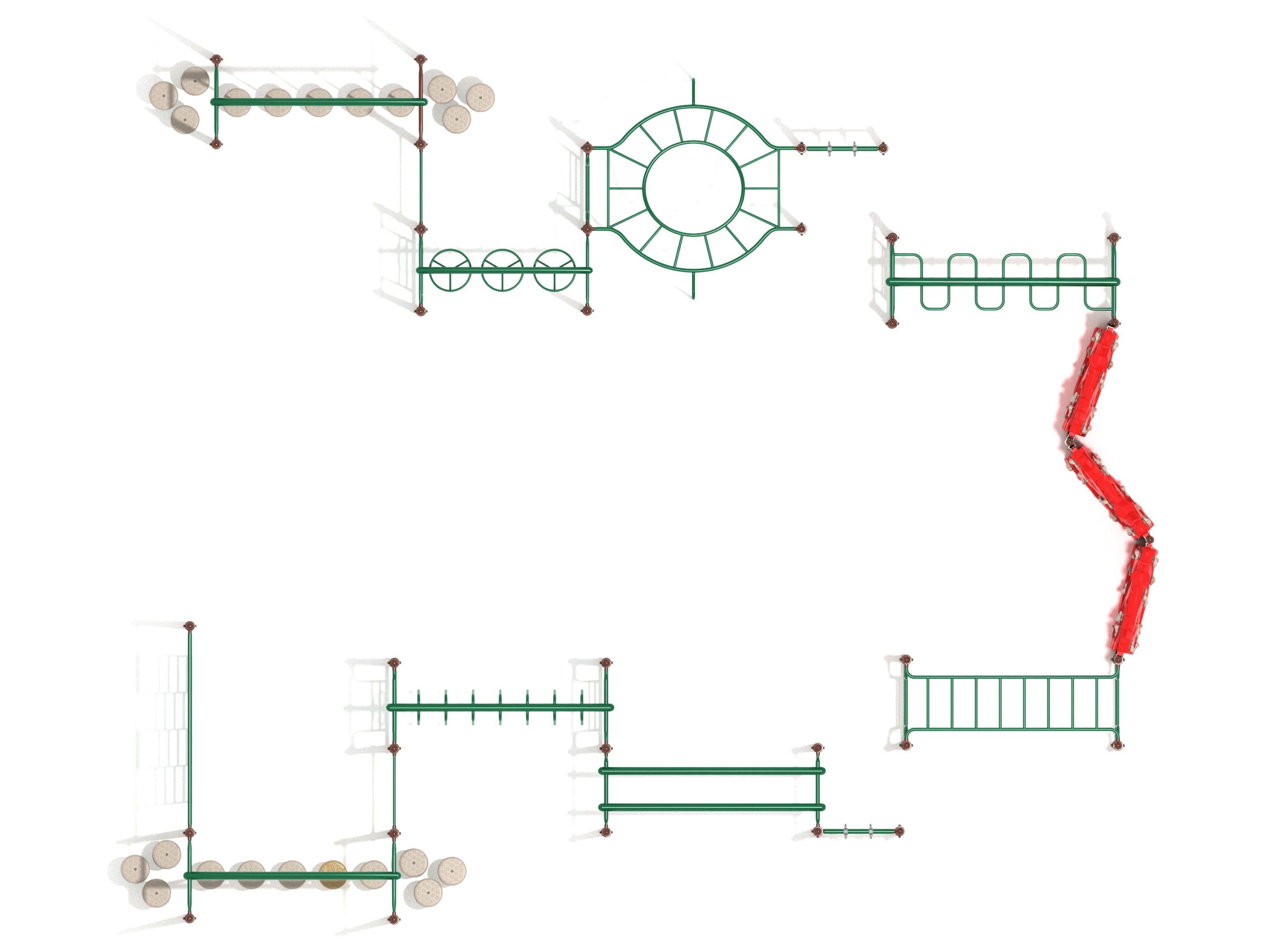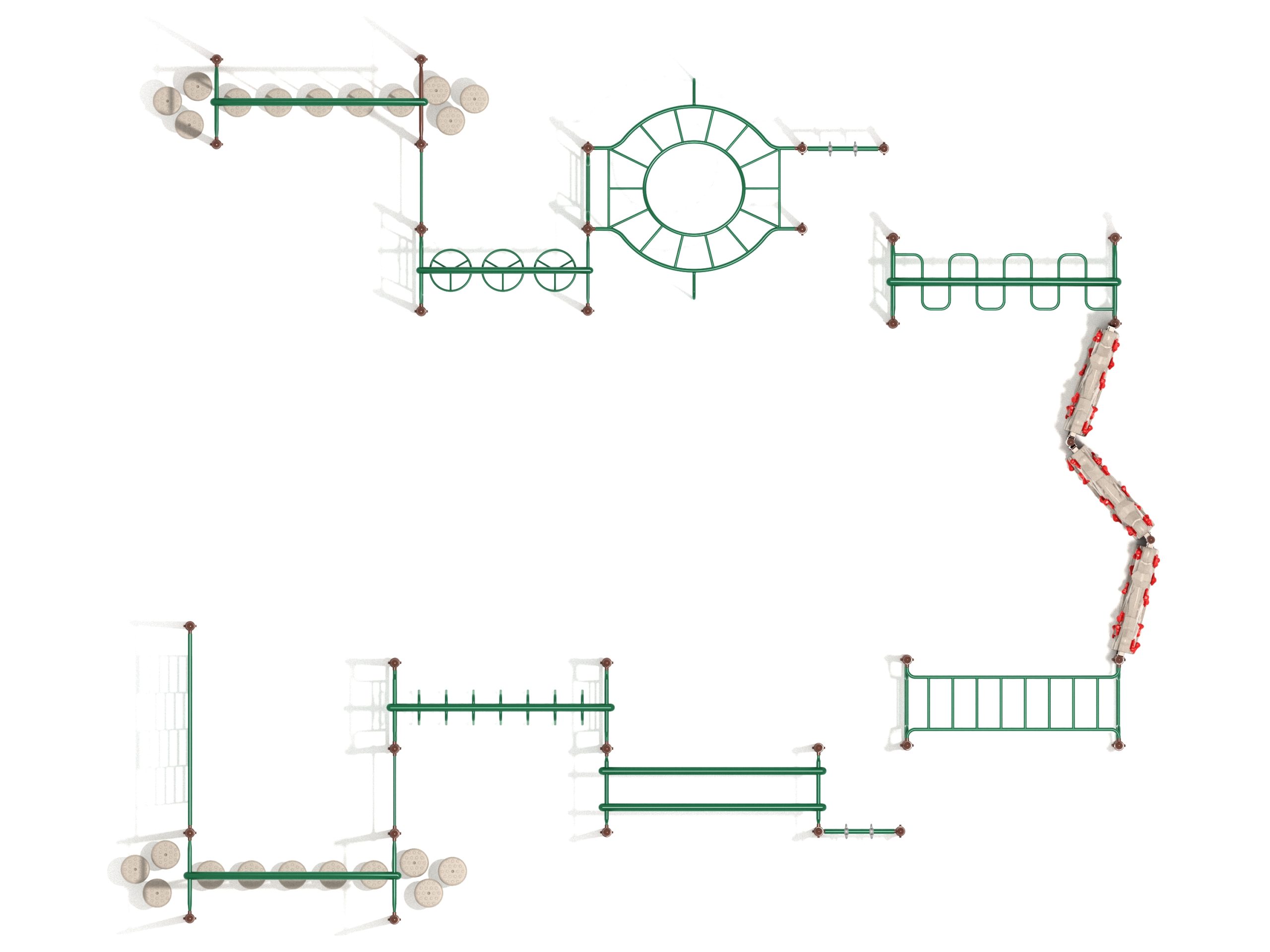 Children love new challenges, and with this Rotanda Play Set, they can safely push their limits. With a range of components, the Rotanda can satisfy their needs for physical play and healthy competition. It’s a large obstacle course that can accommodate up to 50 kids at once, and with its thrilling features, none of the kids will feel bored! The first obstacle is the Pebble Bridge and it can only be crossed with steady balance and footwork. The Overhead Climber is where they’ll get a chance to test their upper body strength, as it takes the fittest of all to reach the Craggy Climber. And that’s when the real challenge begins! The entire play system is designed to build fitness and strength, so it’s fun and training combined. The Rotonda playset can be placed in different commercial playground layouts. You can also use it to conduct physical fitness tests and competitions among kids.