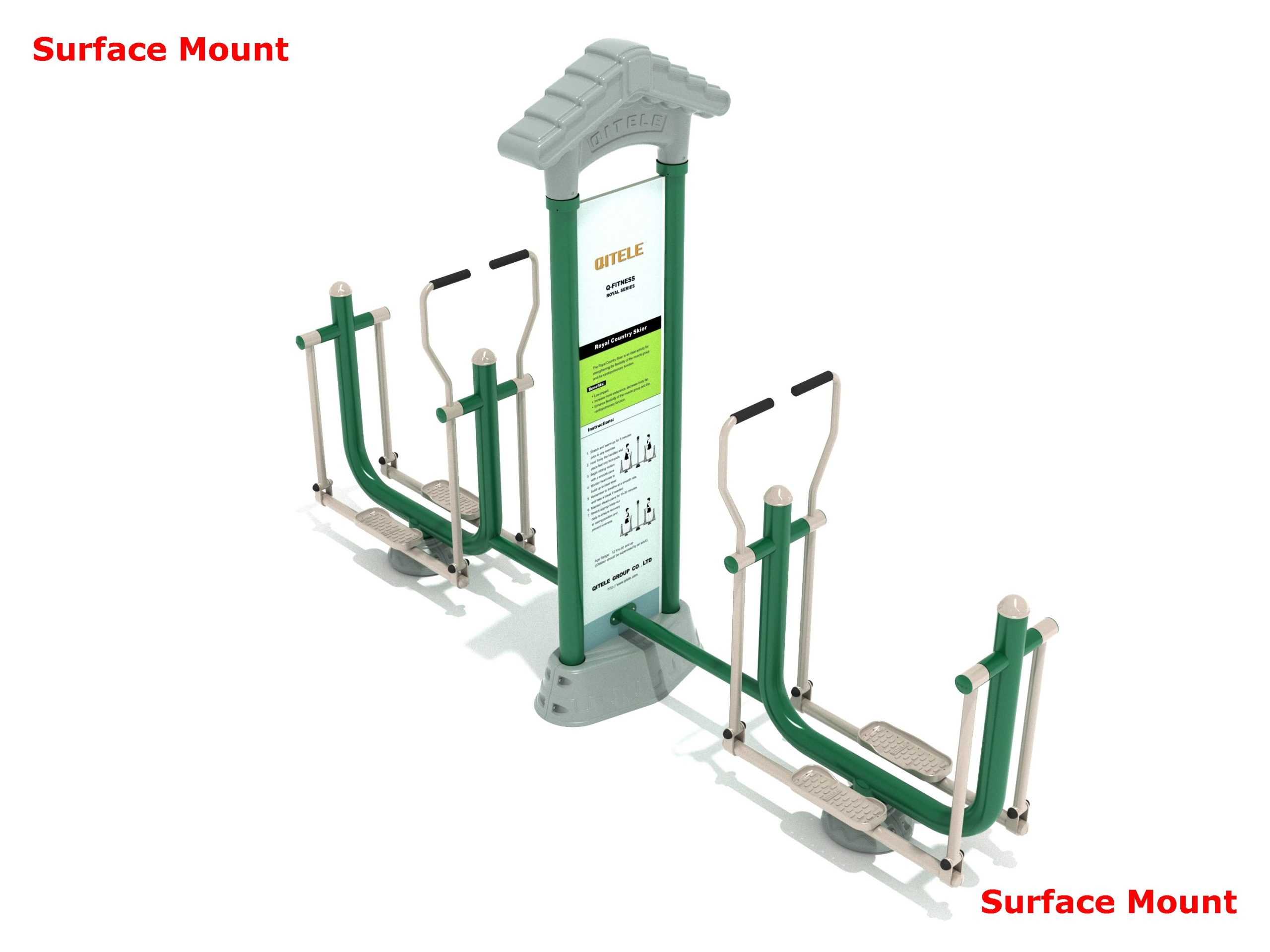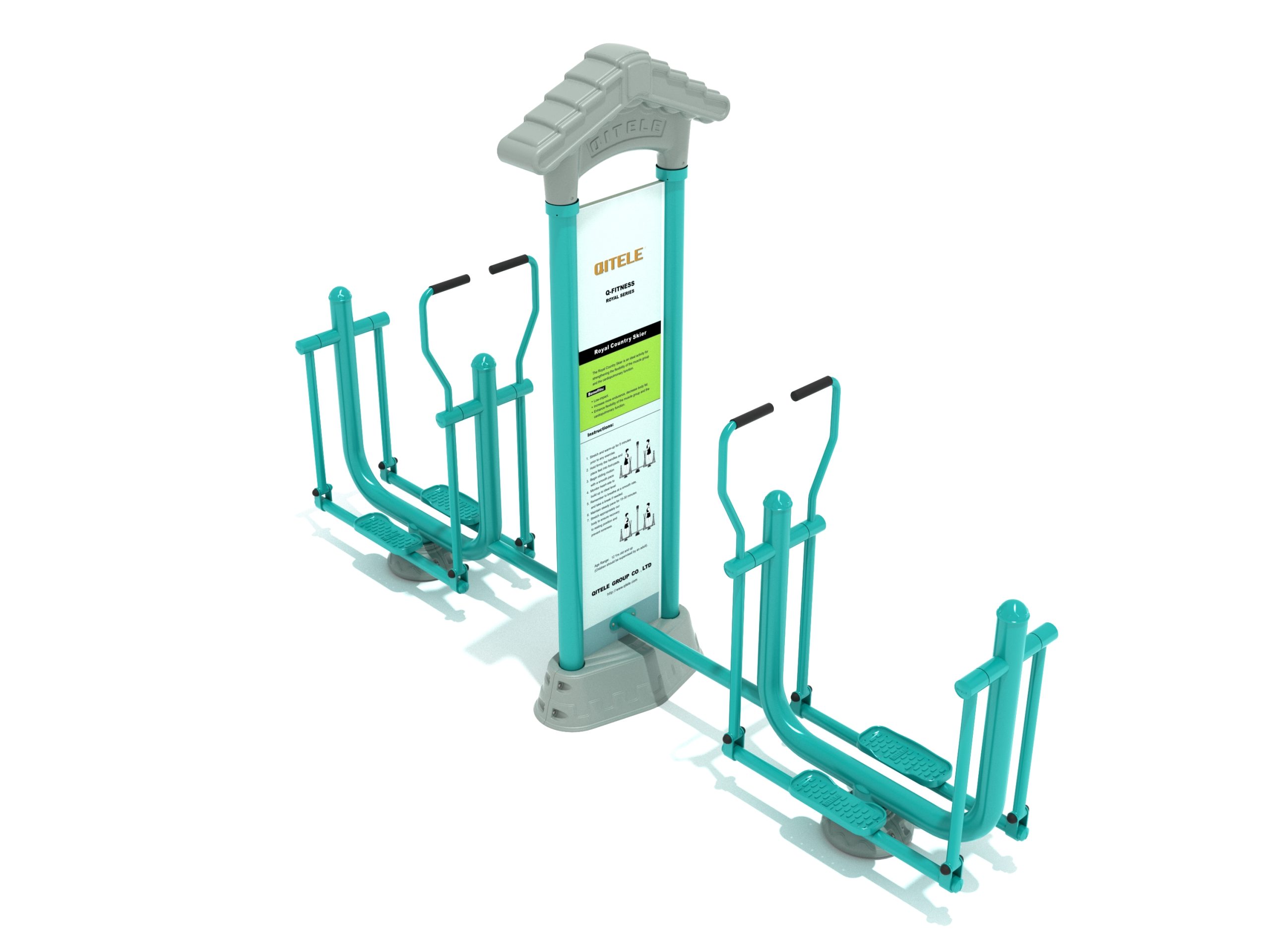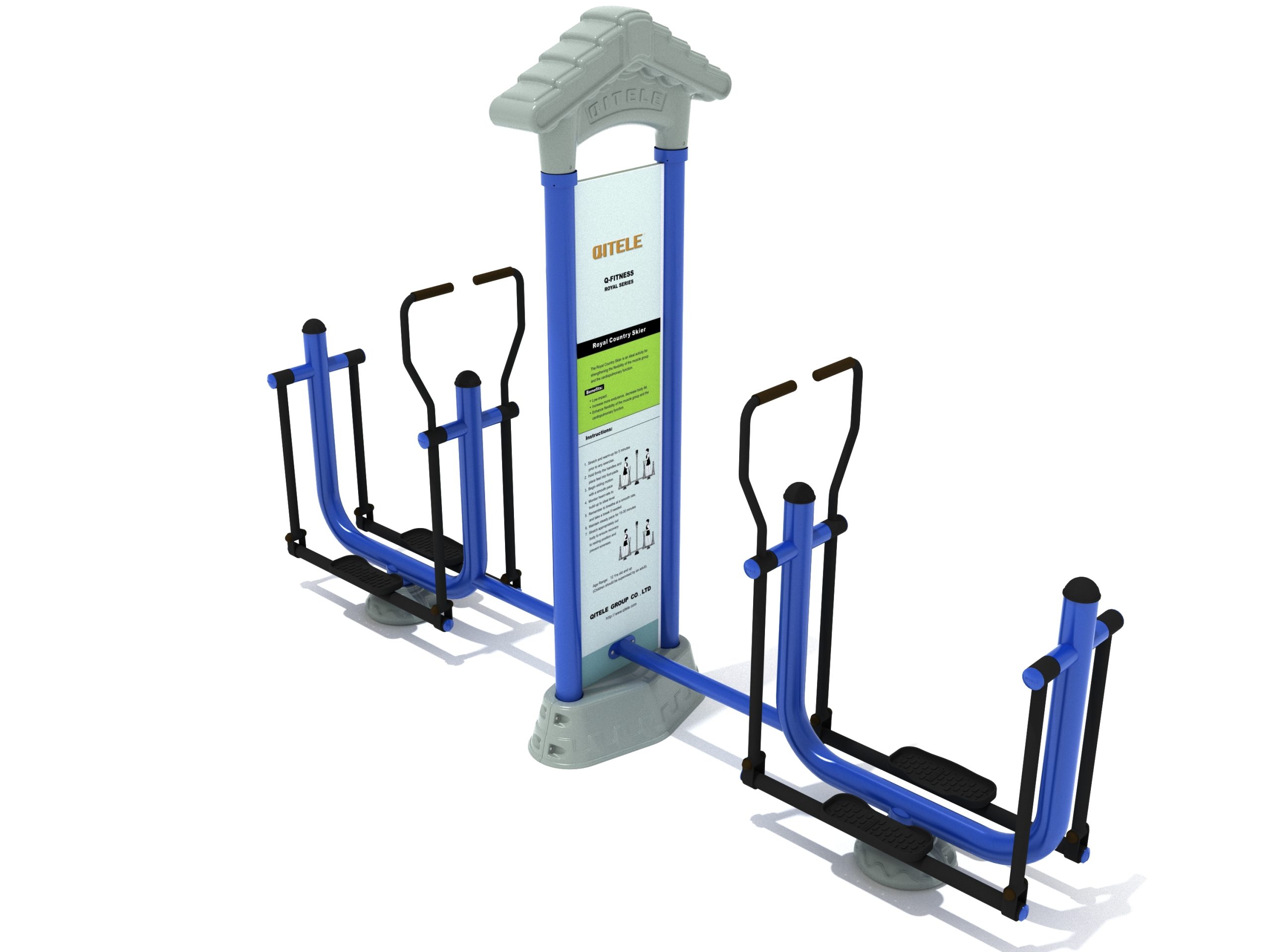 Hop aboard the Royal Double Station Country Skier and tone muscles as users slalom through a public park, high school or college campus in the height of summer or to stay warm in winter. This piece of outdoor gym equipment helps to boost cardiovascular fitness as both the arms and legs are given a workout as well as strengthening the core as the user glides back and forth. The Royal Double Station Country Skier lets users move their legs in a way that is not common to usual walking or running movements as sliding back and forth will really help to develop the quadriceps. Whether they’re practicing for the slopes or just want to give their body a good workout, the solid steel frame provides the perfect opportunity for year-round exercise outdoors thanks to the powder coating. What makes this piece of outdoor equipment even more appealing is the fact it can be used by two people at the same time separated by the central information panel.