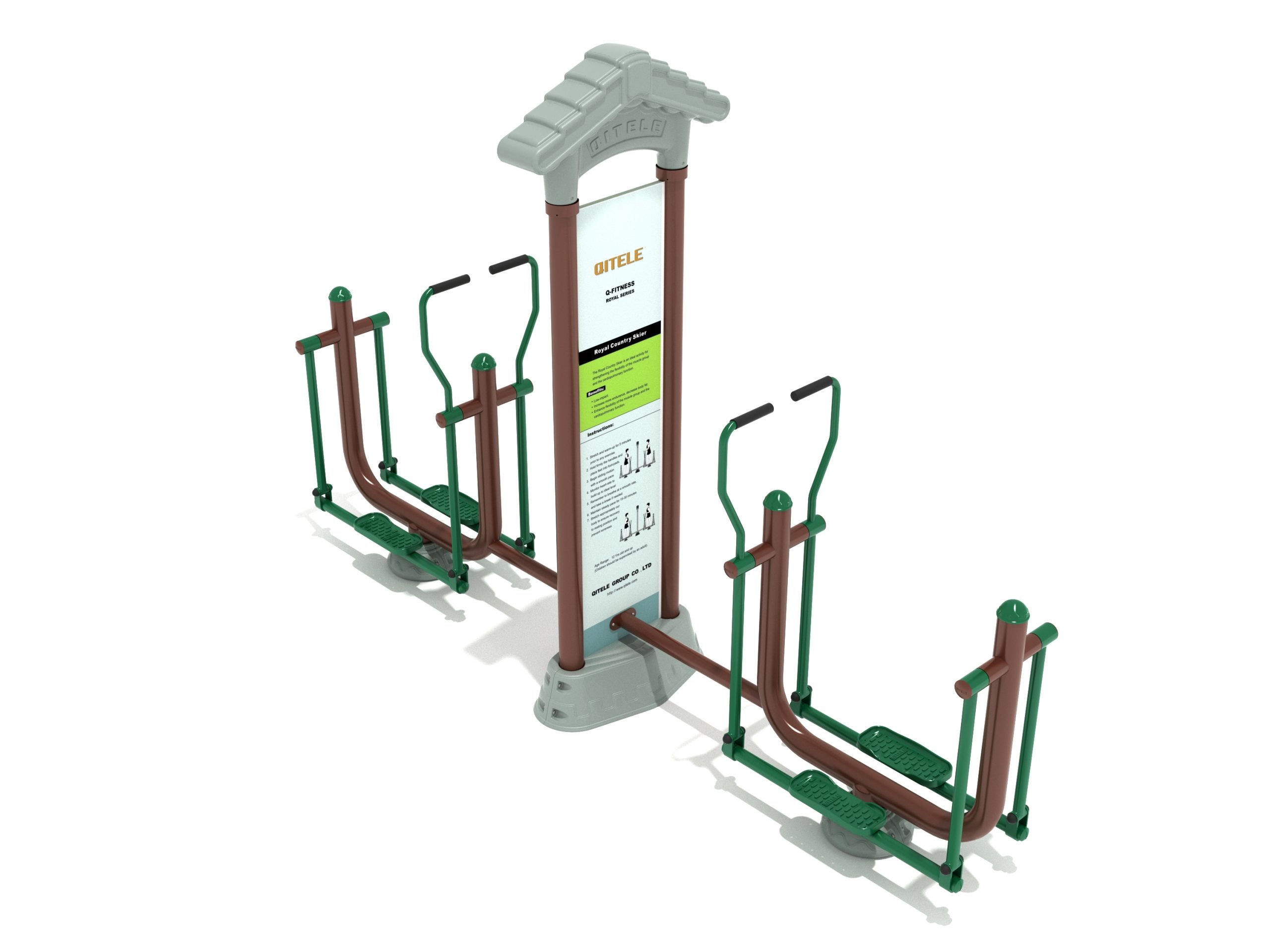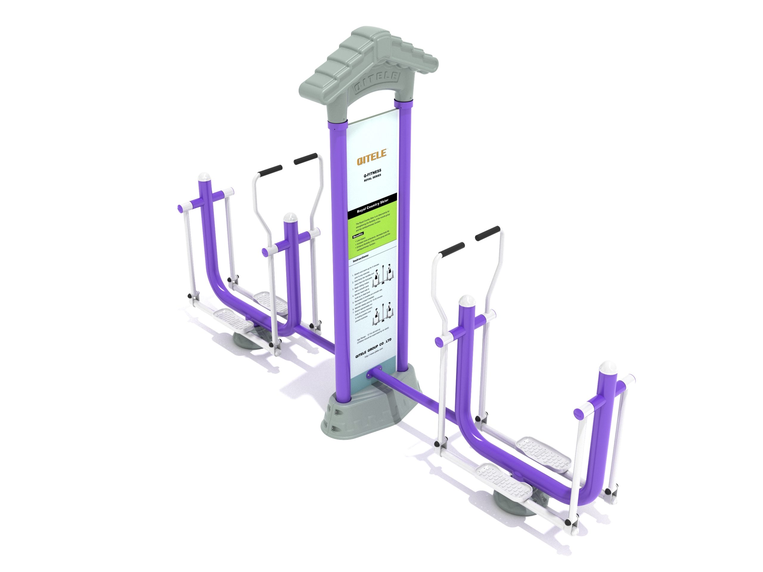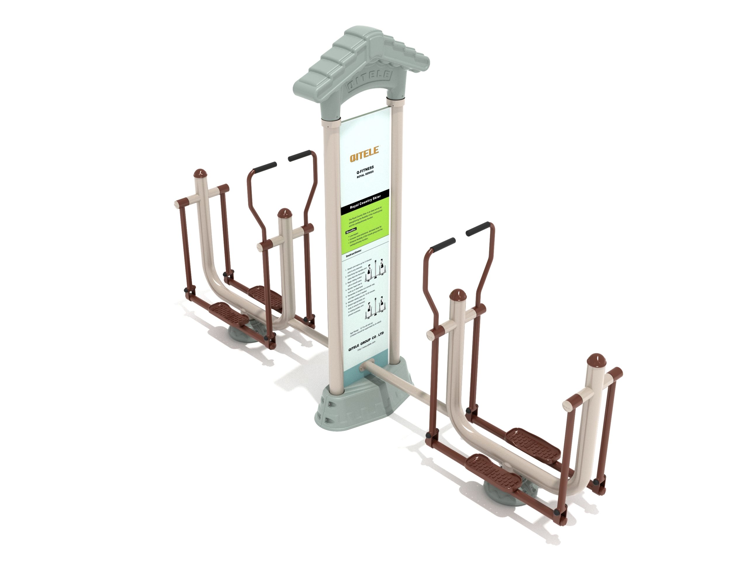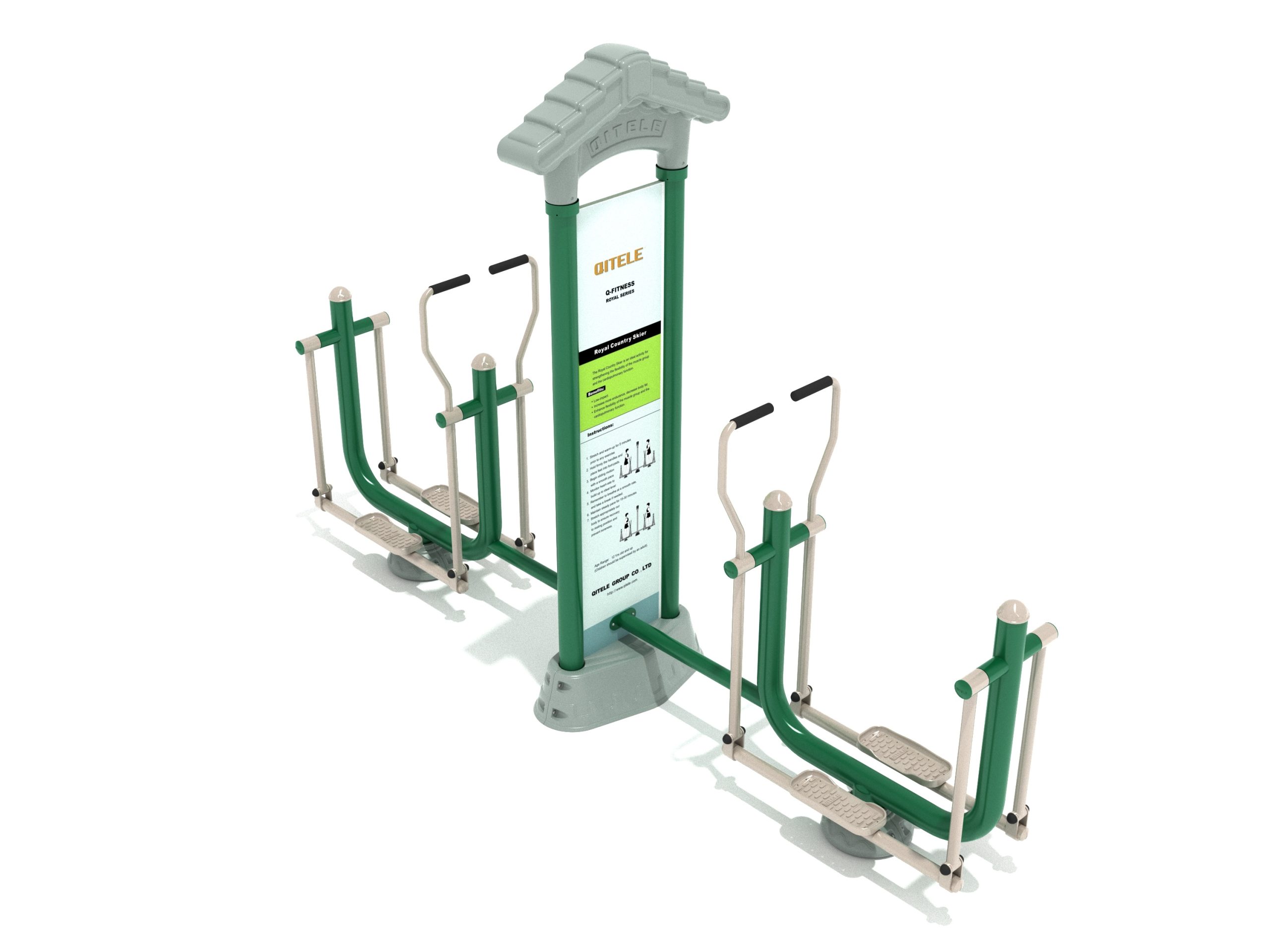 Hop aboard the Royal Double Station Country Skier and tone muscles as users slalom through a public park, high school or college campus in the height of summer or to stay warm in winter. This piece of outdoor gym equipment helps to boost cardiovascular fitness as both the arms and legs are given a workout as well as strengthening the core as the user glides back and forth. The Royal Double Station Country Skier lets users move their legs in a way that is not common to usual walking or running movements as sliding back and forth will really help to develop the quadriceps. Whether they’re practicing for the slopes or just want to give their body a good workout, the solid steel frame provides the perfect opportunity for year-round exercise outdoors thanks to the powder coating. What makes this piece of outdoor equipment even more appealing is the fact it can be used by two people at the same time separated by the central information panel.
