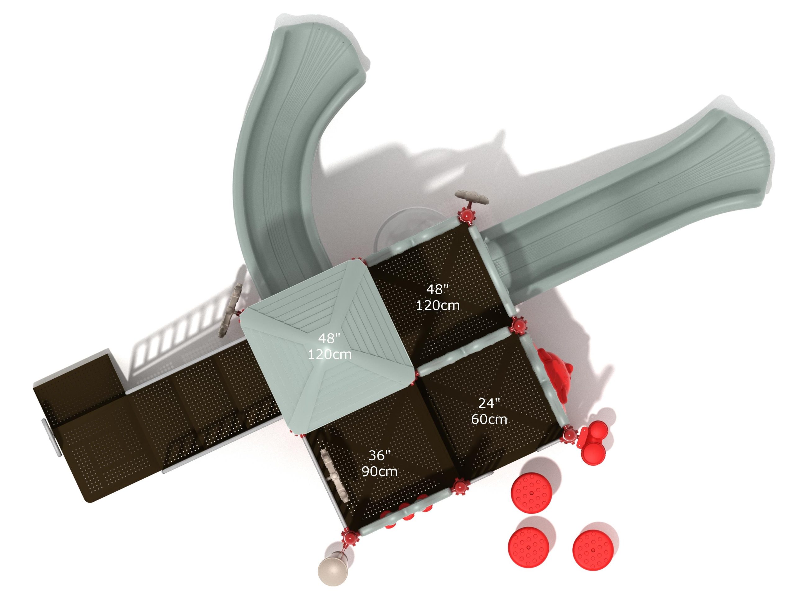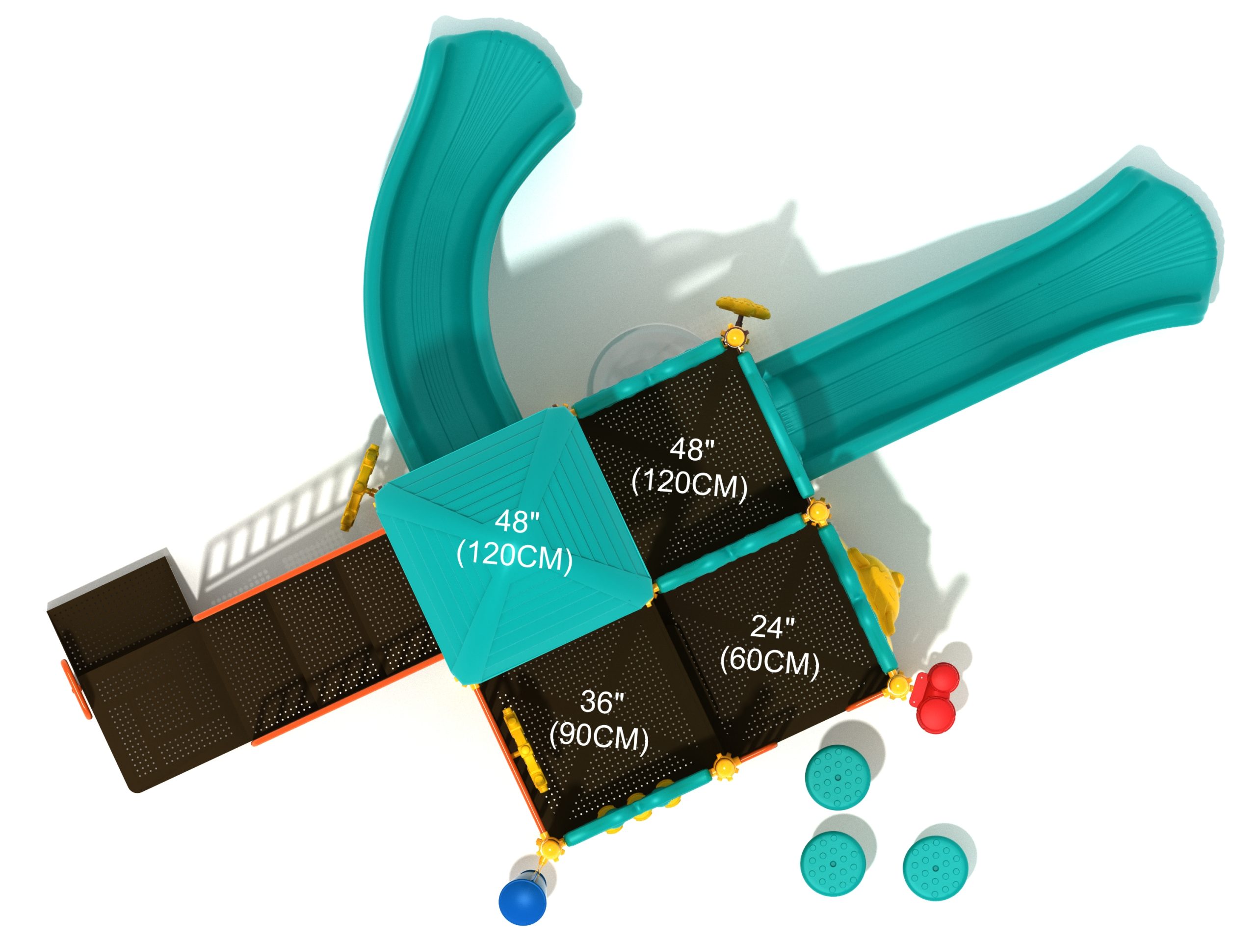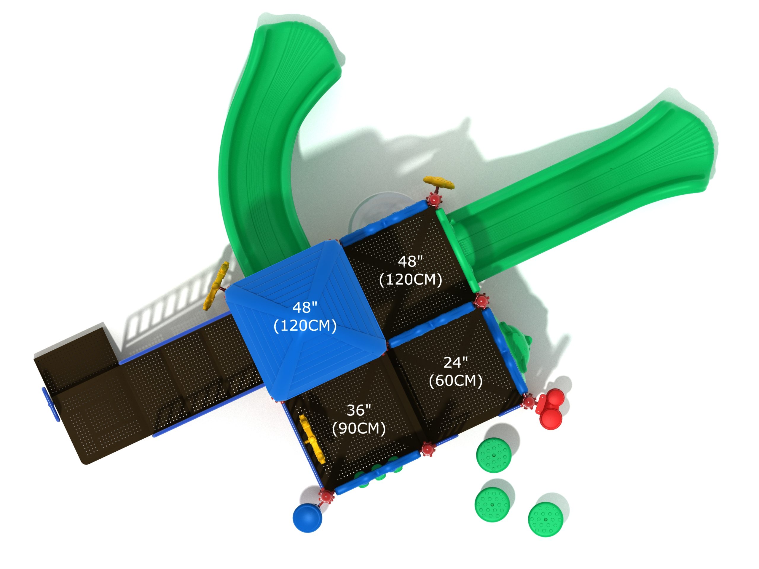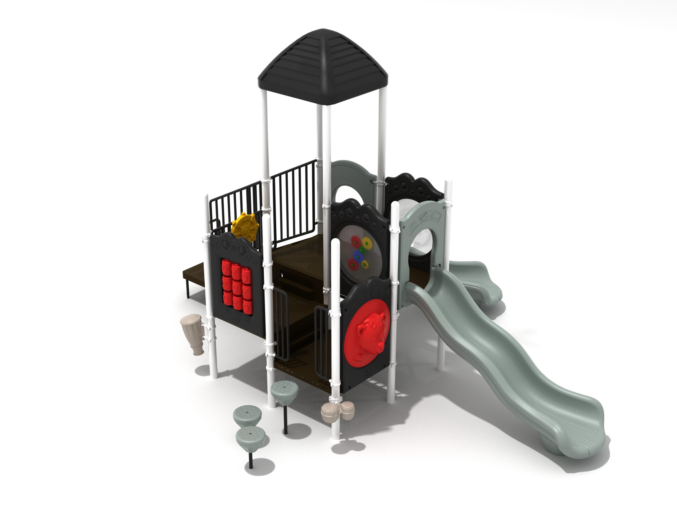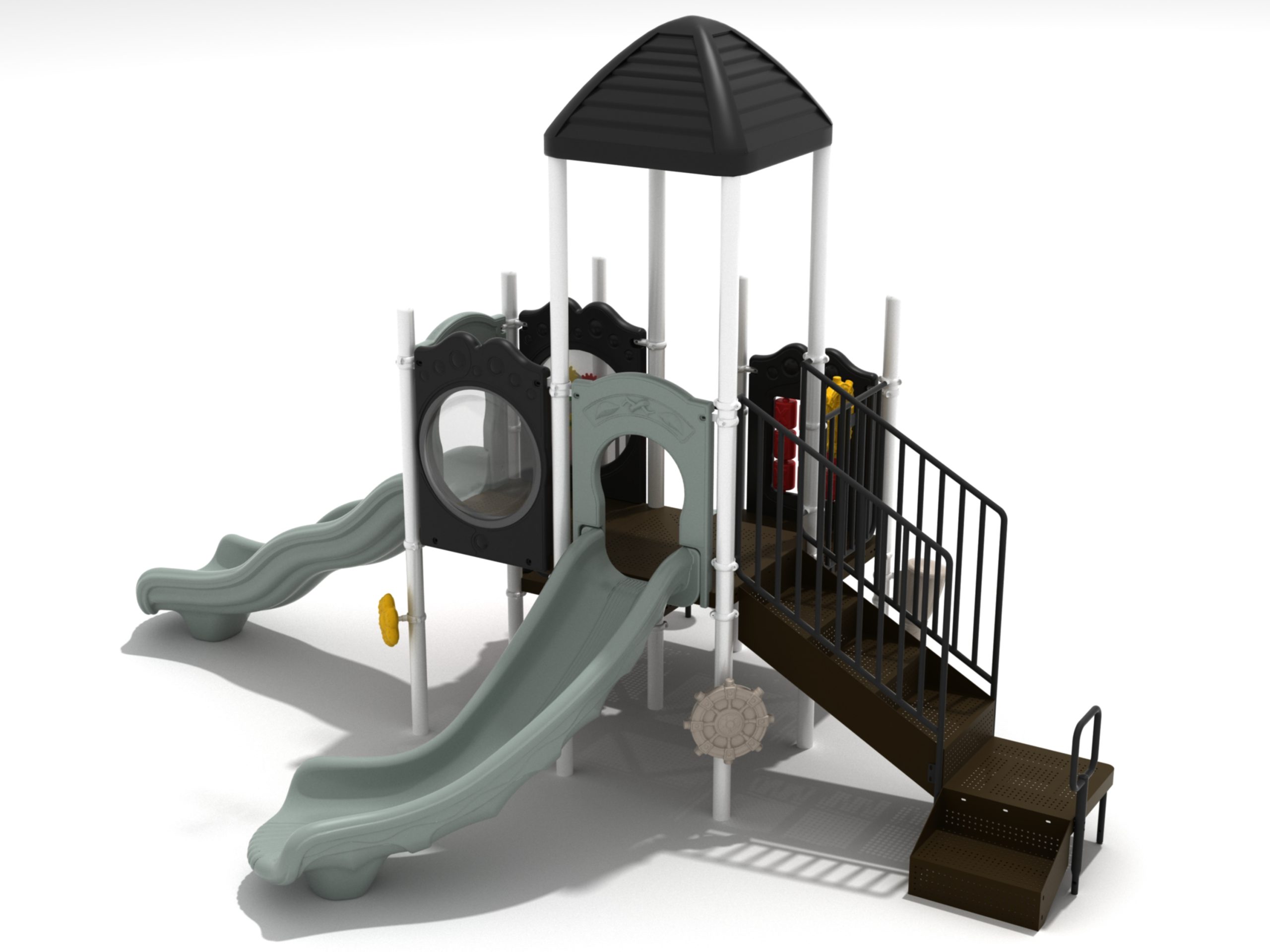 Set underneath a large Line Roof which protects from UV rays as well as rain, the set features a large Wave Slide as well as a Right Turn Slide for children to enjoy over and over again. The Transfer Station allows kids with different abilities to access the structure, and the Pebble Climber boosts confidence and coordination as they wobble their way to the platforms. Santa Cruz features a variety of interactive panels for children of all ages. A Gear Panel and Tic Tac Toe Panel bring strategic fun to test their brain power, while the Bubble Panel and Bear Panel inspire imagination. Kids will love to get musical with the Bongos attached to a lower pole and the Single Drum and Rain Wheel add to the potential for music-making fun. There are two Ship’s Wheels on the structure, one on the upper deck and one at ground level, which is perfect for a Captain and their Lieutenant Commander to steer the sea-faring fun in a new direction.