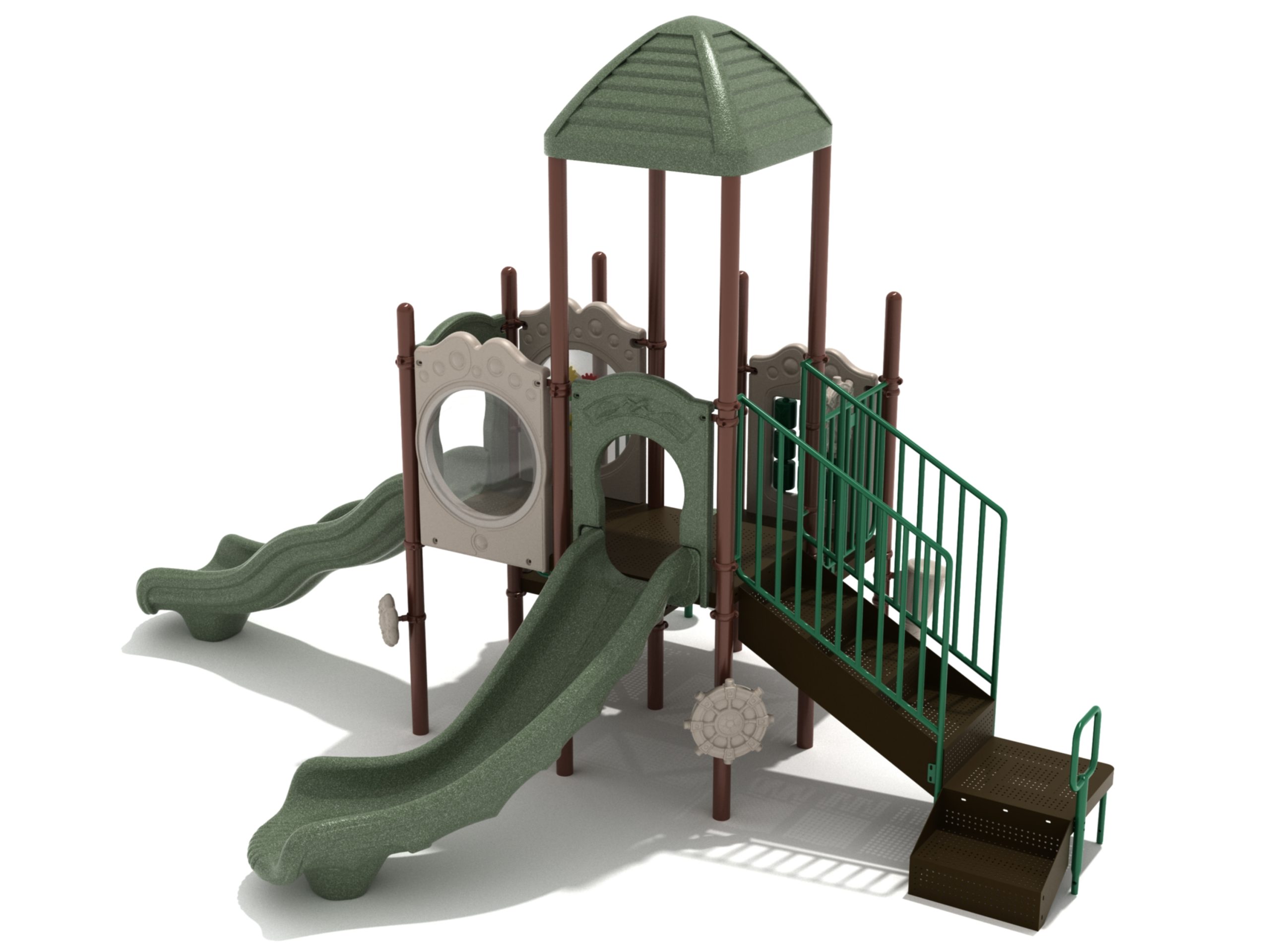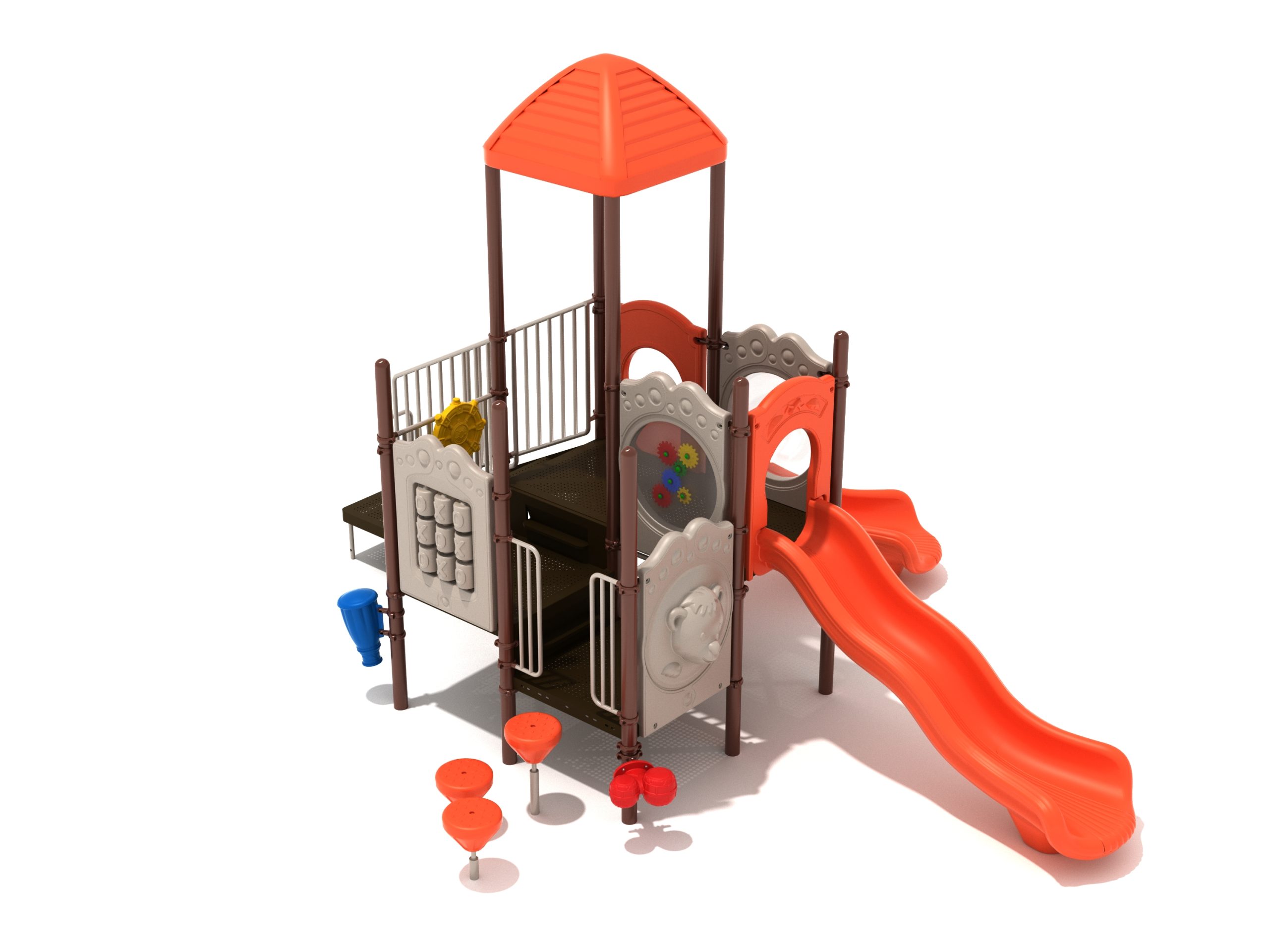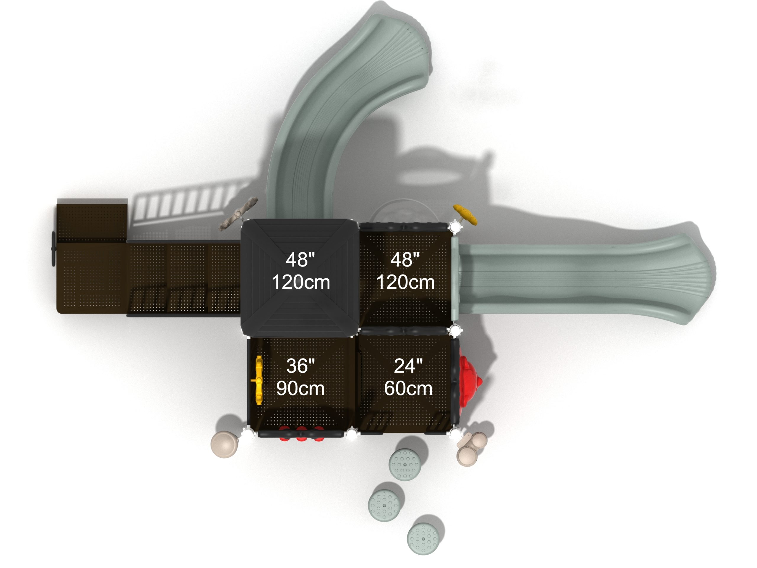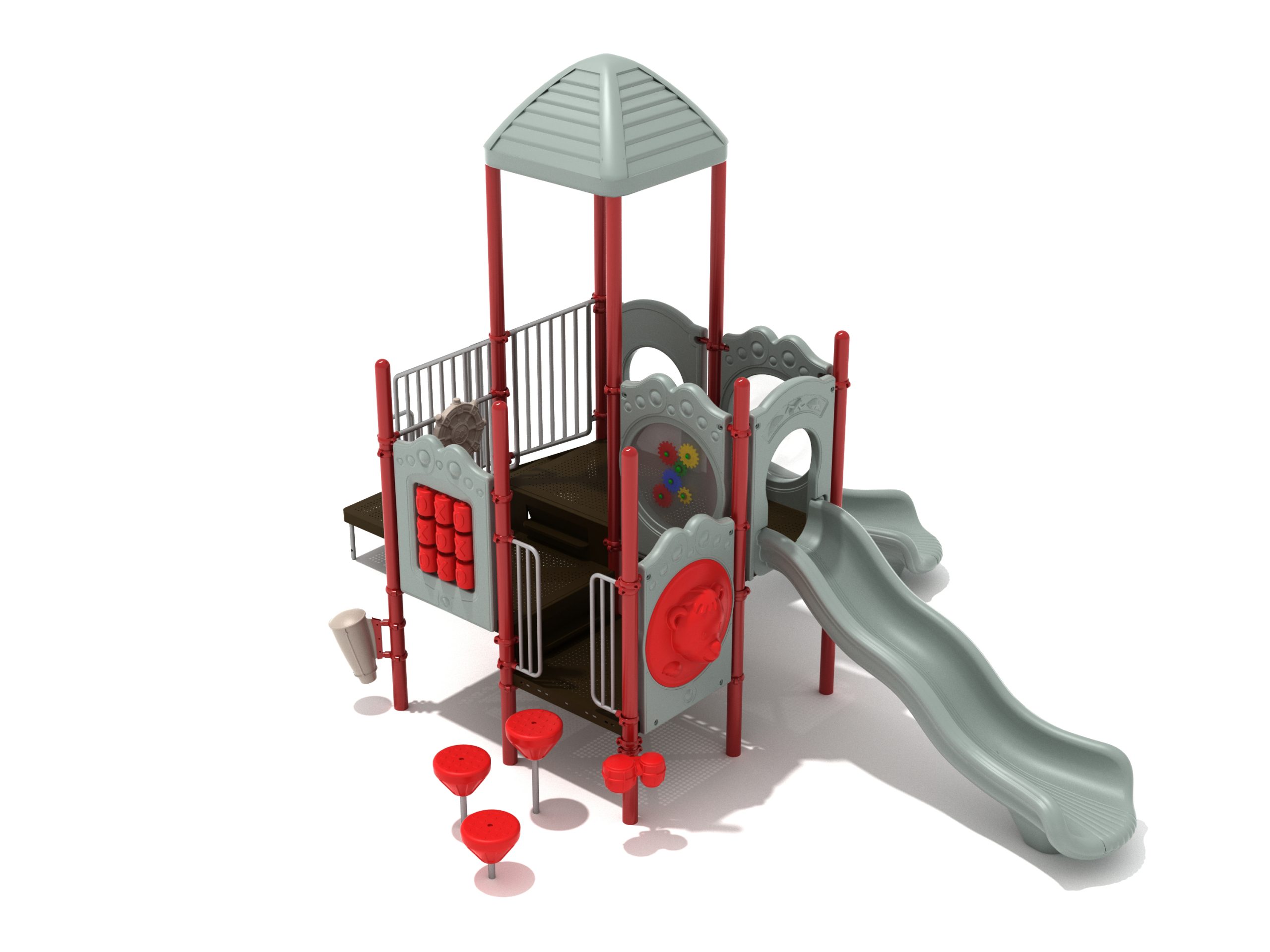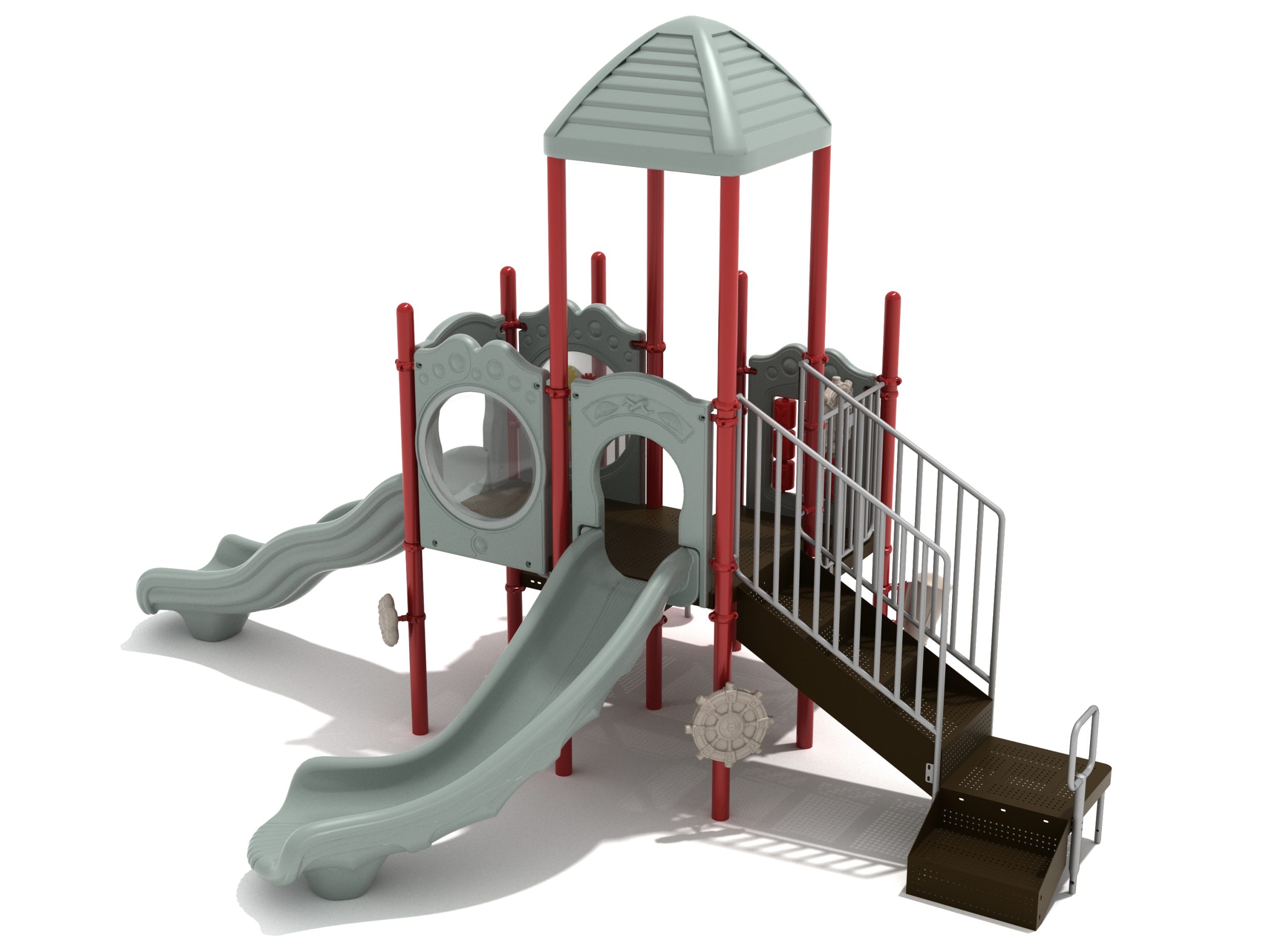 Set underneath a large Line Roof which protects from UV rays as well as rain, the set features a large Wave Slide as well as a Right Turn Slide for children to enjoy over and over again. The Transfer Station allows kids with different abilities to access the structure, and the Pebble Climber boosts confidence and coordination as they wobble their way to the platforms. Santa Cruz features a variety of interactive panels for children of all ages. A Gear Panel and Tic Tac Toe Panel bring strategic fun to test their brain power, while the Bubble Panel and Bear Panel inspire imagination. Kids will love to get musical with the Bongos attached to a lower pole and the Single Drum and Rain Wheel add to the potential for music-making fun. There are two Ship’s Wheels on the structure, one on the upper deck and one at ground level, which is perfect for a Captain and their Lieutenant Commander to steer the sea-faring fun in a new direction.