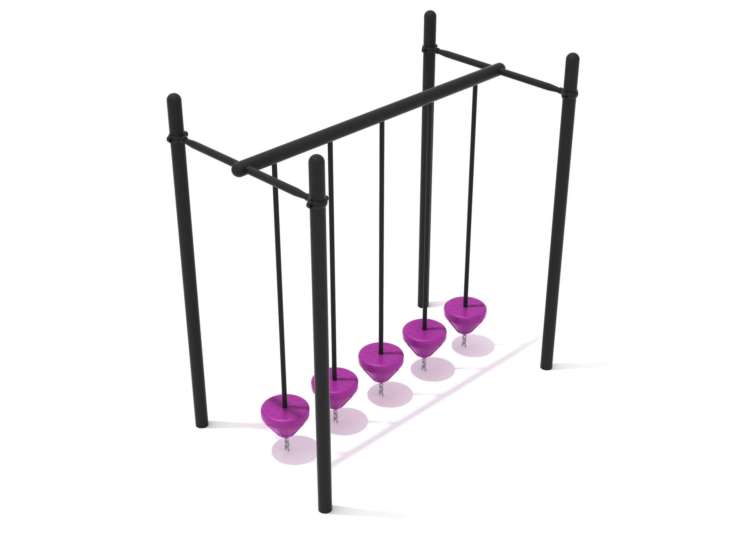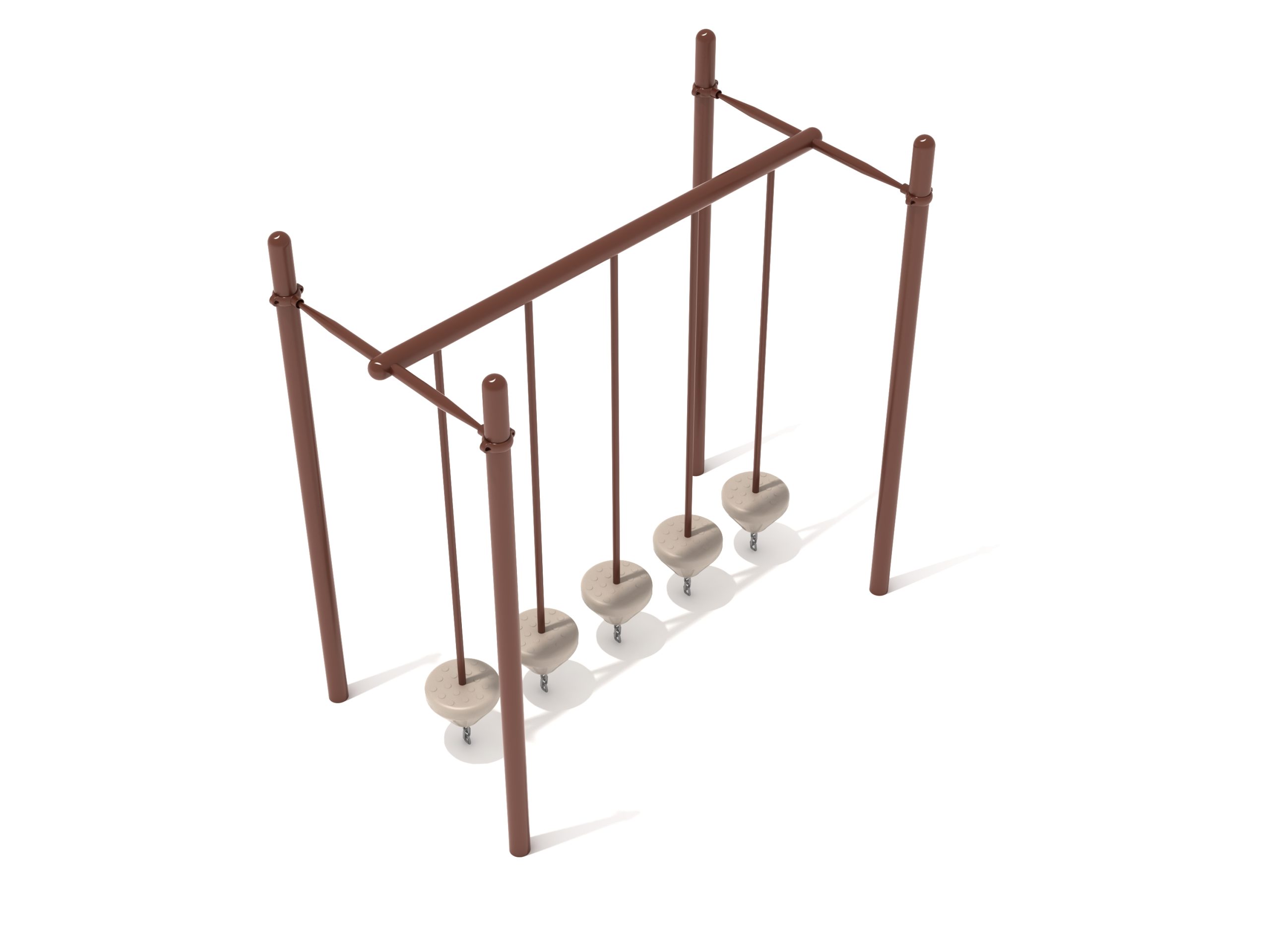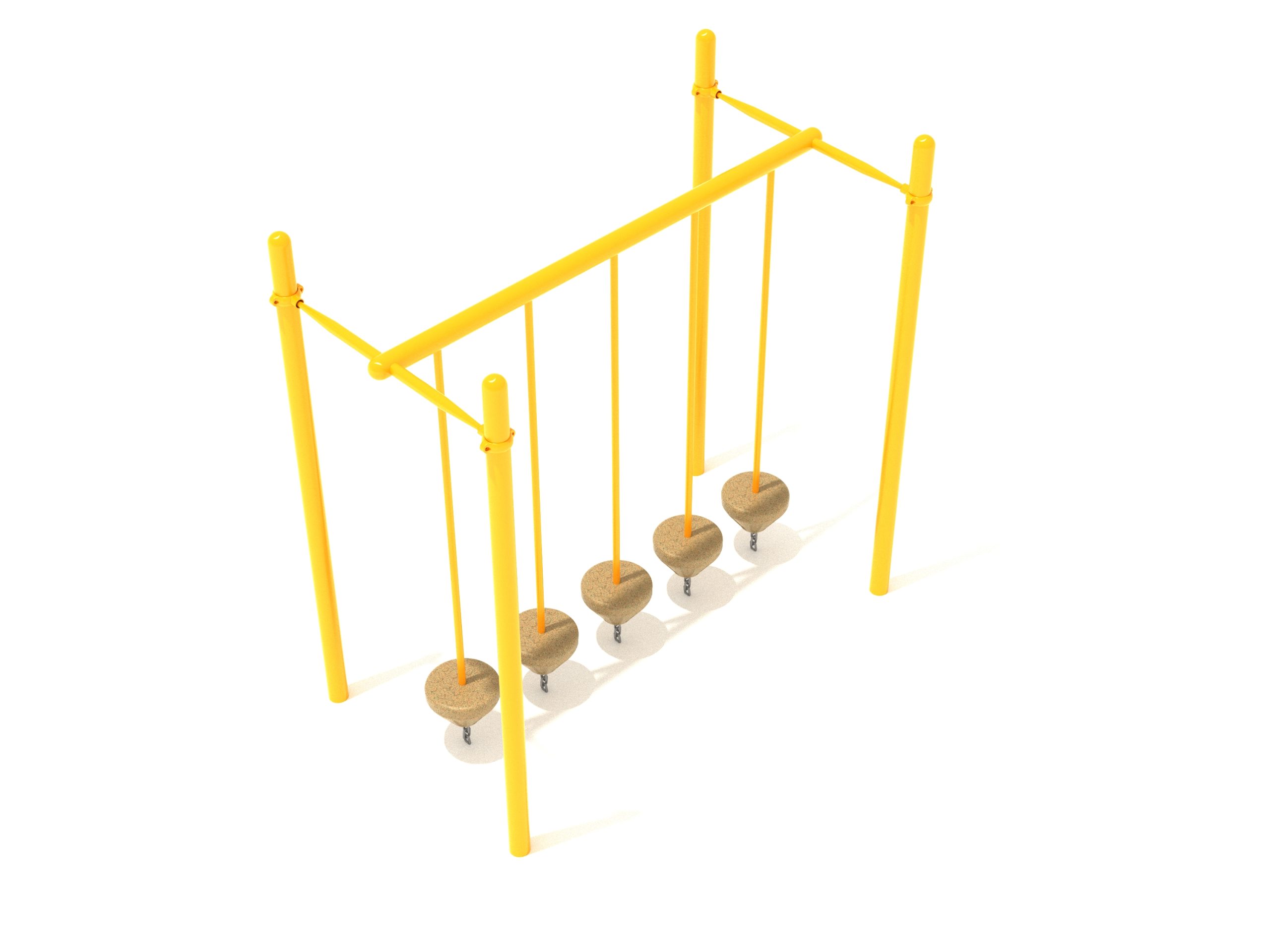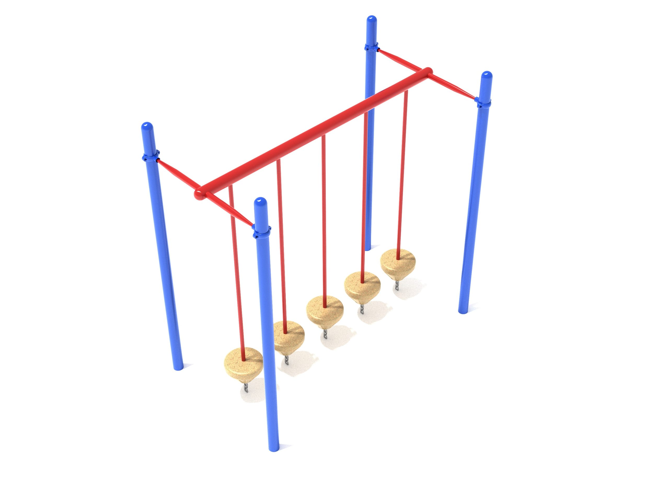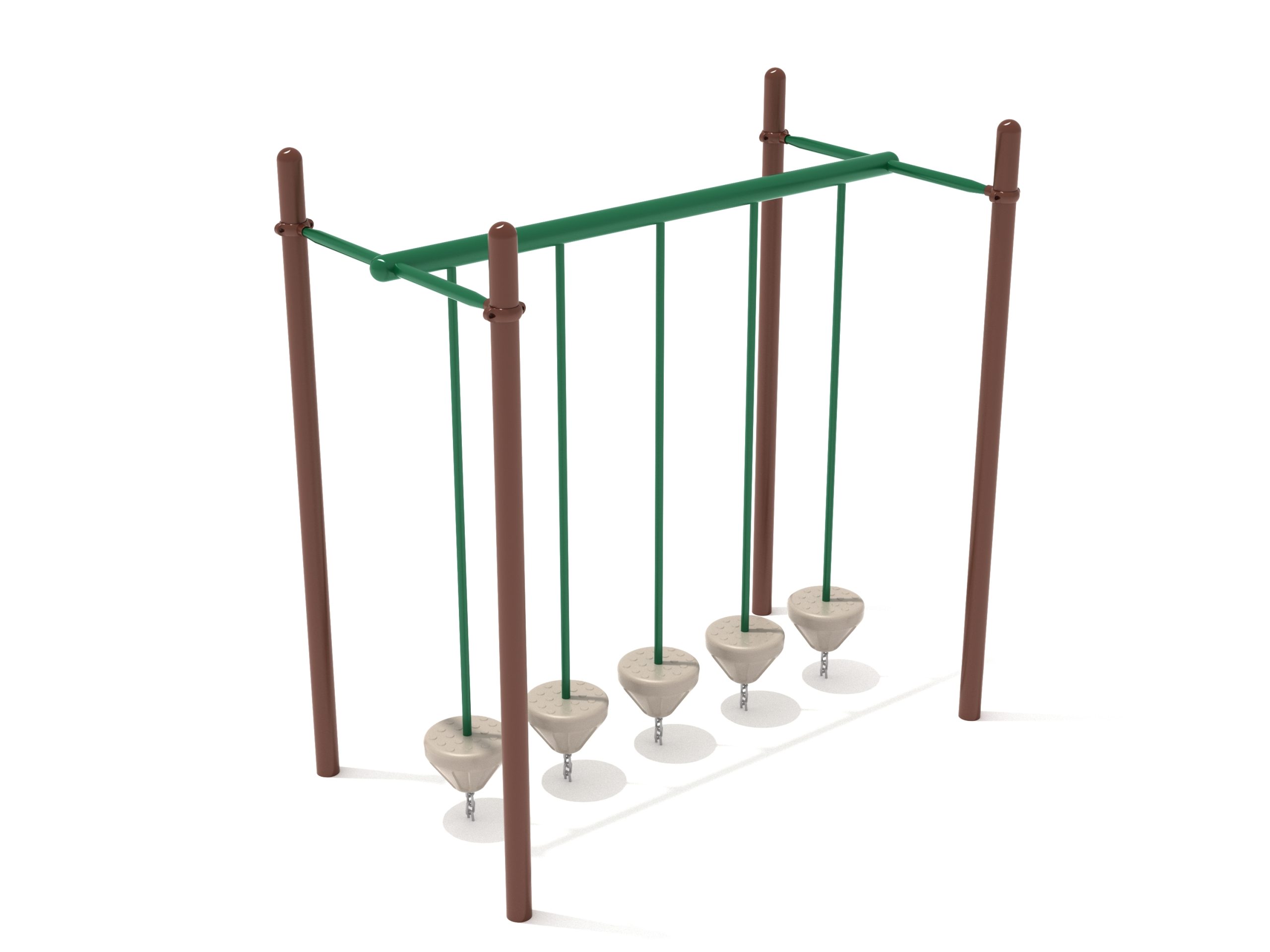 Watch children skip happily across the wobbling steps when you install this Single Row Pebble Bridge in any playground or park. This fun playground equipment features five colorful platforms suspended from a top bar which allows a full range of motion, but they’re also connected to the ground with safety chains to prevent them swinging too wildly. The Single Row Pebble Bridge presents a unique challenge children of all ages will love to attempt. To get from one side to the other, children must navigate the course pebble by pebble through balancing their bodies carefully to account for the swiveling platforms. This promotes creativity in body movement as they must learn to maneuver themselves into the right position using key motor skills and core strength to make it across successfully. The Single Row Pebble Bridge also sparks imaginations as the children can pretend they’re crossing a flowing river or hot lava and really try their hardest not to fall in.