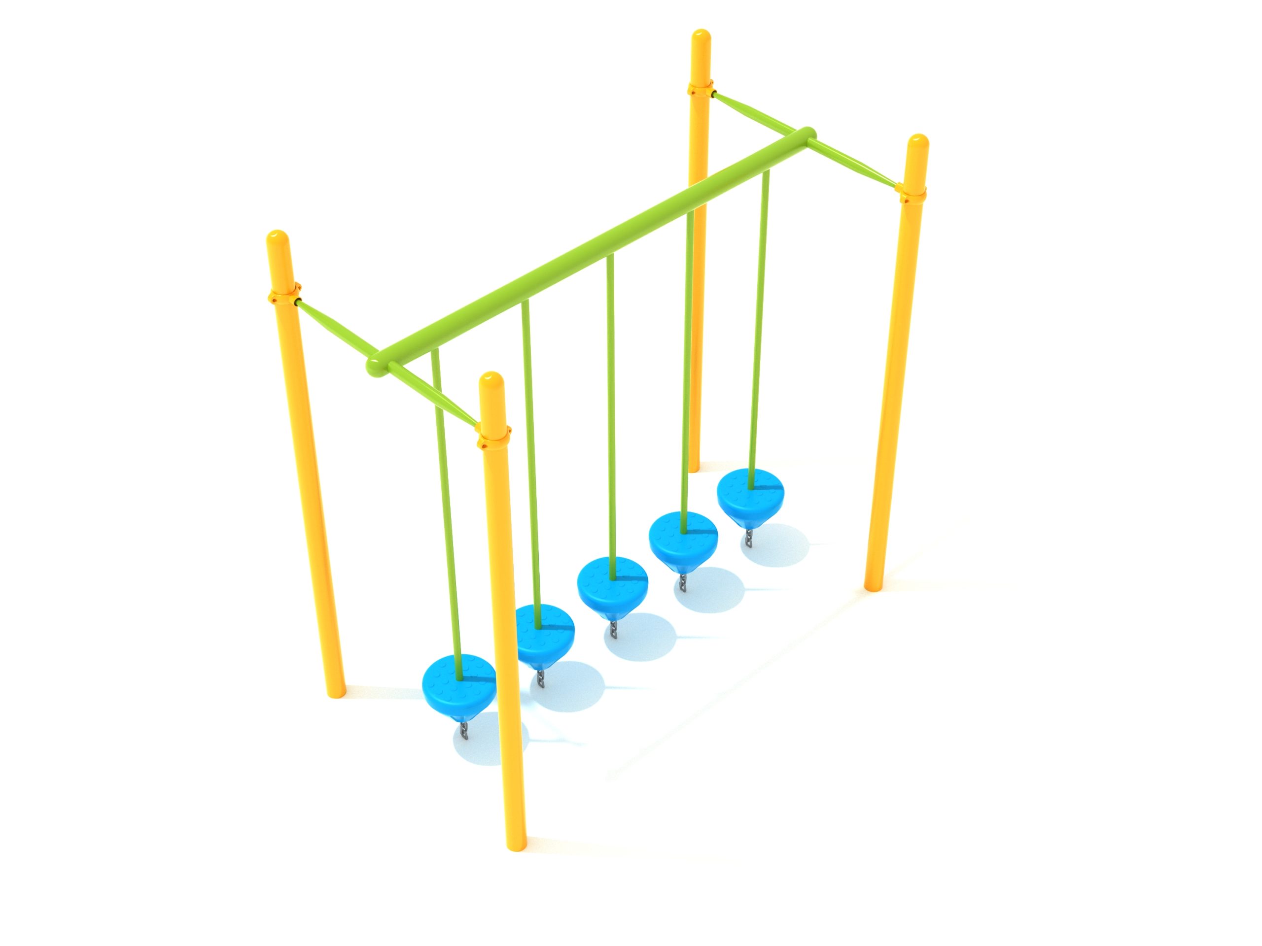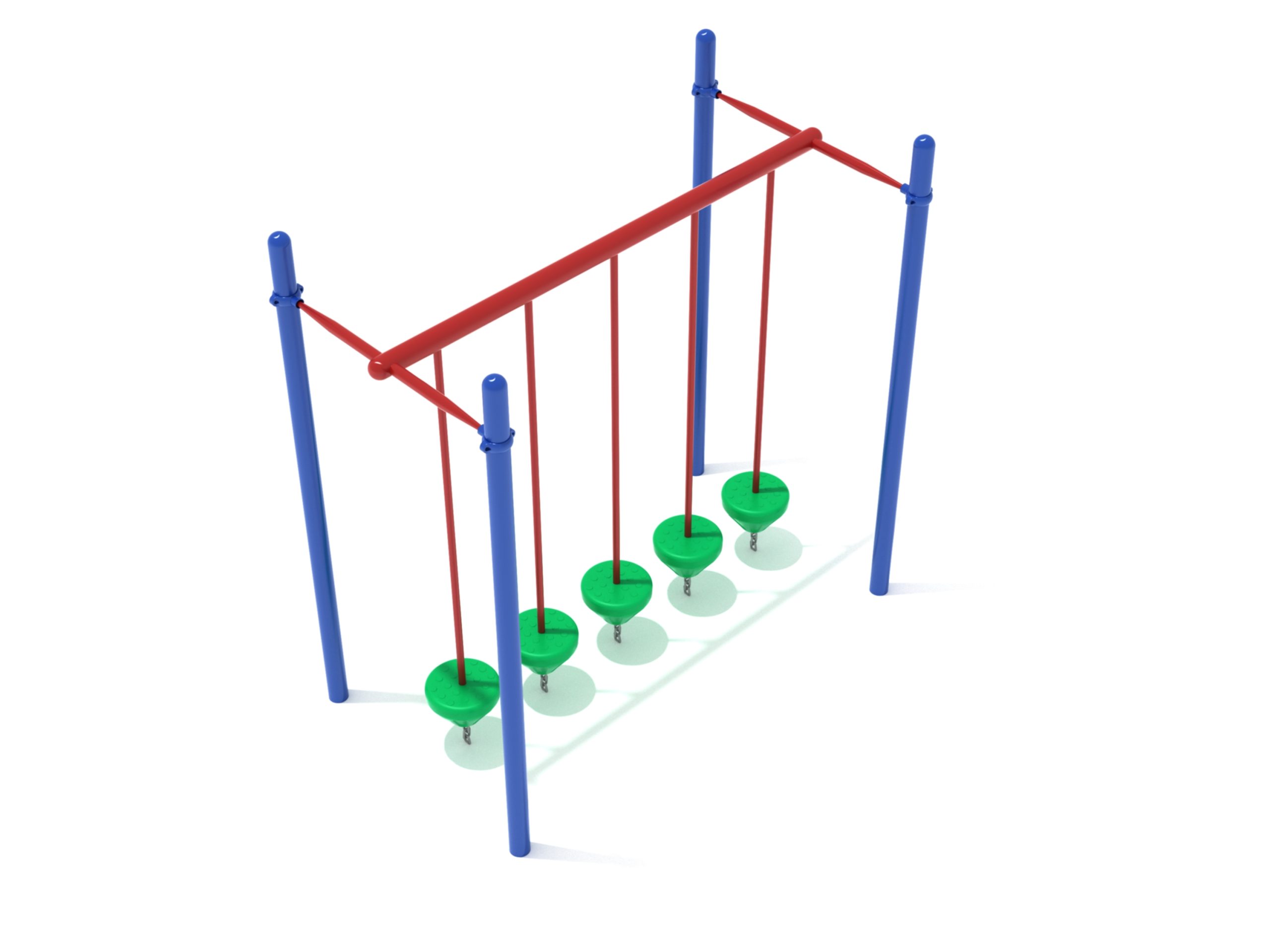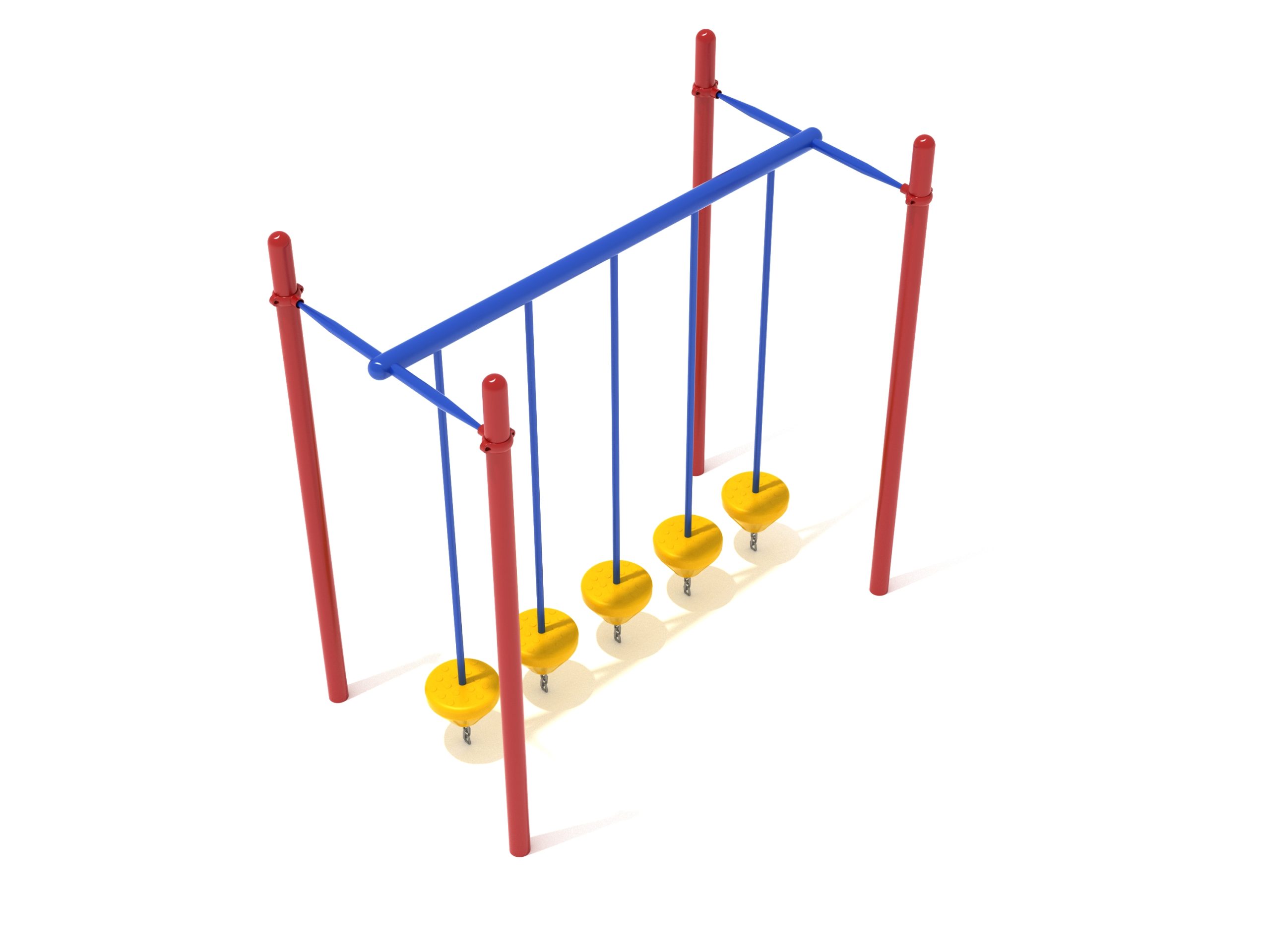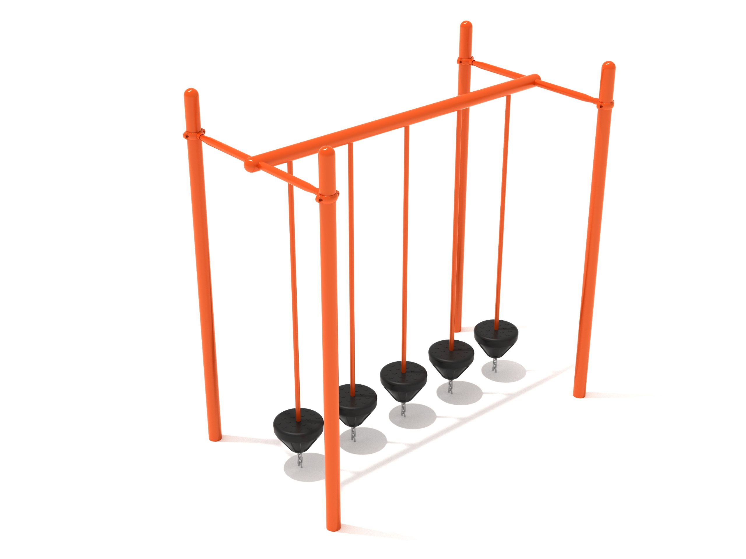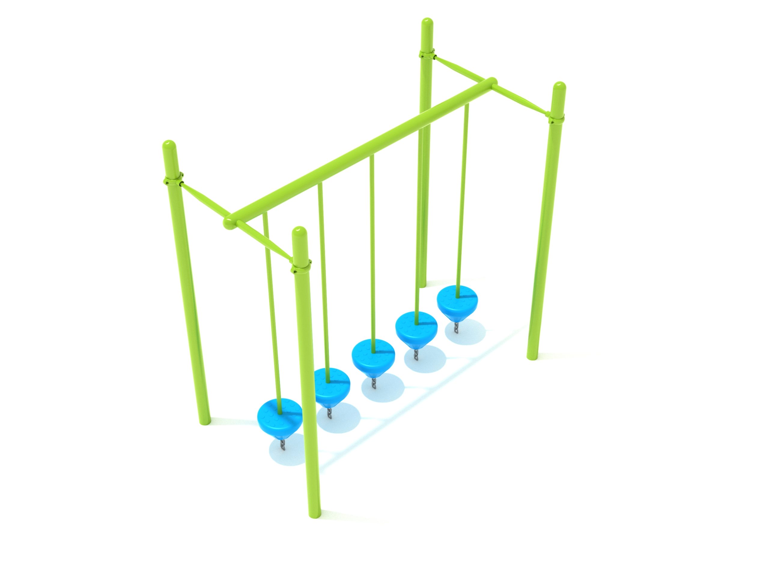 Watch children skip happily across the wobbling steps when you install this Single Row Pebble Bridge in any playground or park. This fun playground equipment features five colorful platforms suspended from a top bar which allows a full range of motion, but they’re also connected to the ground with safety chains to prevent them swinging too wildly. The Single Row Pebble Bridge presents a unique challenge children of all ages will love to attempt. To get from one side to the other, children must navigate the course pebble by pebble through balancing their bodies carefully to account for the swiveling platforms. This promotes creativity in body movement as they must learn to maneuver themselves into the right position using key motor skills and core strength to make it across successfully. The Single Row Pebble Bridge also sparks imaginations as the children can pretend they’re crossing a flowing river or hot lava and really try their hardest not to fall in.