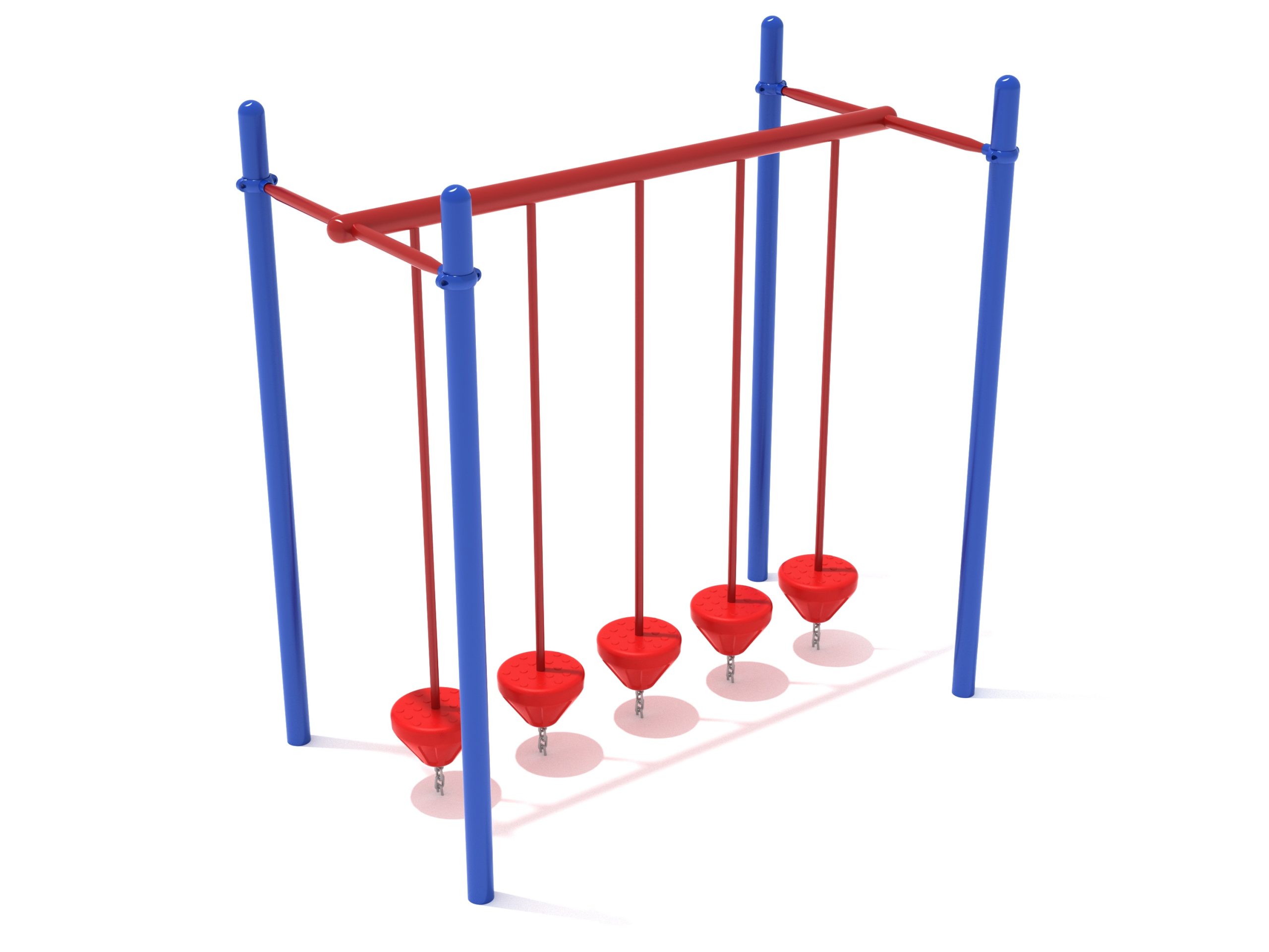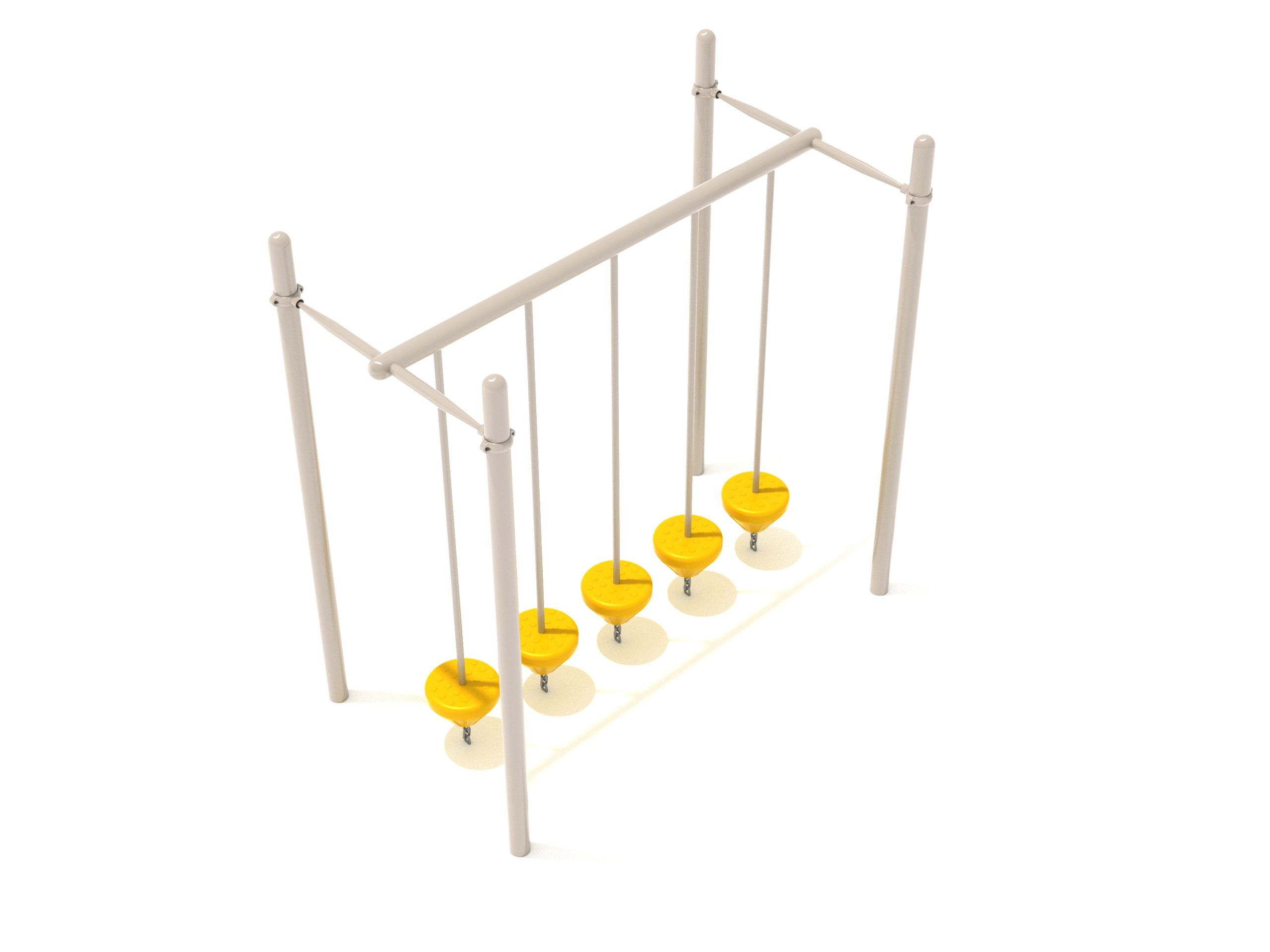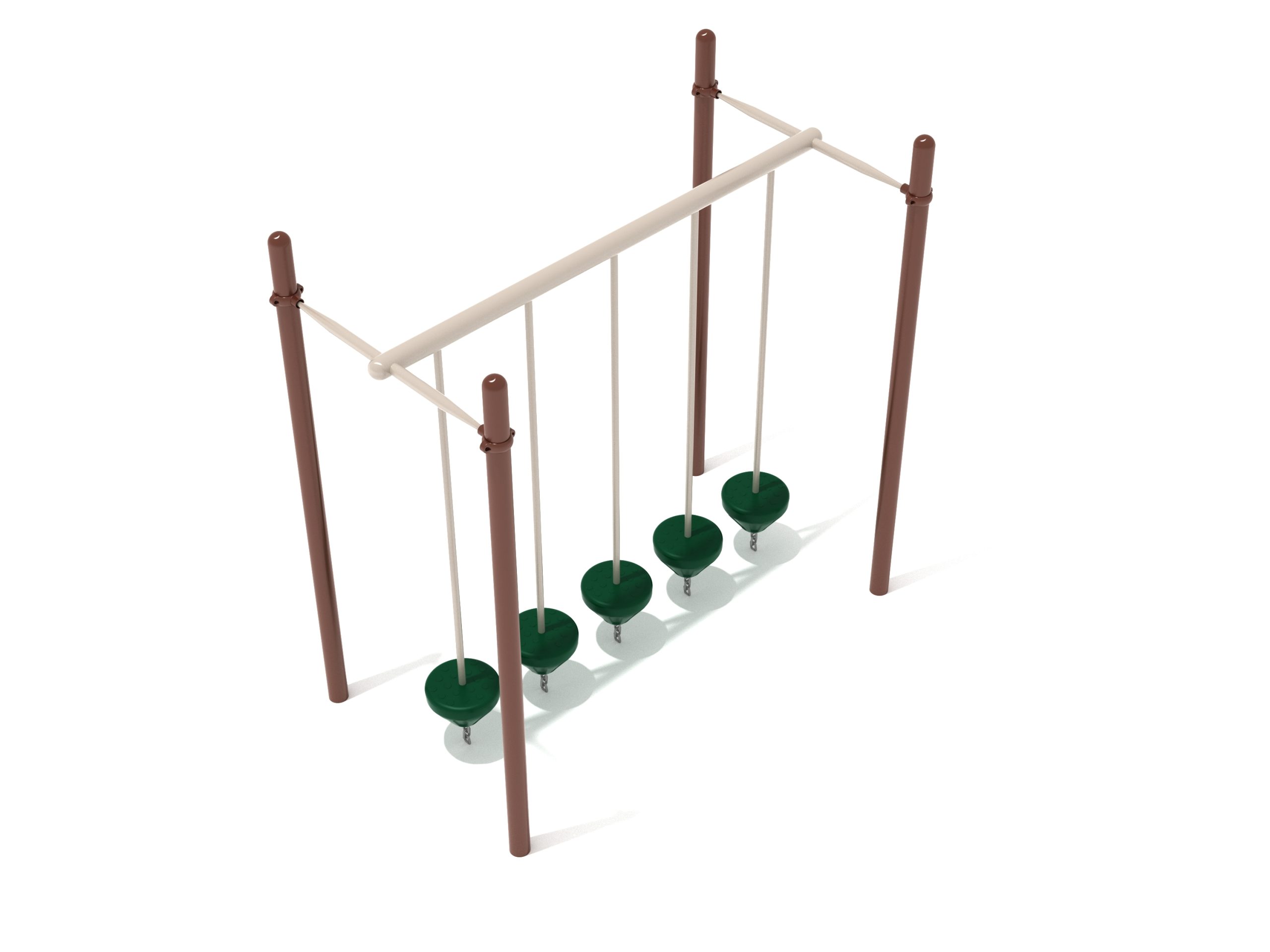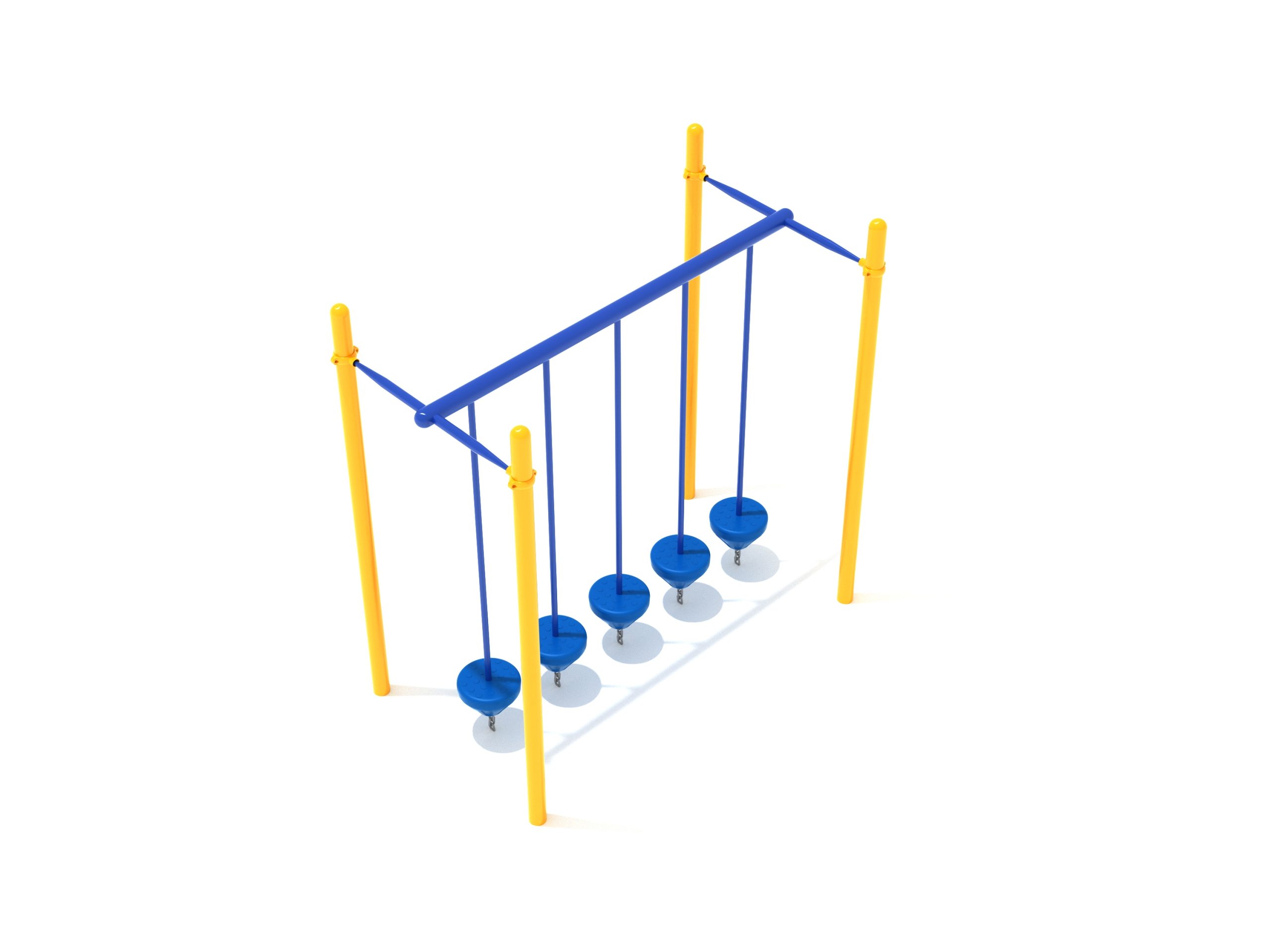 Watch children skip happily across the wobbling steps when you install this Single Row Pebble Bridge in any playground or park. This fun playground equipment features five colorful platforms suspended from a top bar which allows a full range of motion, but they’re also connected to the ground with safety chains to prevent them swinging too wildly. The Single Row Pebble Bridge presents a unique challenge children of all ages will love to attempt. To get from one side to the other, children must navigate the course pebble by pebble through balancing their bodies carefully to account for the swiveling platforms. This promotes creativity in body movement as they must learn to maneuver themselves into the right position using key motor skills and core strength to make it across successfully. The Single Row Pebble Bridge also sparks imaginations as the children can pretend they’re crossing a flowing river or hot lava and really try their hardest not to fall in.