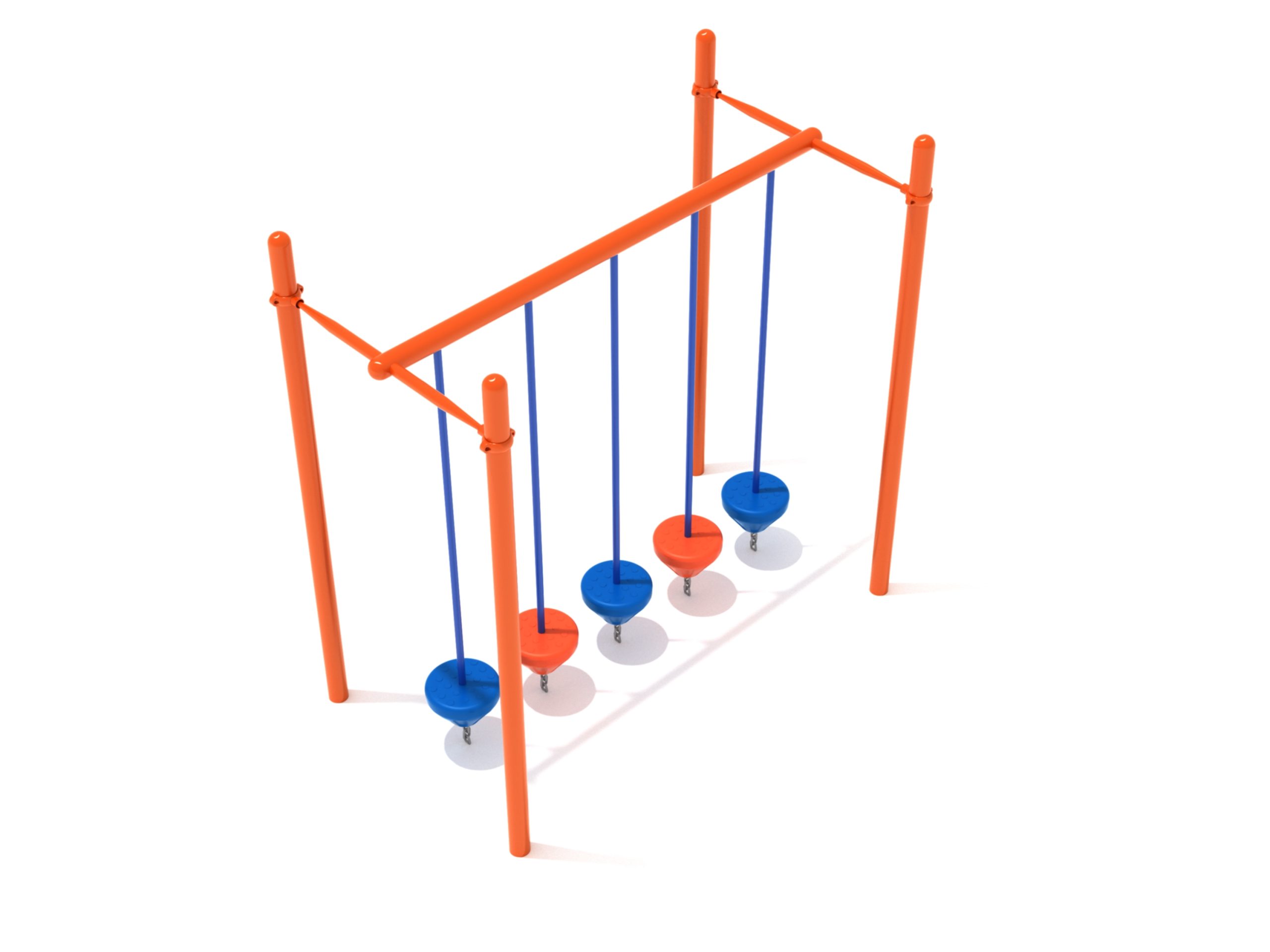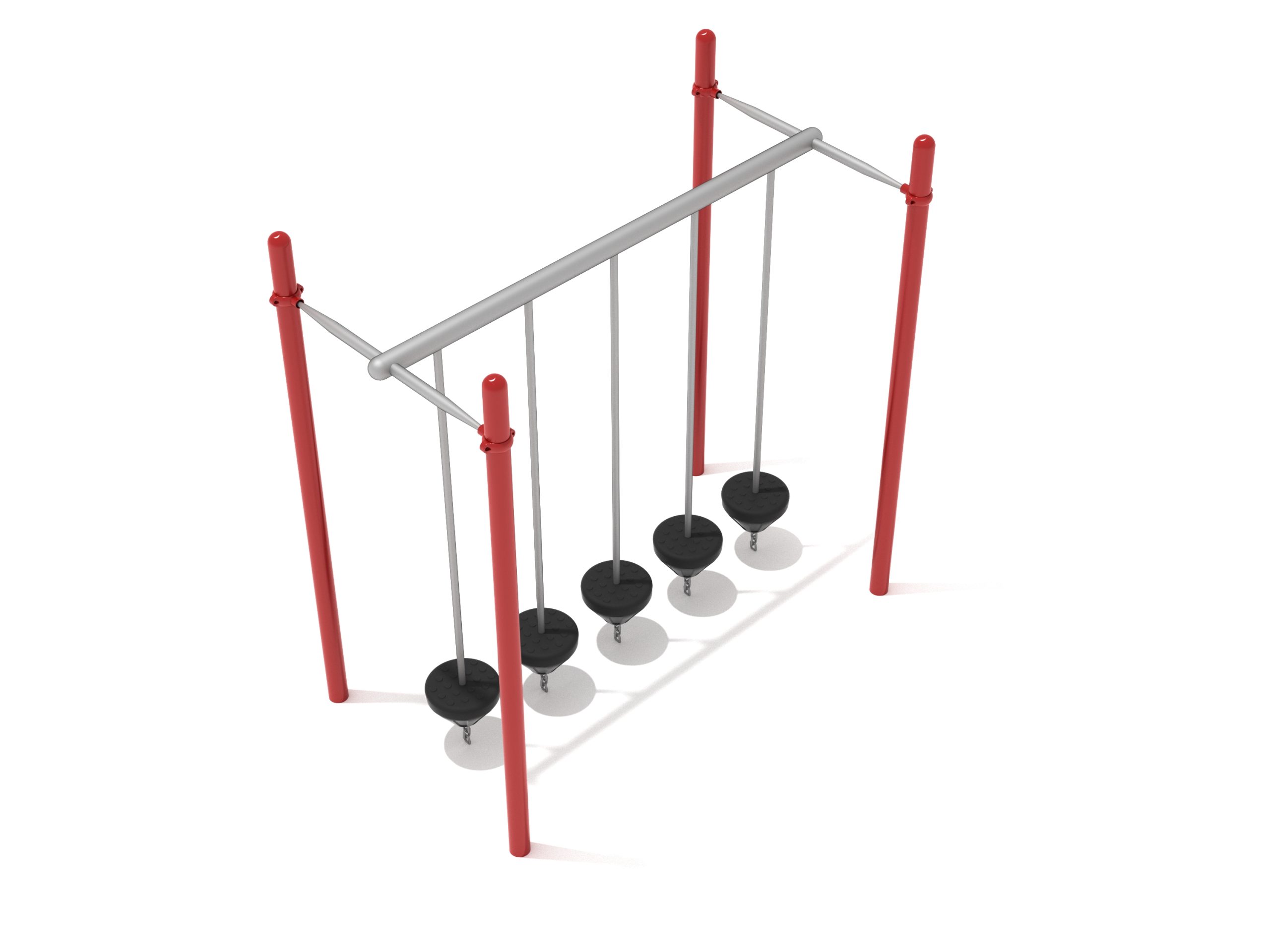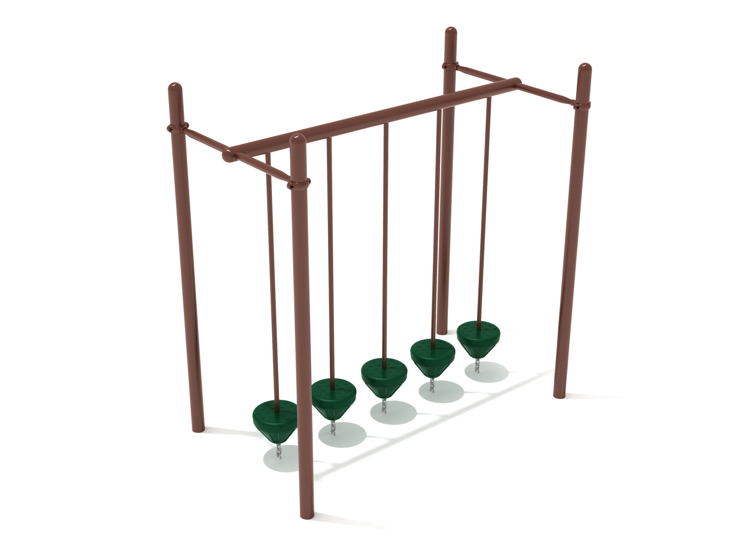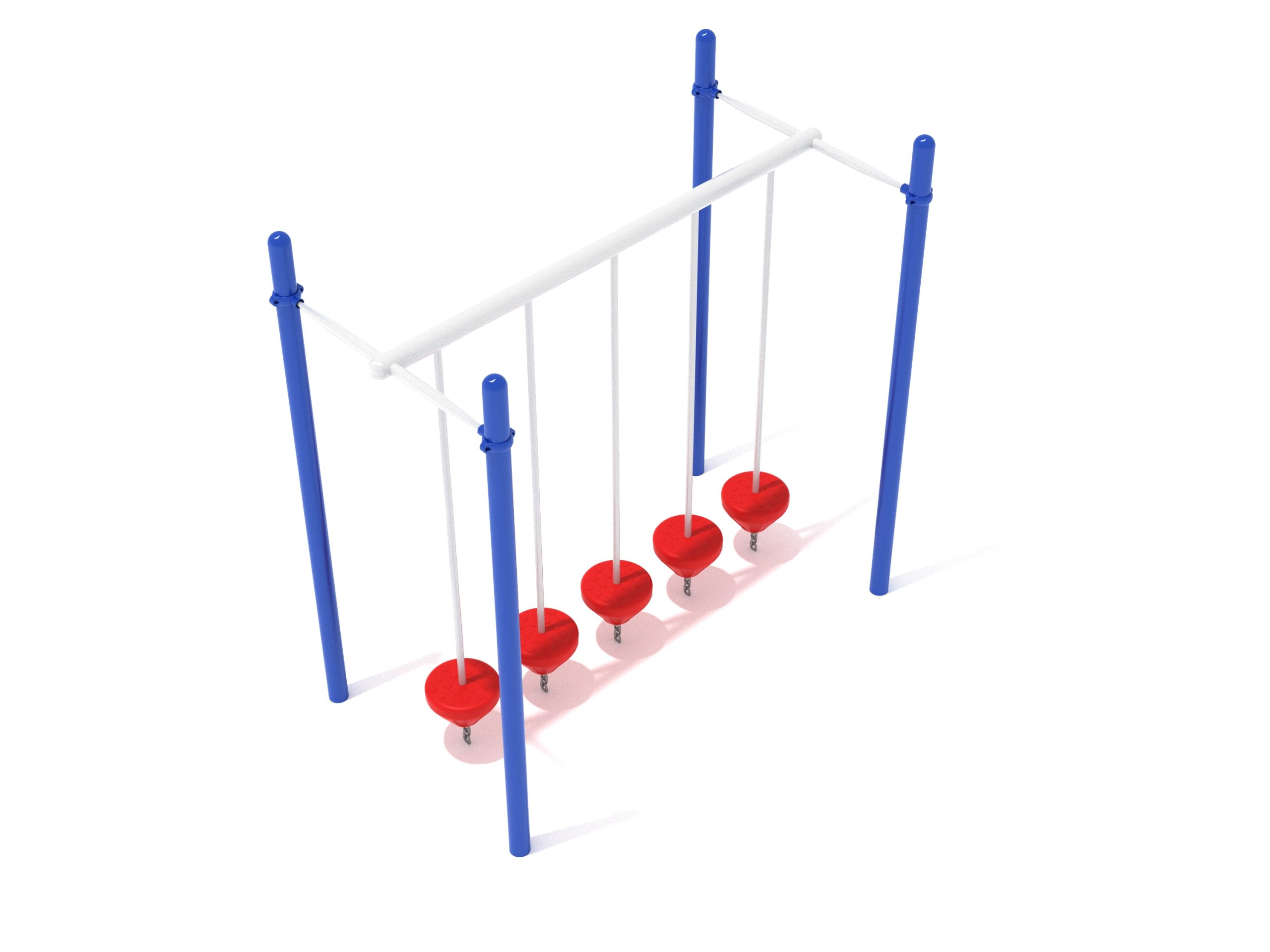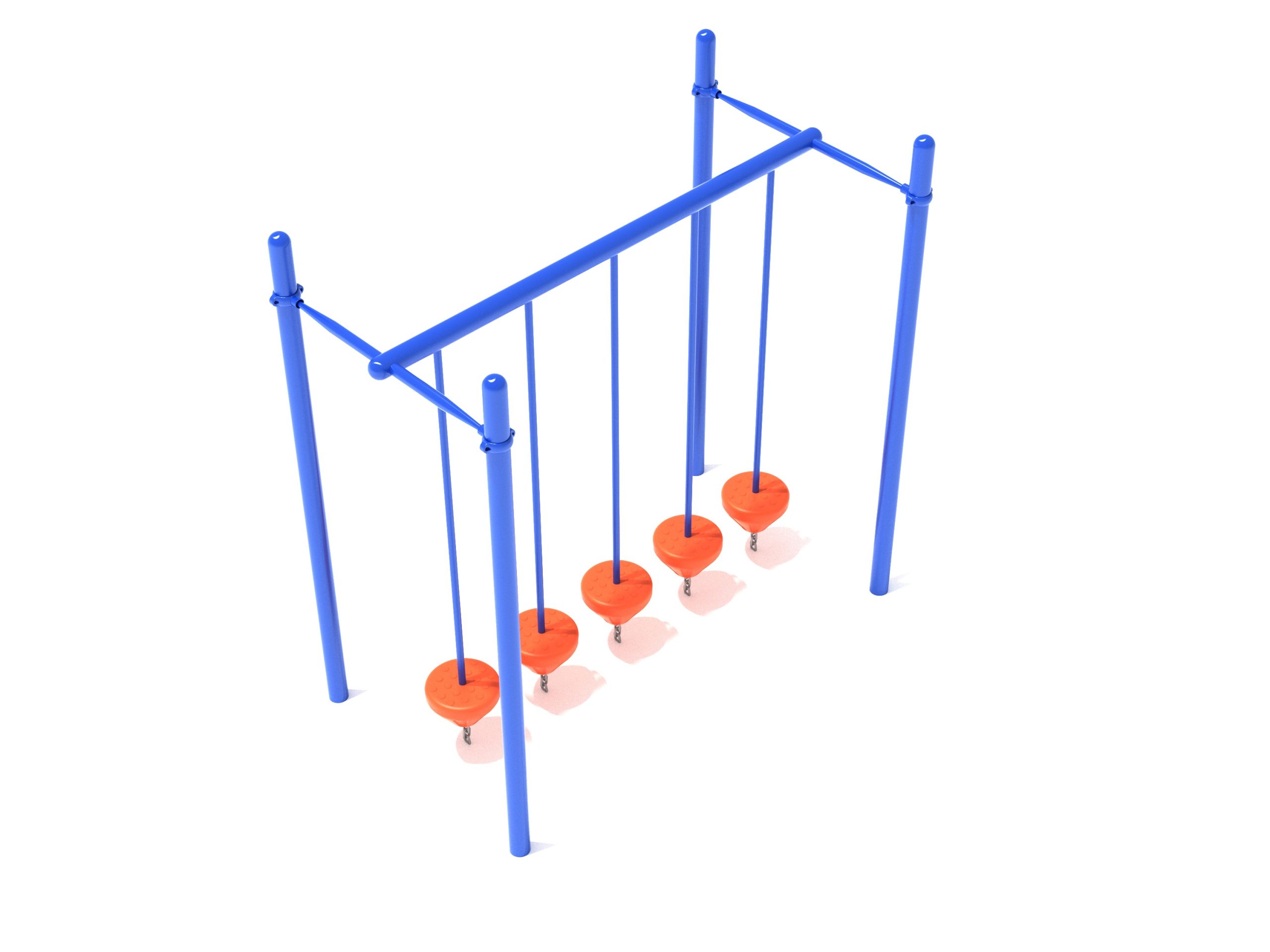 Watch children skip happily across the wobbling steps when you install this Single Row Pebble Bridge in any playground or park. This fun playground equipment features five colorful platforms suspended from a top bar which allows a full range of motion, but they’re also connected to the ground with safety chains to prevent them swinging too wildly. The Single Row Pebble Bridge presents a unique challenge children of all ages will love to attempt. To get from one side to the other, children must navigate the course pebble by pebble through balancing their bodies carefully to account for the swiveling platforms. This promotes creativity in body movement as they must learn to maneuver themselves into the right position using key motor skills and core strength to make it across successfully. The Single Row Pebble Bridge also sparks imaginations as the children can pretend they’re crossing a flowing river or hot lava and really try their hardest not to fall in.