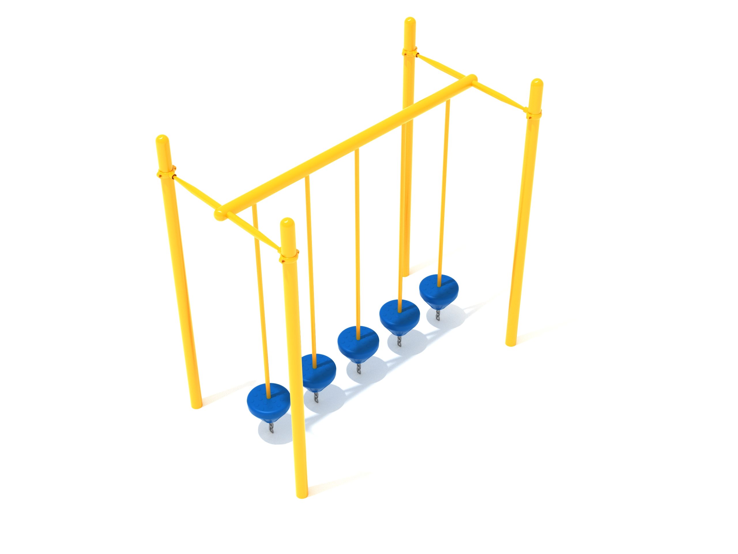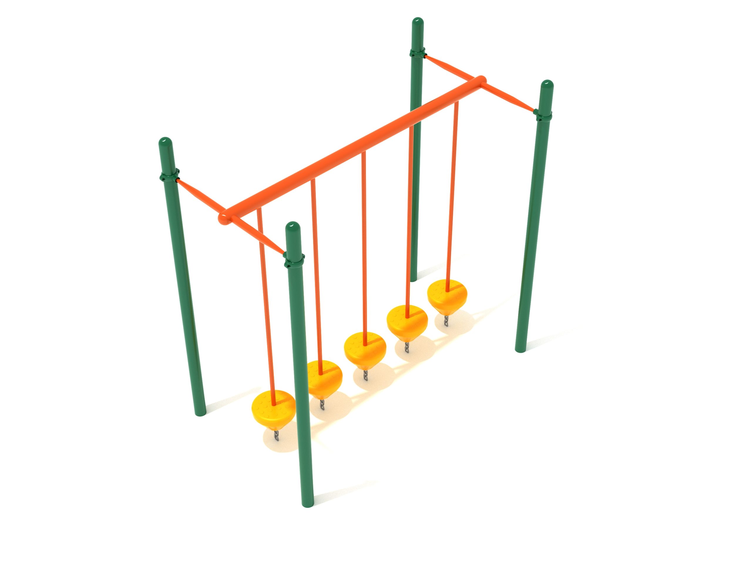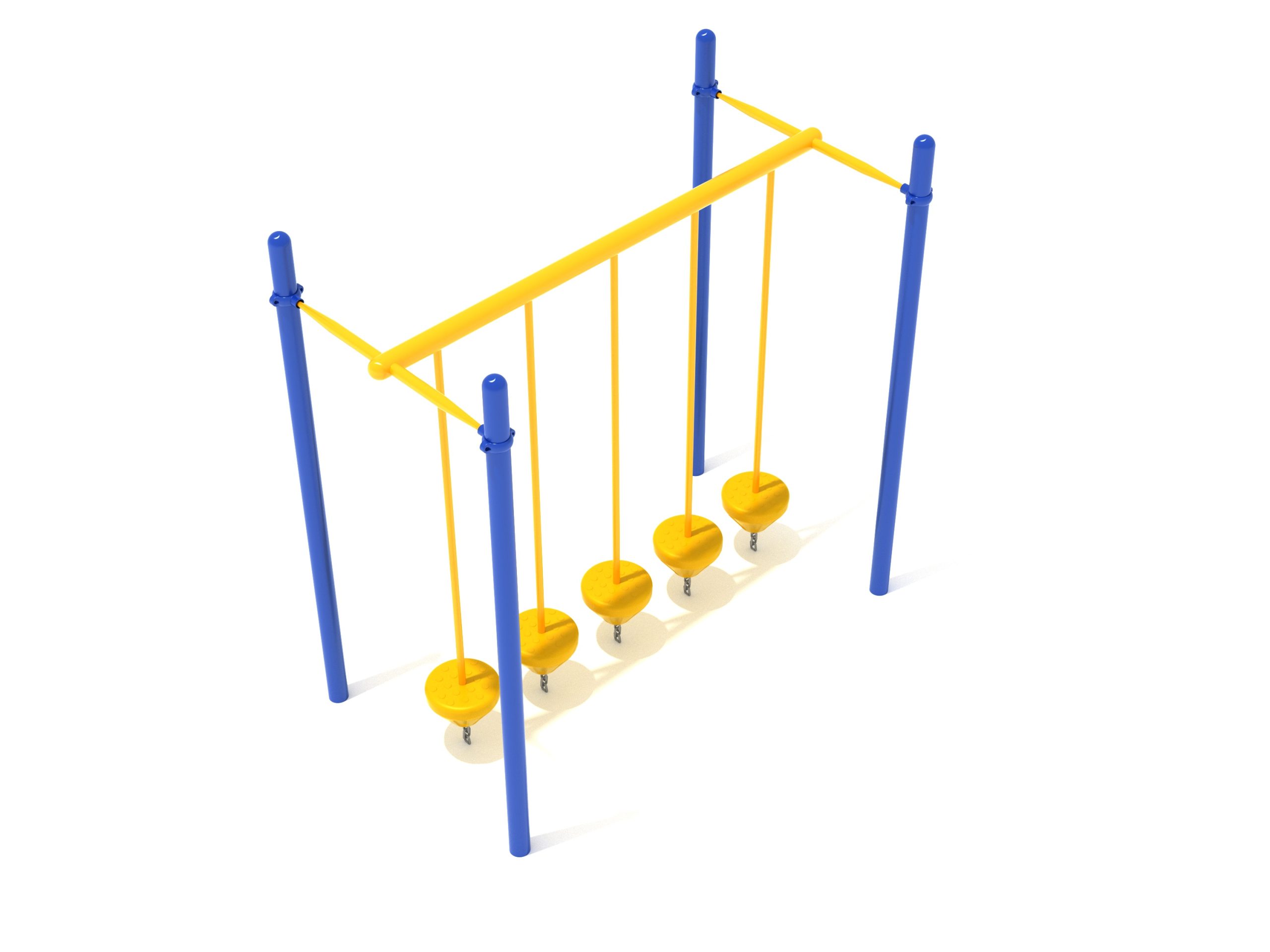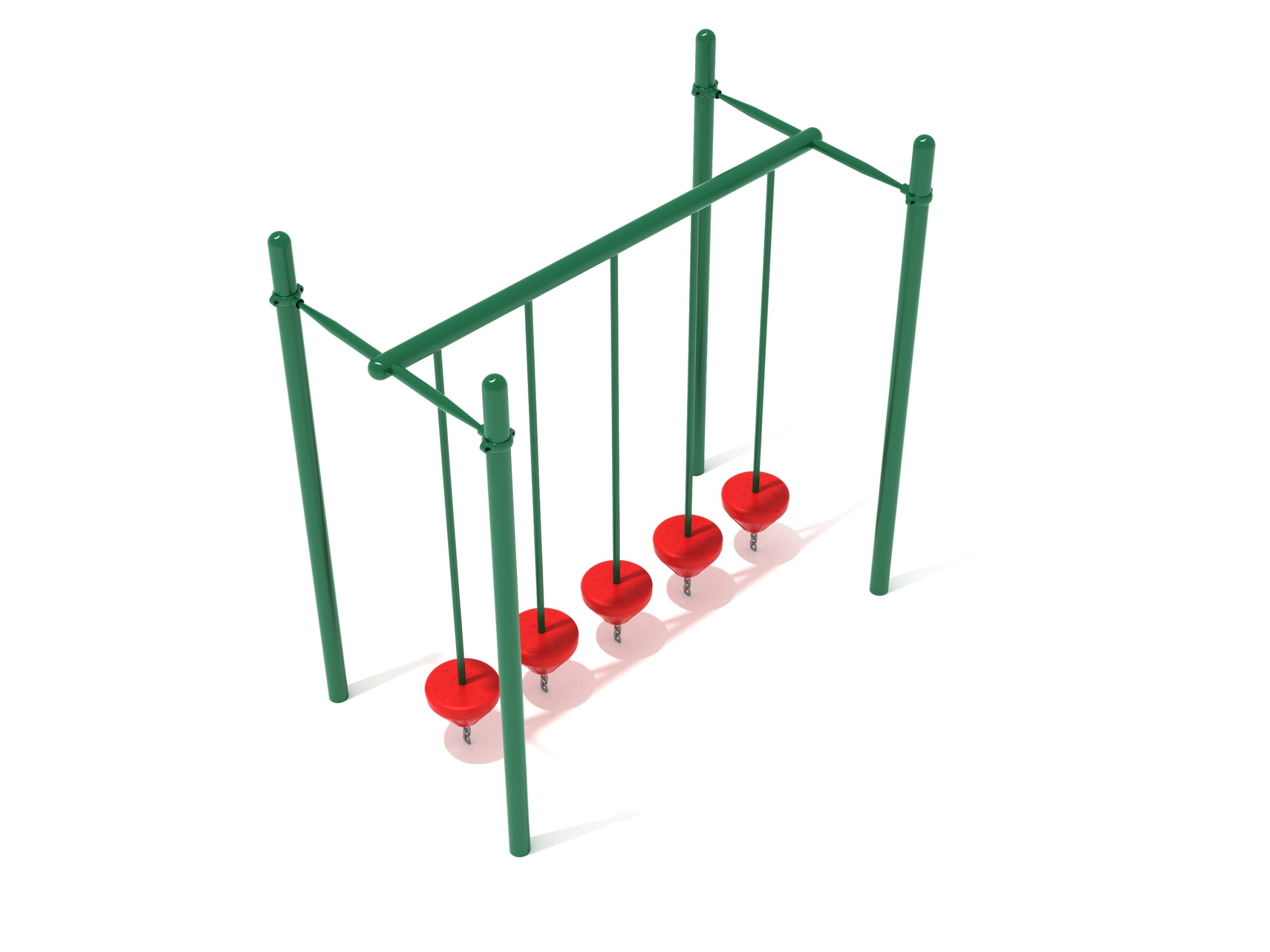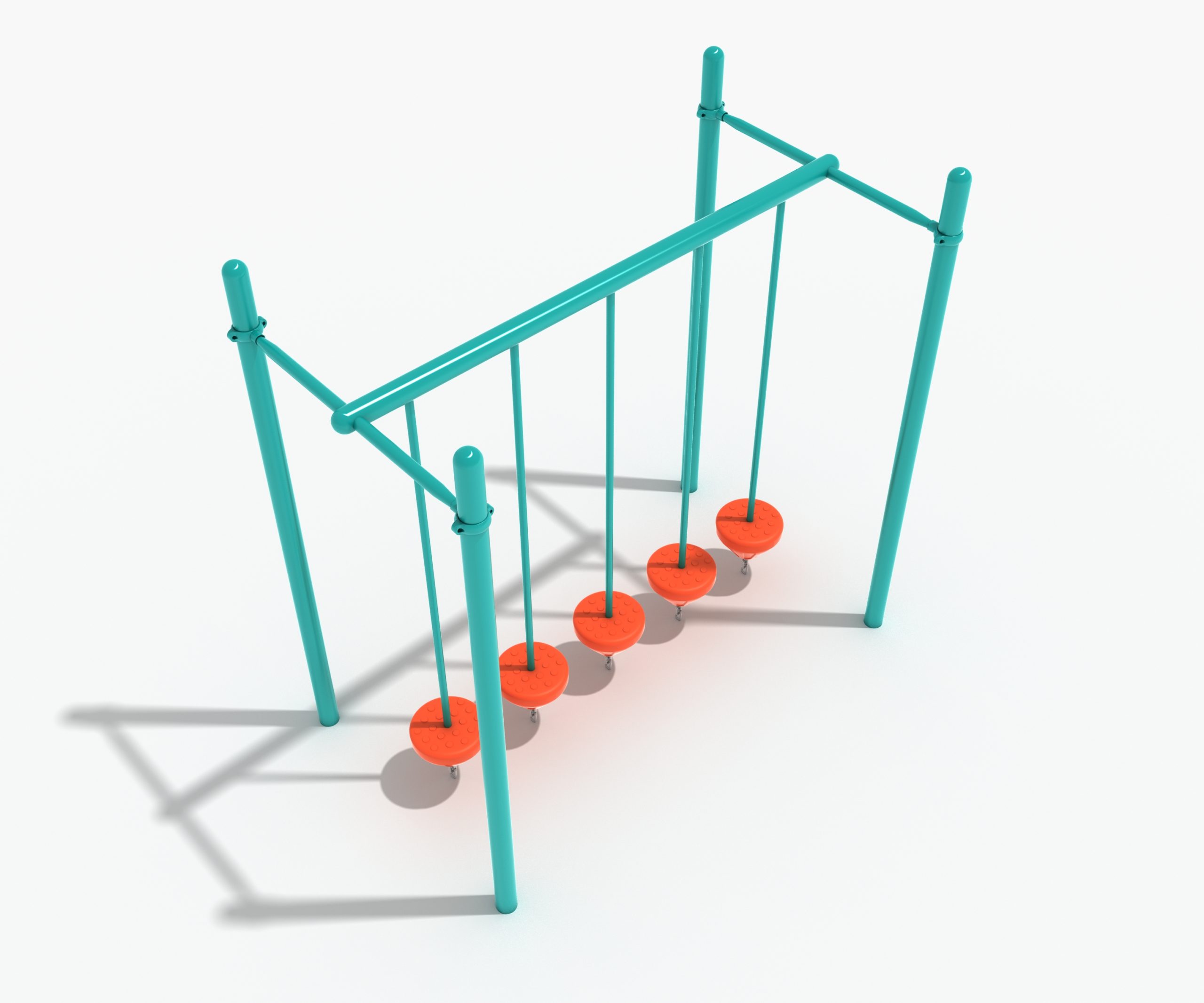 Watch children skip happily across the wobbling steps when you install this Single Row Pebble Bridge in any playground or park. This fun playground equipment features five colorful platforms suspended from a top bar which allows a full range of motion, but they’re also connected to the ground with safety chains to prevent them swinging too wildly. The Single Row Pebble Bridge presents a unique challenge children of all ages will love to attempt. To get from one side to the other, children must navigate the course pebble by pebble through balancing their bodies carefully to account for the swiveling platforms. This promotes creativity in body movement as they must learn to maneuver themselves into the right position using key motor skills and core strength to make it across successfully. The Single Row Pebble Bridge also sparks imaginations as the children can pretend they’re crossing a flowing river or hot lava and really try their hardest not to fall in.