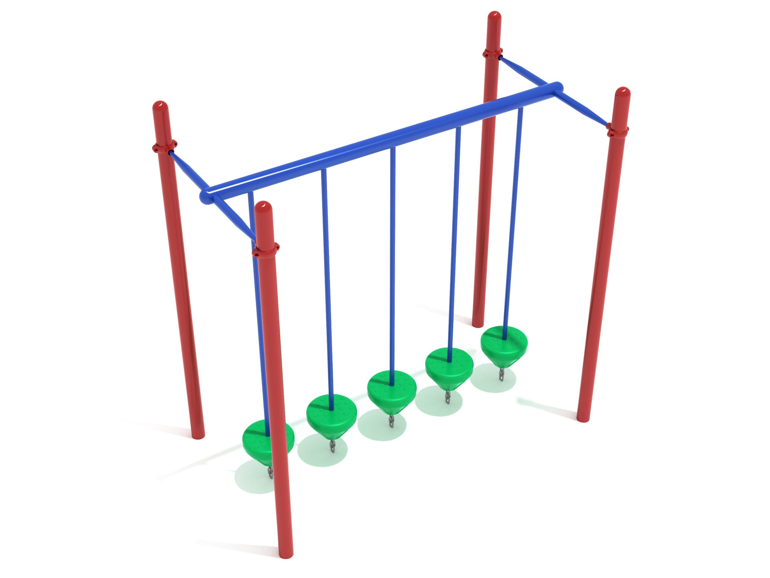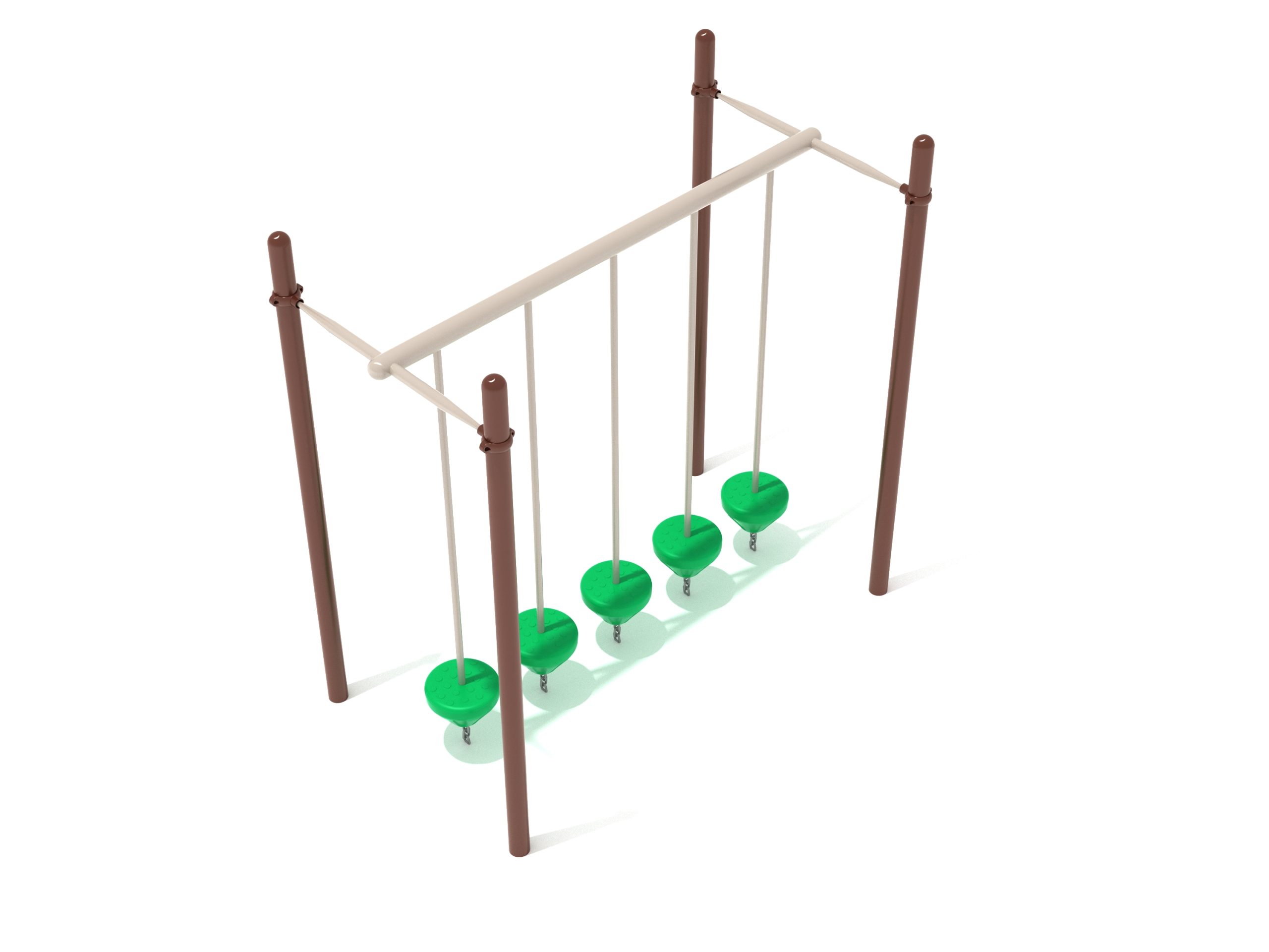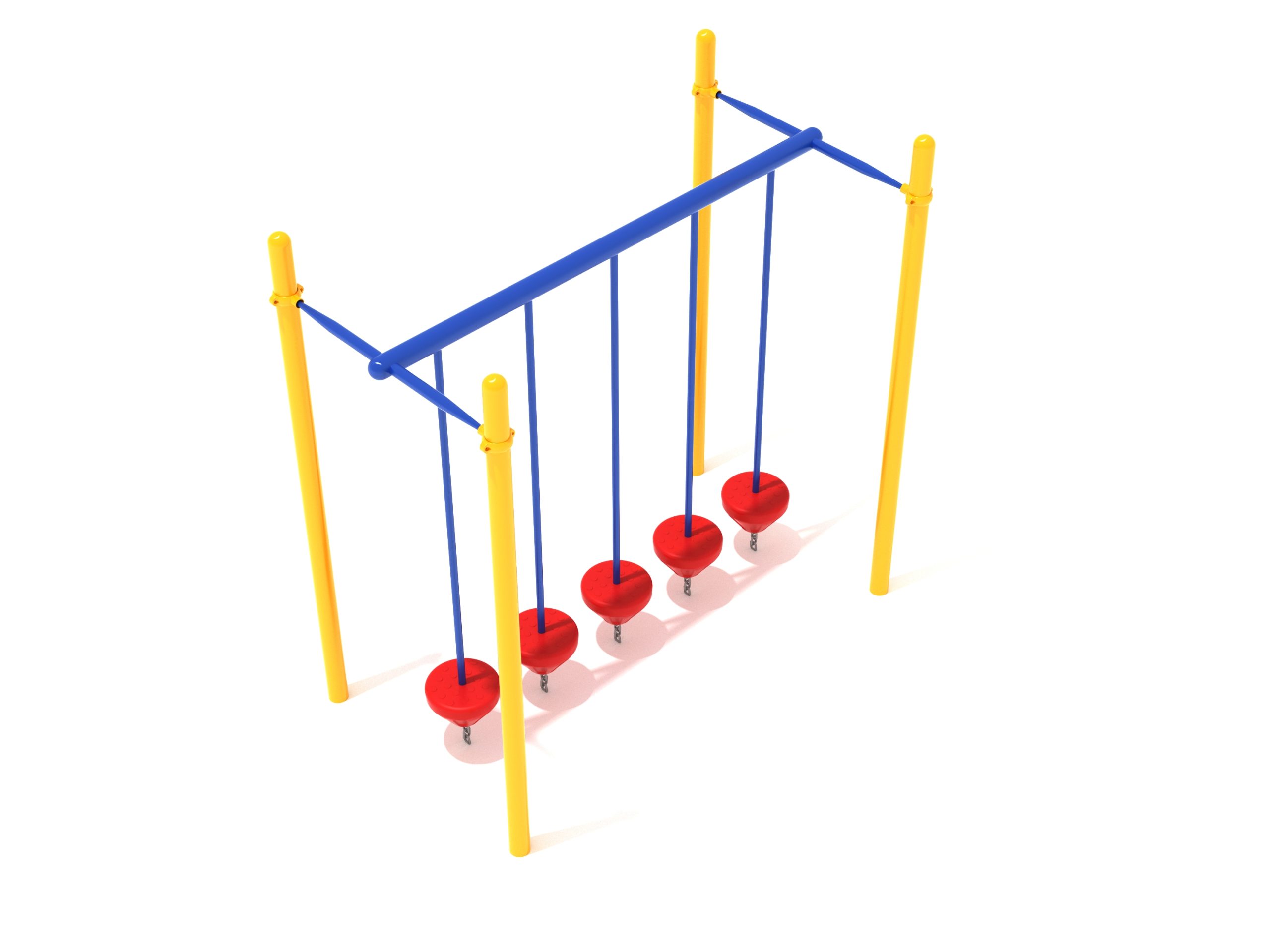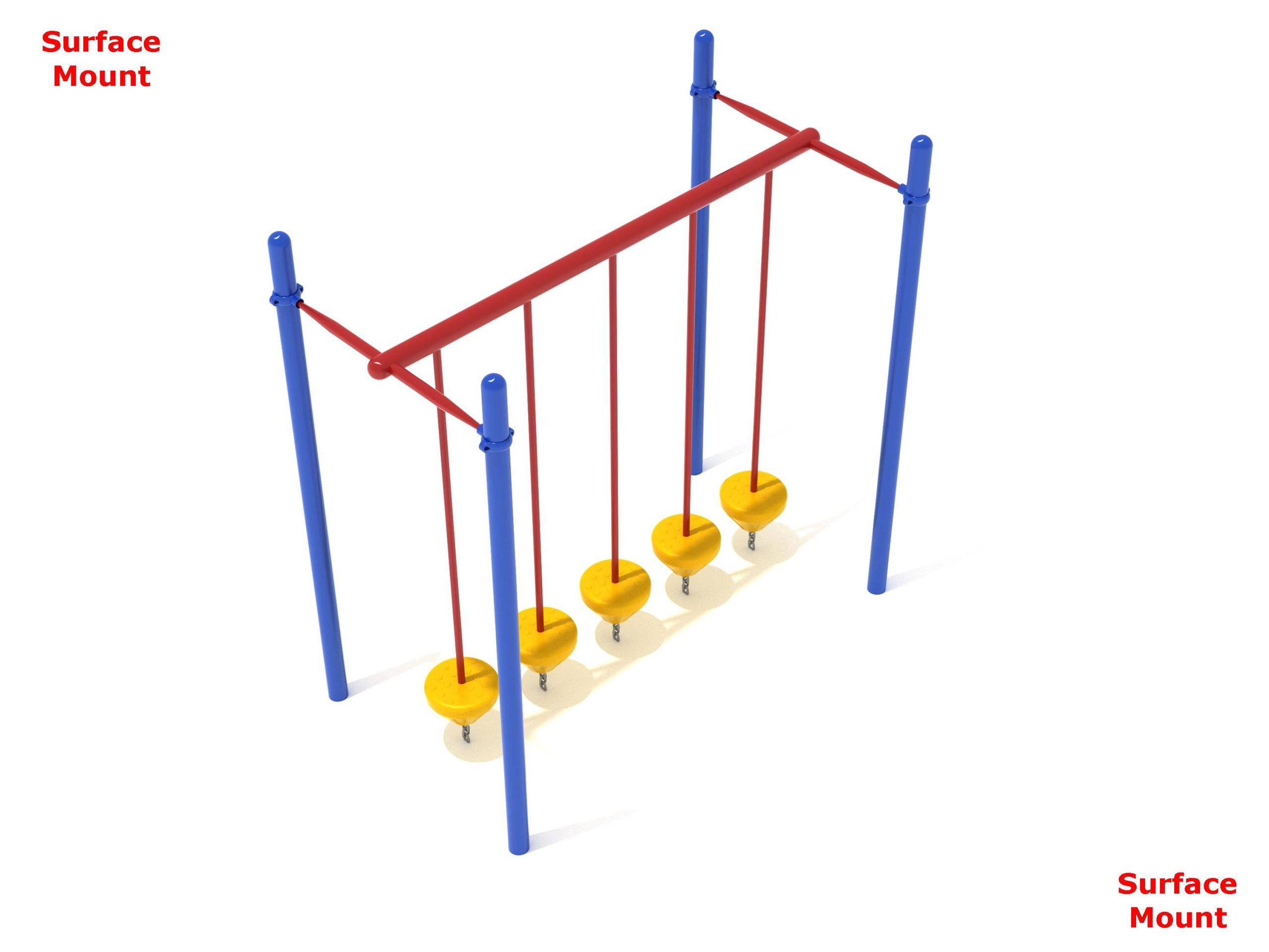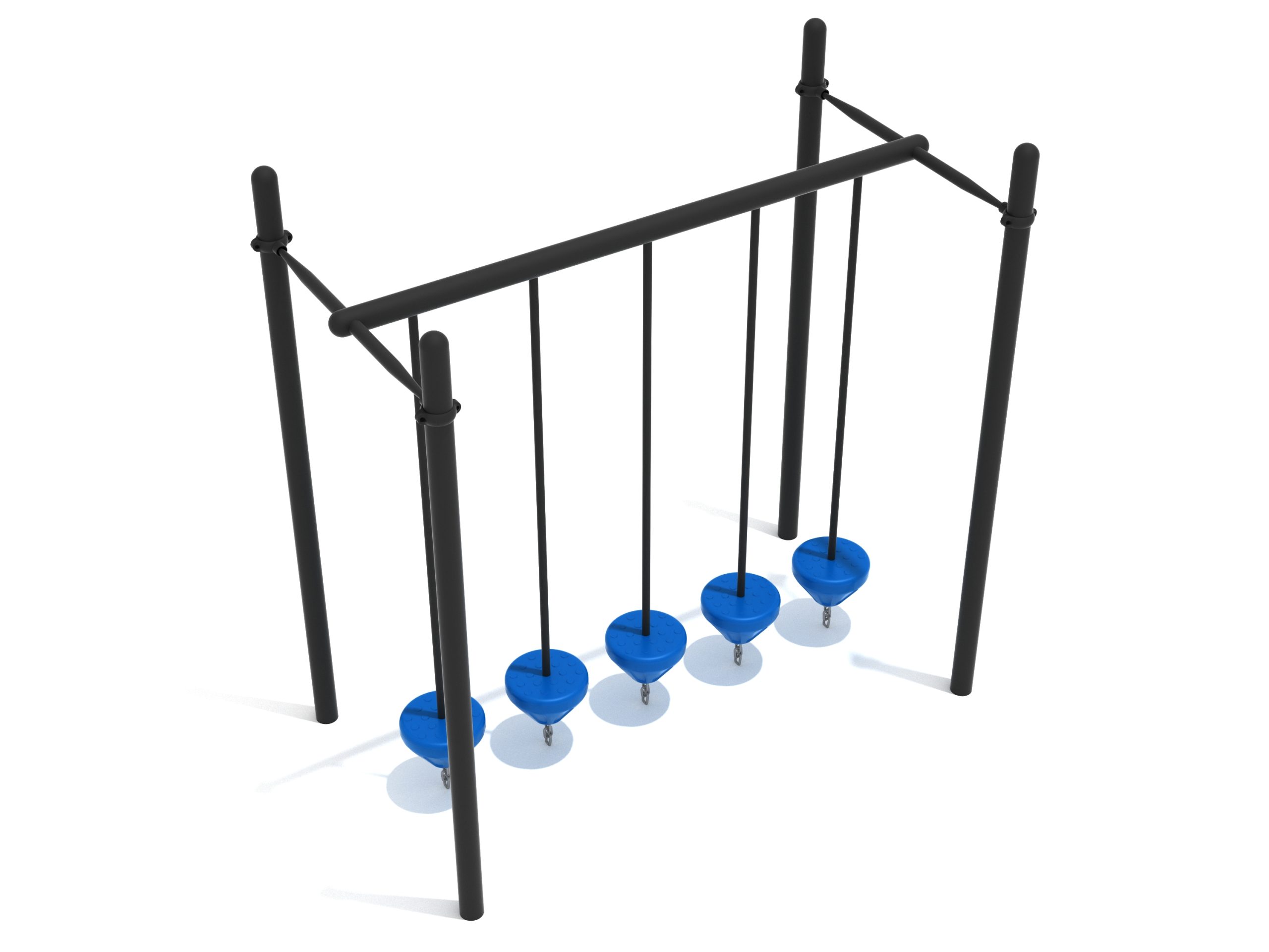 Watch children skip happily across the wobbling steps when you install this Single Row Pebble Bridge in any playground or park. This fun playground equipment features five colorful platforms suspended from a top bar which allows a full range of motion, but they’re also connected to the ground with safety chains to prevent them swinging too wildly. The Single Row Pebble Bridge presents a unique challenge children of all ages will love to attempt. To get from one side to the other, children must navigate the course pebble by pebble through balancing their bodies carefully to account for the swiveling platforms. This promotes creativity in body movement as they must learn to maneuver themselves into the right position using key motor skills and core strength to make it across successfully. The Single Row Pebble Bridge also sparks imaginations as the children can pretend they’re crossing a flowing river or hot lava and really try their hardest not to fall in.