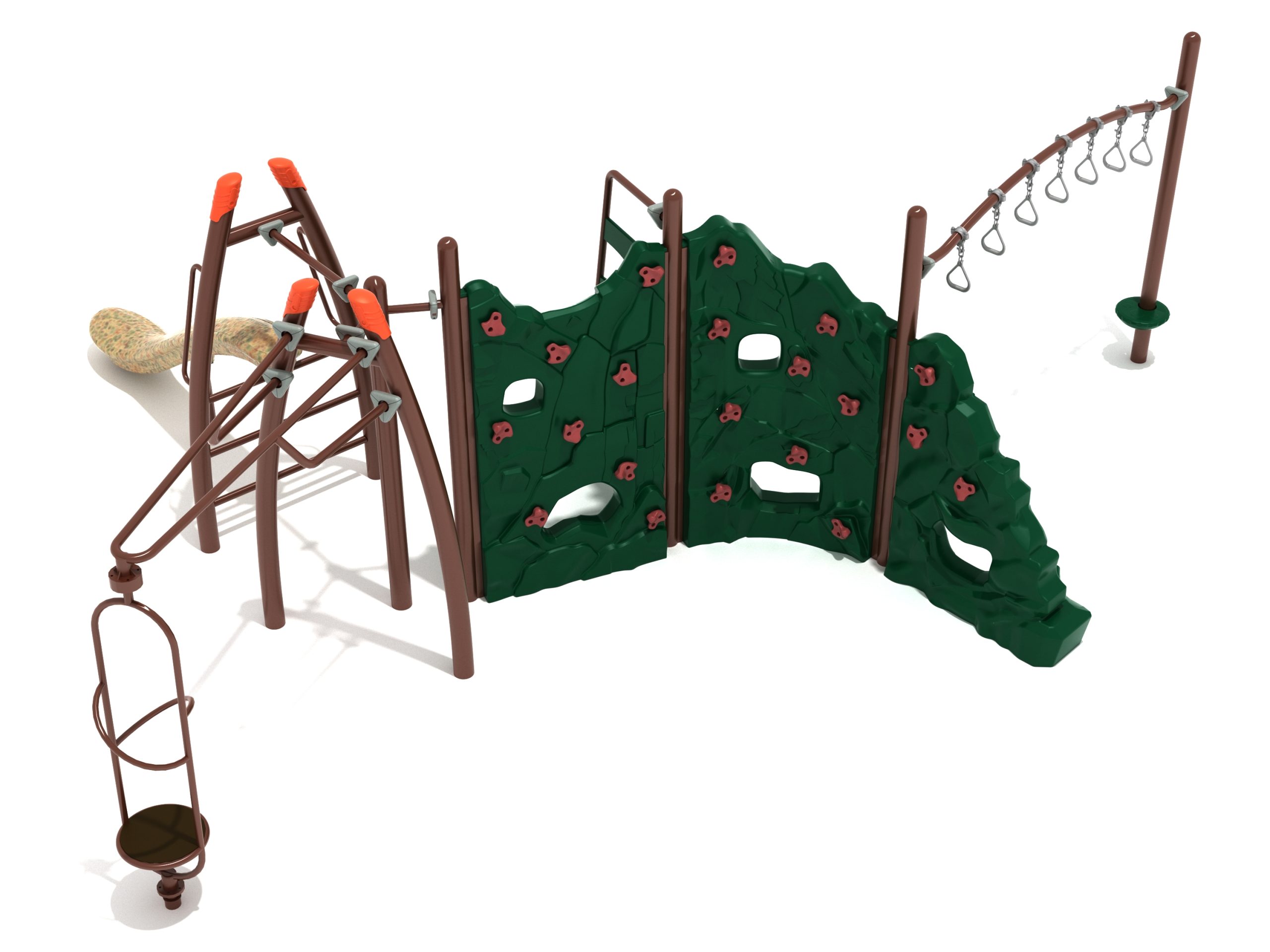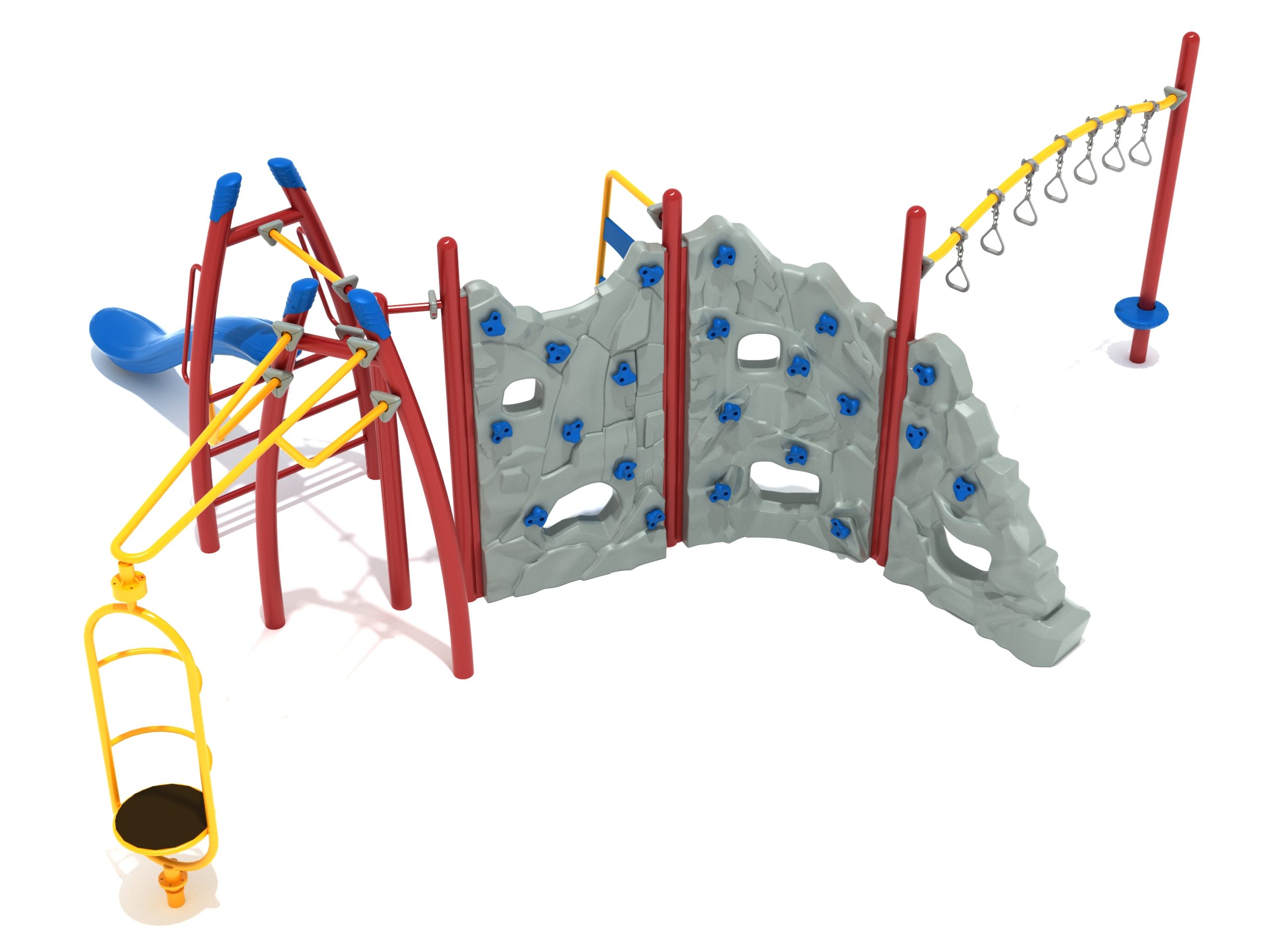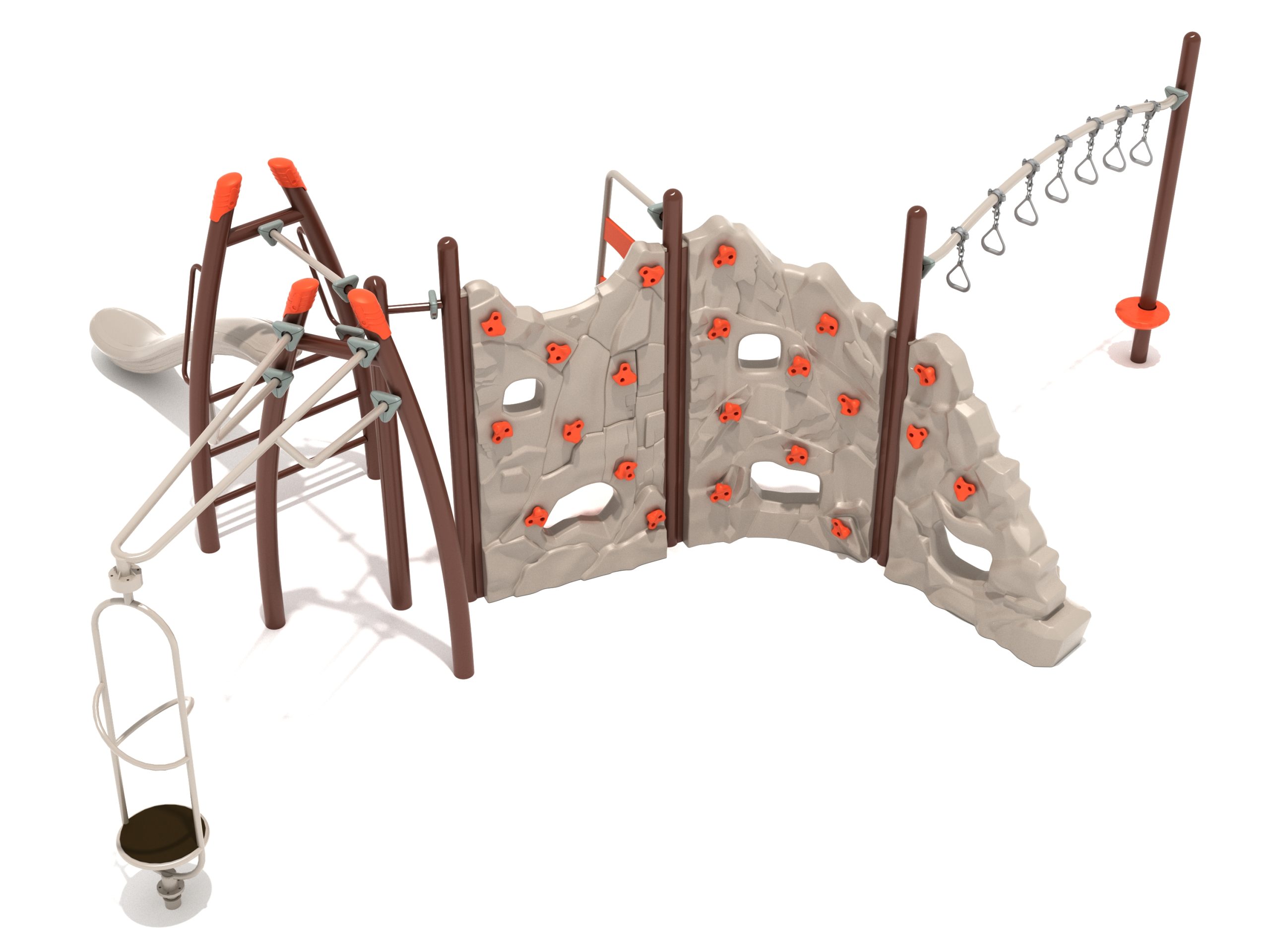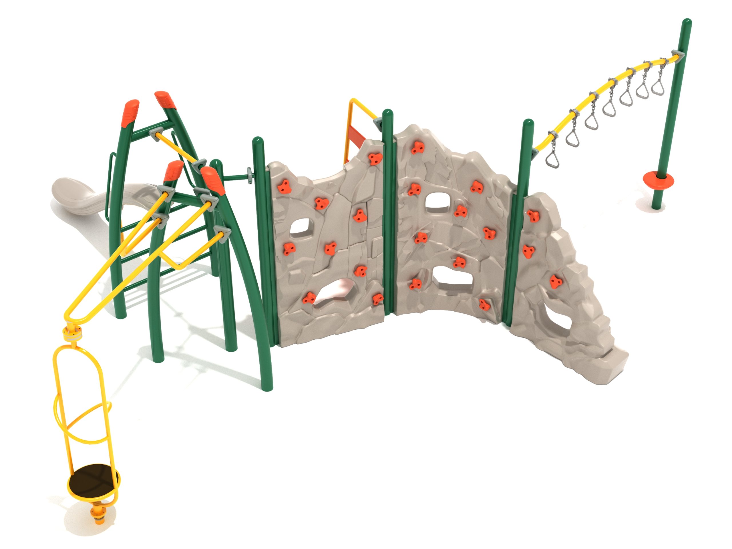 It’s important to keep kids fit and active, and with the Timms Hill play structure they’ll be able to work all of their muscle groups without even realizing it’s beneficial exercise. A Saddle Slide at one end works core muscles as children attempt to stay upright as they balance their way down, and a Standing Orbital Spinner will make children grip on tight as the spinning motion pushes them outwards. The Climber Attachment is the perfect way to get up onto the rock climbing walls thanks to its angled holes. The climbing wall sections are made up of a Craggy Climber Straight Section that links to a Craggy Climber Turn Section which provides a different challenge on each face, and finally a Craggy Climber End Section to help youngsters get accustomed to the rock face. Only the most daring children will attempt to get onto the Craggy climbing sections directly from the Curved Overhead Swinging Ring Ladder as they have to manage multiple motor functions at the same time to achieve it.
