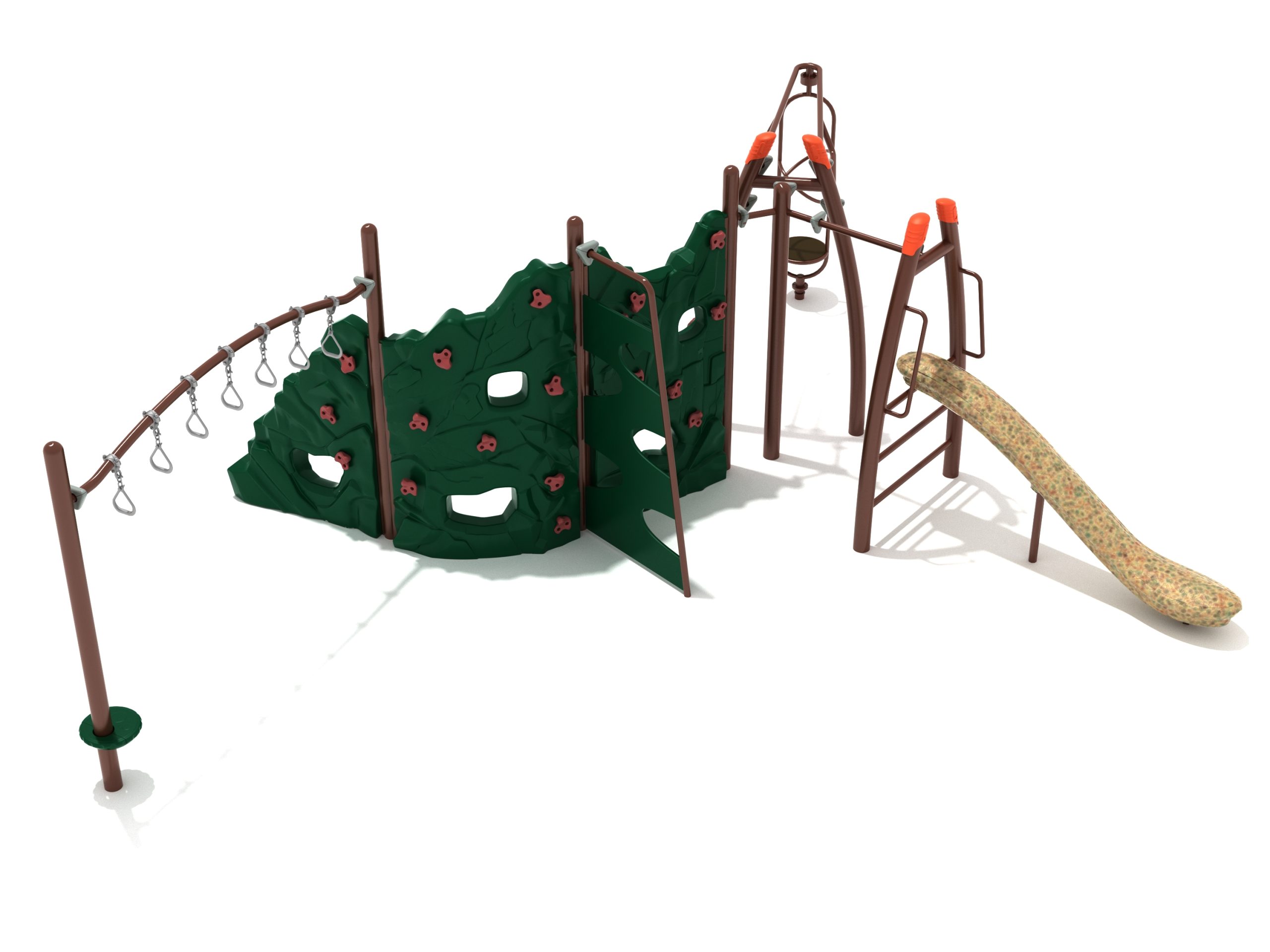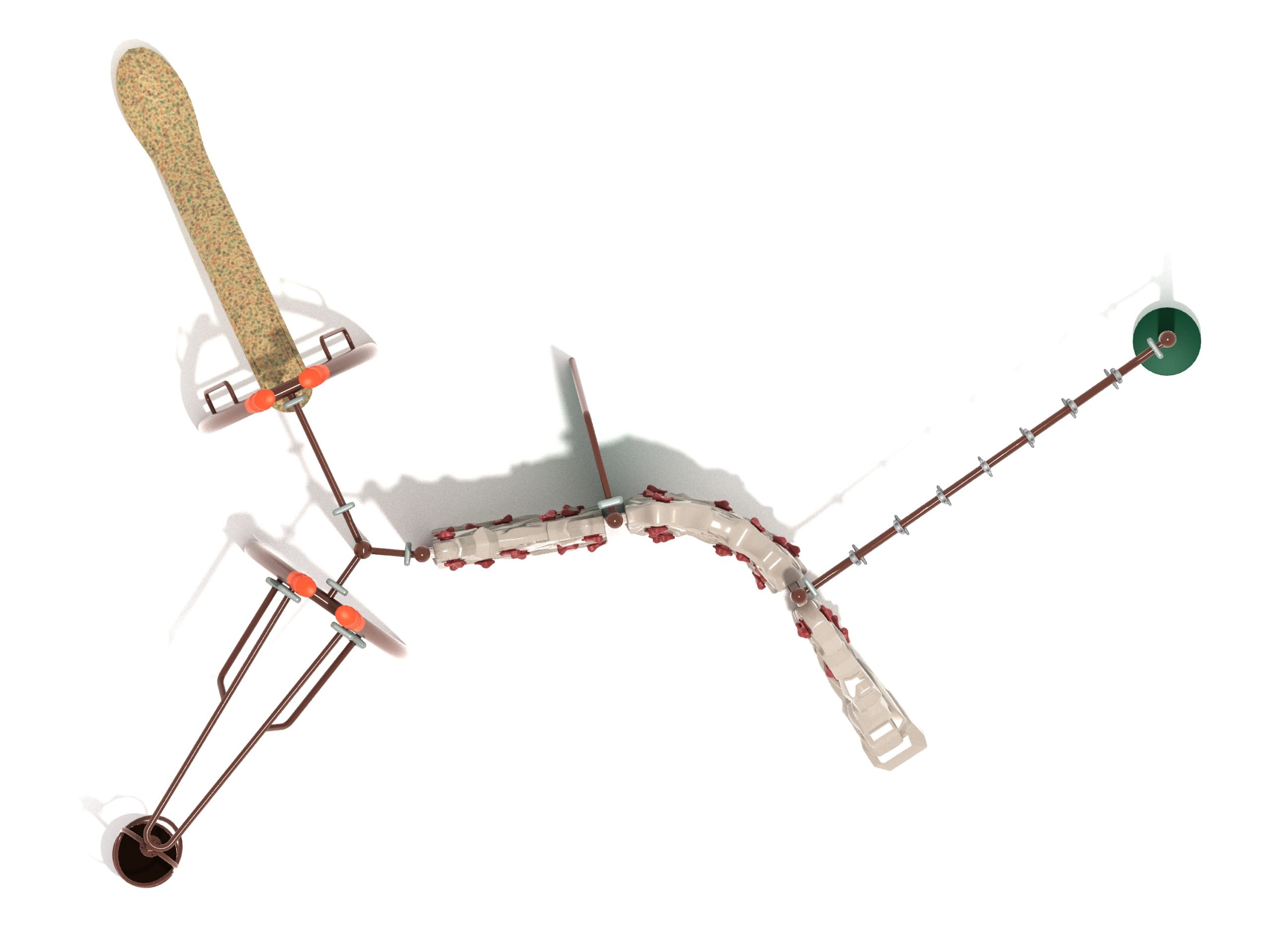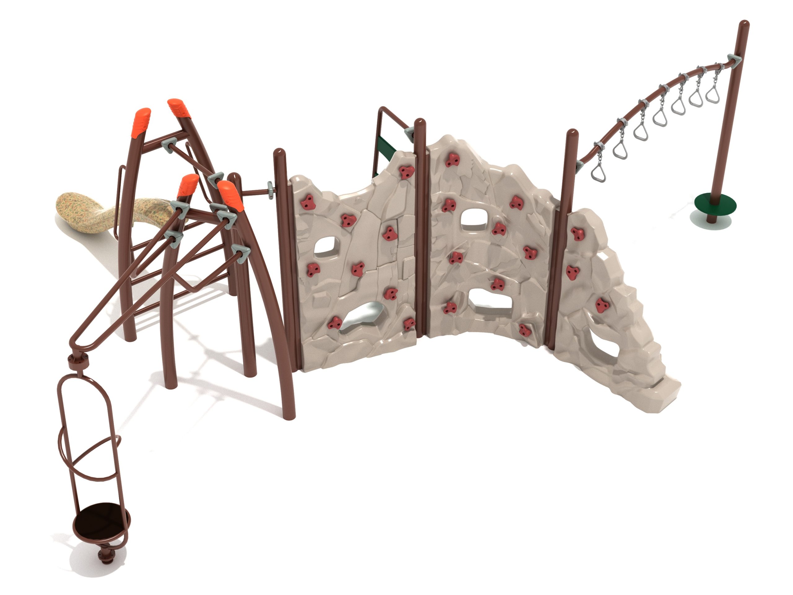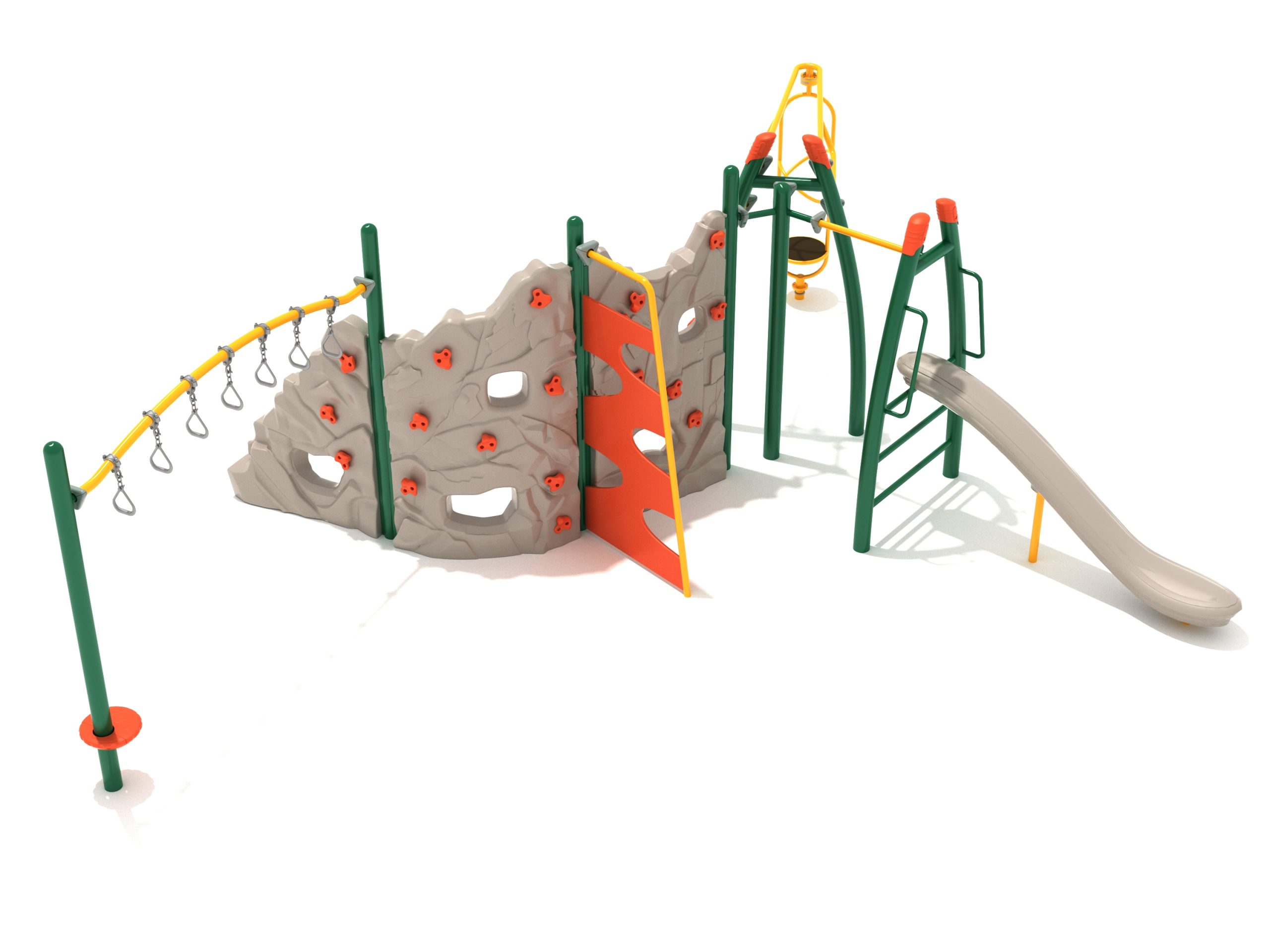It’s important to keep kids fit and active, and with the Timms Hill play structure they’ll be able to work all of their muscle groups without even realizing it’s beneficial exercise. A Saddle Slide at one end works core muscles as children attempt to stay upright as they balance their way down, and a Standing Orbital Spinner will make children grip on tight as the spinning motion pushes them outwards. The Climber Attachment is the perfect way to get up onto the rock climbing walls thanks to its angled holes. The climbing wall sections are made up of a Craggy Climber Straight Section that links to a Craggy Climber Turn Section which provides a different challenge on each face, and finally a Craggy Climber End Section to help youngsters get accustomed to the rock face. Only the most daring children will attempt to get onto the Craggy climbing sections directly from the Curved Overhead Swinging Ring Ladder as they have to manage multiple motor functions at the same time to achieve it.