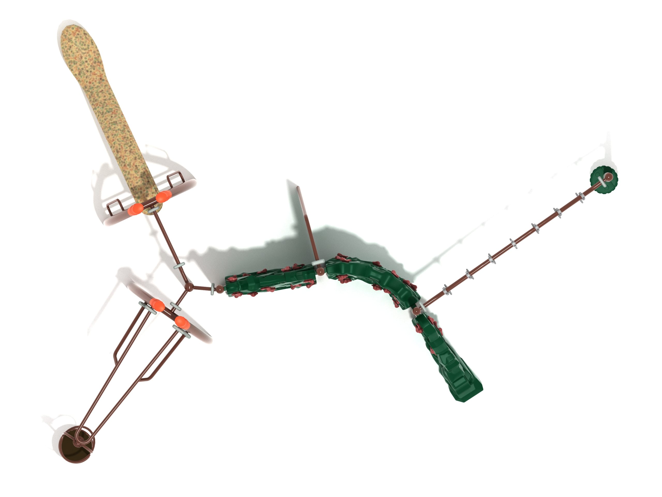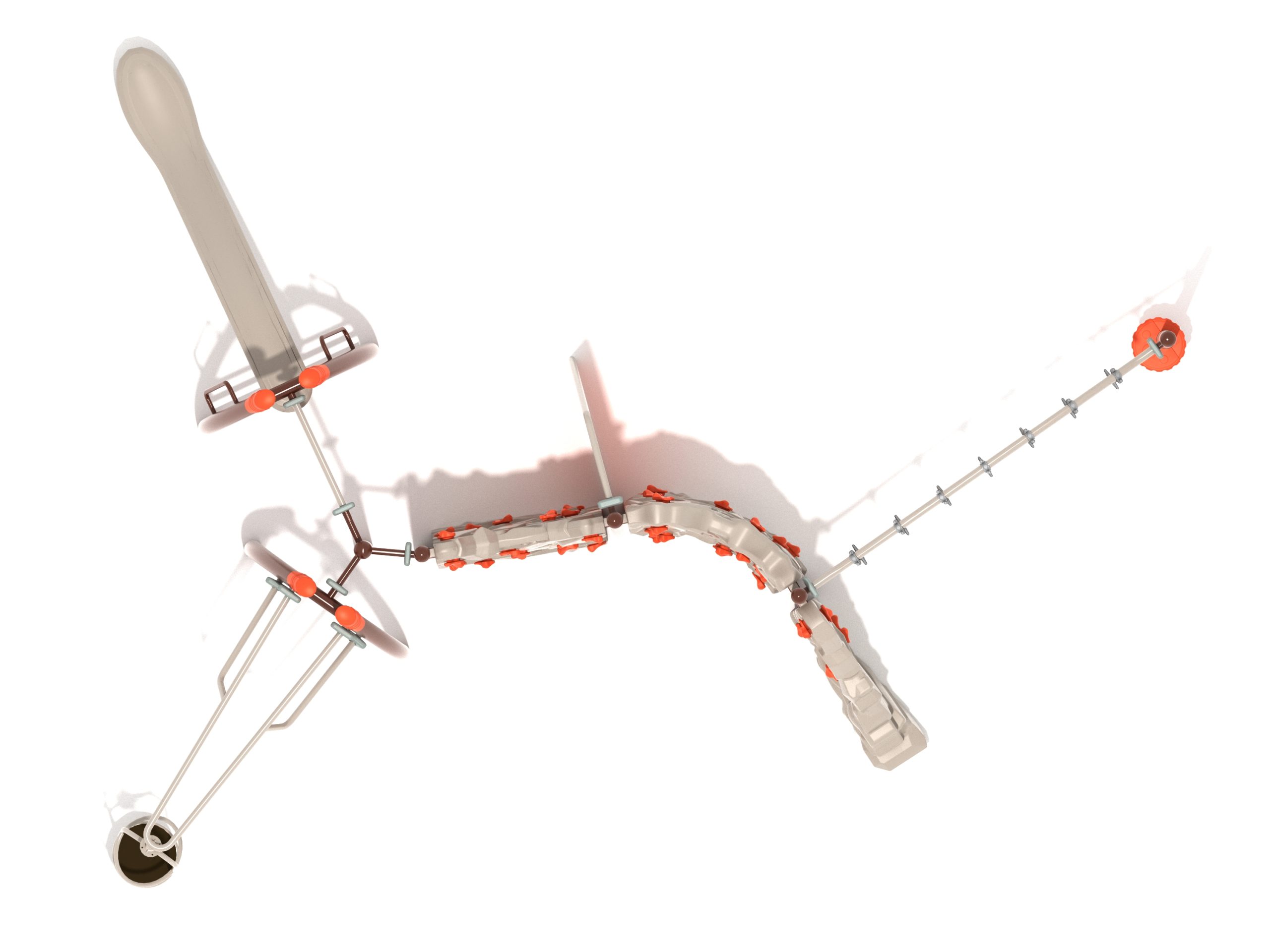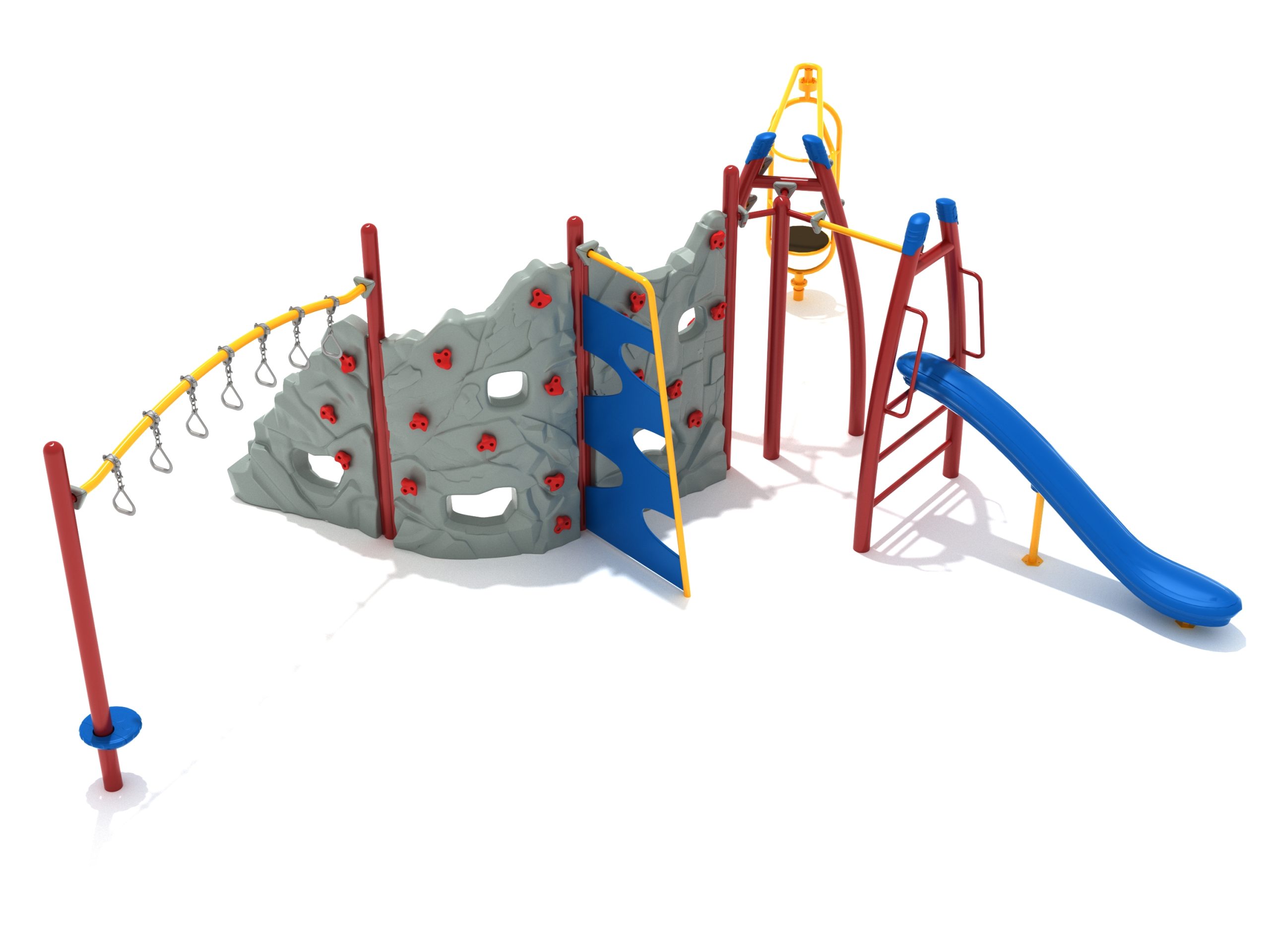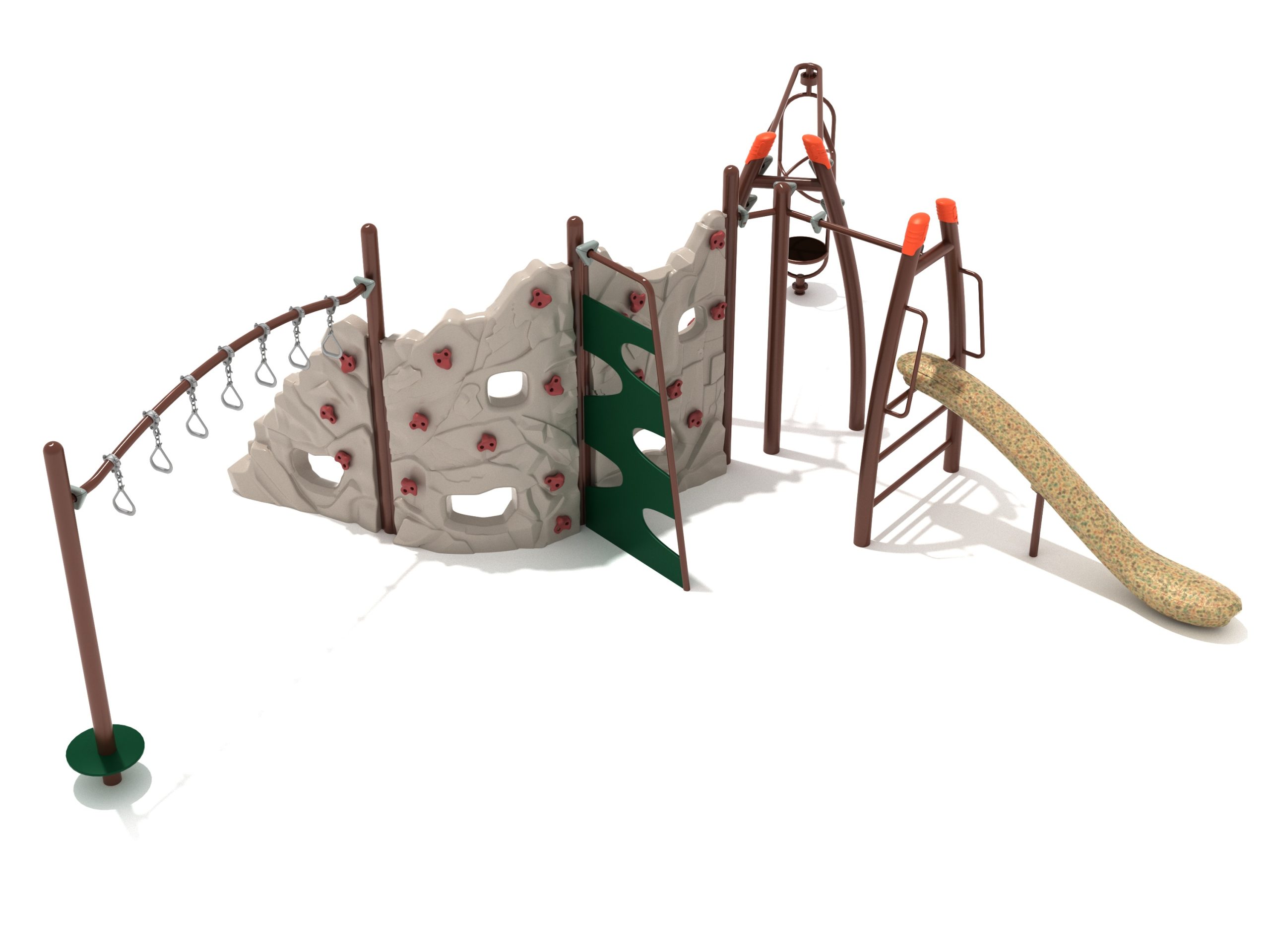 It’s important to keep kids fit and active, and with the Timms Hill play structure they’ll be able to work all of their muscle groups without even realizing it’s beneficial exercise. A Saddle Slide at one end works core muscles as children attempt to stay upright as they balance their way down, and a Standing Orbital Spinner will make children grip on tight as the spinning motion pushes them outwards. The Climber Attachment is the perfect way to get up onto the rock climbing walls thanks to its angled holes. The climbing wall sections are made up of a Craggy Climber Straight Section that links to a Craggy Climber Turn Section which provides a different challenge on each face, and finally a Craggy Climber End Section to help youngsters get accustomed to the rock face. Only the most daring children will attempt to get onto the Craggy climbing sections directly from the Curved Overhead Swinging Ring Ladder as they have to manage multiple motor functions at the same time to achieve it.