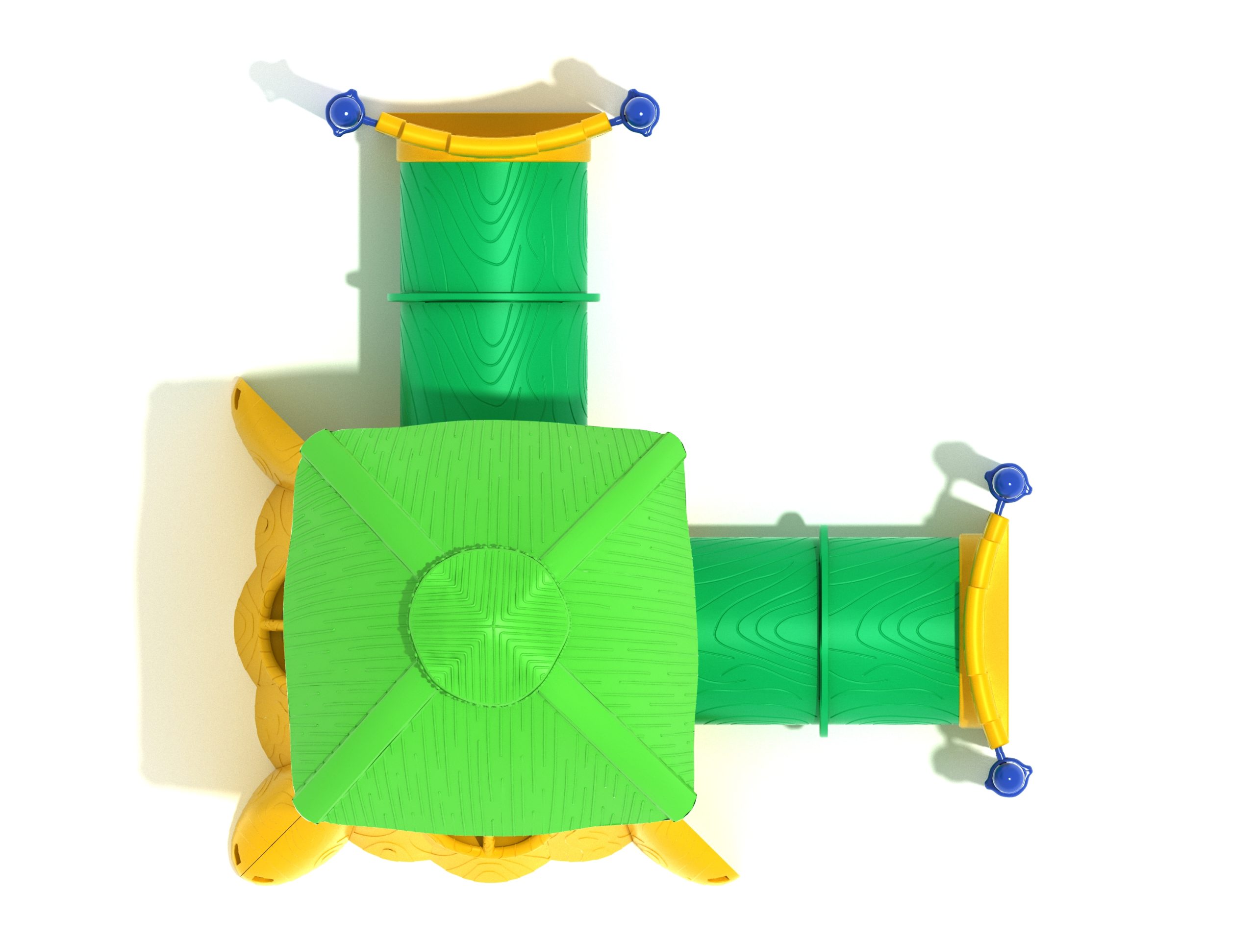 The Treetop Connection play structure is half enclosed shelter, and half exciting obstacle. That is because two of its four walls are Stump Window Panels, while the other two are tube tunnels.