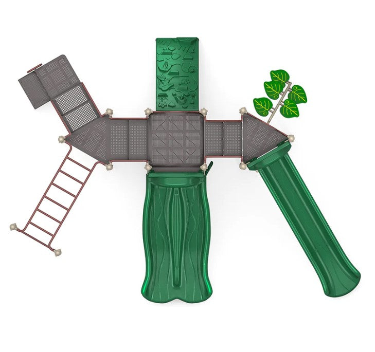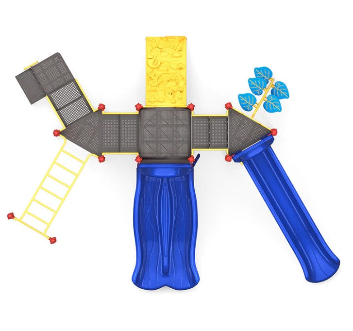 Get ready for endless fun on the All Points Playground! This amazing playground structure is jam-packed with exciting play features that will keep kids engaged and active. The double slide and sectional slide offer two thrilling options for a quick descent, and the leaf step climber and rock climber provide challenging and exciting ways to reach new heights. The challenge ladder and overhead entry ladder offer additional climbing options, and the rain wheel adds a touch of whimsy to the playground. The counter panel allows kids to practice their counting skills, and with so much to discover and explore, the All Points Playground is the ultimate destination for kids' imaginations and play.