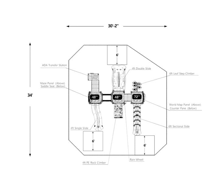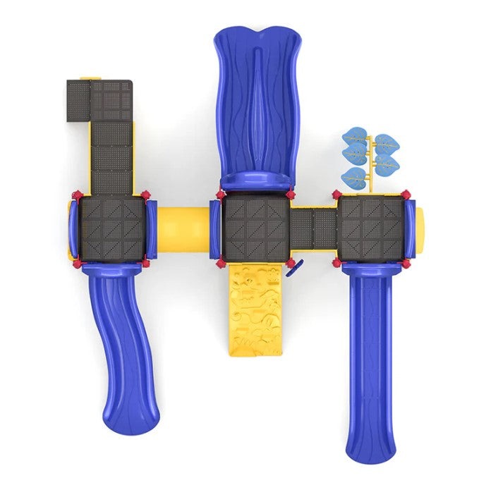 Welcome to the Carousel Playground, where the fun and adventure go round and round! This appealing playground structure is filled with enjoyable play features that will captivate kids all day long. With a sectional slide, single slide, and double slide, kids can zip their way to the bottom in a hurry. The leaf step climber and rock climber offer challenging and exciting ways for kids to scramble to the top, and the maze panel and world map panel provide interactive elements to enjoy. The rain wheel adds a touch of whimsy to the playground, and the counter pane allows kids to practice their counting skills like little math wizards. The saddle seat provides a safe way for kids to rest. With so much to discover and explore, the Carousel Playground is a welcomed destination by children of all ages.