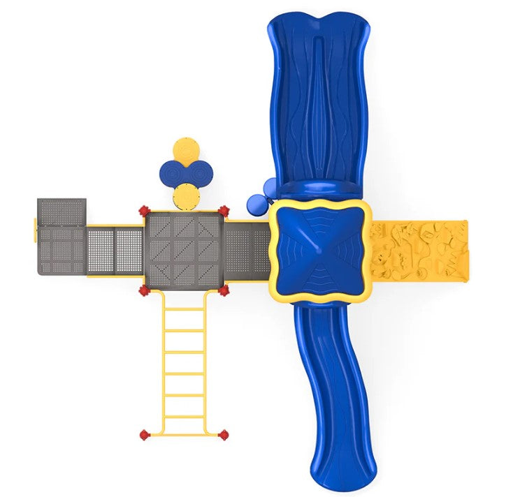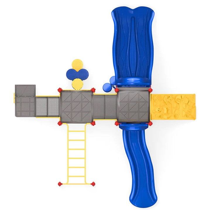 Climbing Components: Features a vertical step climber and stepping pods to enhance balance, coordination, and gross motor skills.