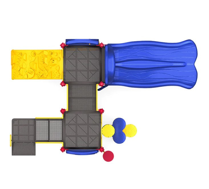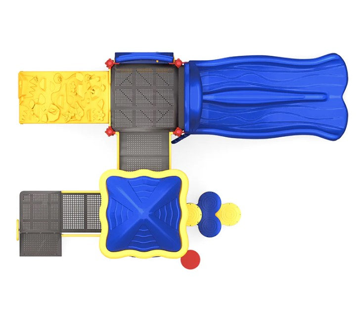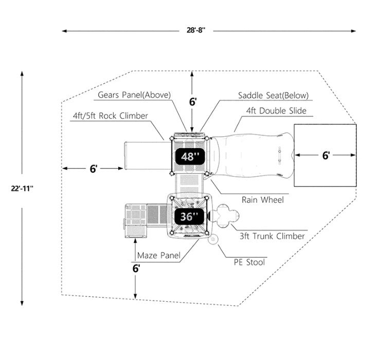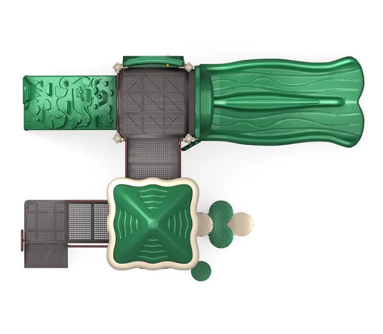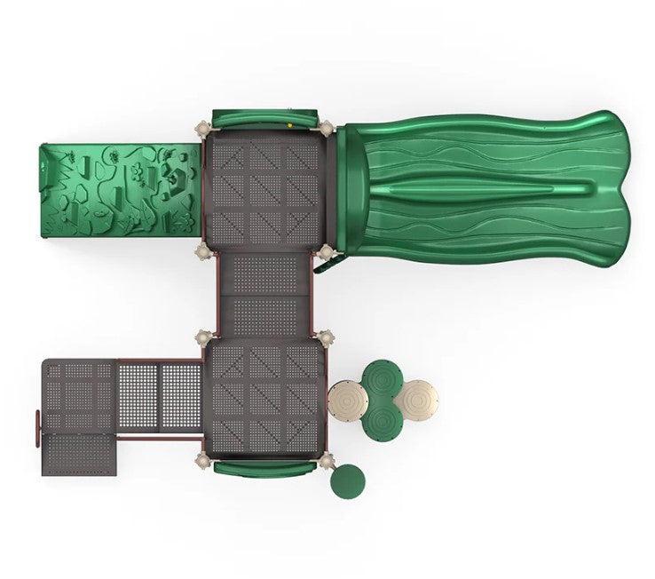 Welcome to Sunny Stack Playground, where the fun shines bright! This amazing playground structure comes with awesome play features that will keep kids entertained for hours on end. With a double slide, kids can scoot their way to the bottom in style. The rock climber and trunk climber offer challenging and exciting ways for kids to reach new heights, and the gears panel is an interactive element that kids can use to develop their problem-solving skills. The rain wheel adds a touch of whimsy to the playground, and the maze panel is a fun and challenging element that kids can use to practice strategy. The saddle seat is a safe and fun element for kids to rest on, and with so much to discover and explore, the Sunny Stack Playground is the perfect place for kids to let their imaginations run wild. All this makes the Sunny Stack Playground a favorite destination for kids' fun and excitement.